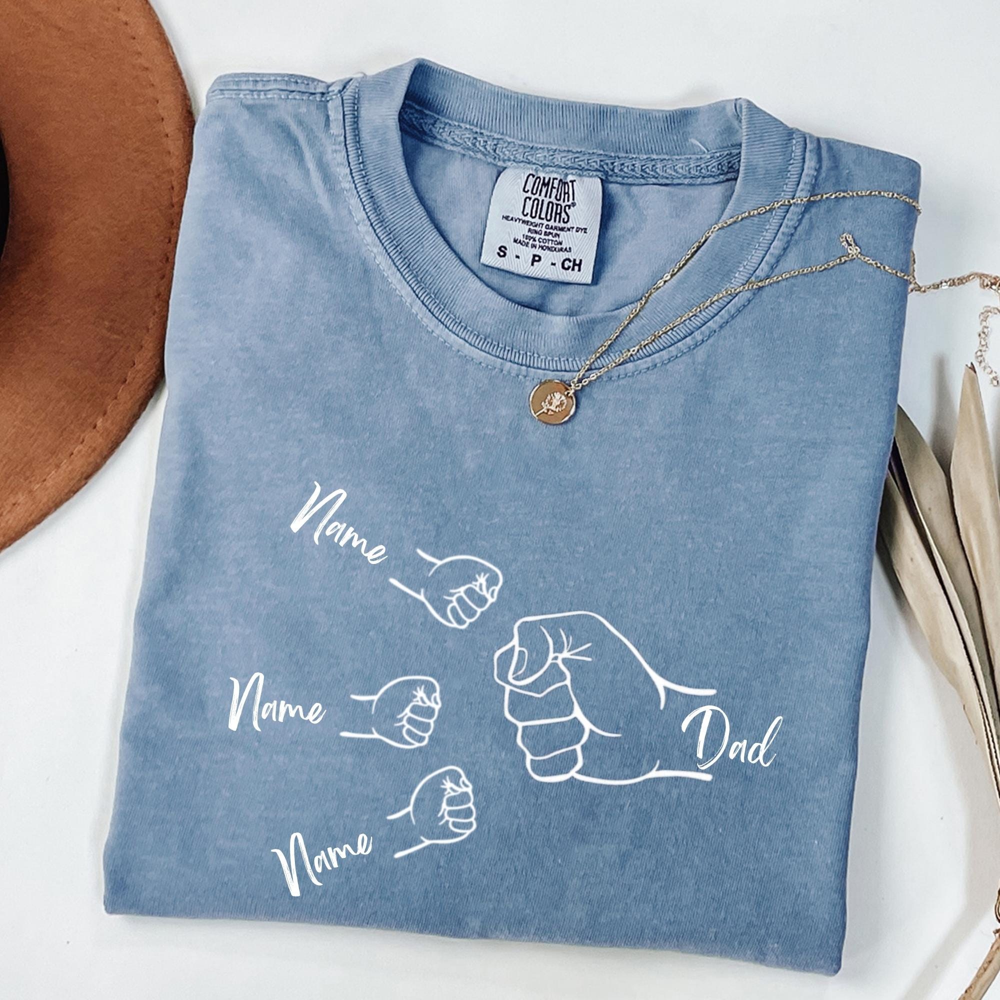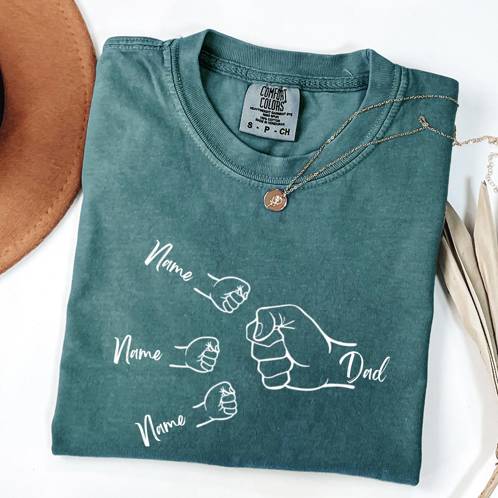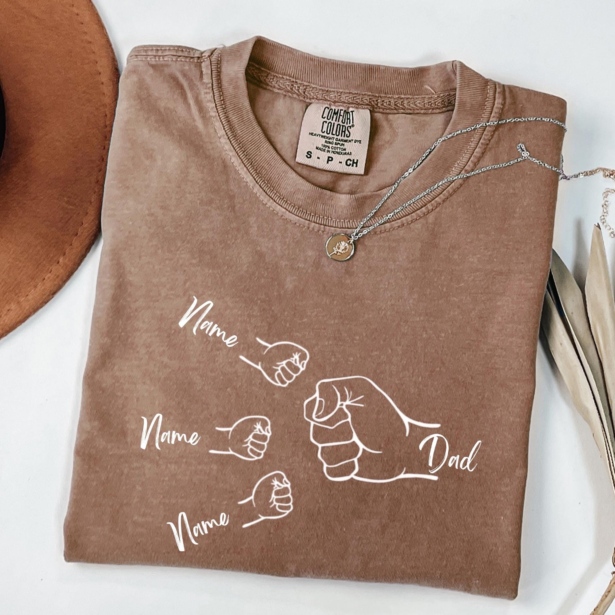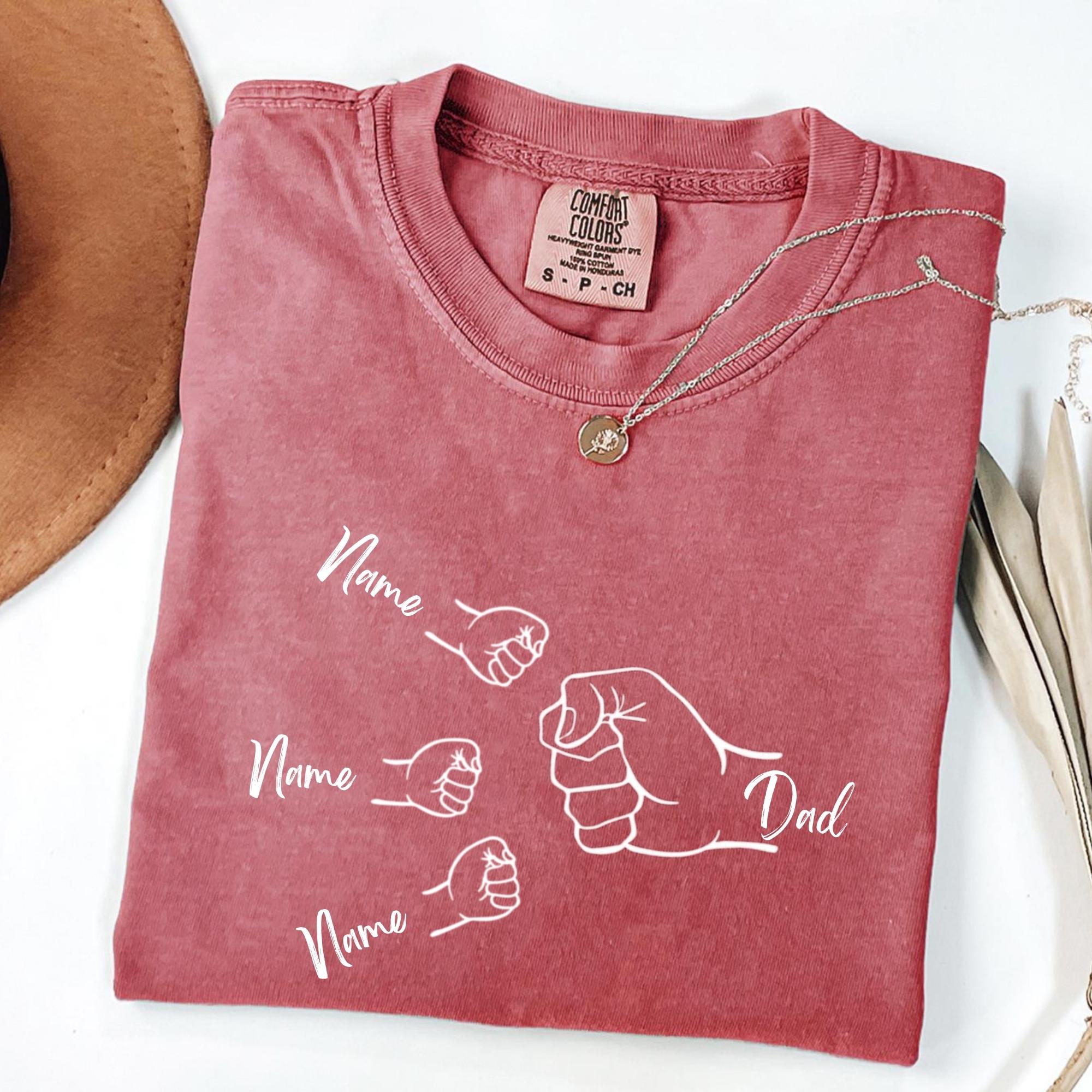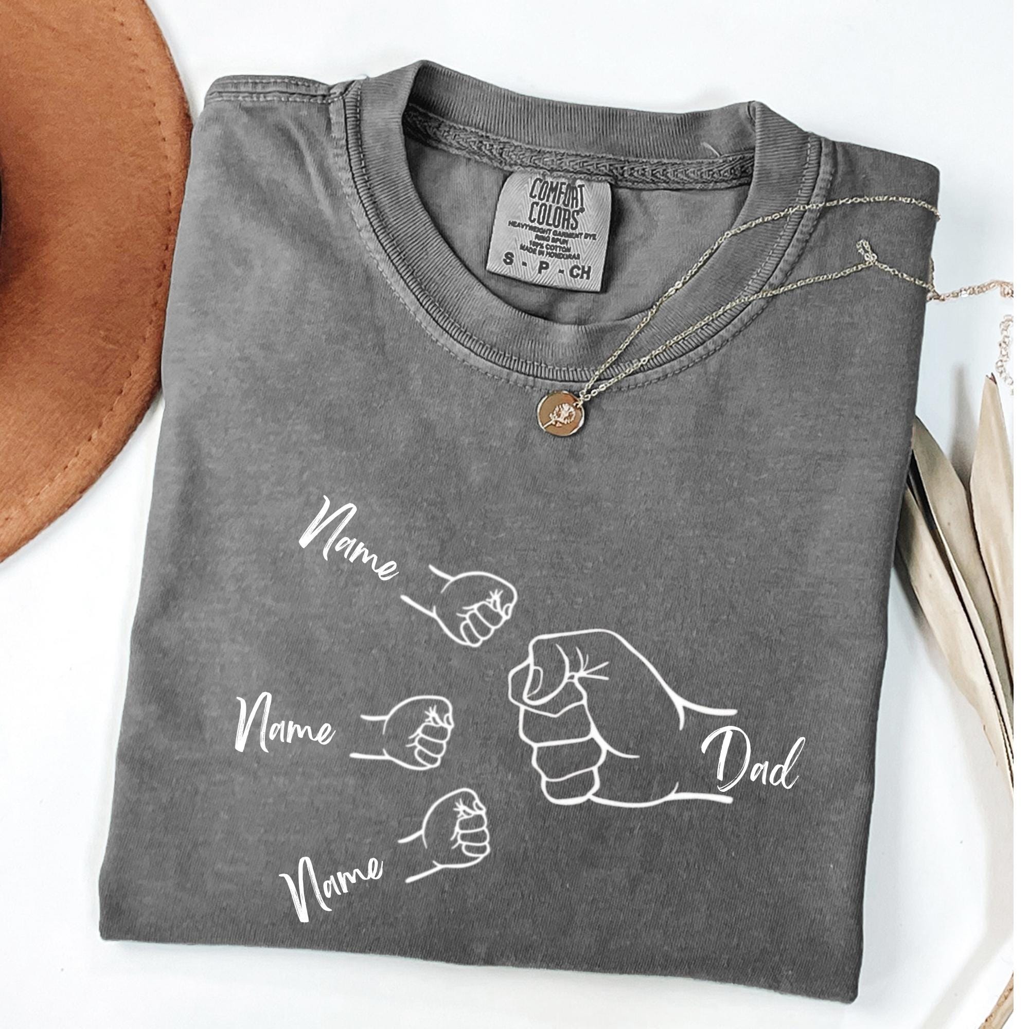 Comfort Colors® Dad and Kids Fist Bump Shirt, Personalized Dad Shirt, Fathers Day Gift, Custom Grandpa Tee, Papa Hand With Kids Name Shirt
