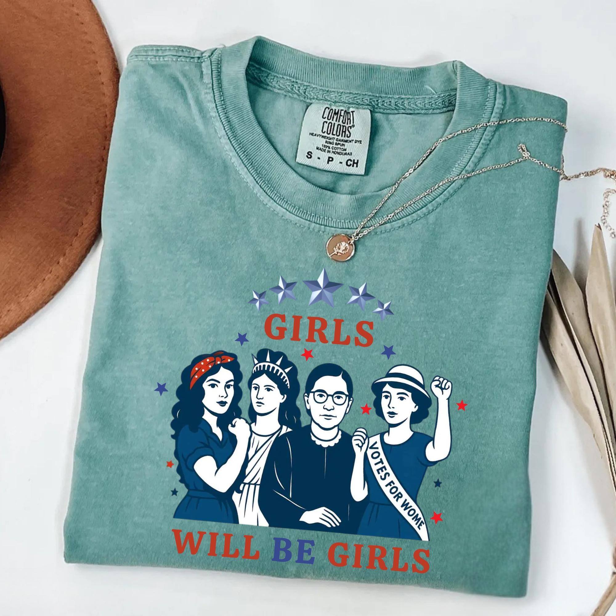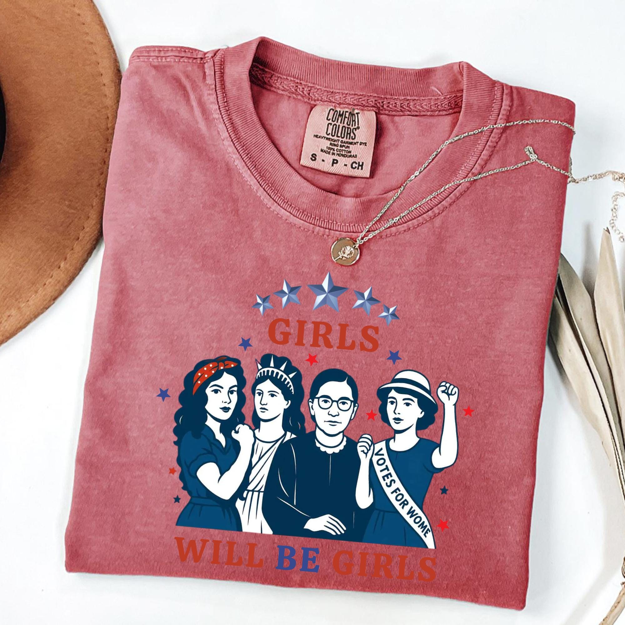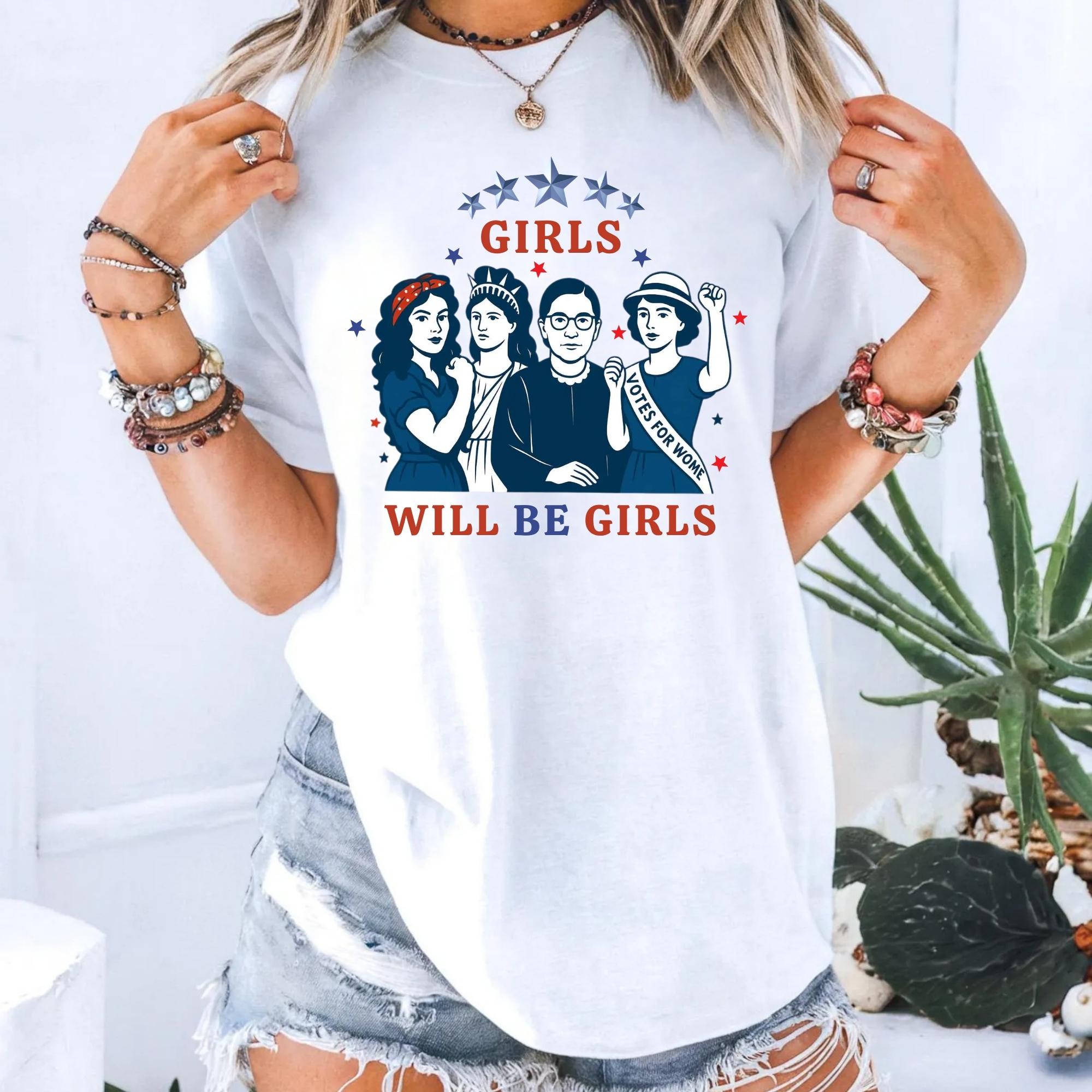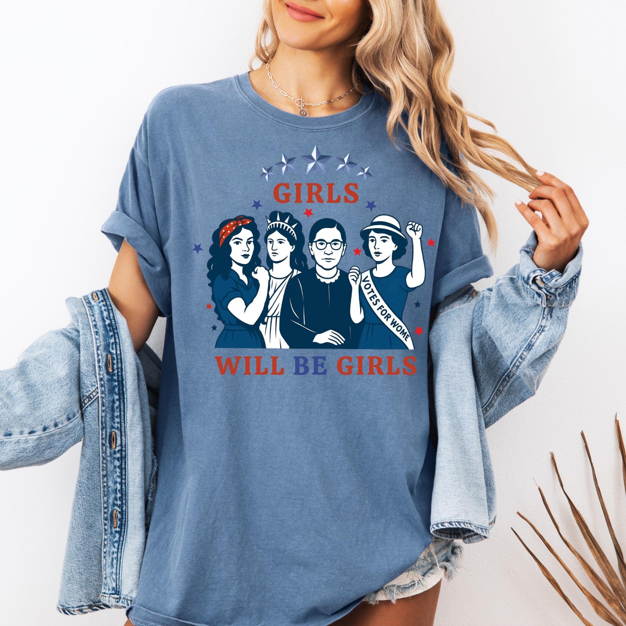 Girls Will be Girls Comfort Colors Shirt, Patriotic Feminist 4th of July Tee, Strong American Women T-Shirt, Independence Day Gift for Her