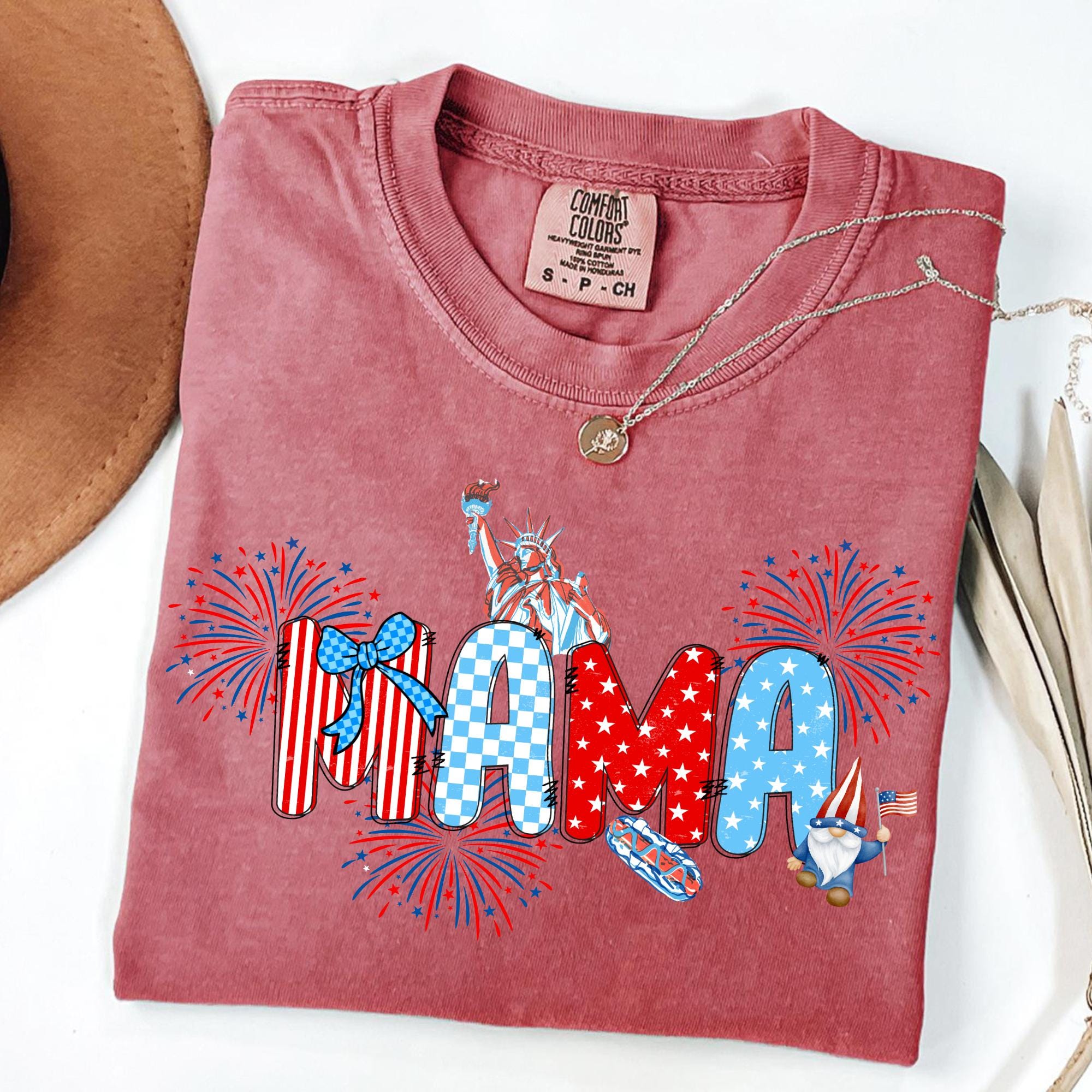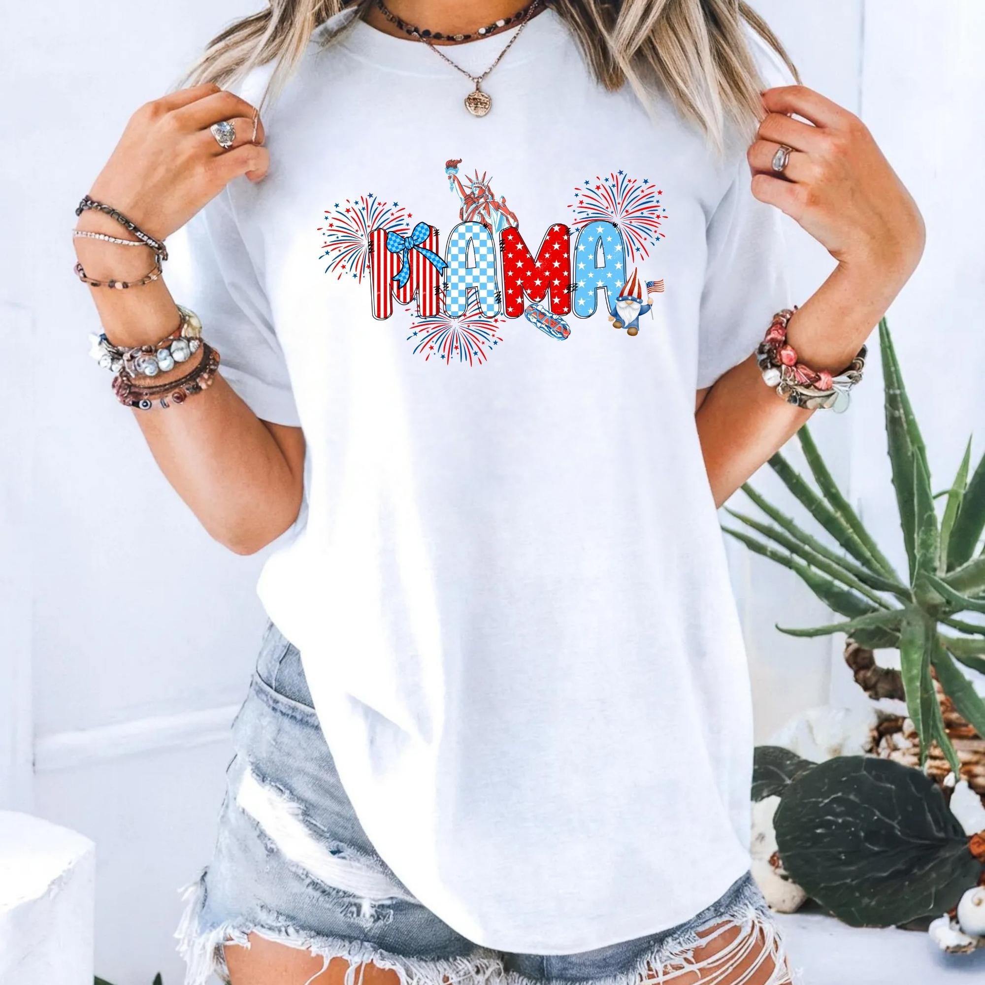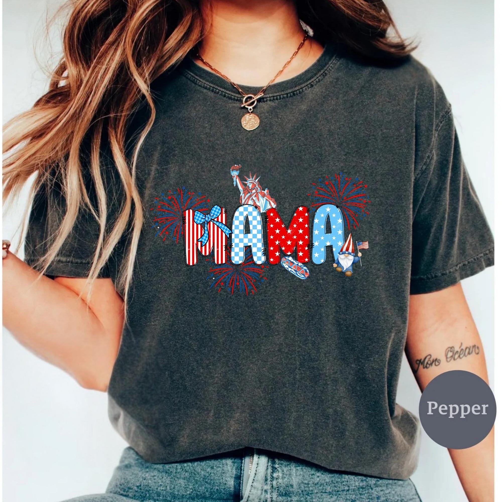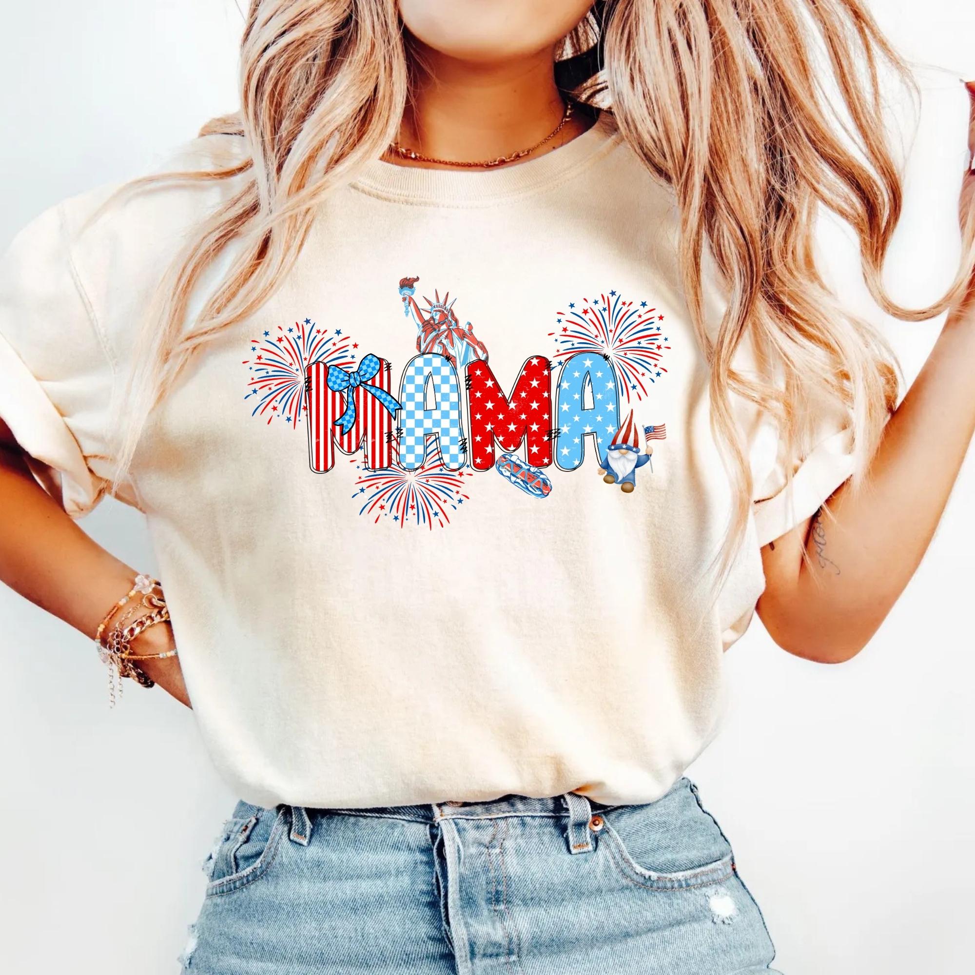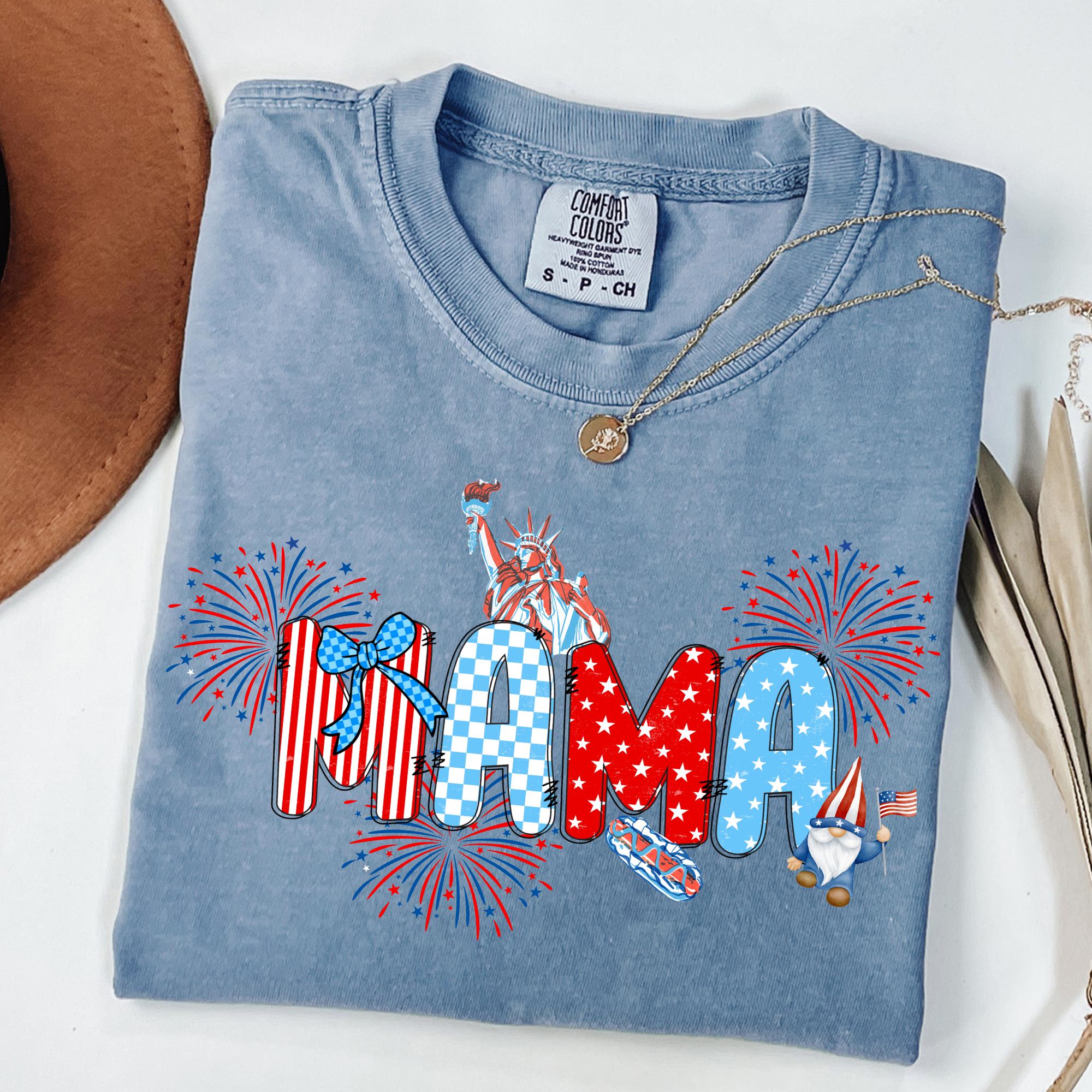 Comfort Colors® 4th of July Pregnancy Announcement Shirt, American Mama, Red White and Due, Patriotic Maternity Tee, July Fourth Shirt for Mom to Be
