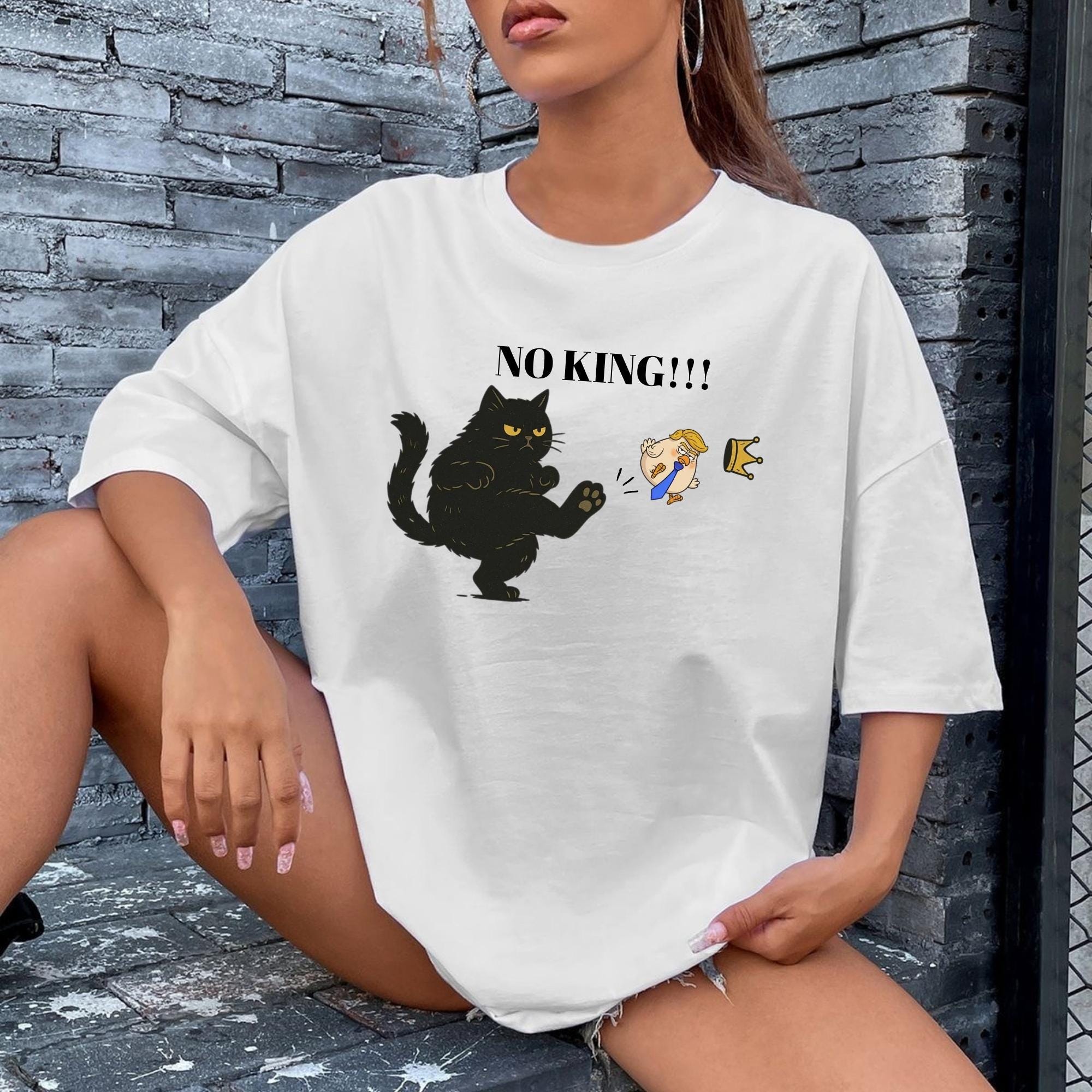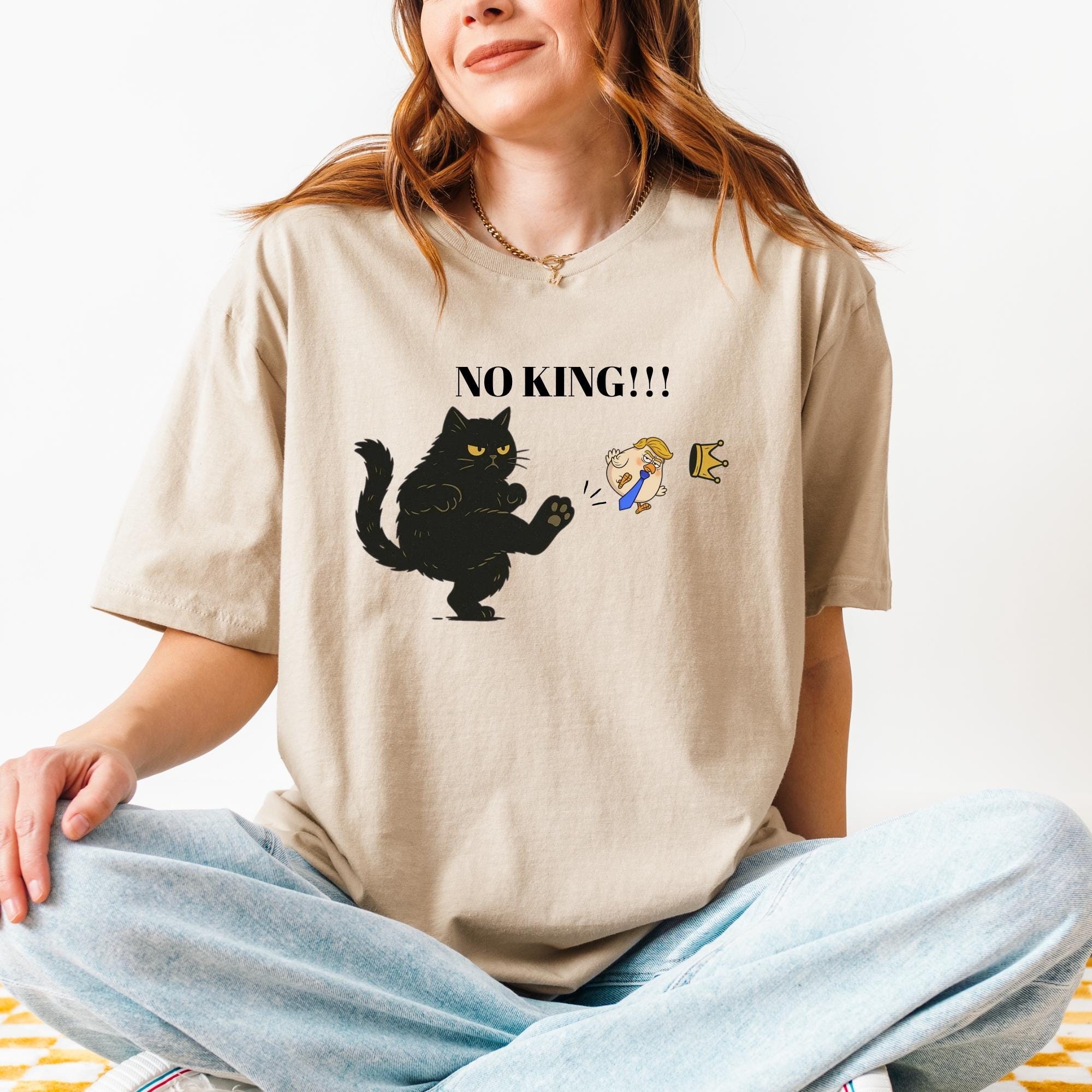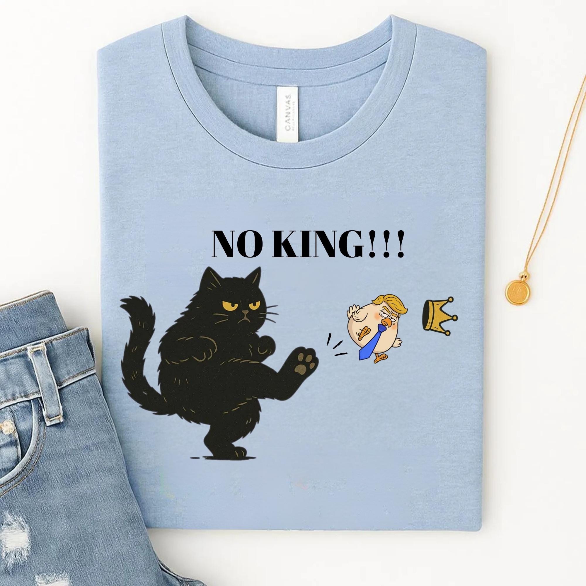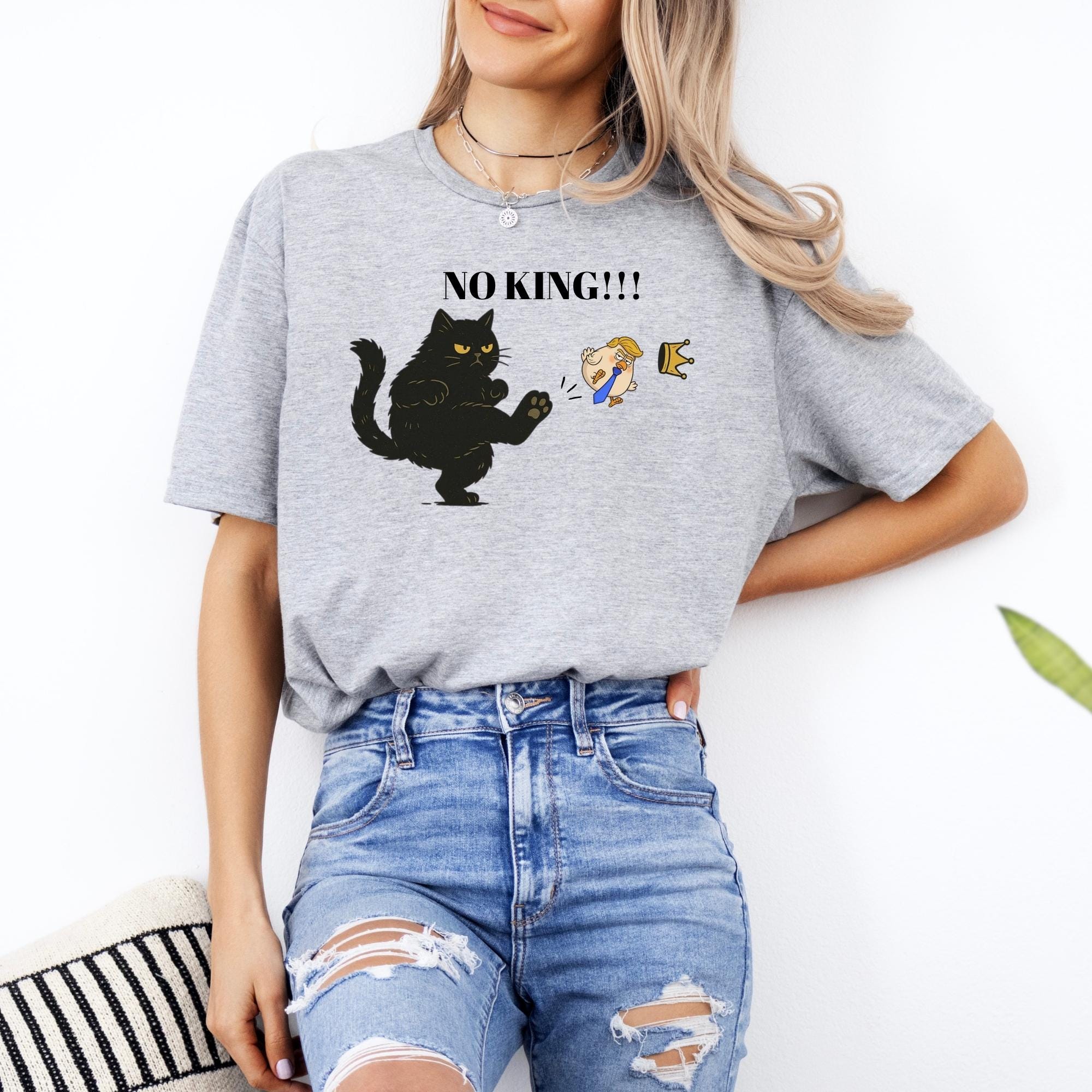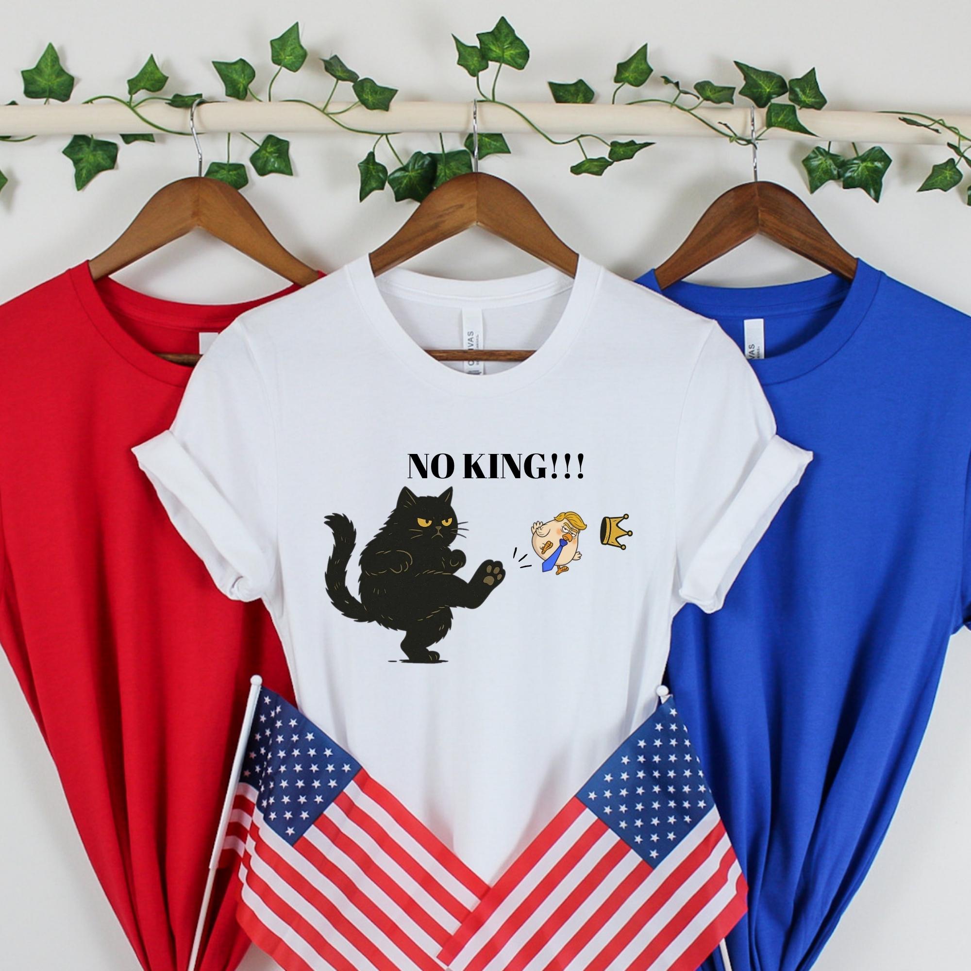 No Kings in America Black Cat Shirt, No Kings Shirt, Funny Political Meme T-Shirt, Patriotic Shirt, Lady Liberty Shirt, Social Justice Shirt