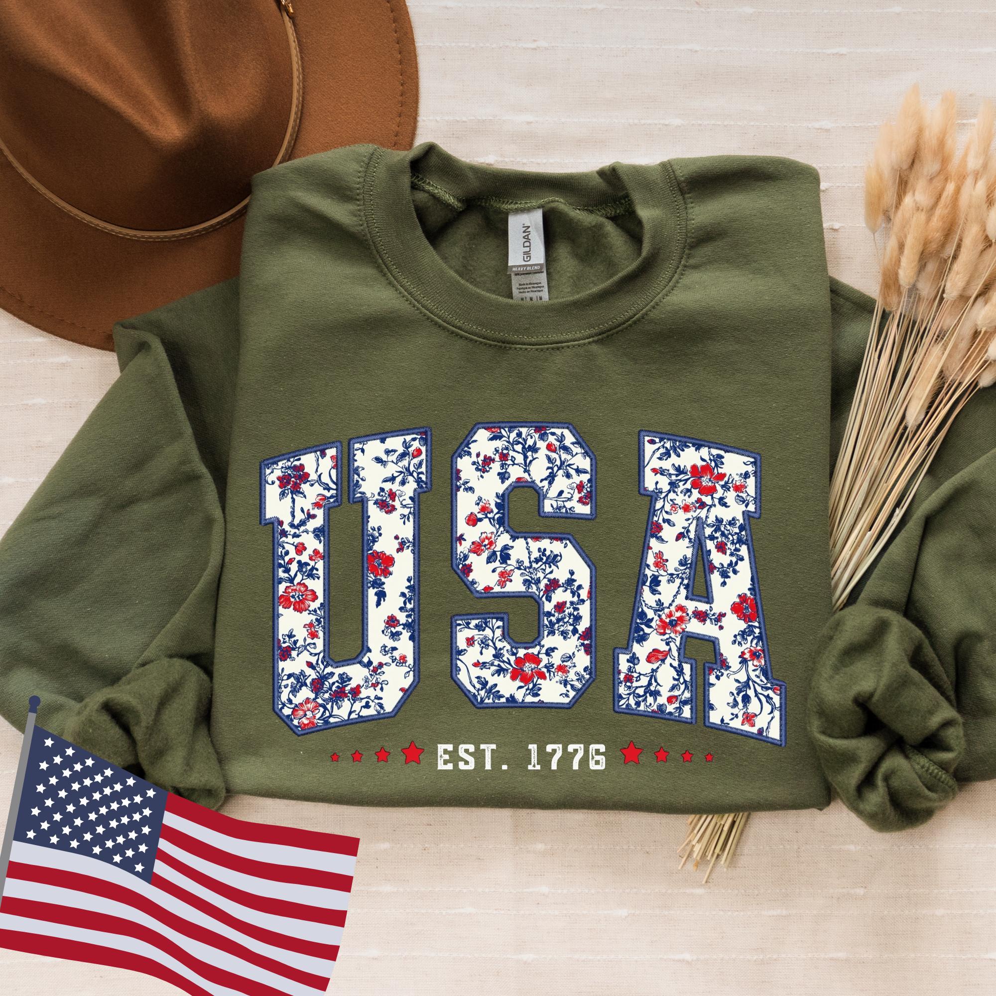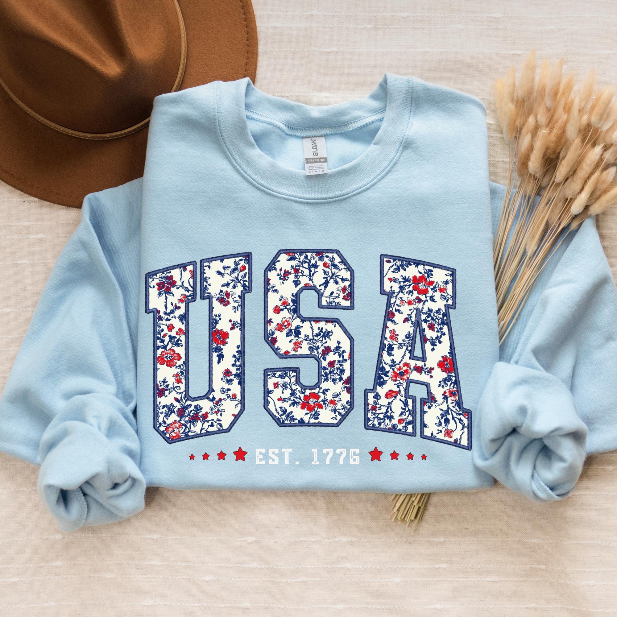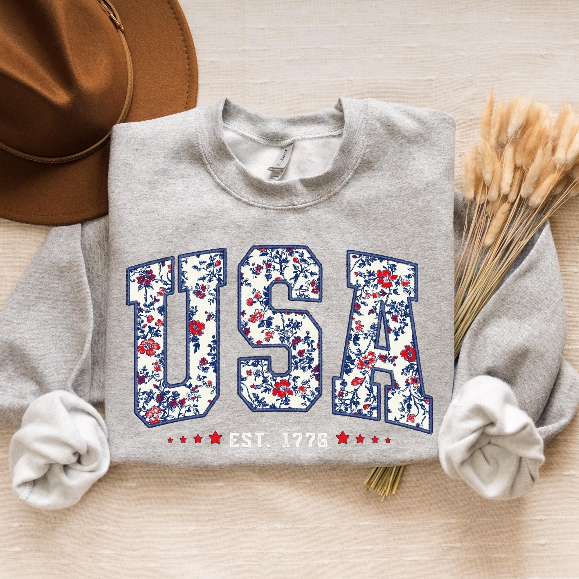 Floral USA Sweatshirt, America Sweatshirt, Fourth of July Sweatshirt,4th of July,Patriotic Sweatshirt, USA Est 1776 SweatShirt,Girly USA Tee