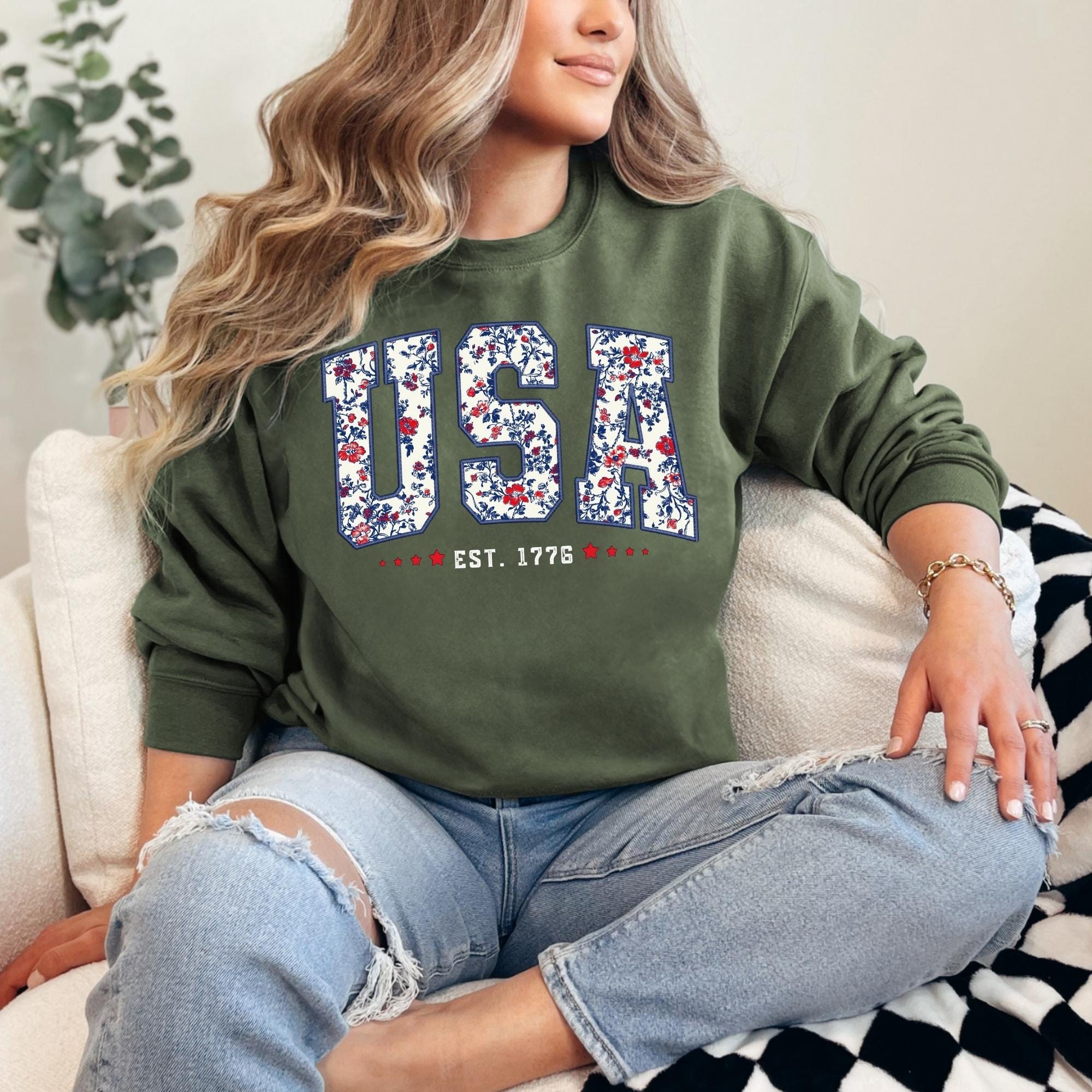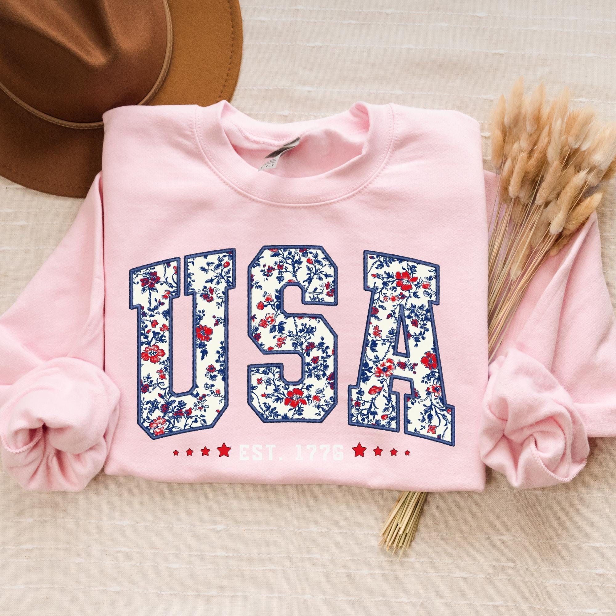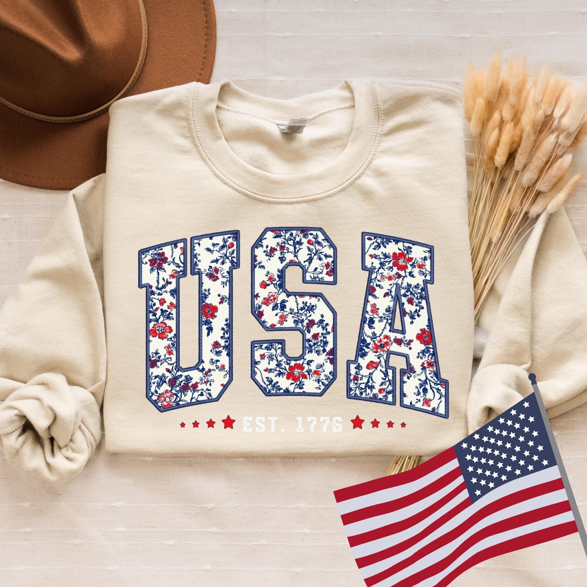 Floral USA Sweatshirt, America Sweatshirt, Fourth of July Sweatshirt,4th of July,Patriotic Sweatshirt, USA Est 1776 SweatShirt,Girly USA Tee