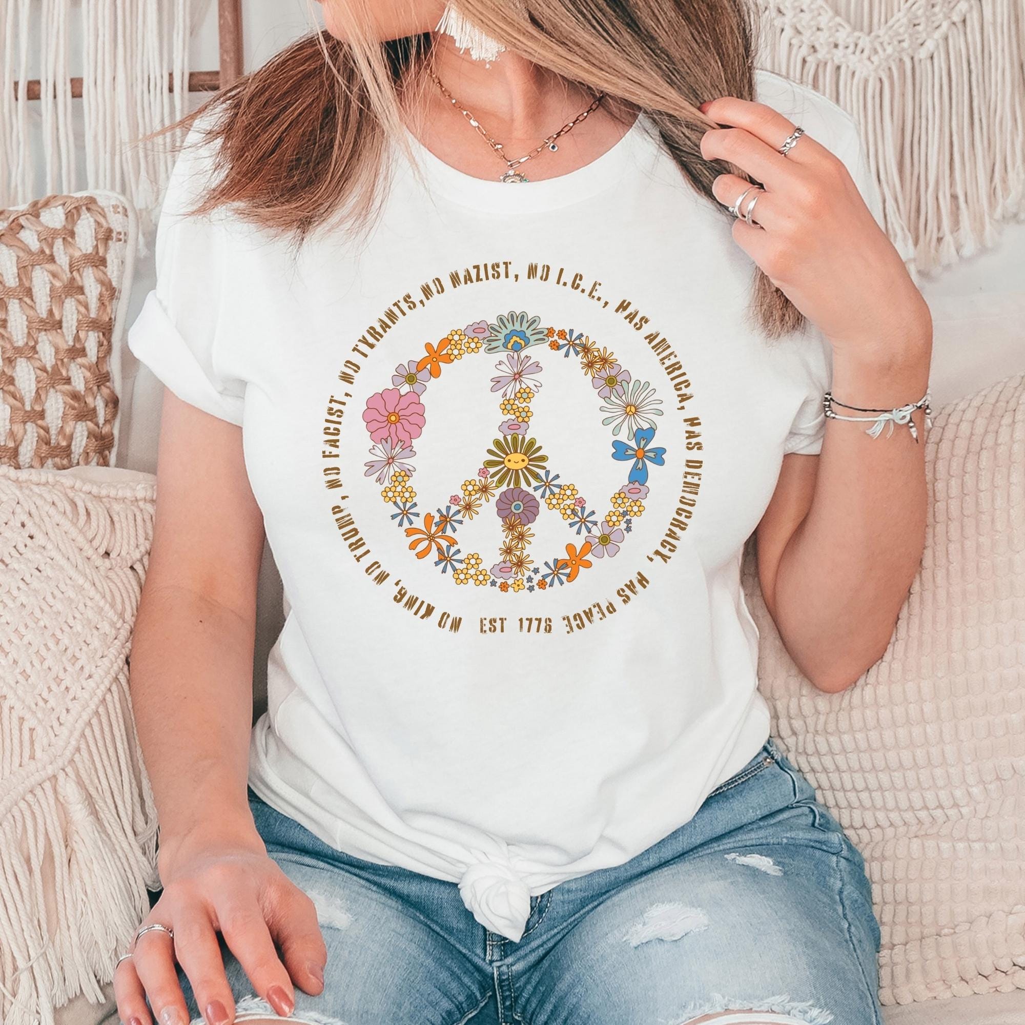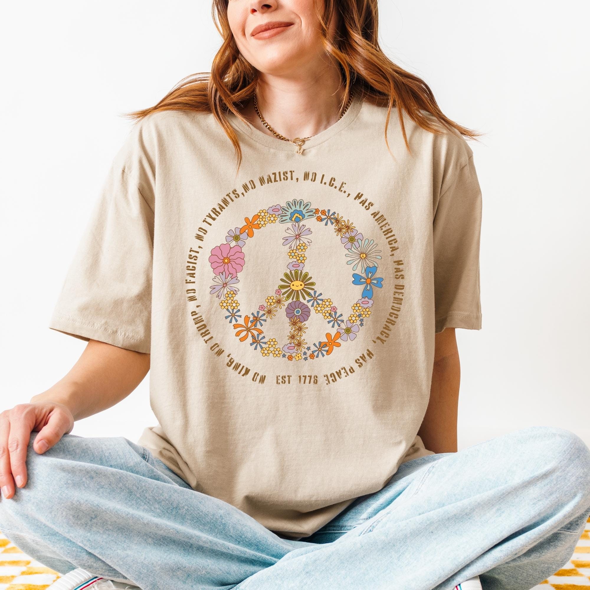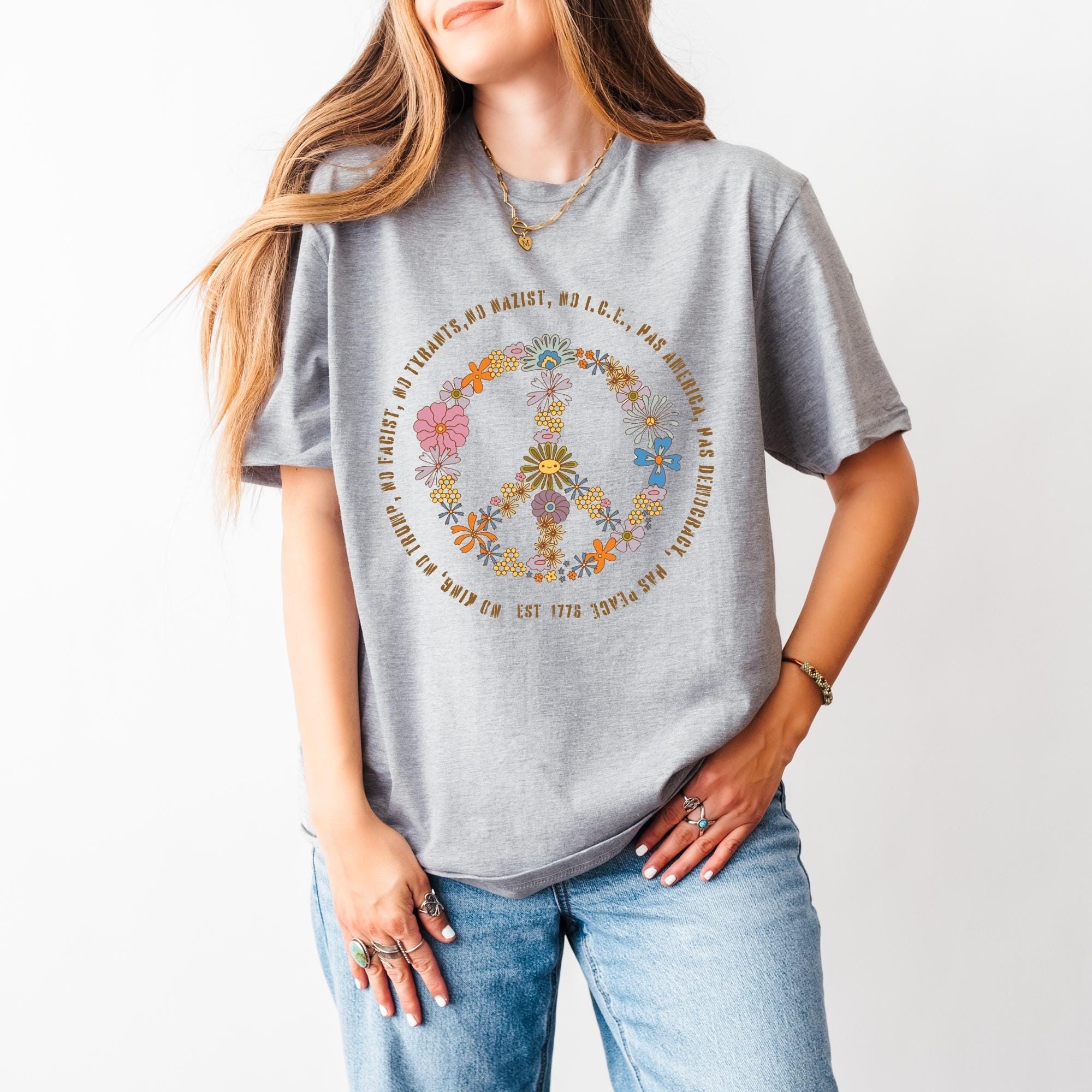 Political Florel Peace Shirt, No Kings in America Shirt, Political Statement, Protest Apparel, Resist Tee, Rejecting Republican Oligarchy