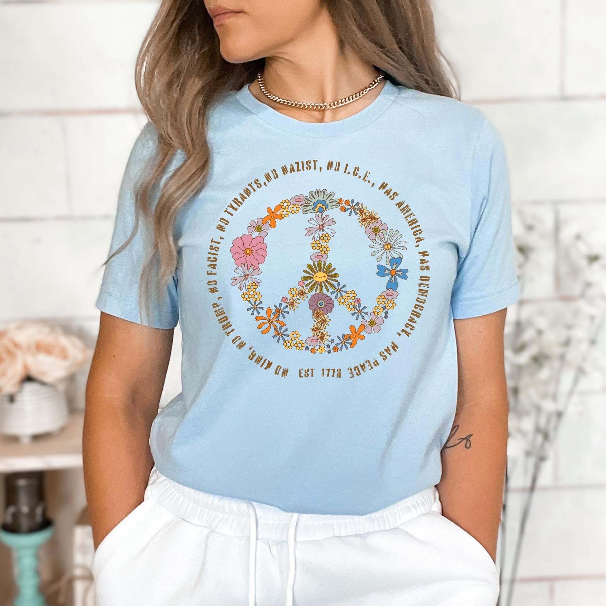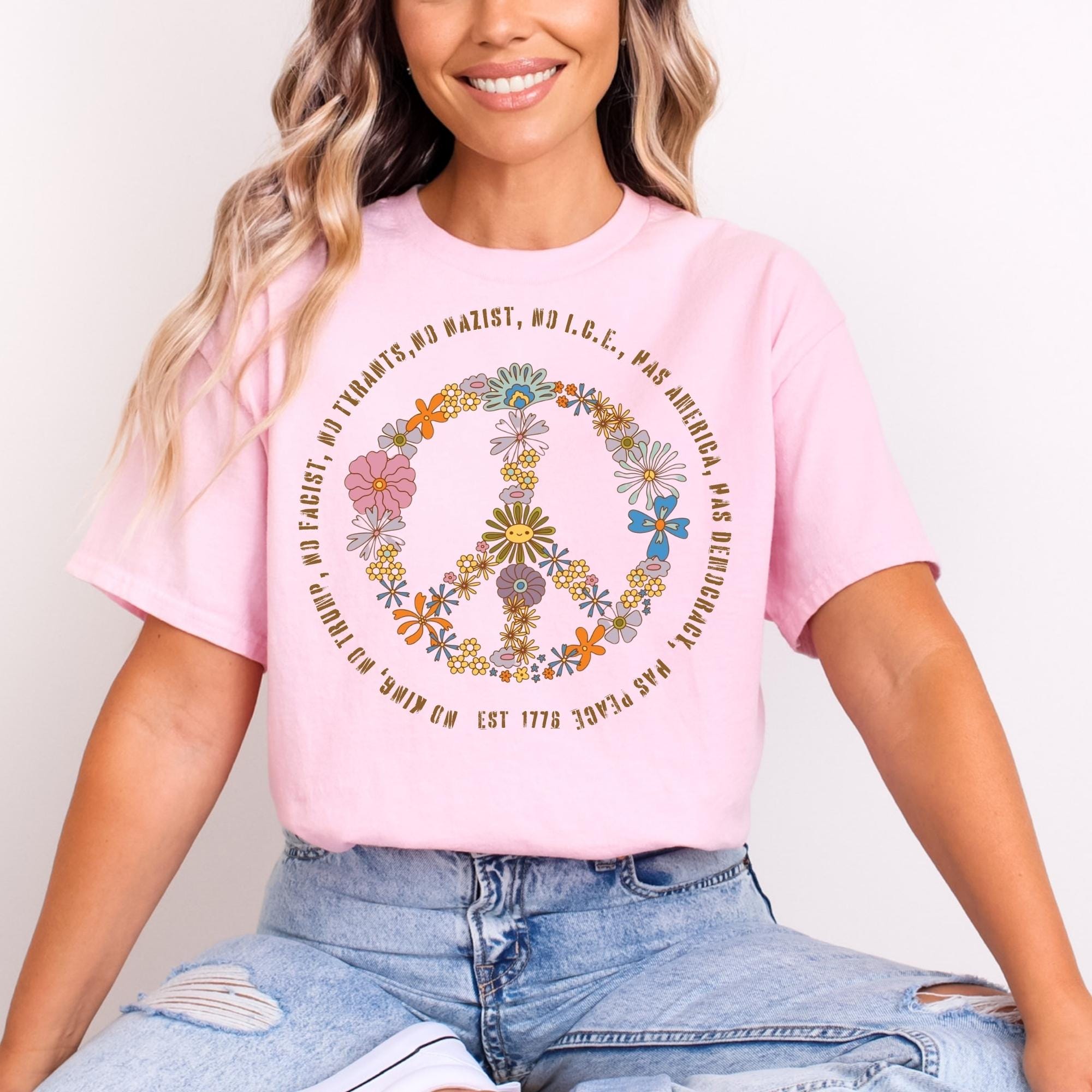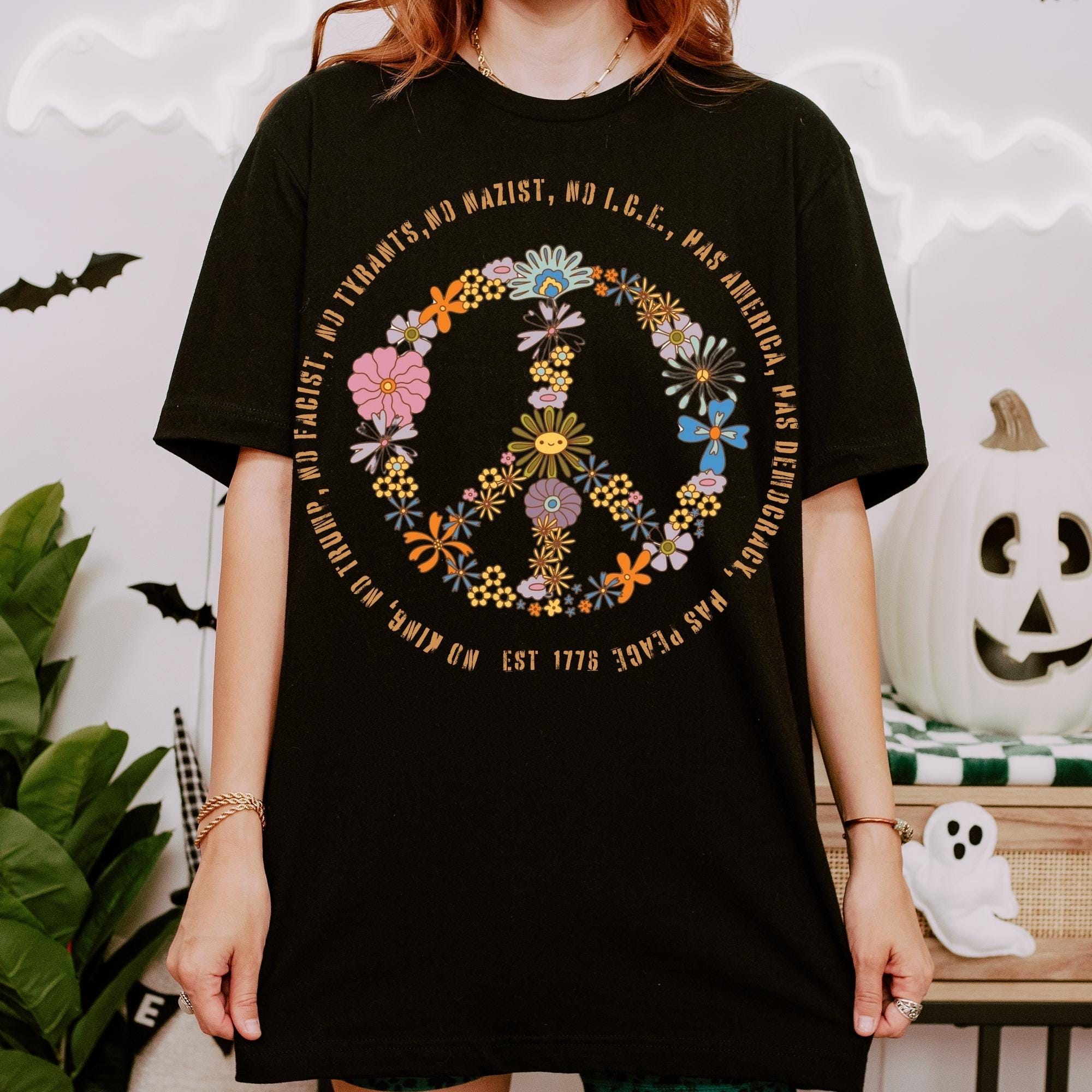 Political Florel Peace Shirt, No Kings in America Shirt, Political Statement, Protest Apparel, Resist Tee, Rejecting Republican Oligarchy