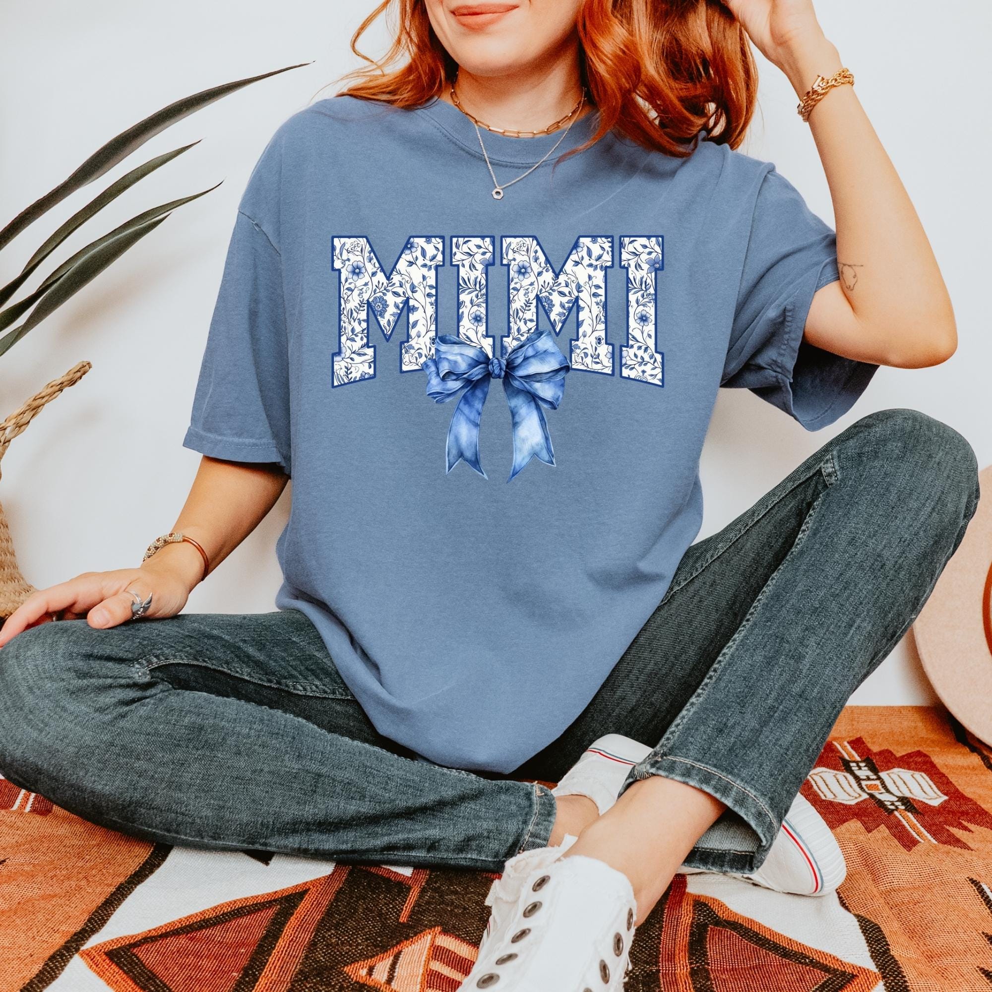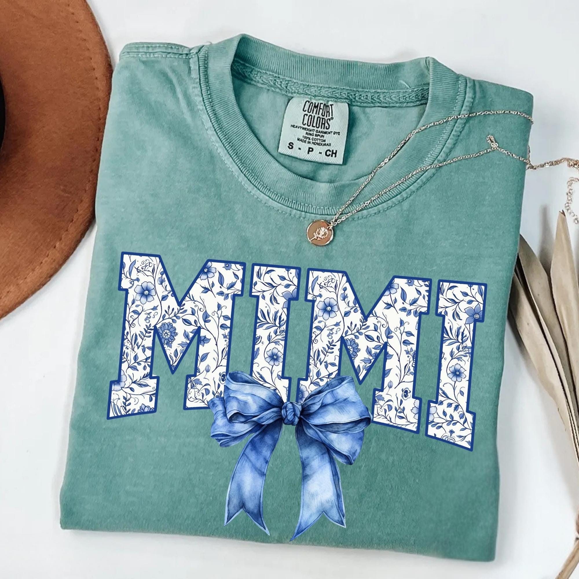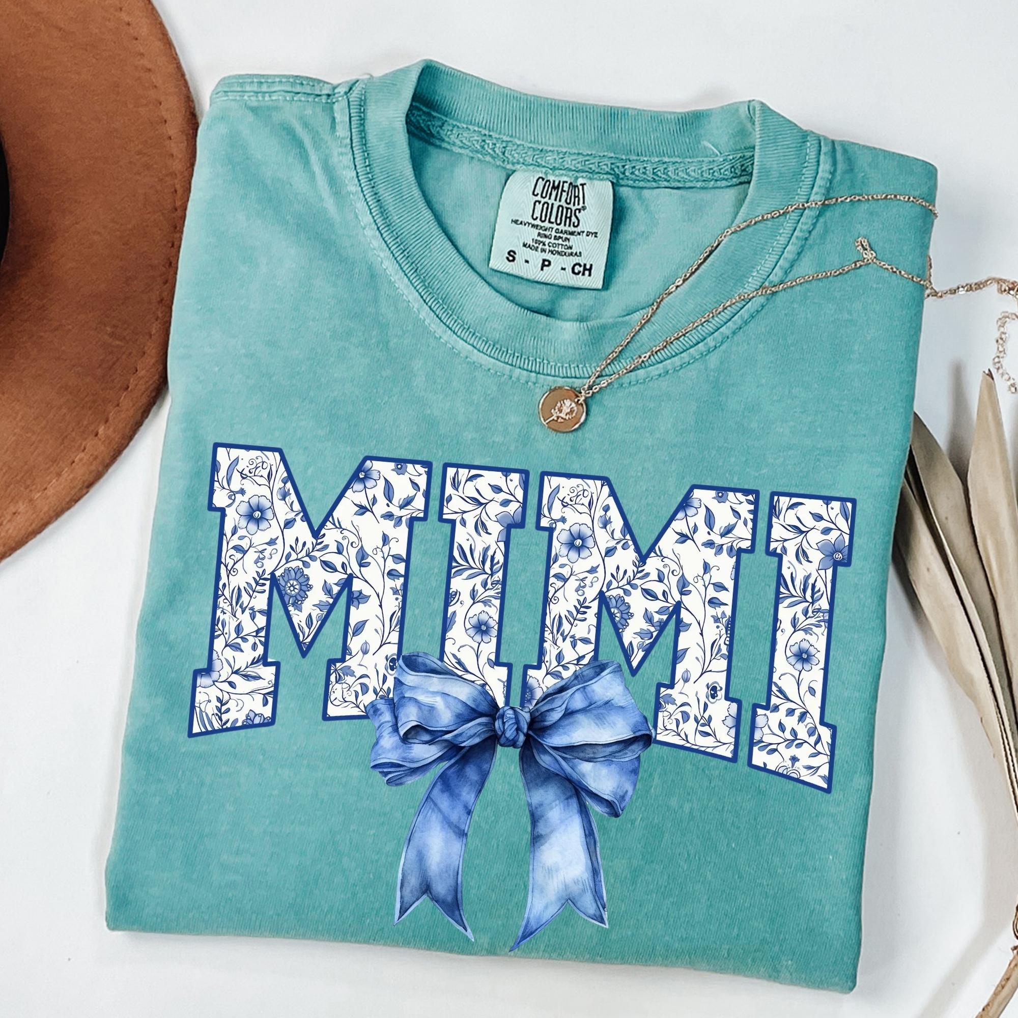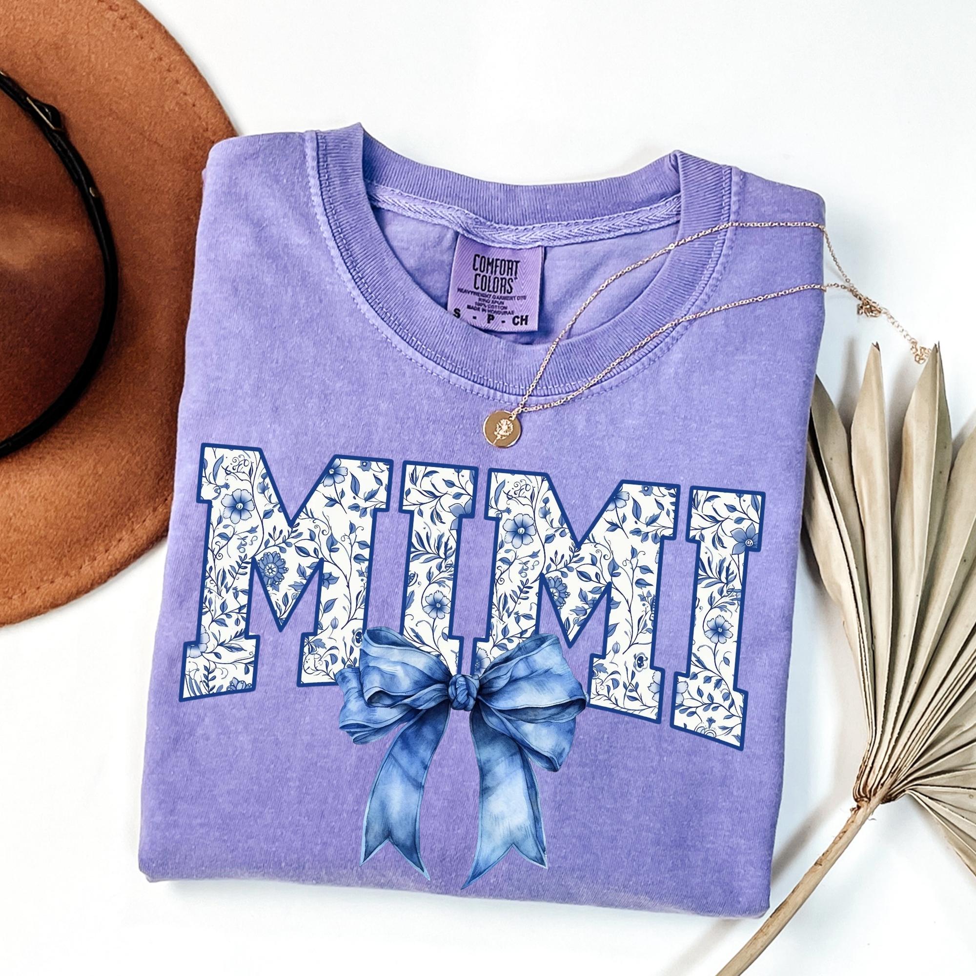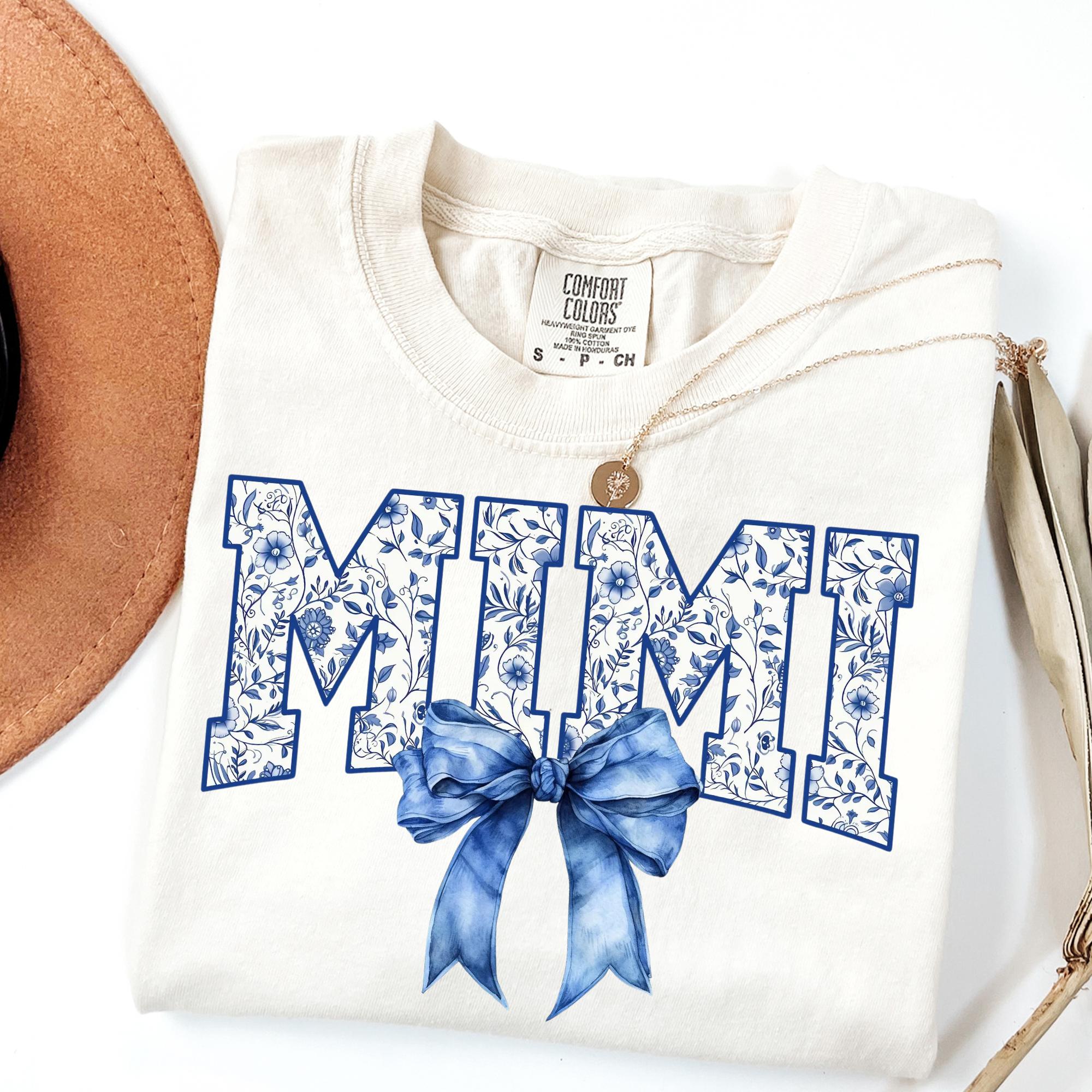 Comfort Colors® Mimi Shirt, Blue Ribbon Shirt, Mothers Day Gift, Aesthetic Gift For Mom, Cute Mom Shirt, Toile Bow Shirt, Chinoiserie Shirt