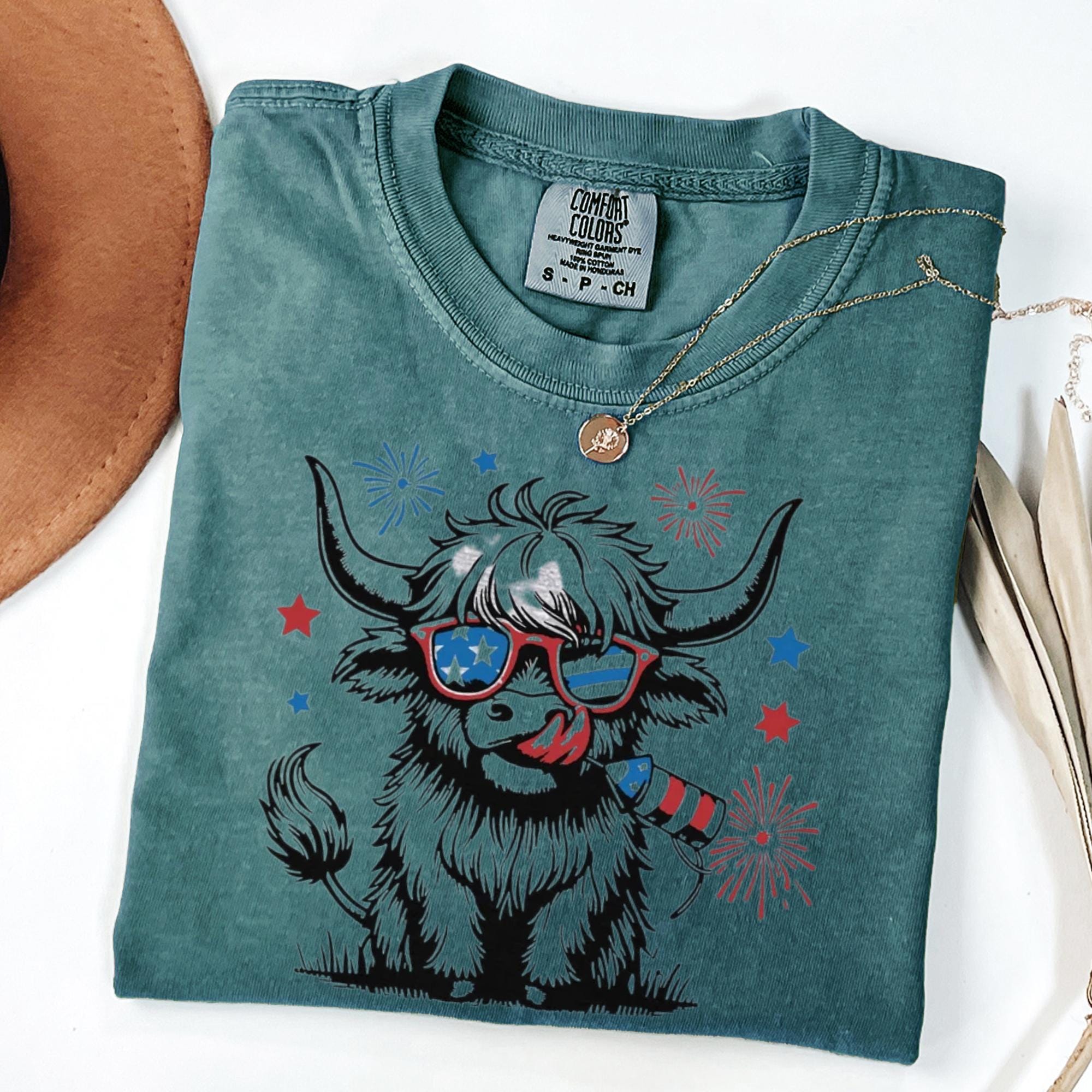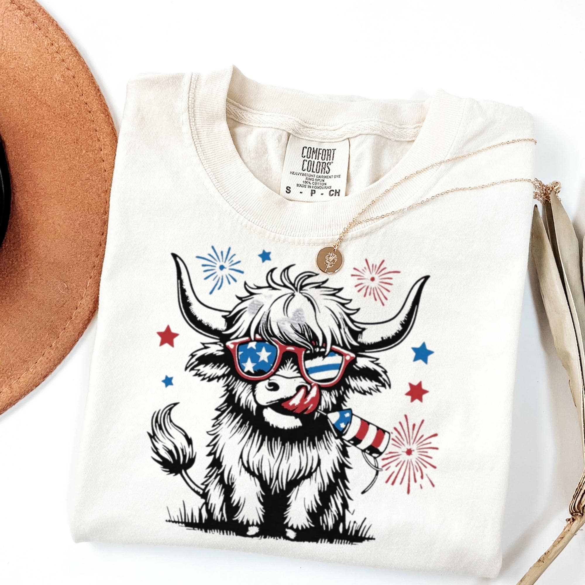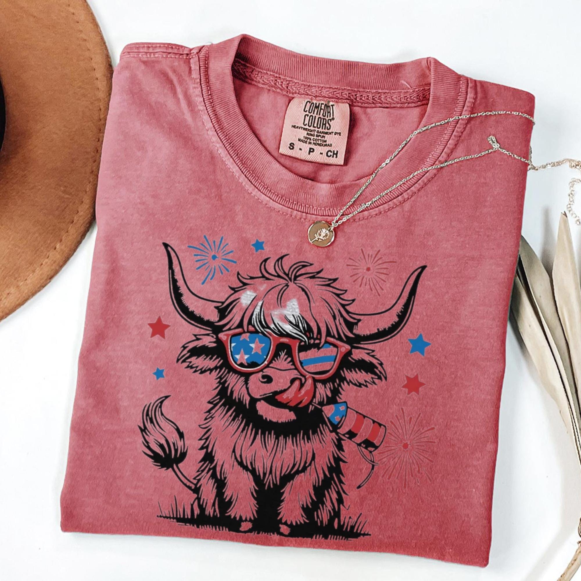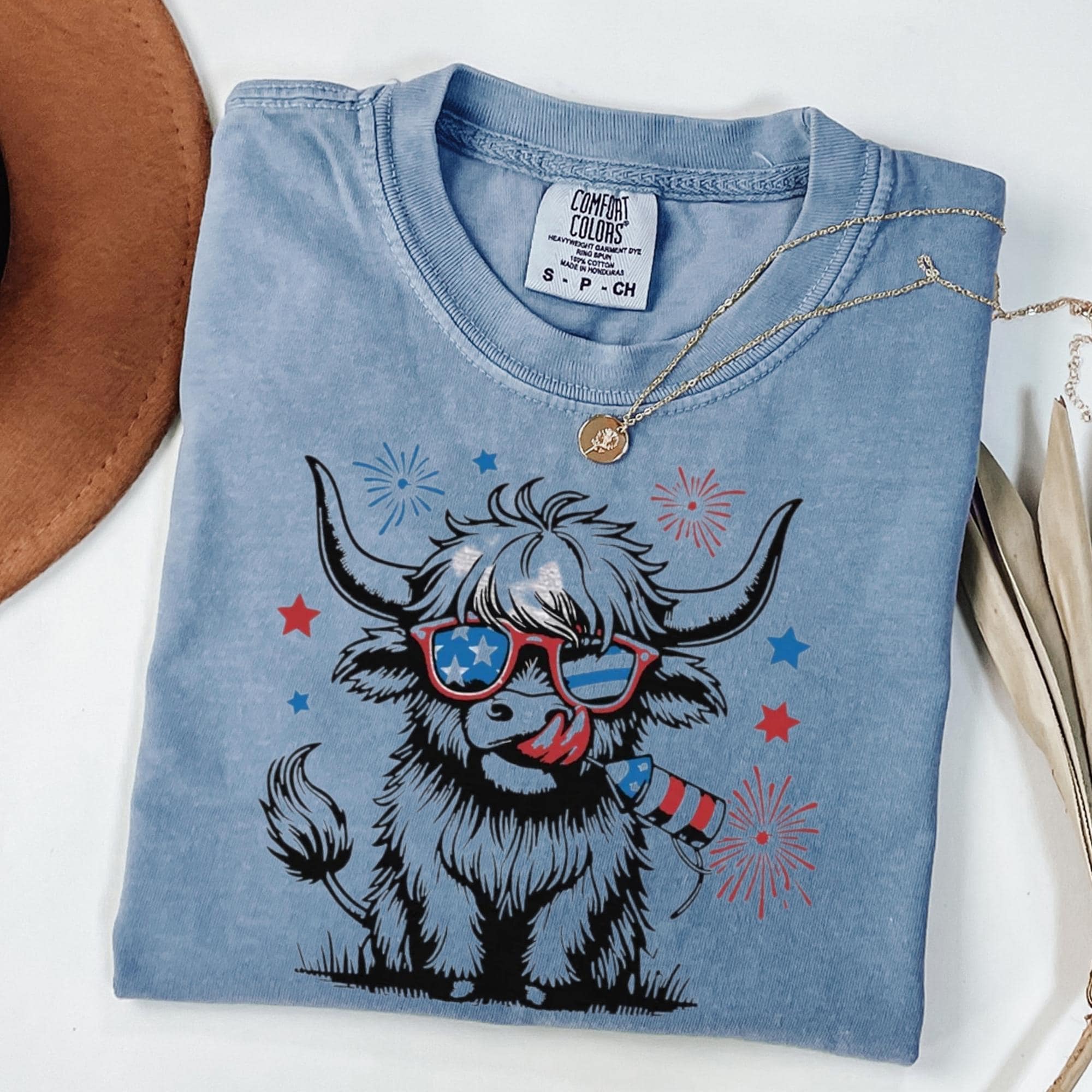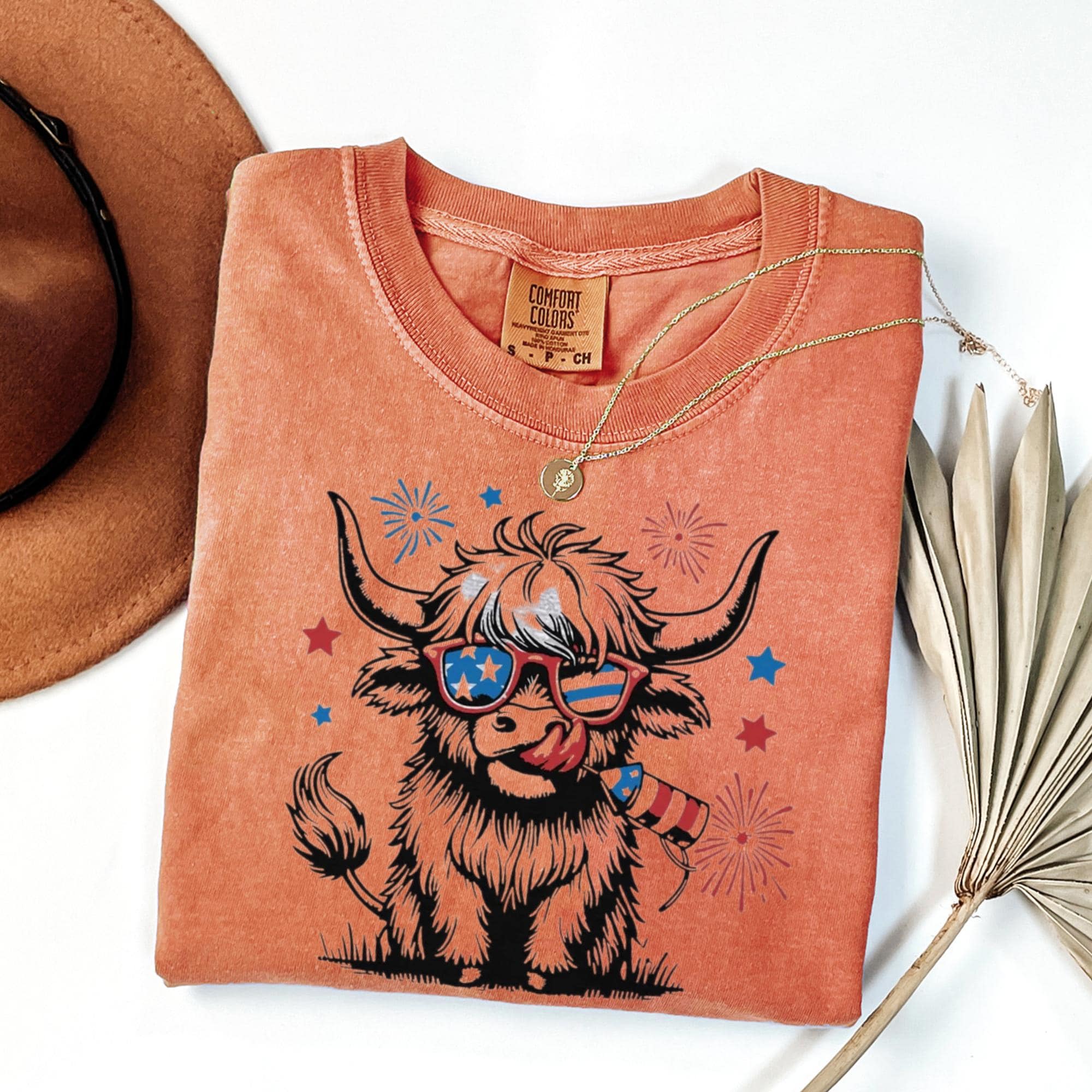 Comfort Colors 4th Of July Shirt, Fourth of July Highland Cow Shirt, America Tee, Patriotic tee, Independence Day Shirt, 4th July Cow Lovers