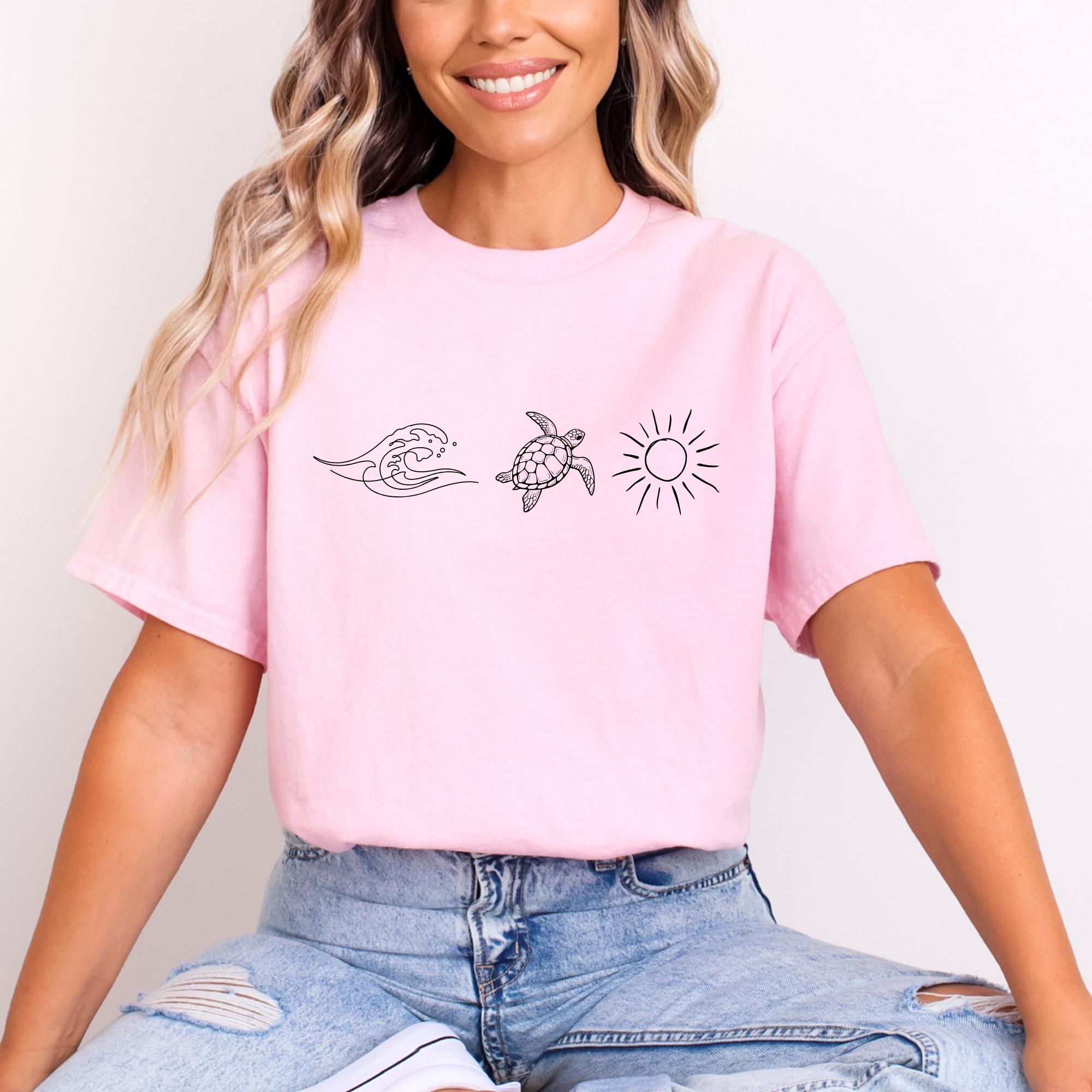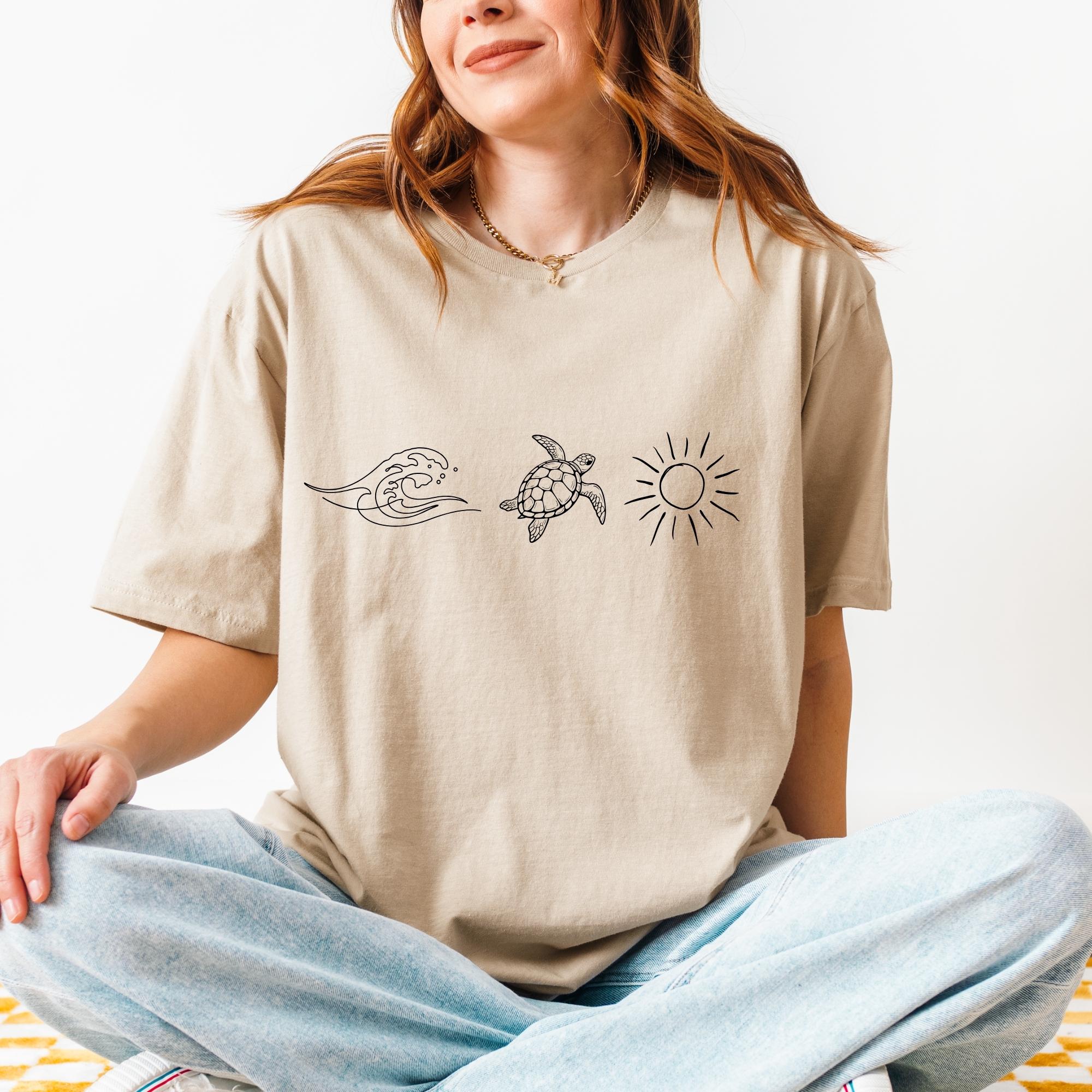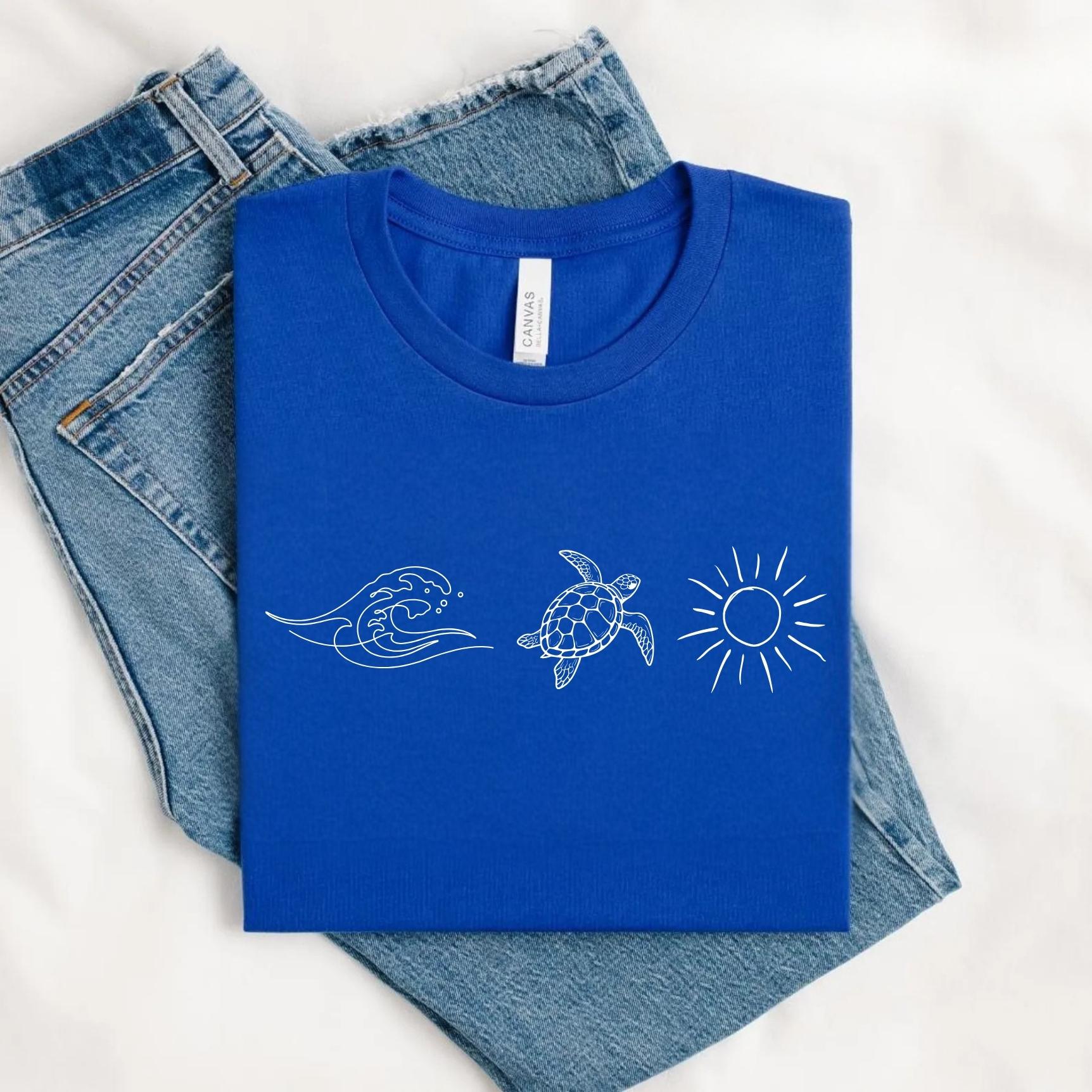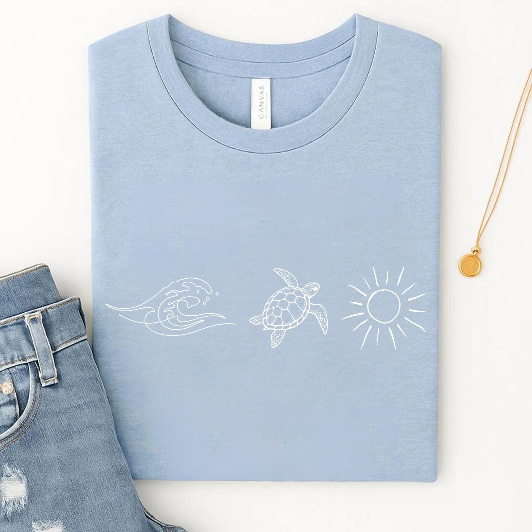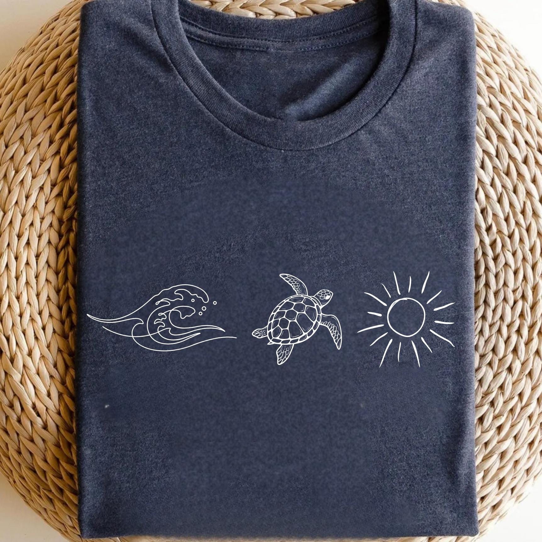Summer Shirt, Minimal Sea Turtle, Wave & Sun Shirt, Ocean Lover Aesthetic T-Shirt, Beach Shirt, Summer Vibes , Ocean Shirt