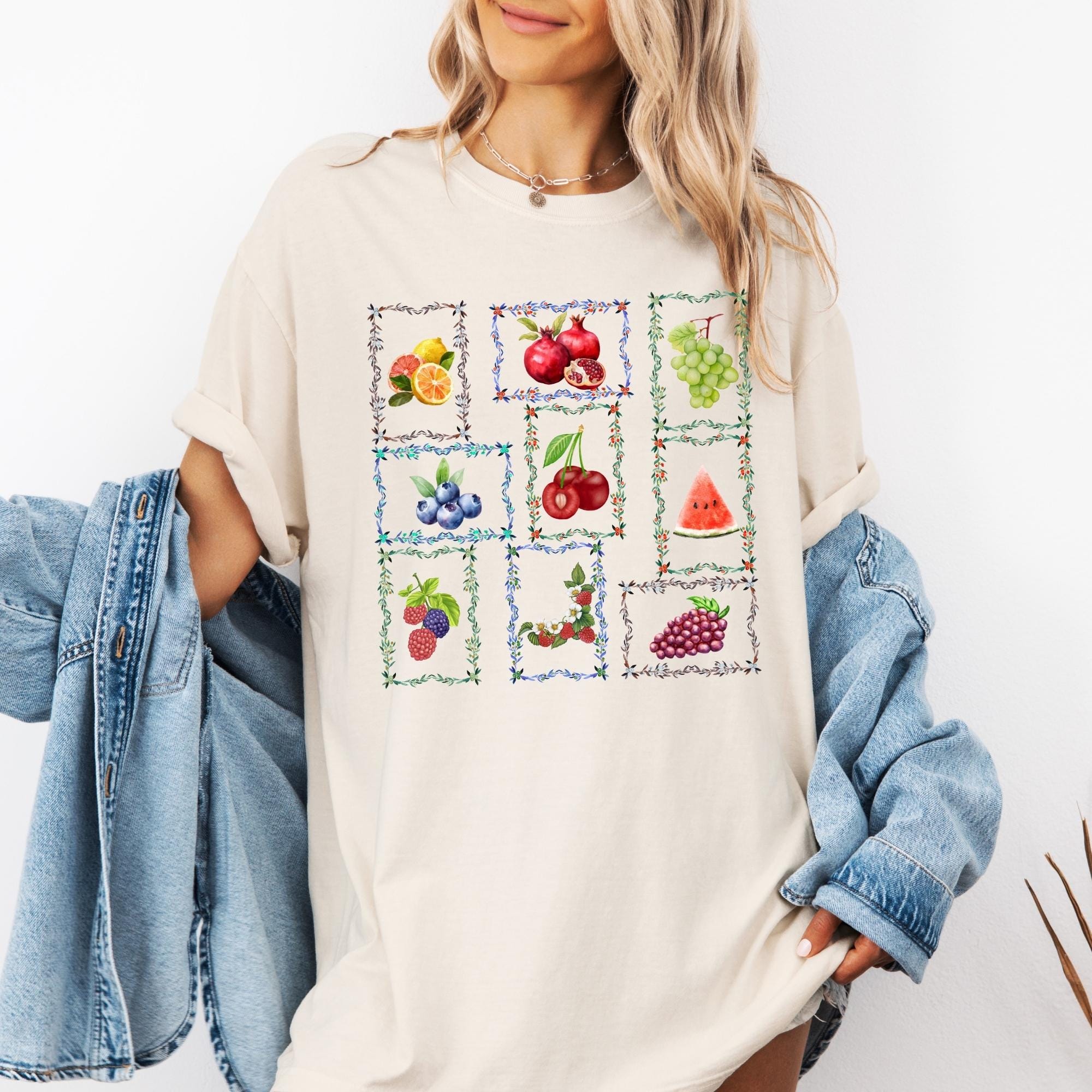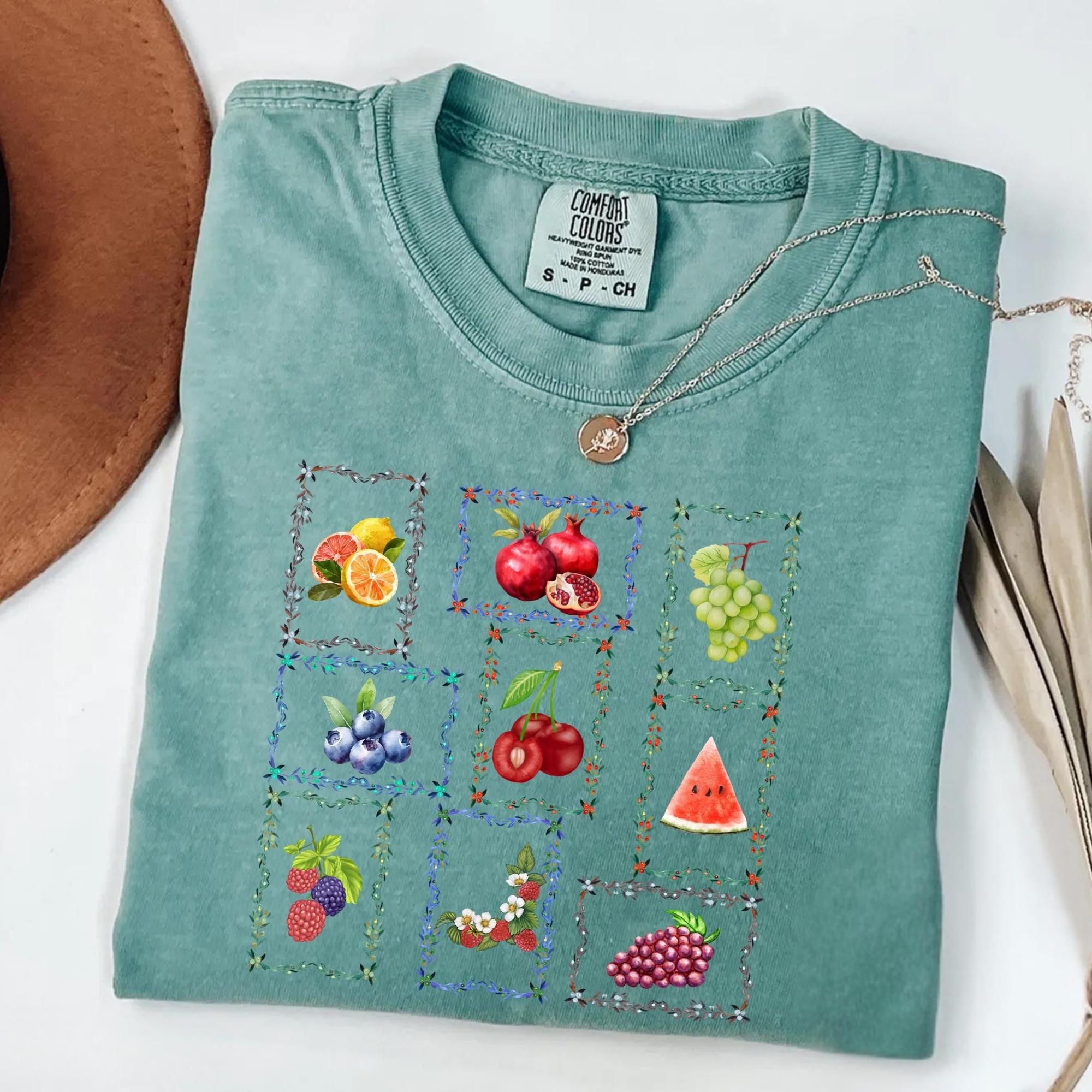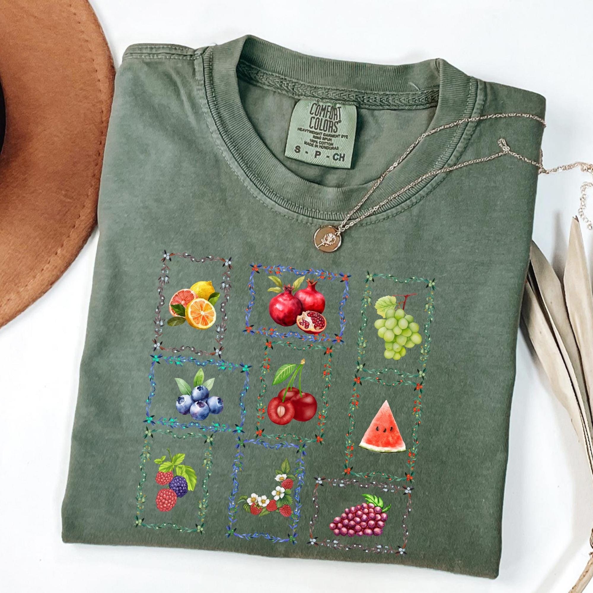 Comfort Colors Summer Fruit Stamp Tshirt, Vintage Postage Stamp Shirt, Aesthetic Summer Tee, Trendy Farmer's Market Aesthetic Cottage Core Gardening Gift