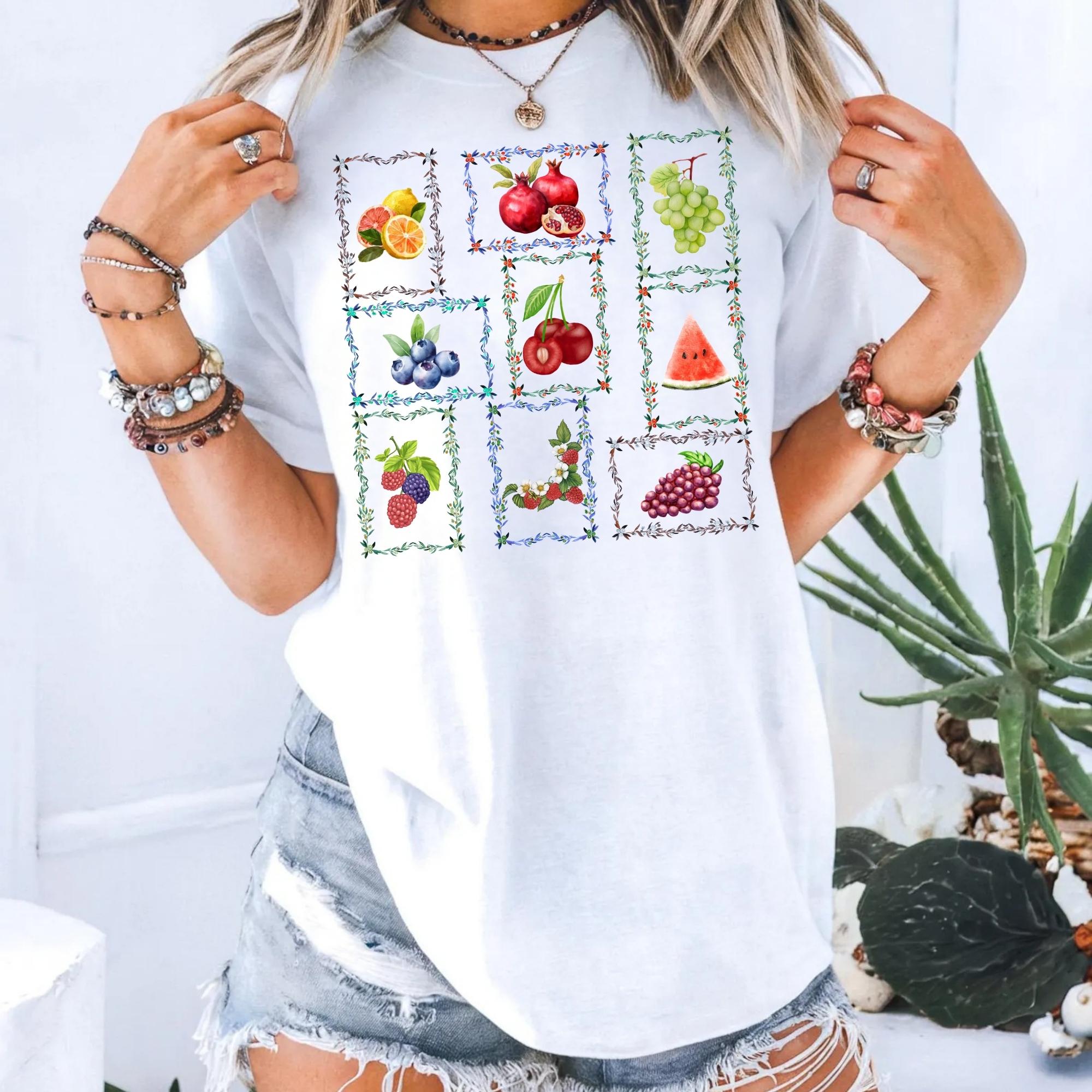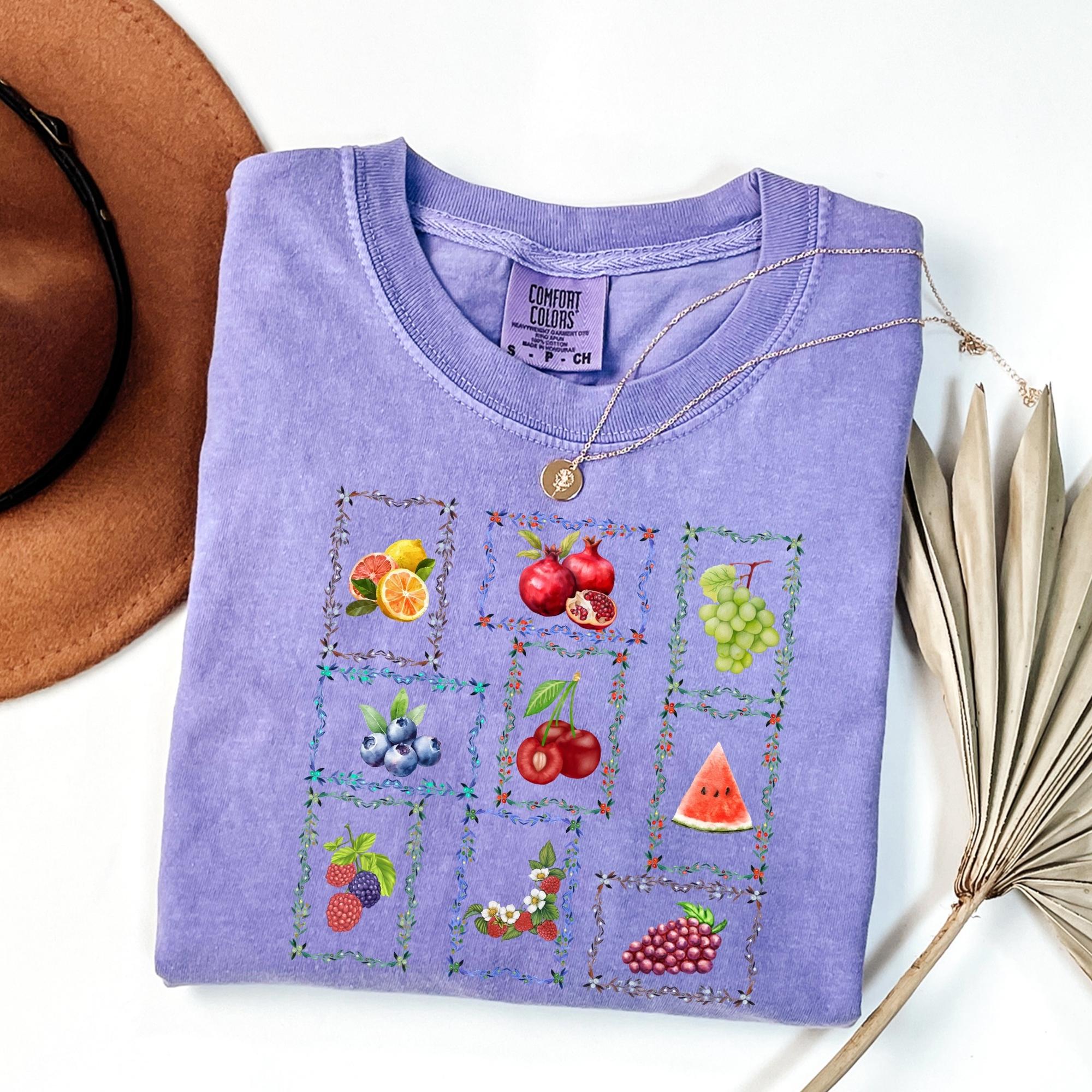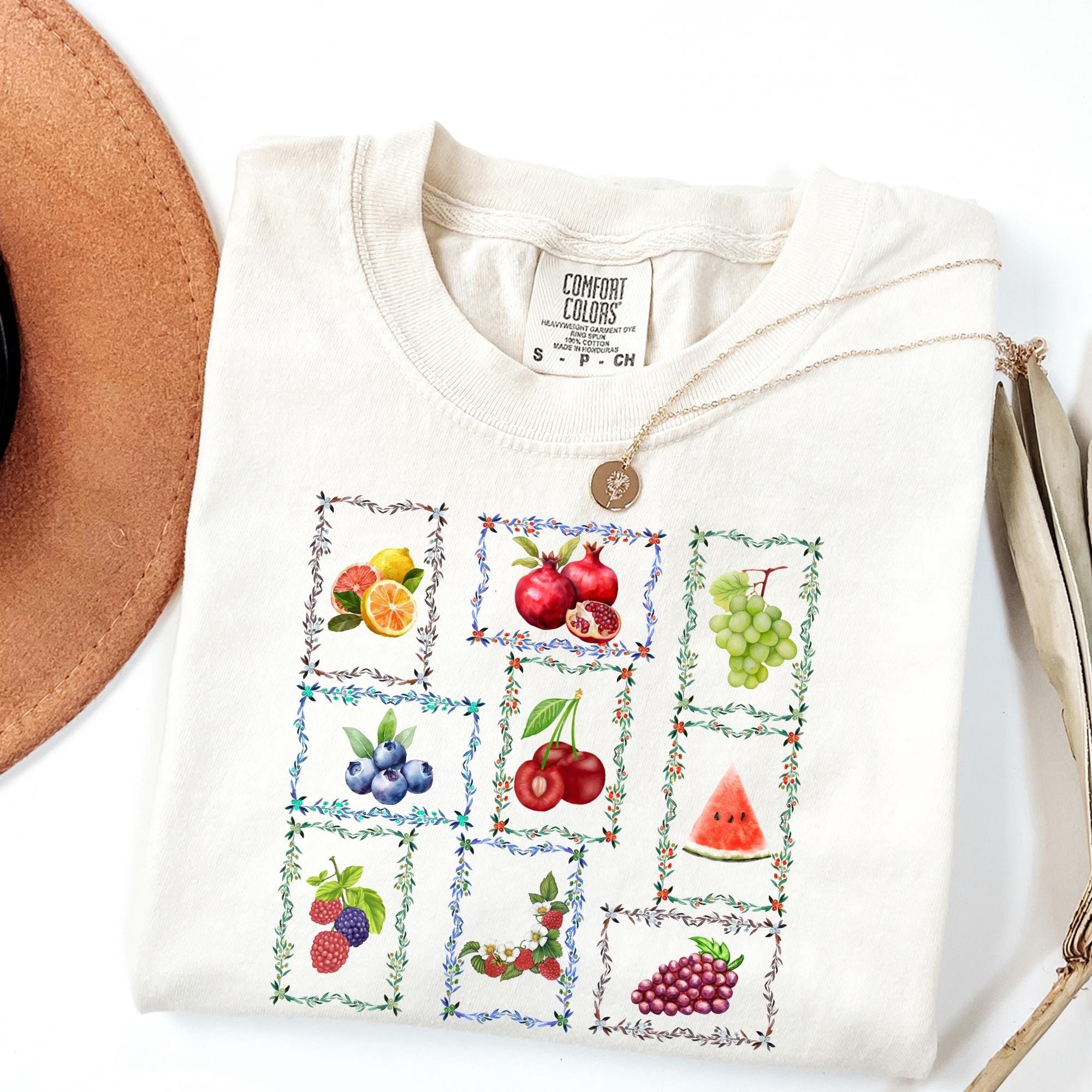 Comfort Colors Summer Fruit Stamp Tshirt, Vintage Postage Stamp Shirt, Aesthetic Summer Tee, Trendy Farmer's Market Aesthetic Cottage Core Gardening Gift