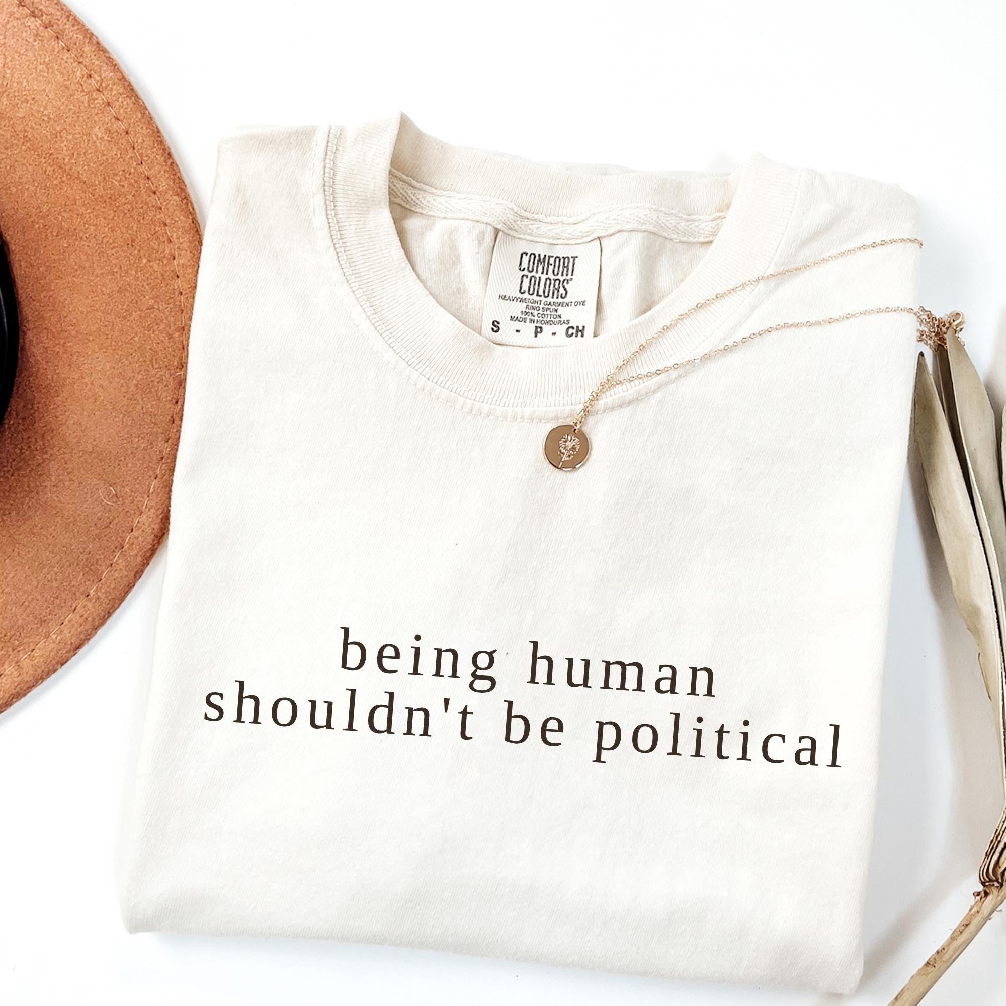 Comfort Colors Being Human Shouldn’t Be Political T-Shirt – Human Rights Graphic Tee – Anti-Hate Equality Shirt – Peace and Justice Shirt