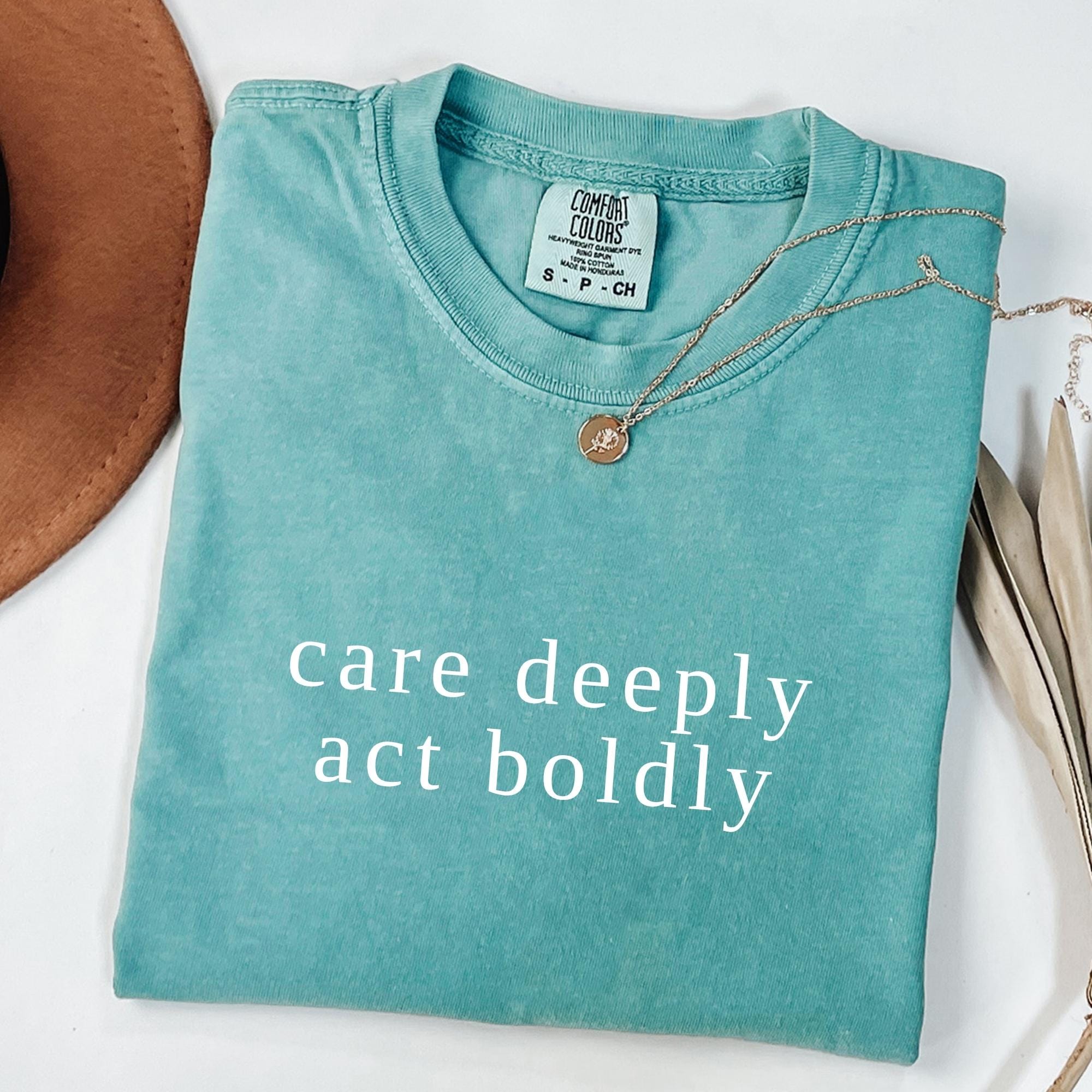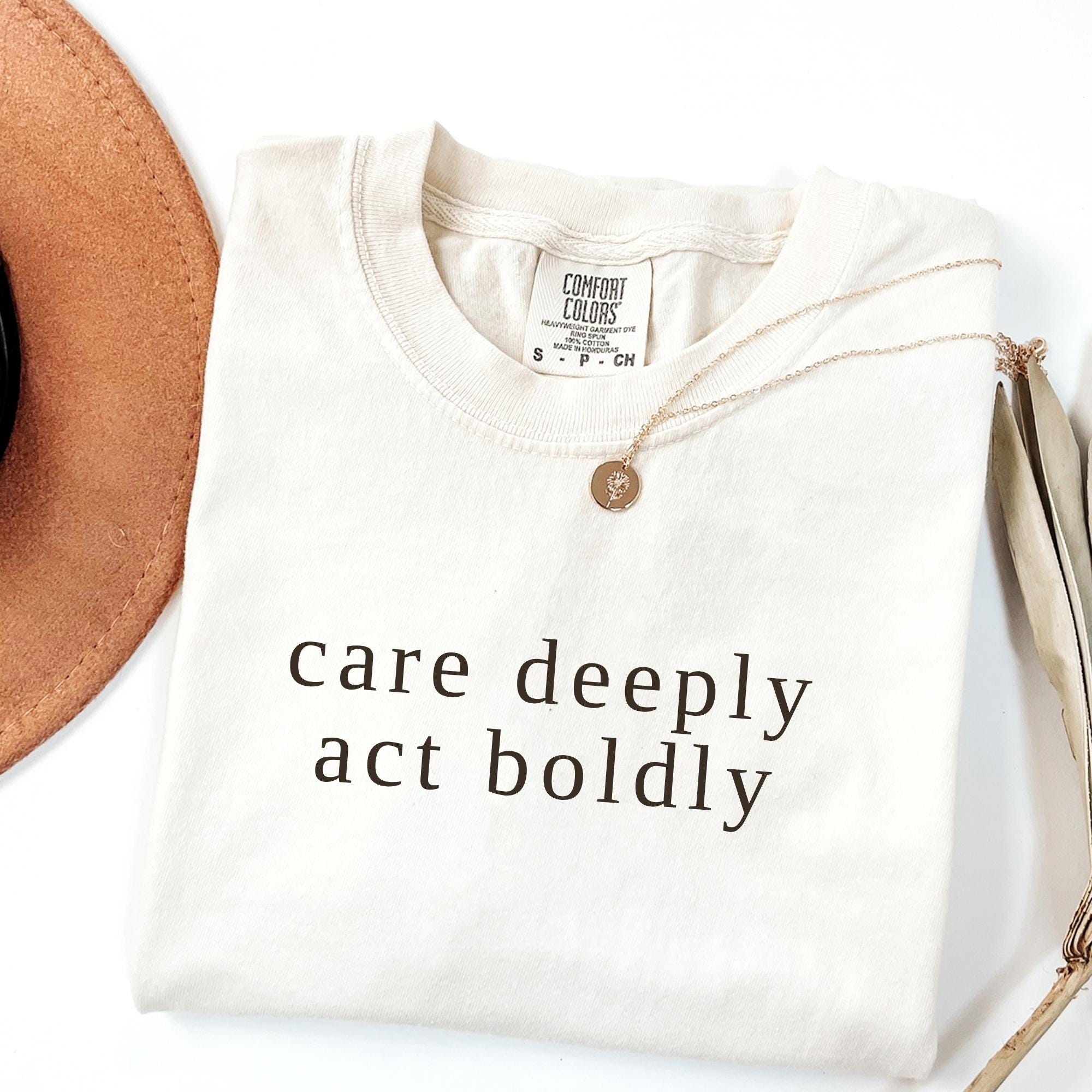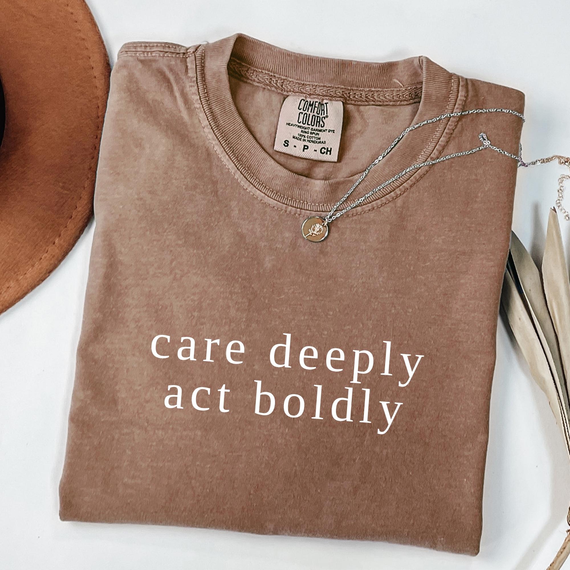Comfort Colors Care Deeply Act Boldly T-Shirt โ Motivational Activist Tee โ Courage and Compassion Shirt โ Social Awareness Graphic Tee