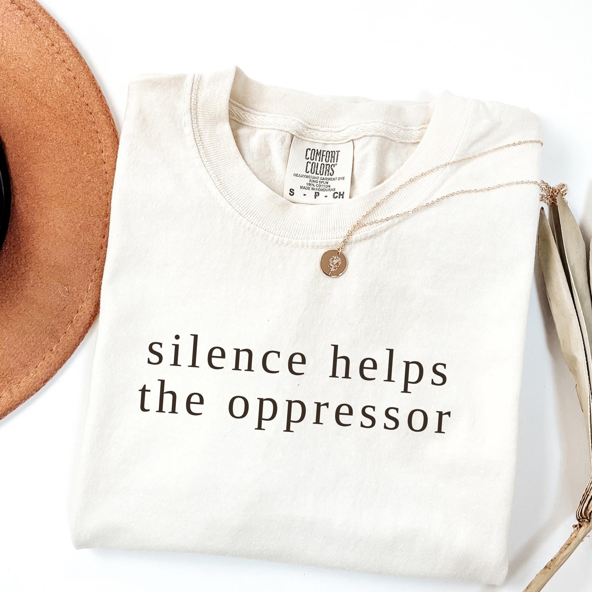 Comfort Colors Silence Helps the Oppressor Shirt โ Anti-Silence Graphic Tee โ Speak Up Message Shirt โ Social Awareness Statement T-Shirt