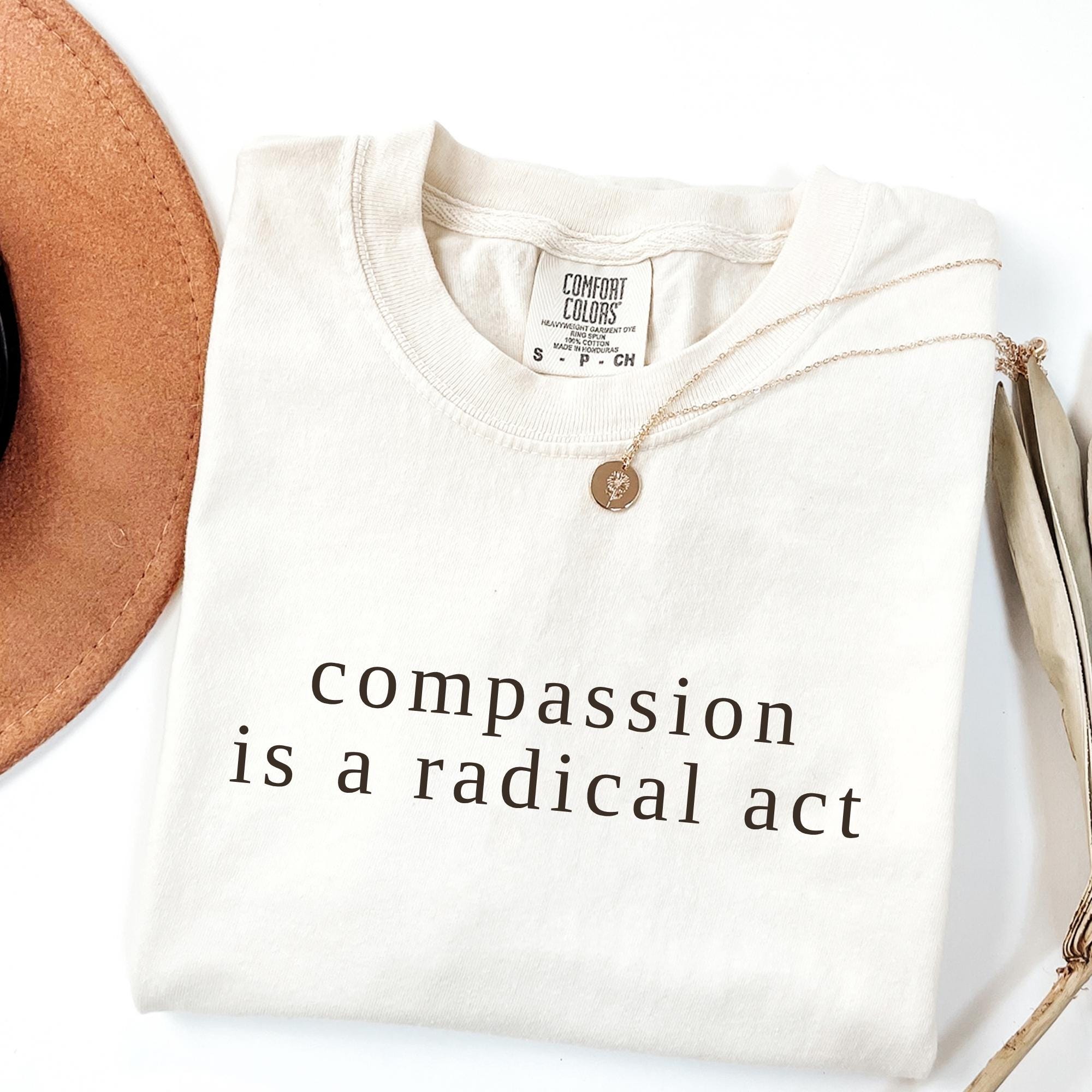 Comfort Colors Compassion Is a Radical Act Shirt โ Bold Empathy Quote Tee โ Social Change Activist Graphic โ Decency Is Strength T-Shirt