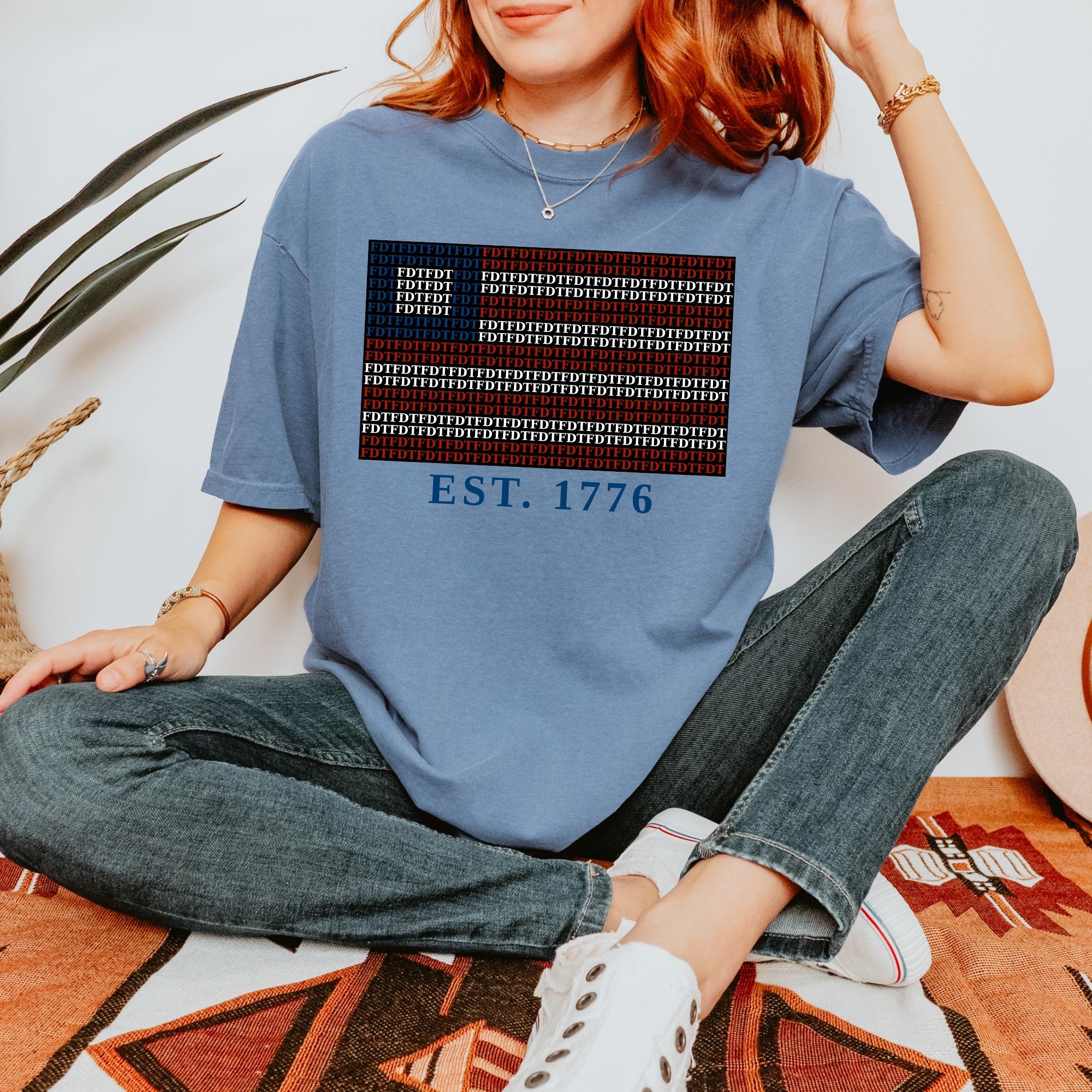 Comfort Colors FDT Shirt EST. 1776 - Anti Trump Political Tee, Patriotic Graphic Shirt, July 4th Democrat Protest Shirt, Red White Blue Liberal Tee