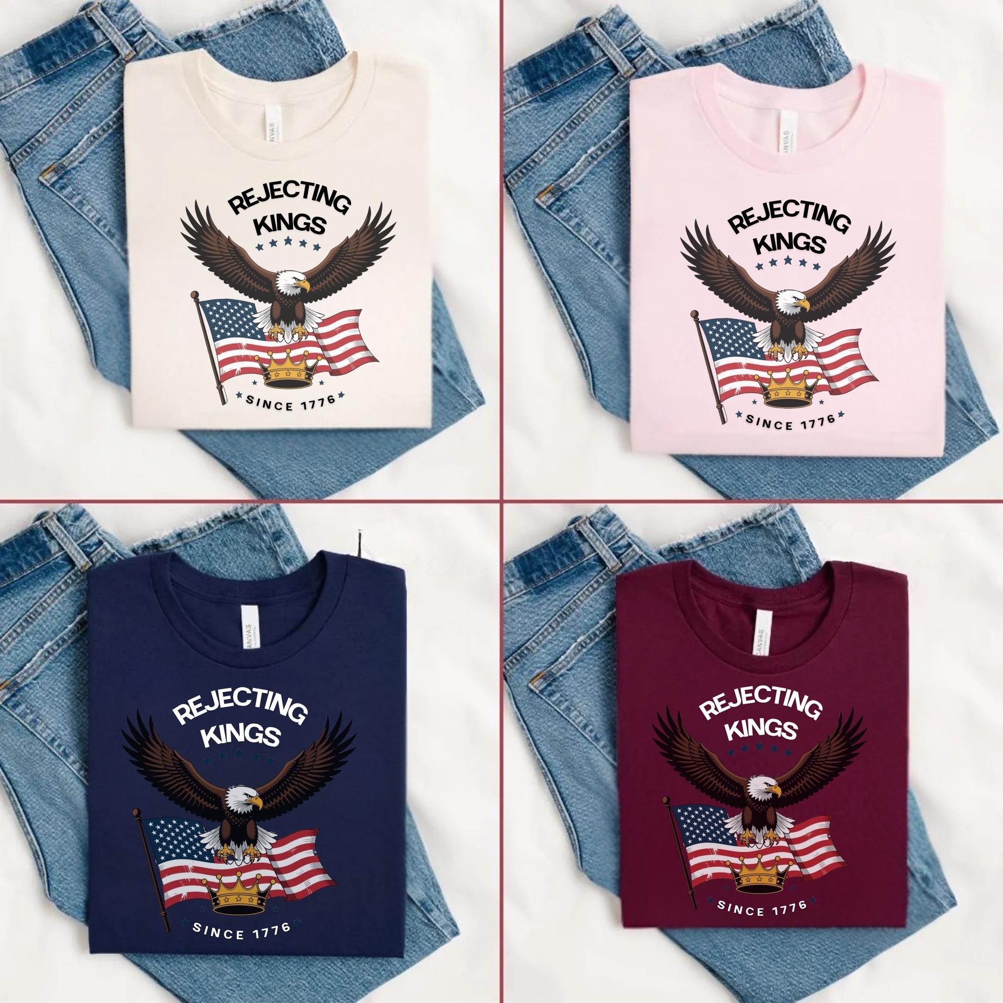 Rejecting Kings Shirt, Since 1776 Shirt, No Kings In America Shirt, Pro Democracy Shirt, Anti Authoritarian Tee, Anti Maga Anti Trump Shirt ๐ Your Everyday Go-To โ Unique Design Unisex T-Shirt and Sweatshirt