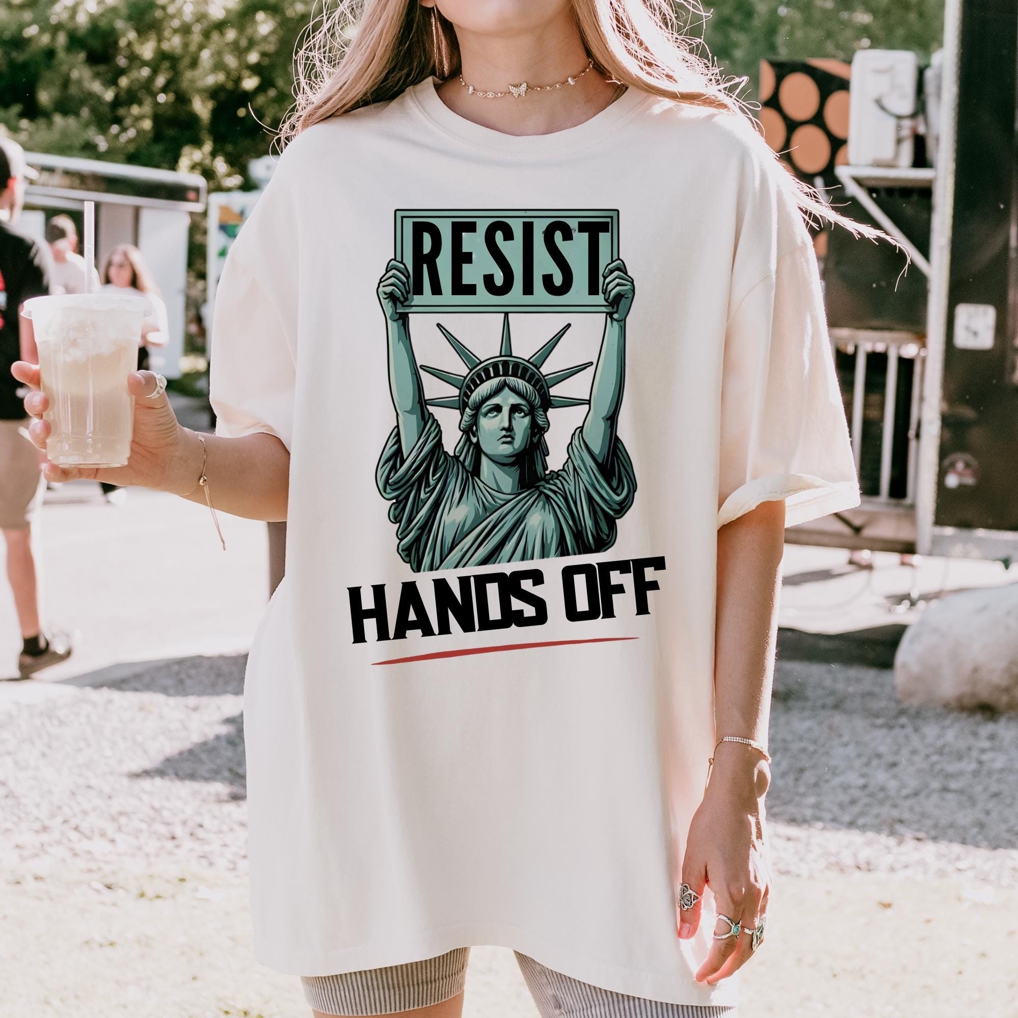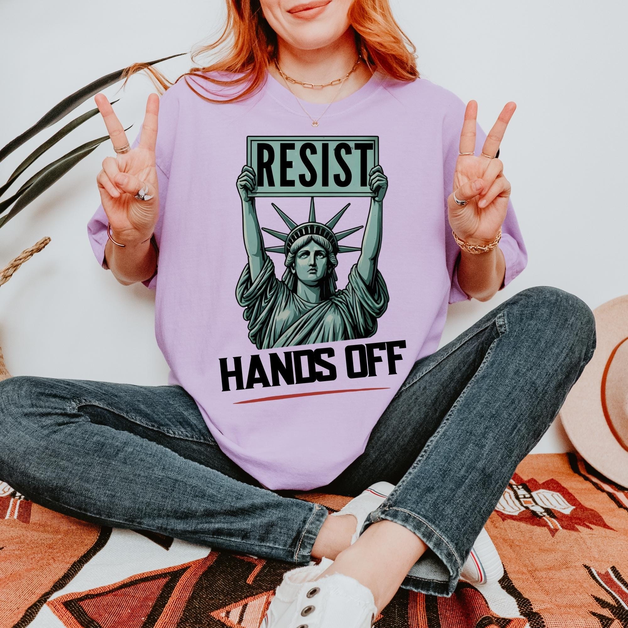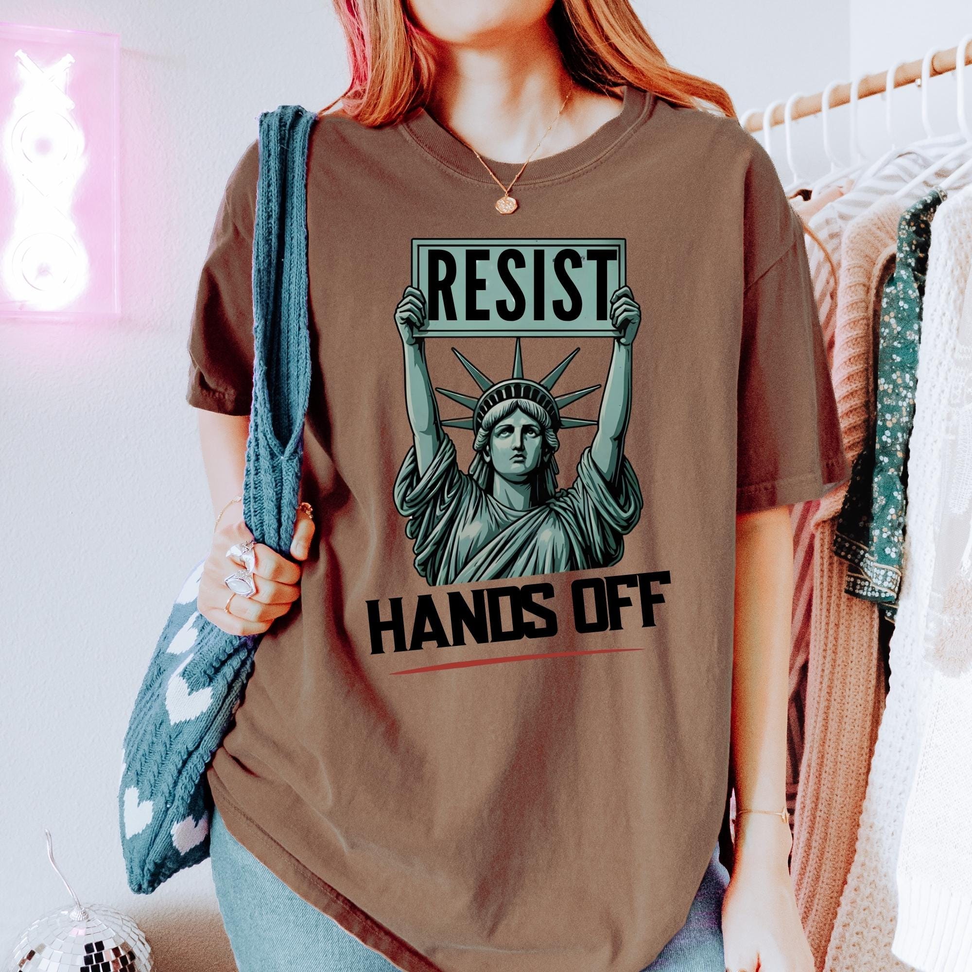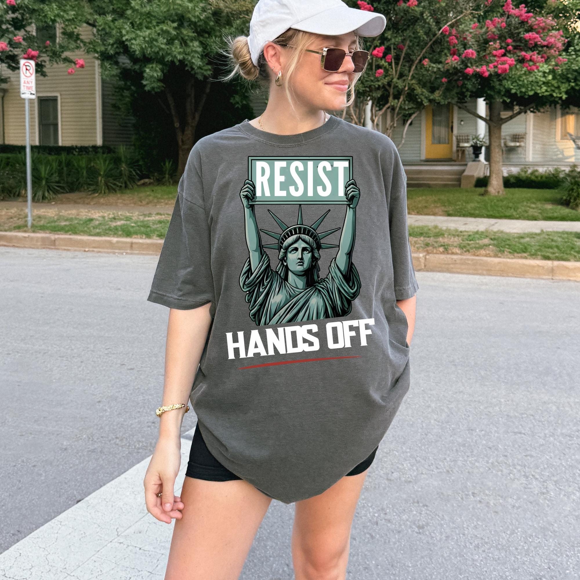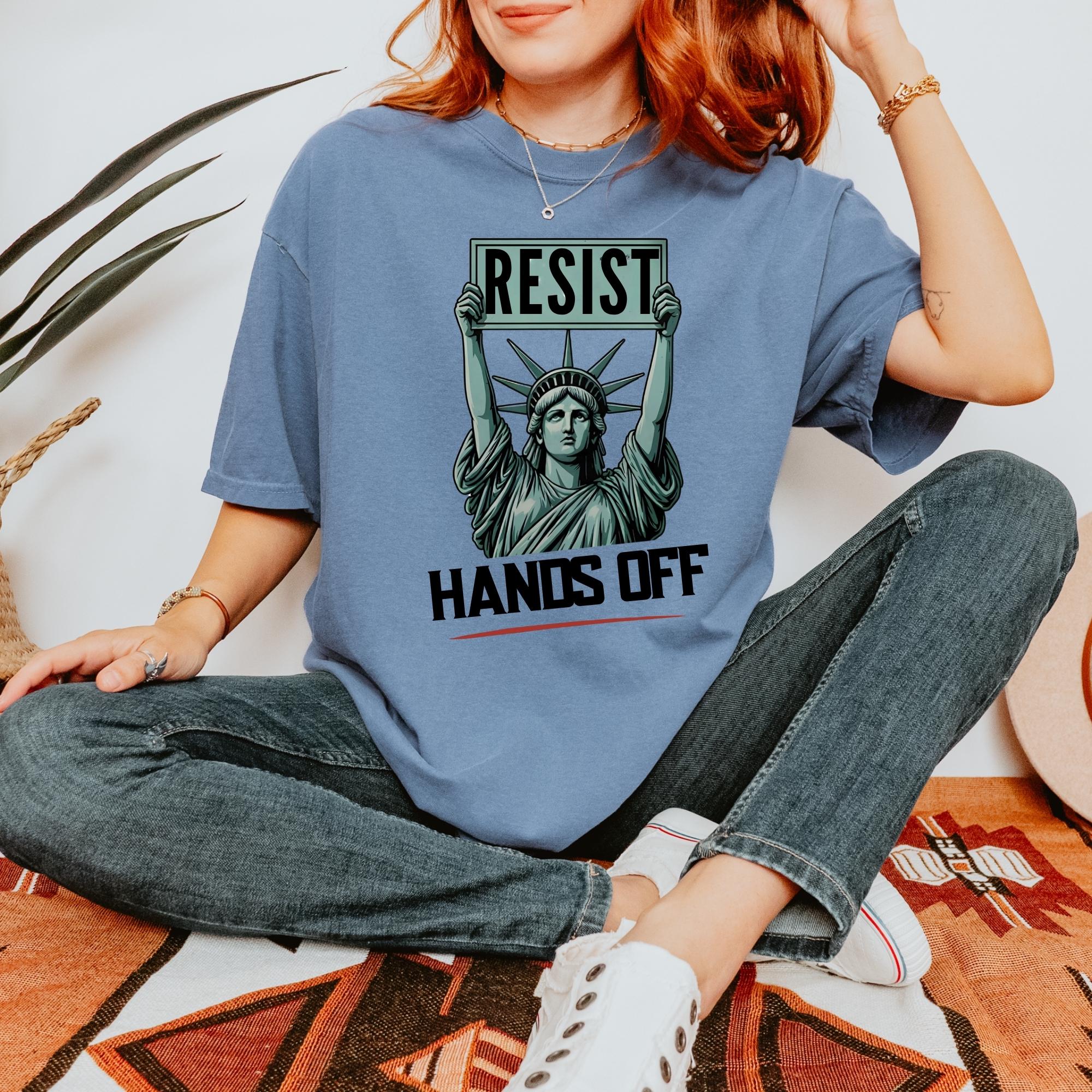 Resist Hands Off Protest Comfort Colors T-Shirt - Feminist Statue of Liberty Graphic Tee - Women’s Rights Shirt - Political Activism Gift