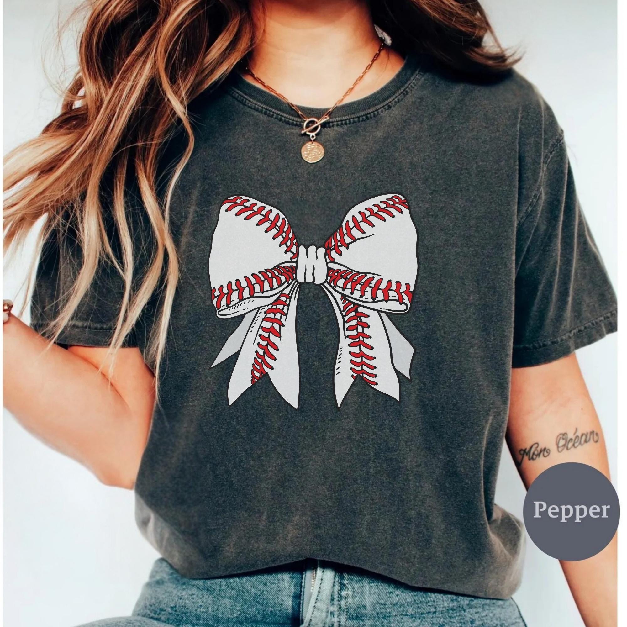 Comfort Colors Baseball Bow Shirt, Baseball Mom Game Day Tee