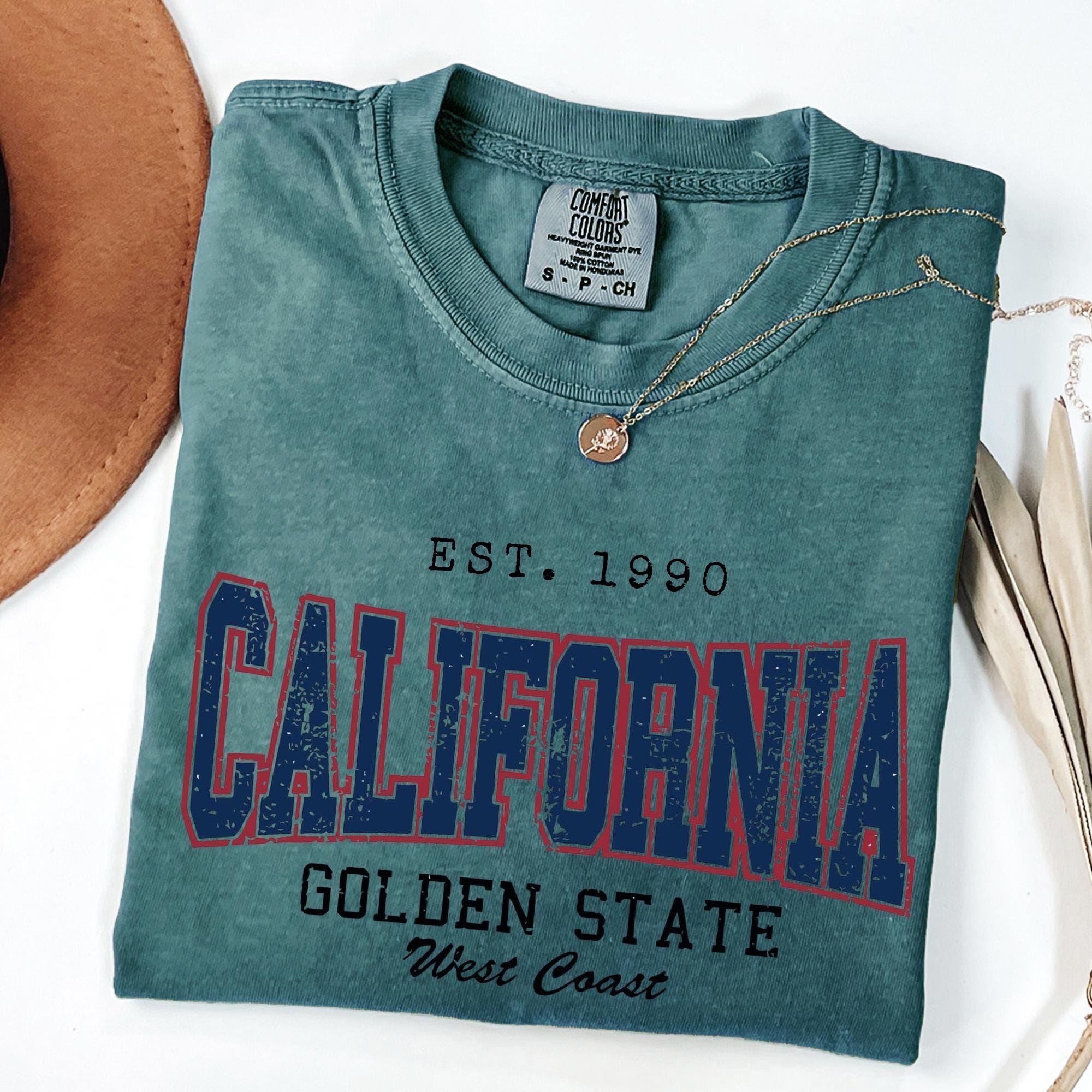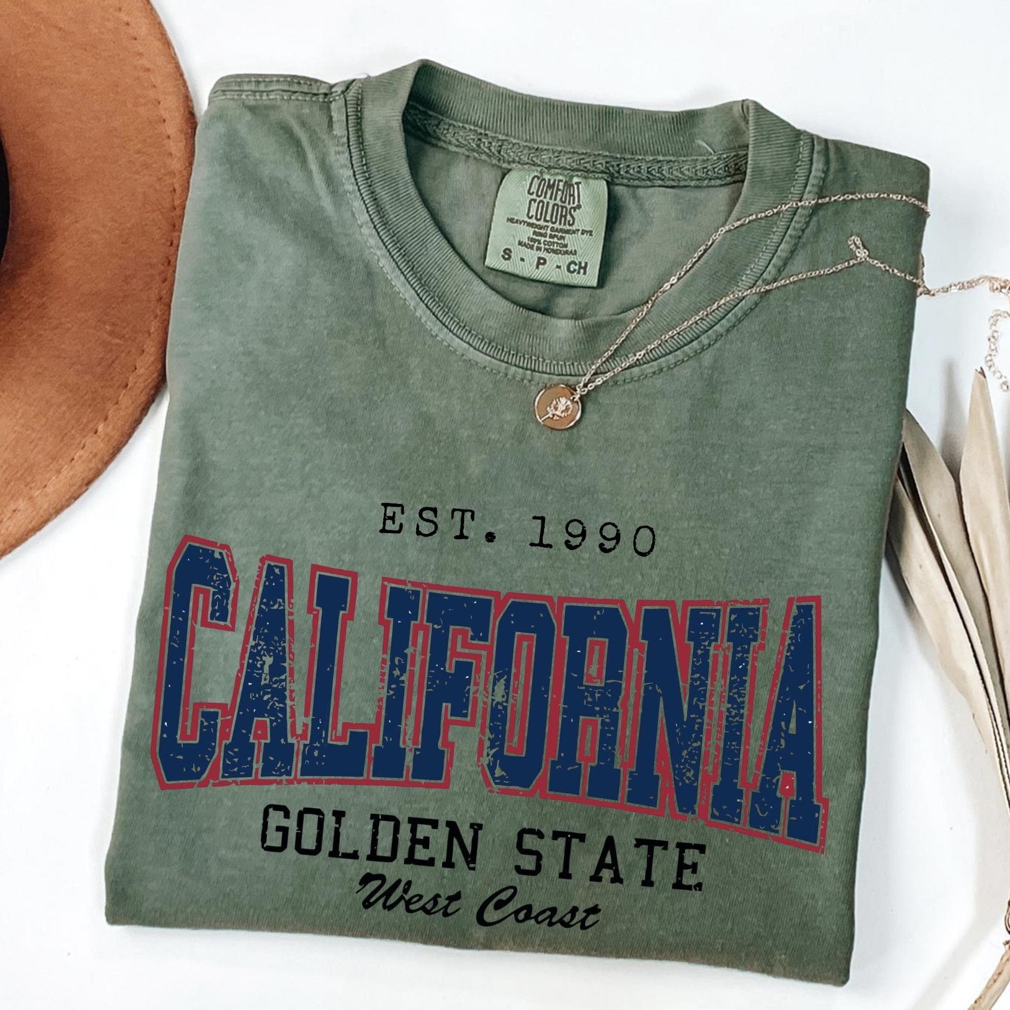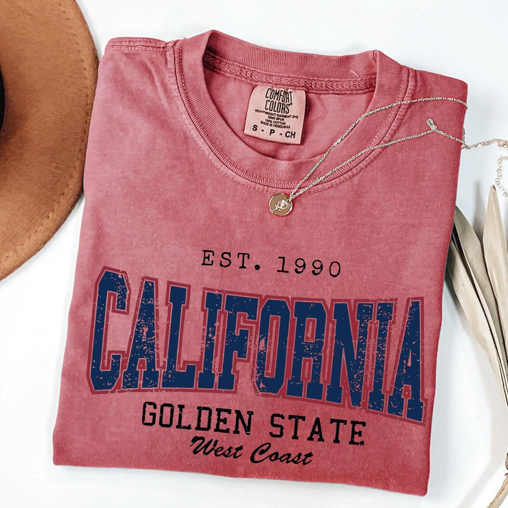 California Golden State Comfort Colors Vintage Graphic Tee โ West Coast Est. 1990 Retro T-Shirt Gift