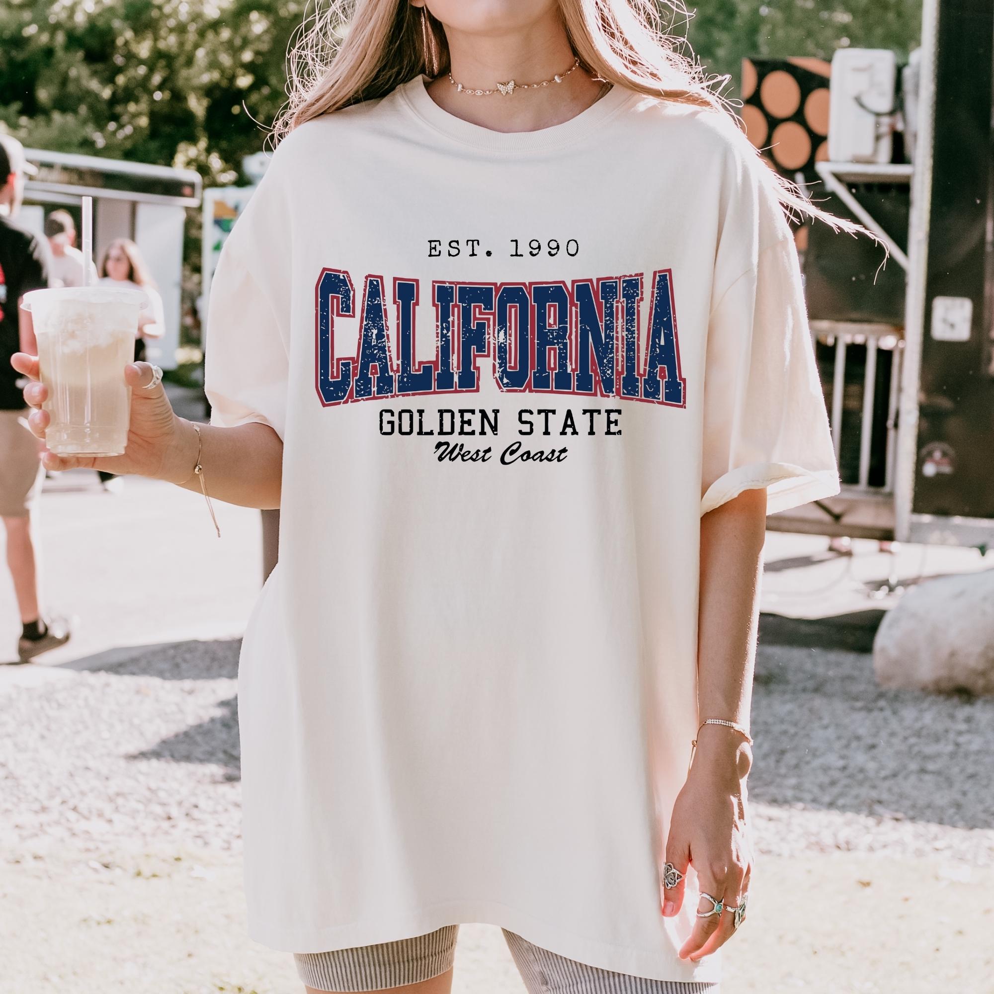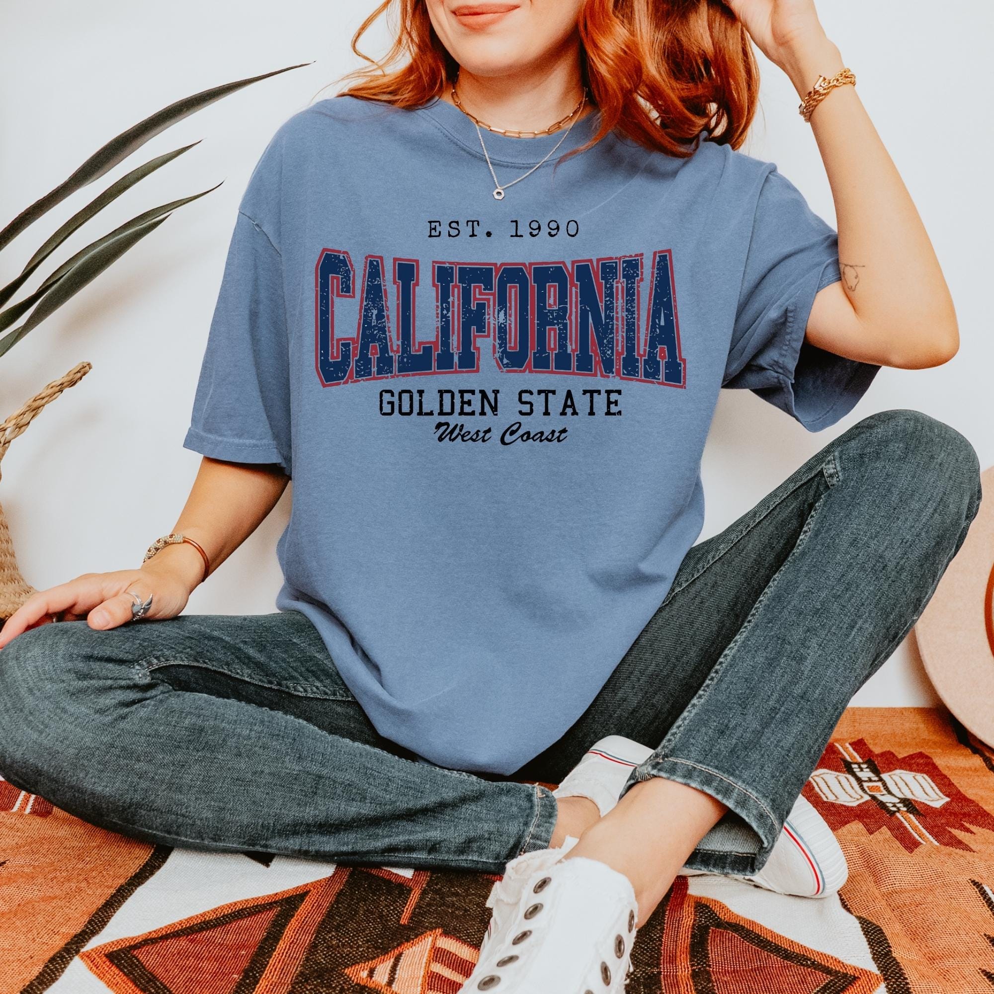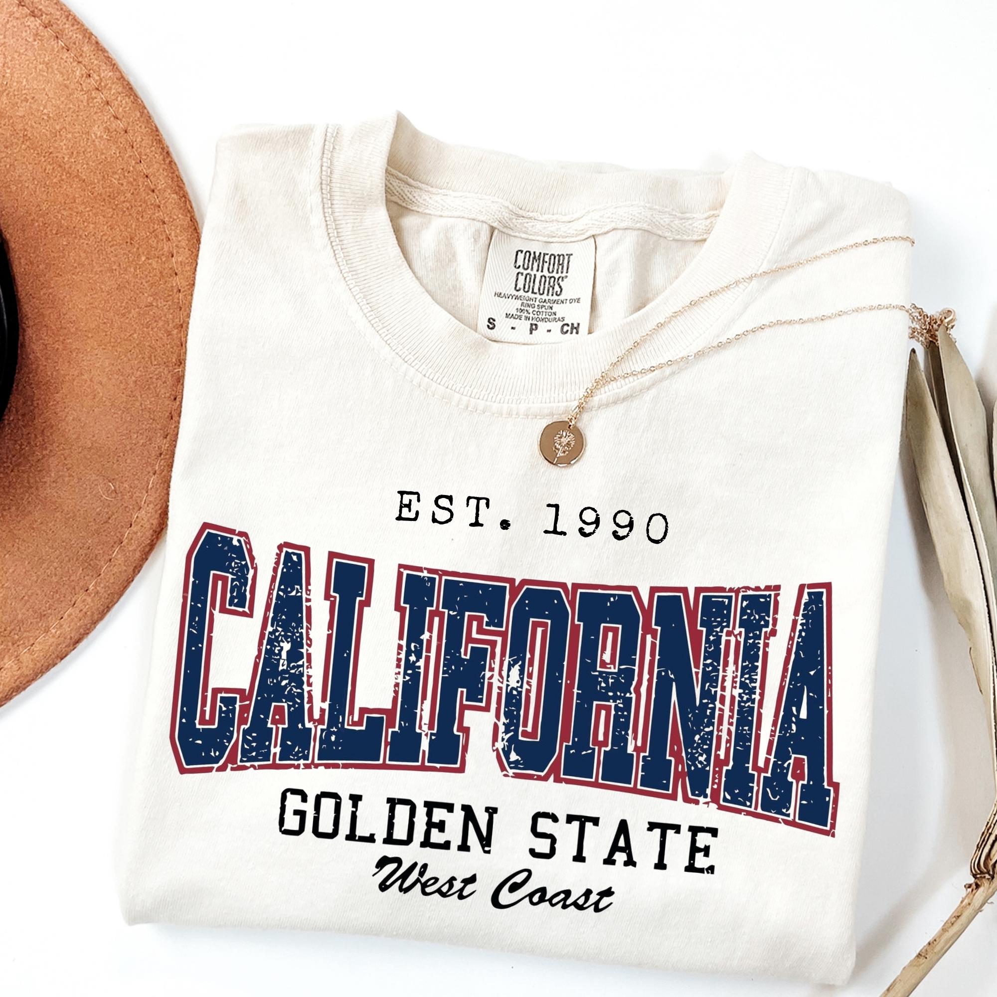 California Golden State Comfort Colors Vintage Graphic Tee โ West Coast Est. 1990 Retro T-Shirt Gift