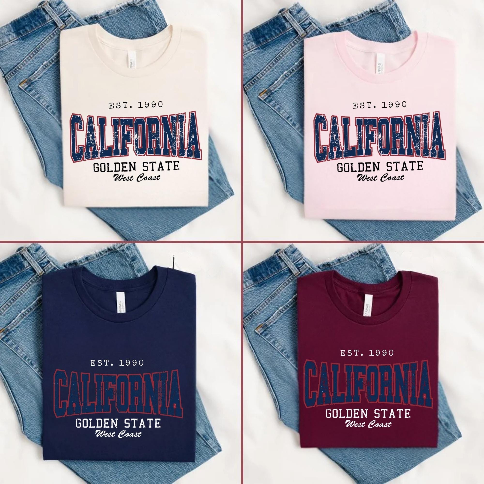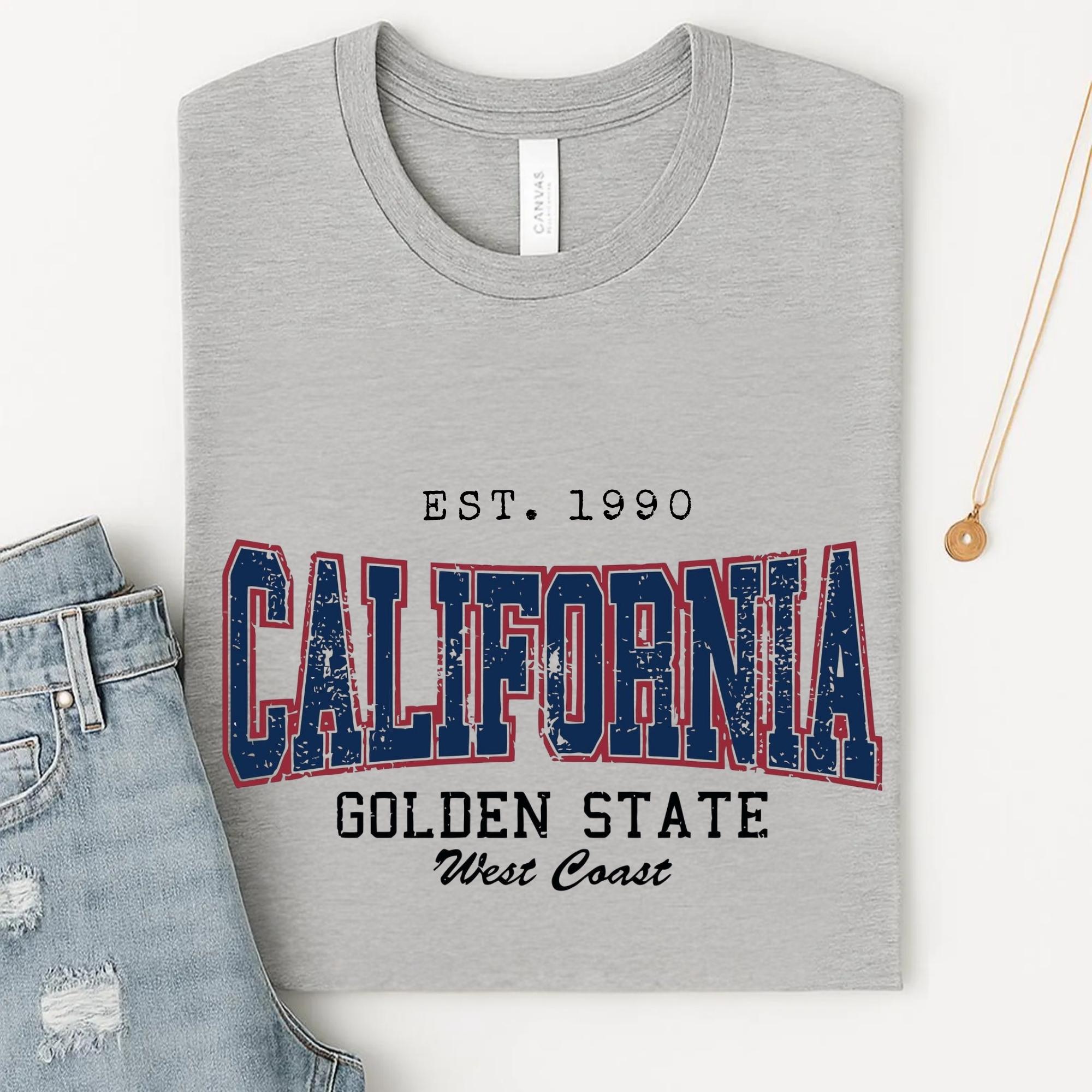 California Golden State Vintage Graphic Tee โ West Coast Est. 1990 Retro T-Shirt Gift
