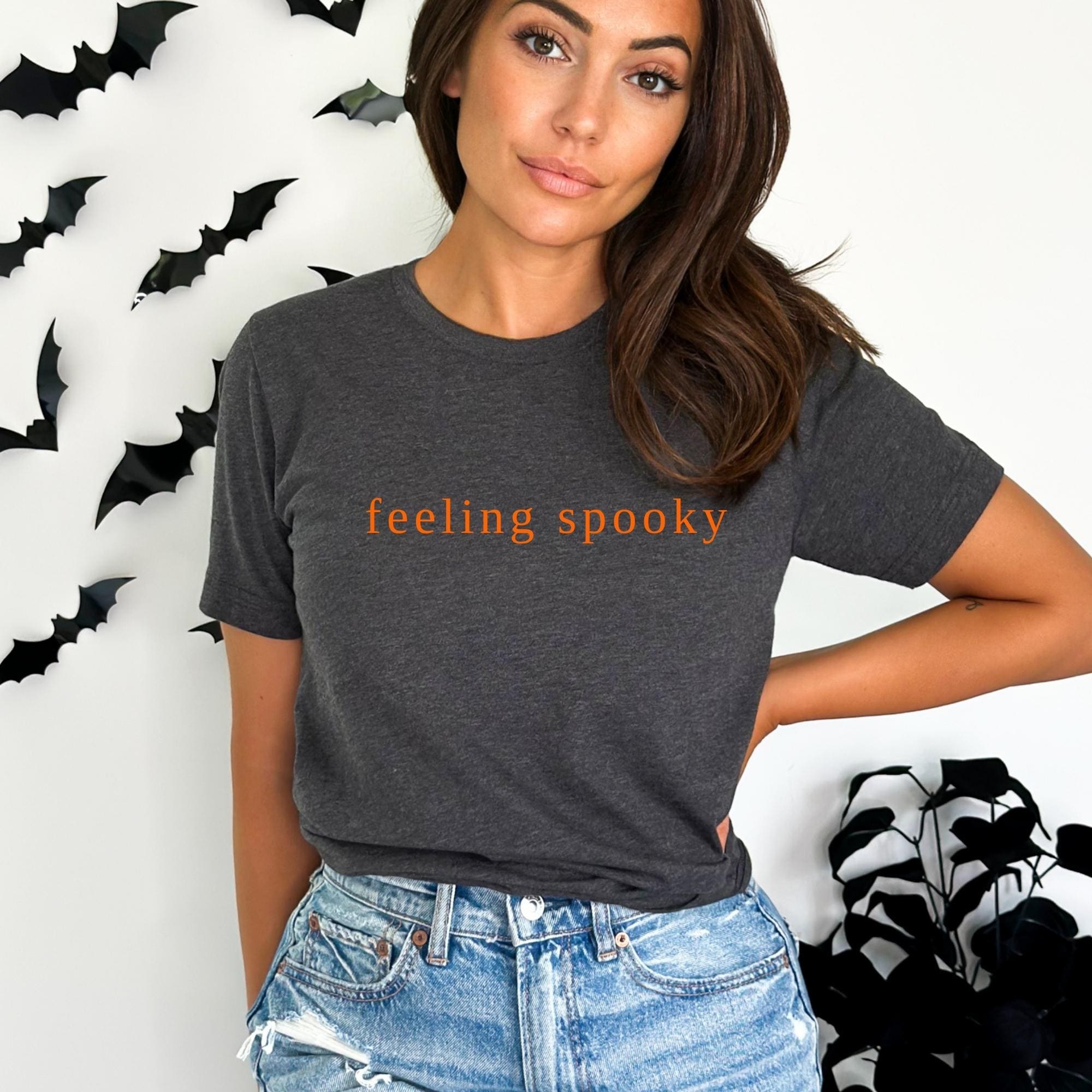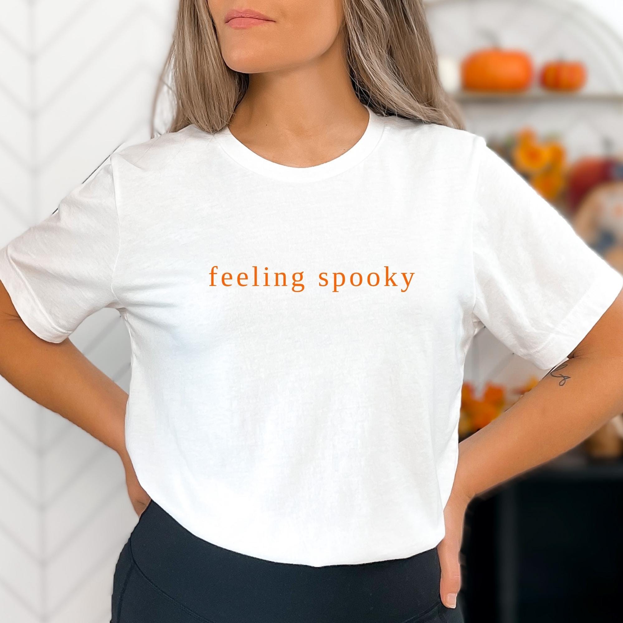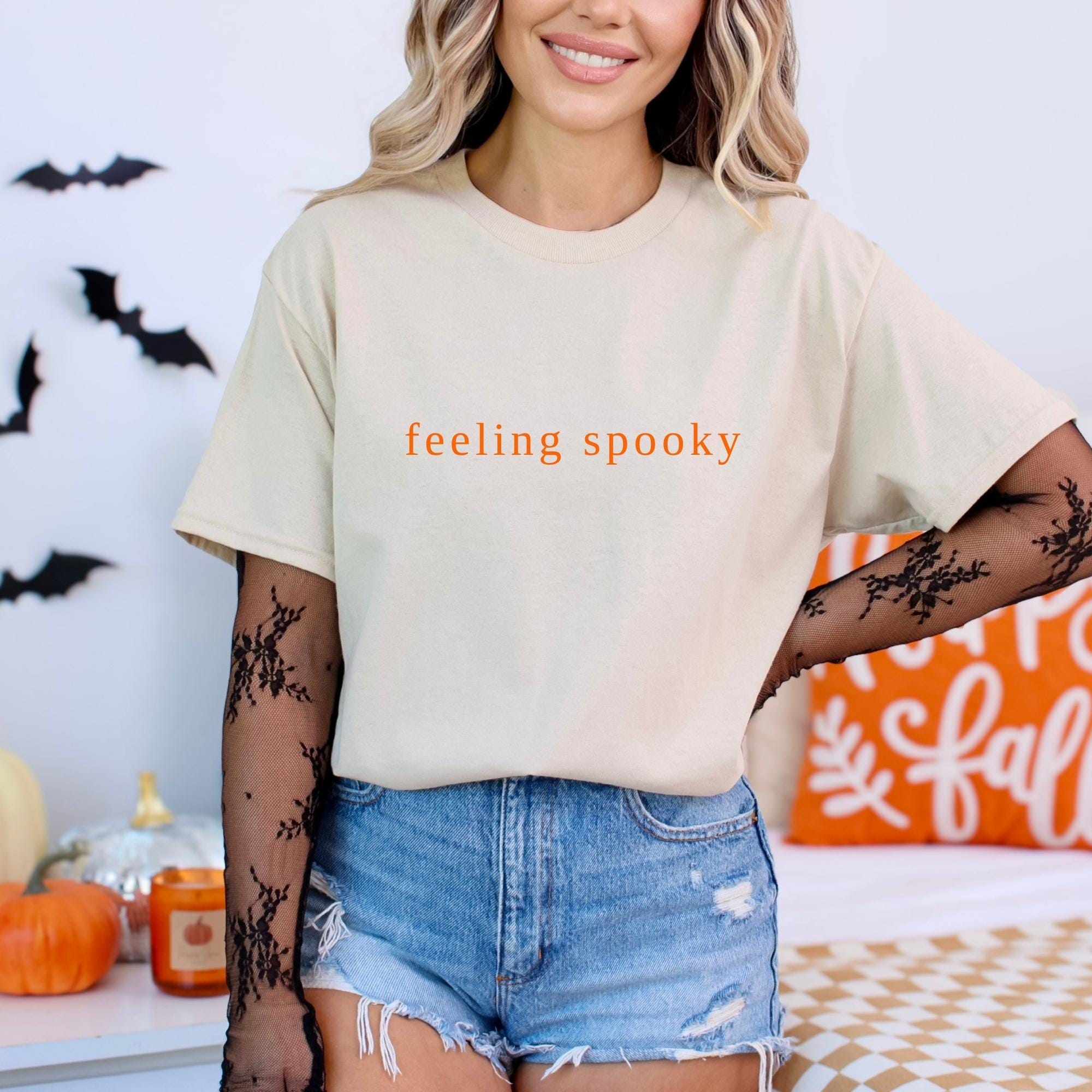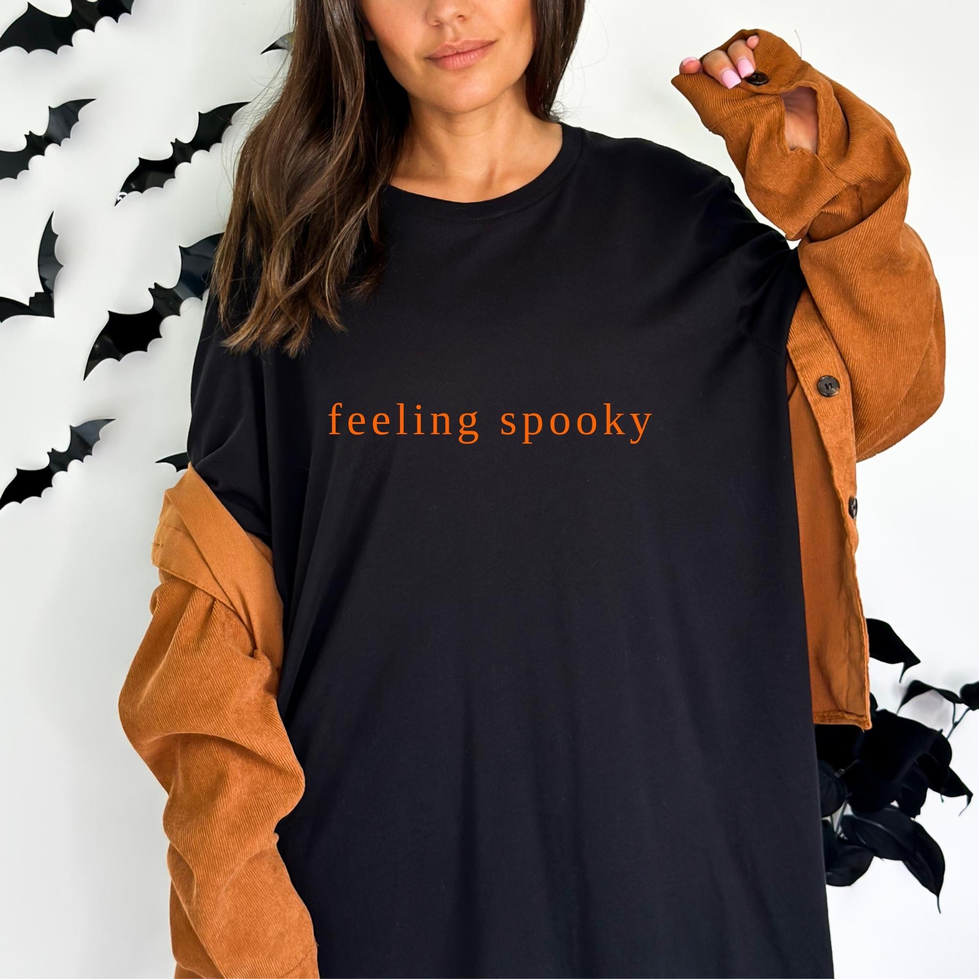 Feeling Spooky Shirt, Cute Fall Tee, Sweater Weather, Spooky Season, Salem Witch, Gift for her, Minimalistic, Hallowen Shirt ๐ Your Everyday Go-To โ Unique Design Unisex T-Shirt and Sweatshirt