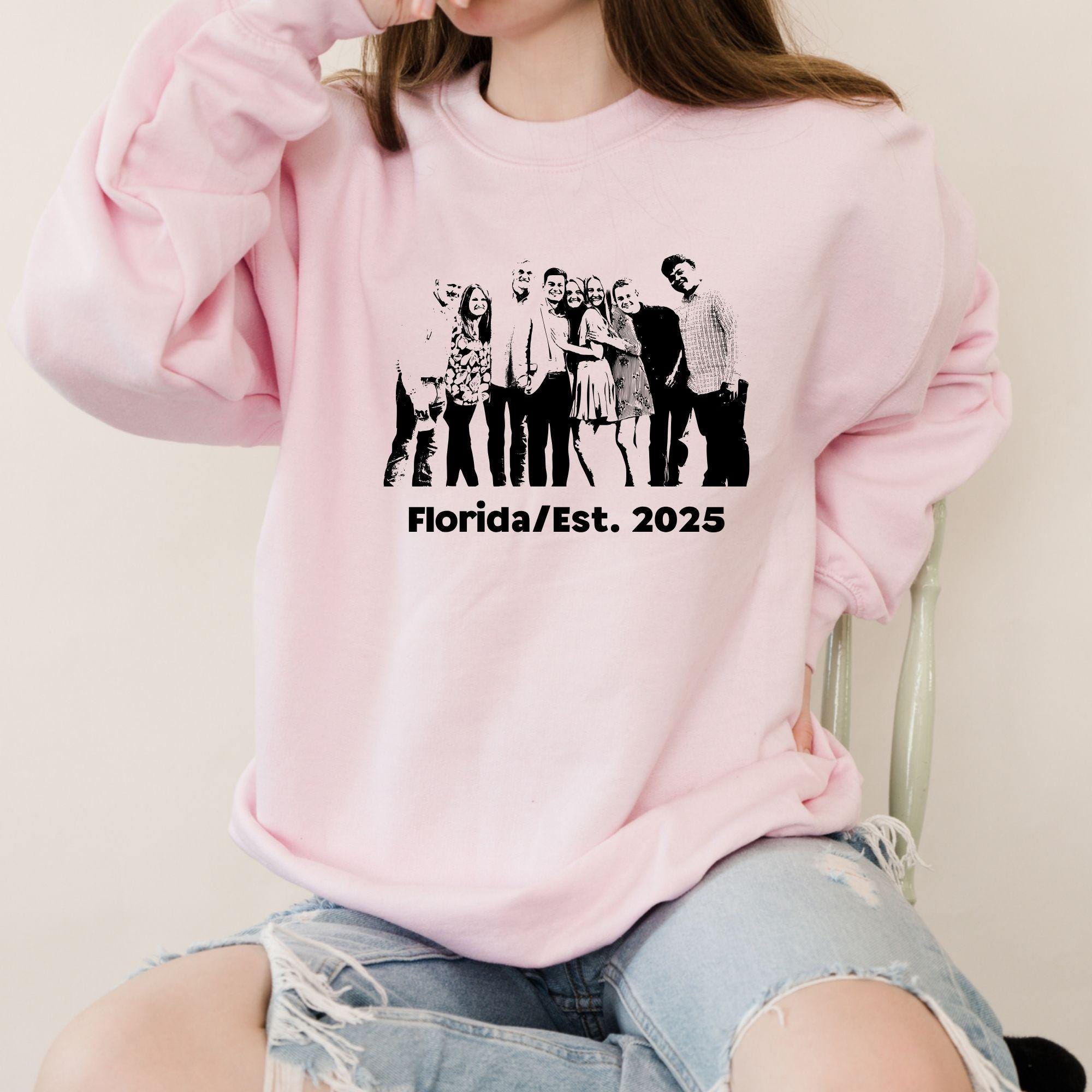Custom Family Silhouette Sweatshirt โ Personalized Group Photo Line Art โ Matching Family Gift Sweatshirt for Reunion or Holiday