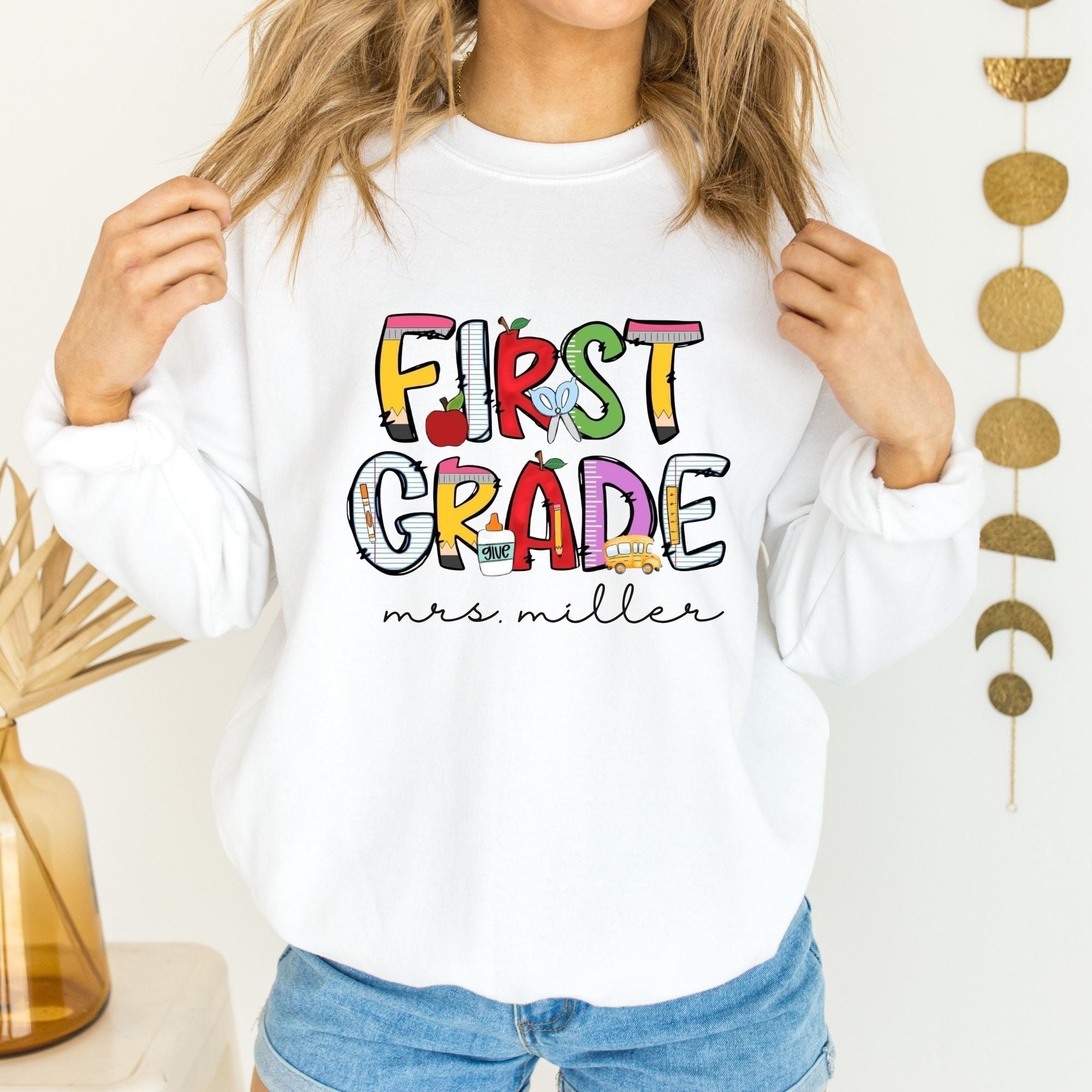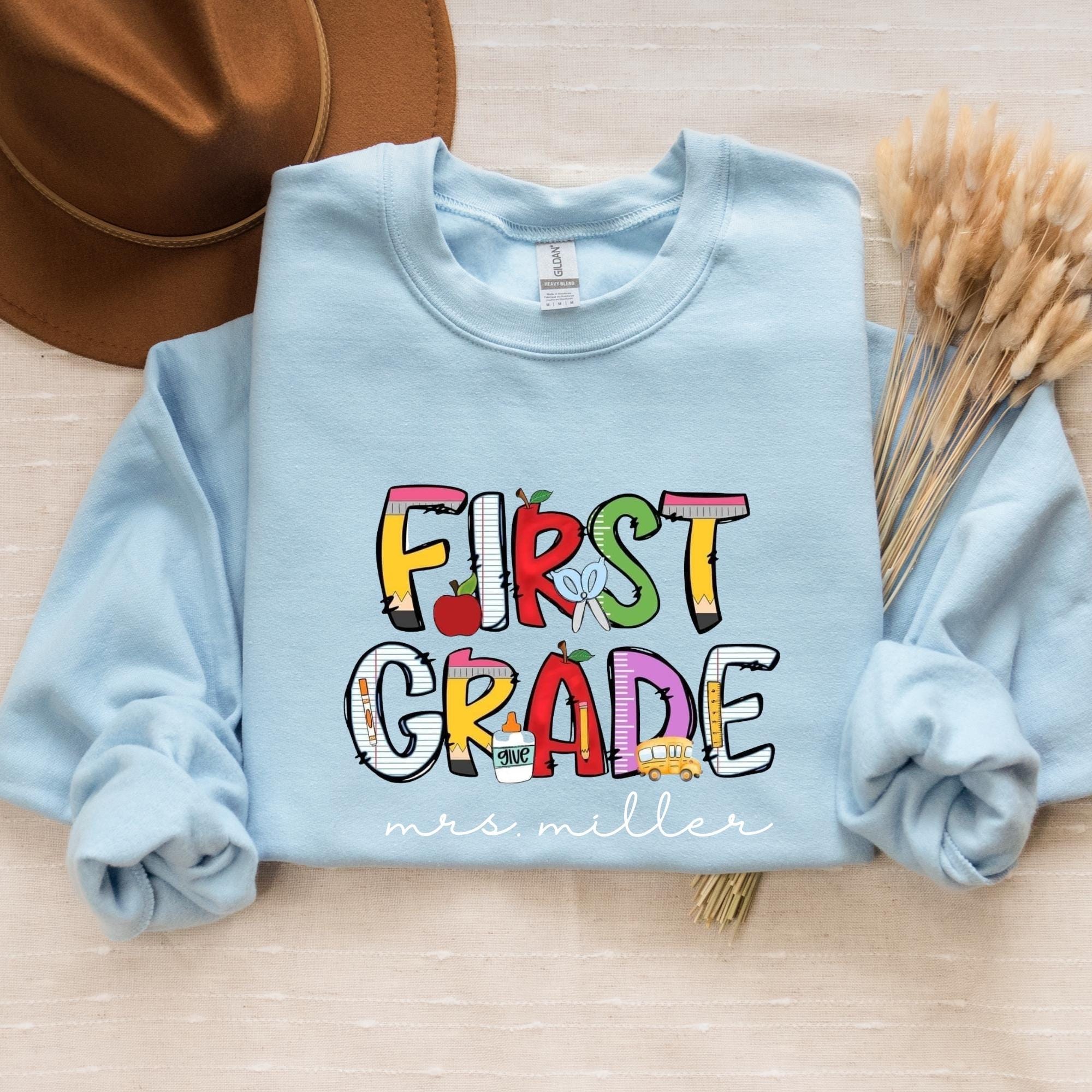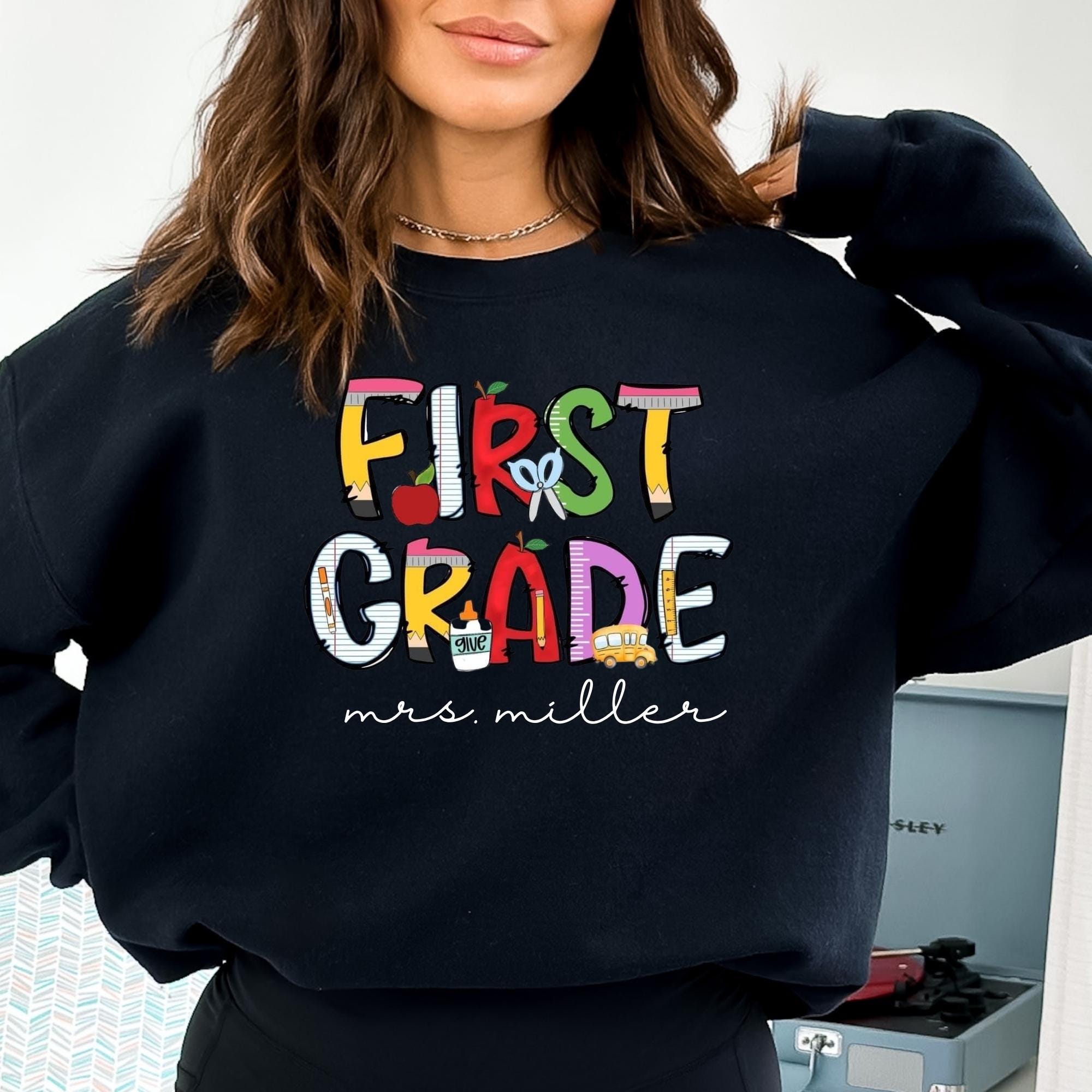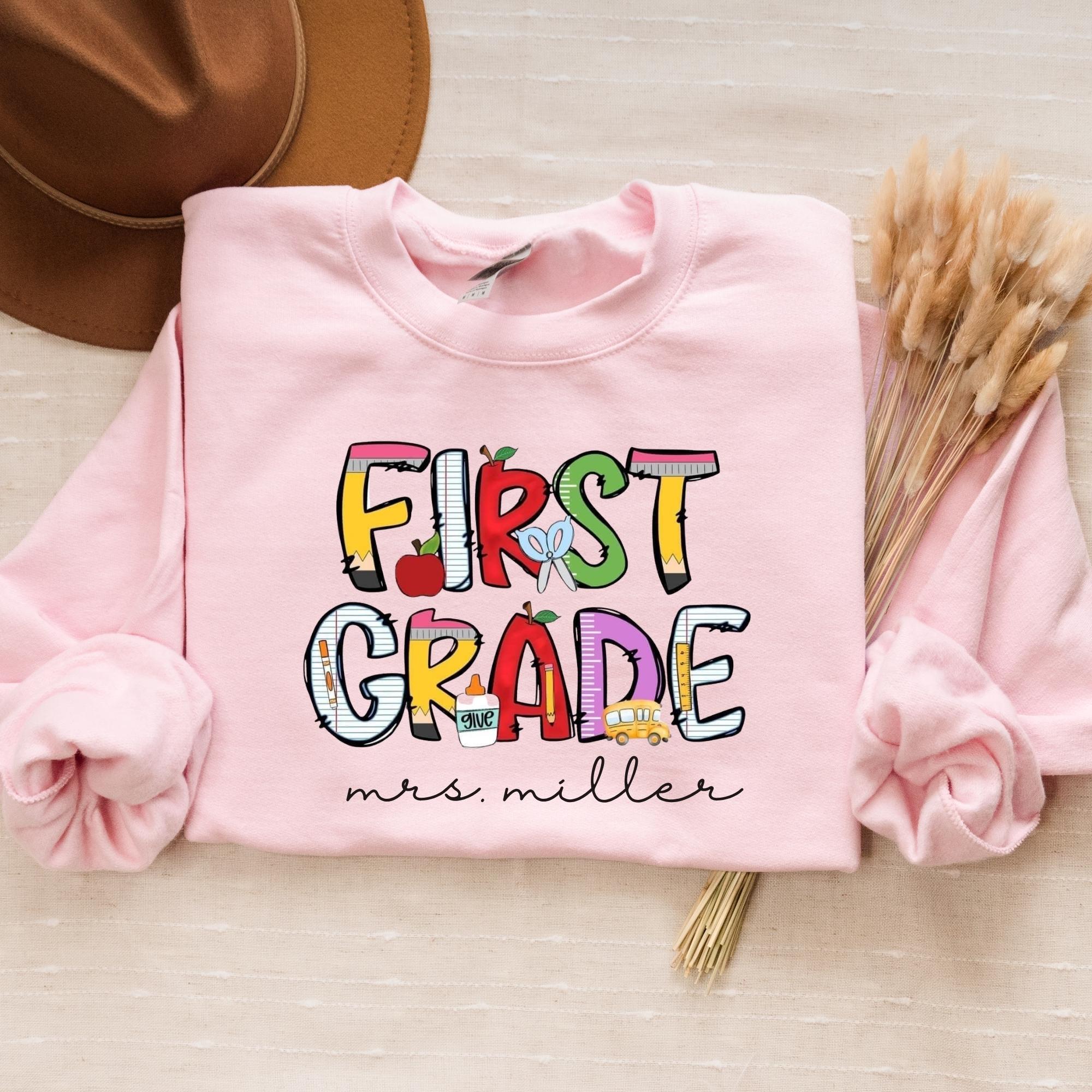 Personalized First Grade Teacher Sweatshirt, Custom 1st Grade Teacher Sweatshirt, First Day of School Gift, Teacher Appreciation Gifts