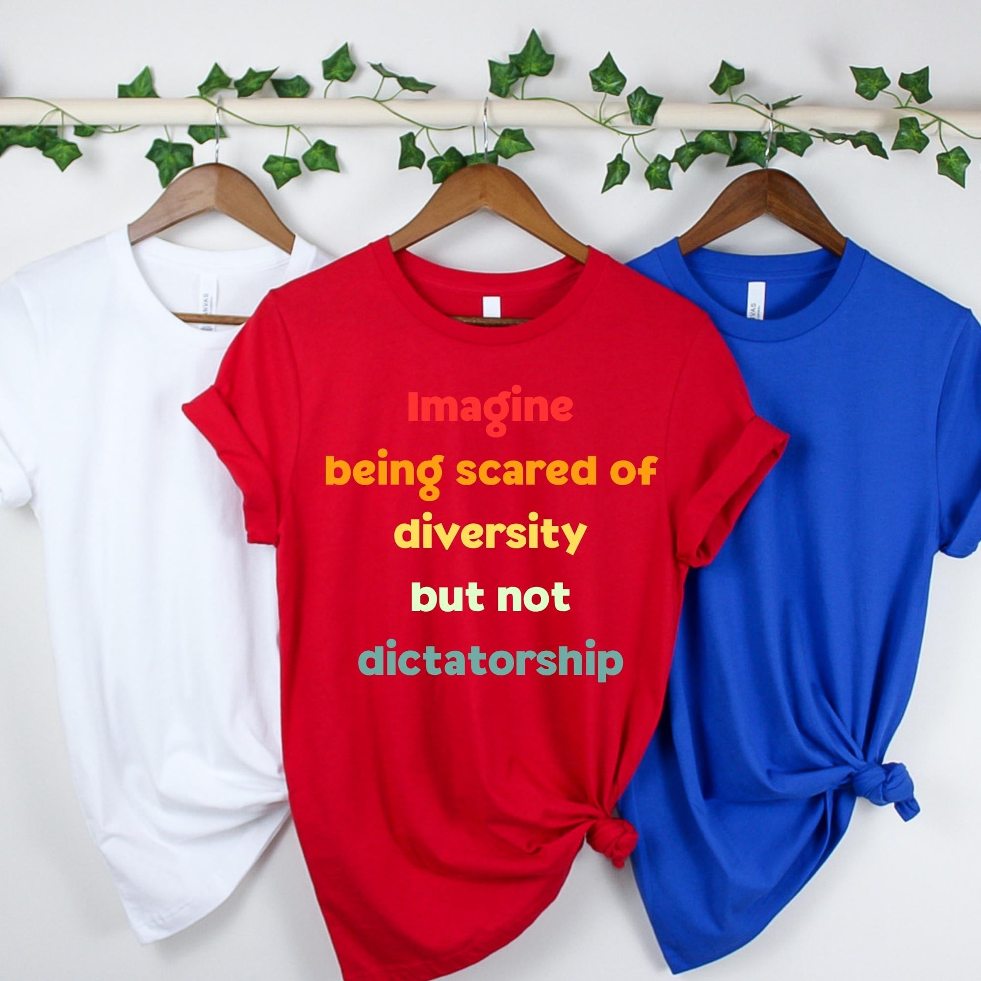 Imagine Being Scared Of Diversity But Not Dictatorship Shirt, Political Humor Shirt, Bold Statement Tee, Hilarious Protest