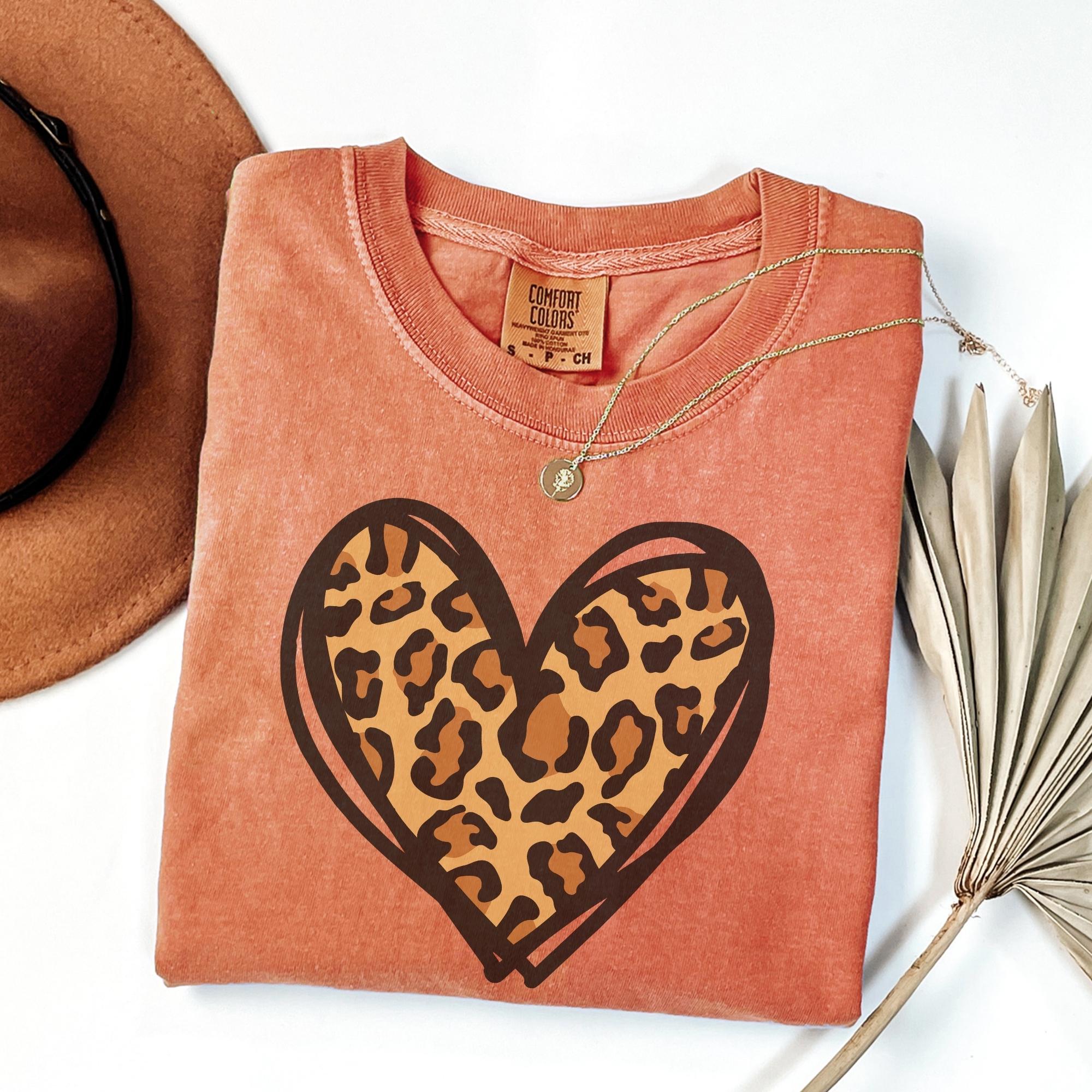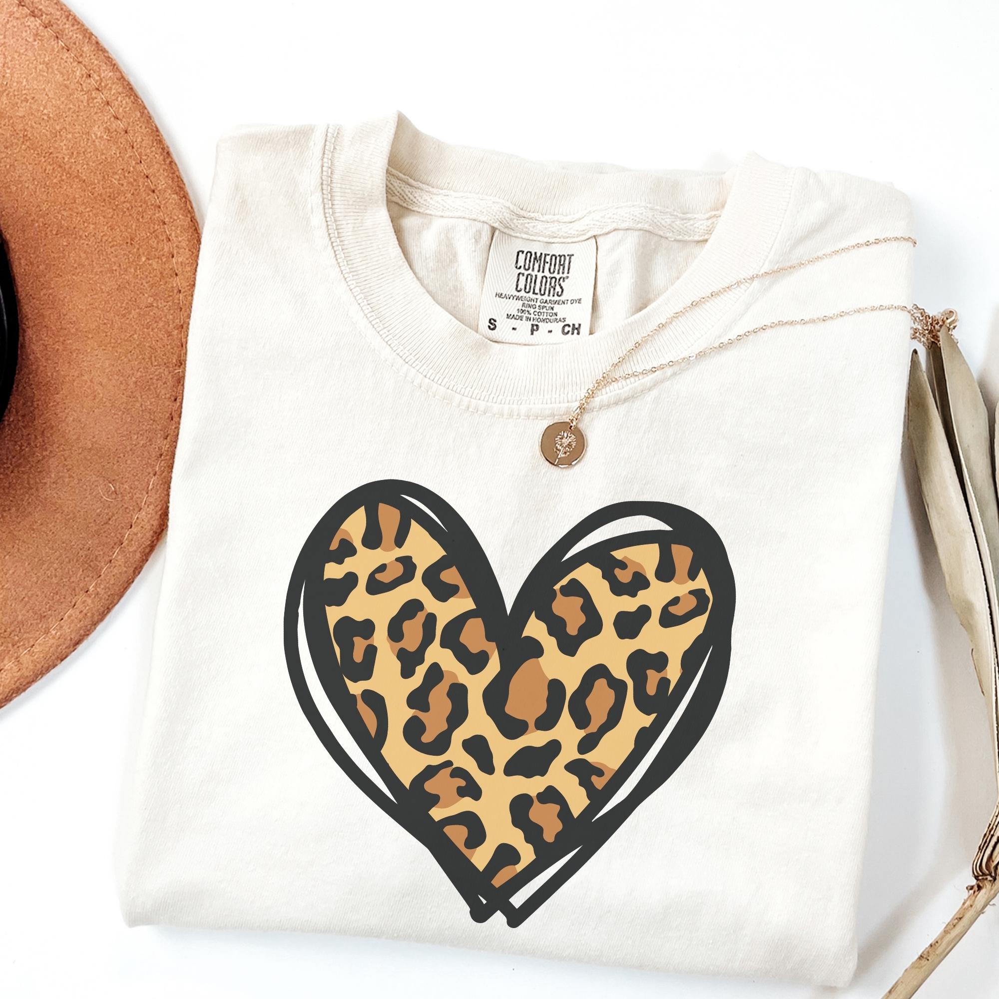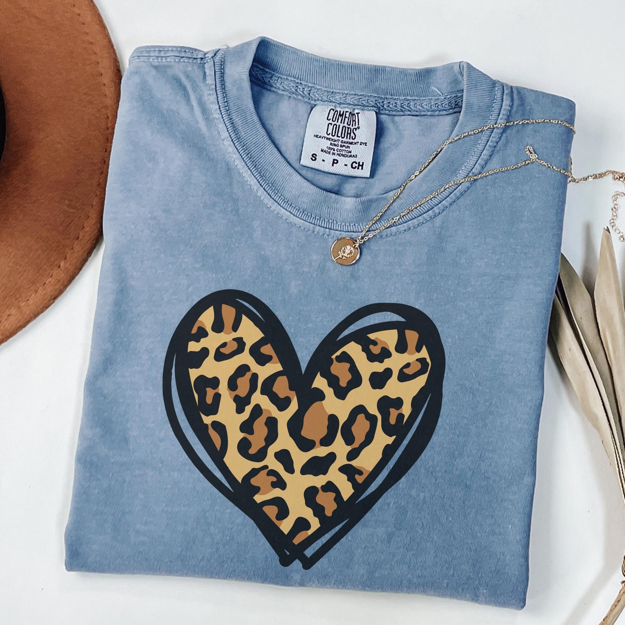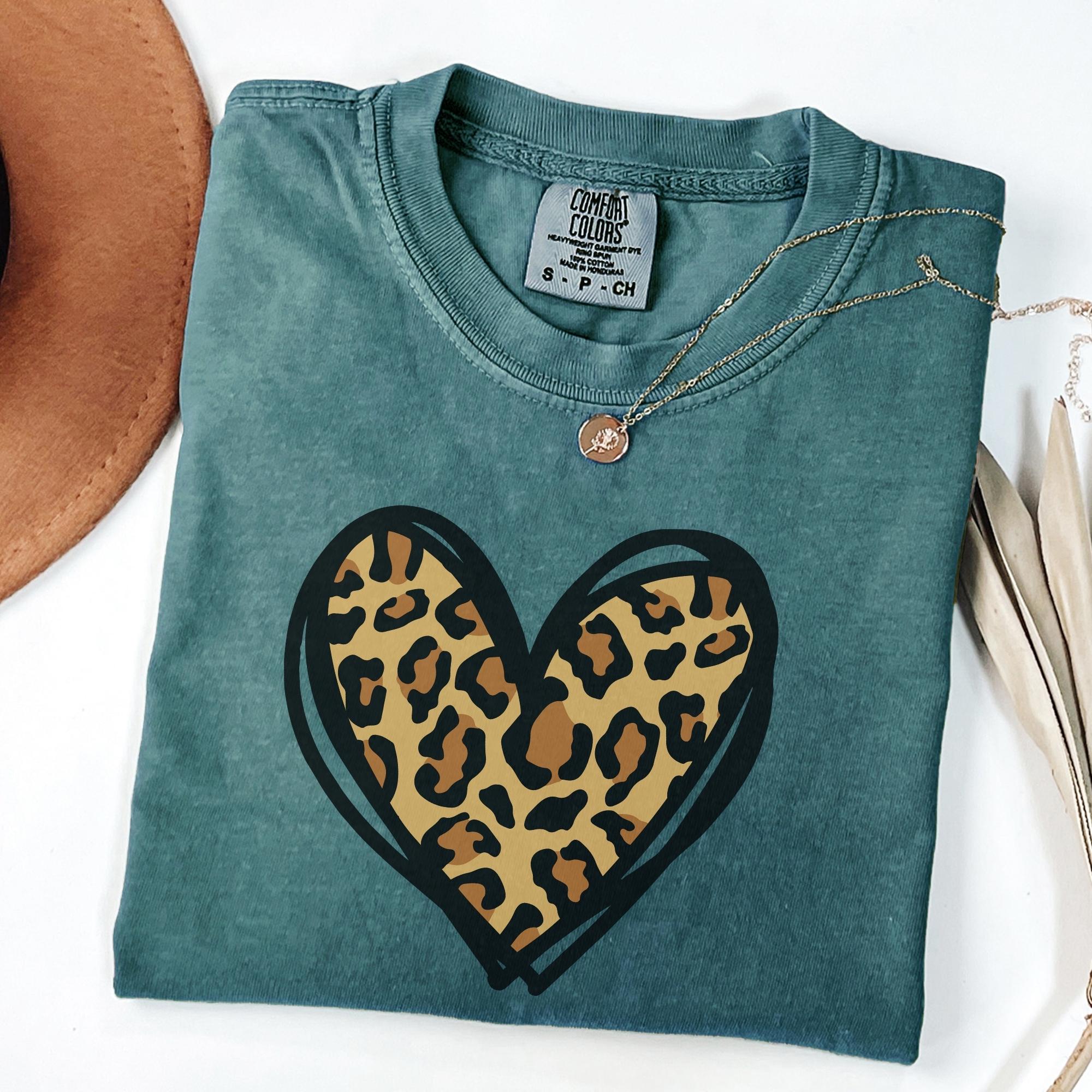Comfort Colors® Leopard Heart Shirt, Valentine Heart T-Shirt, Cute Valentine Day Shirt, Animal Print Shirt, Heart Valentine Shirt