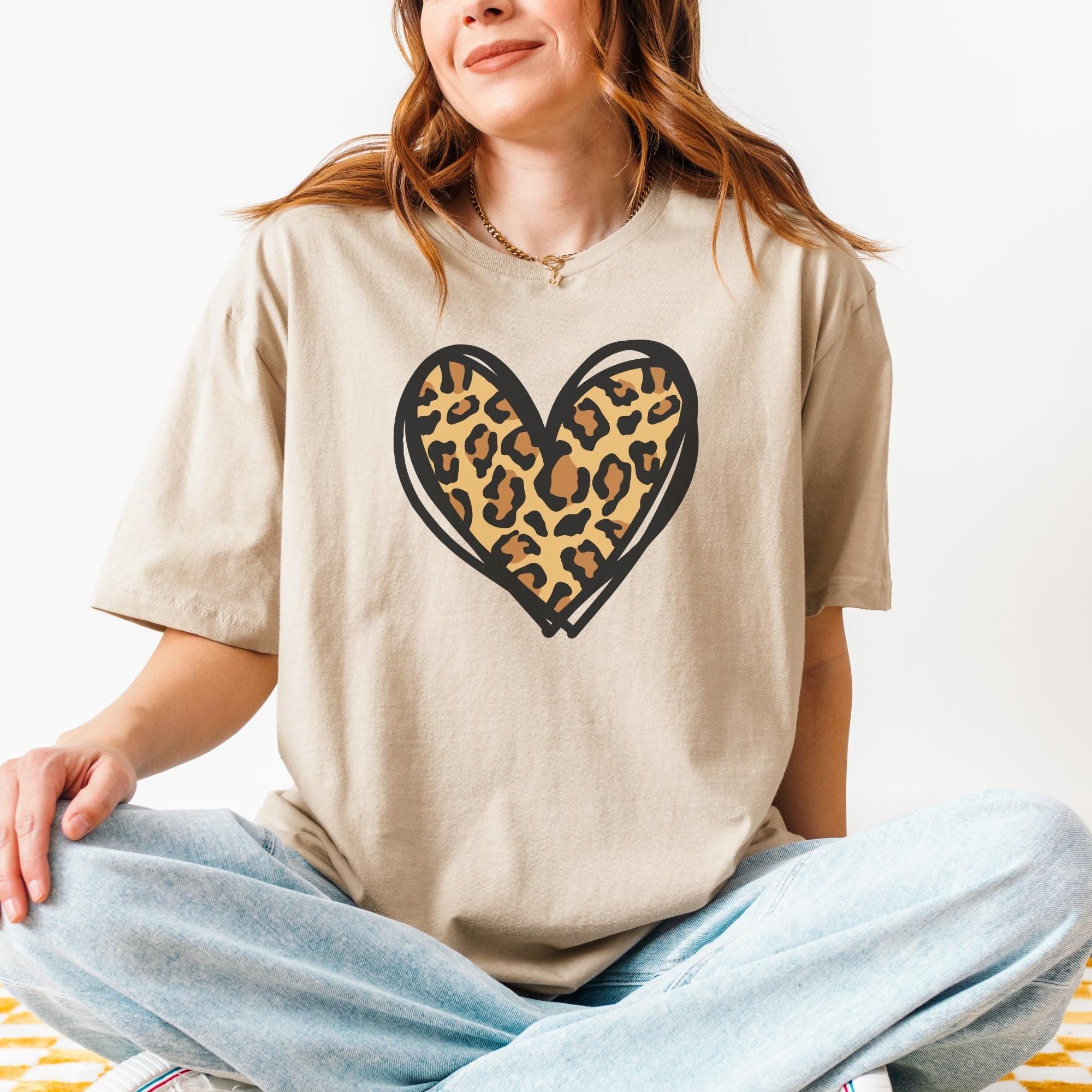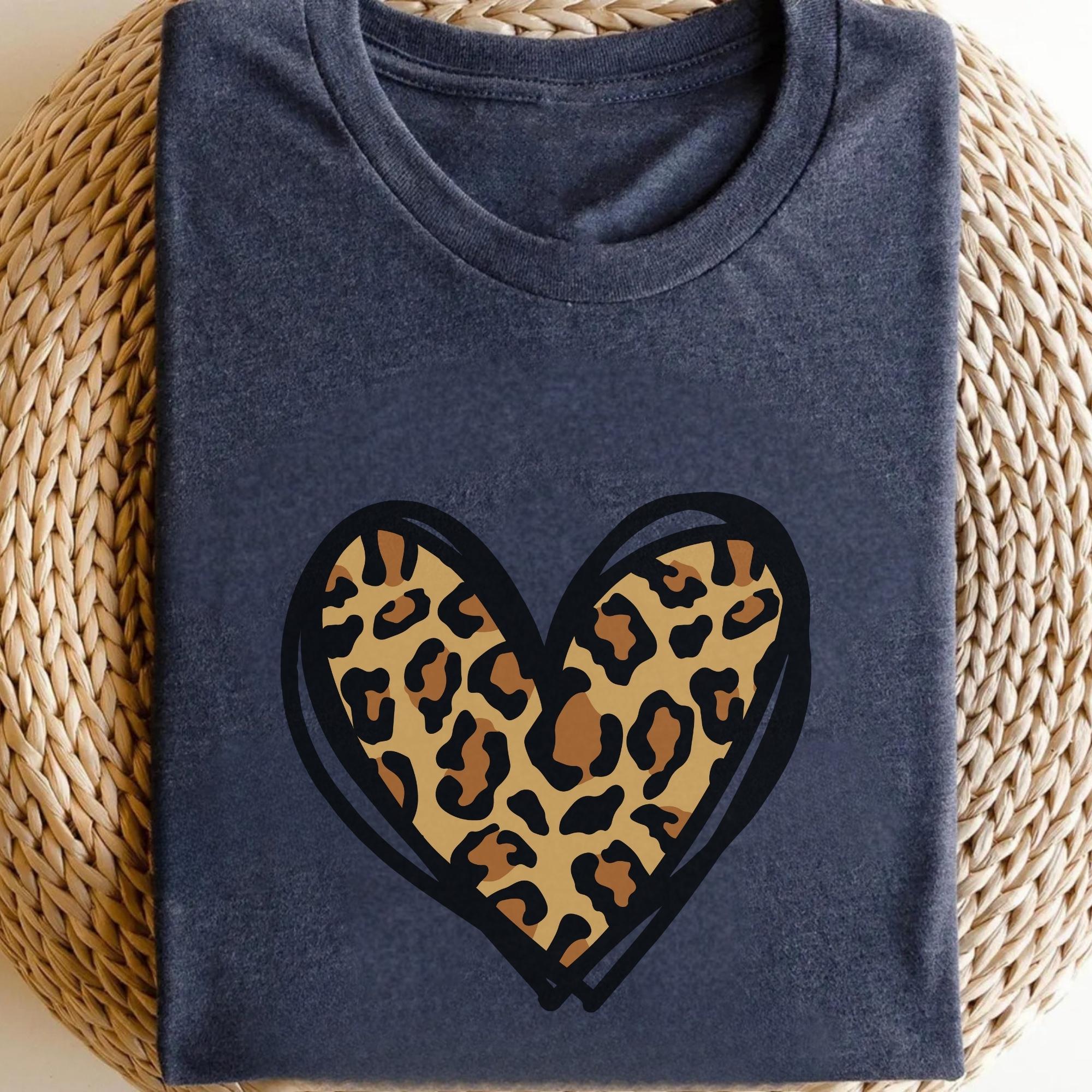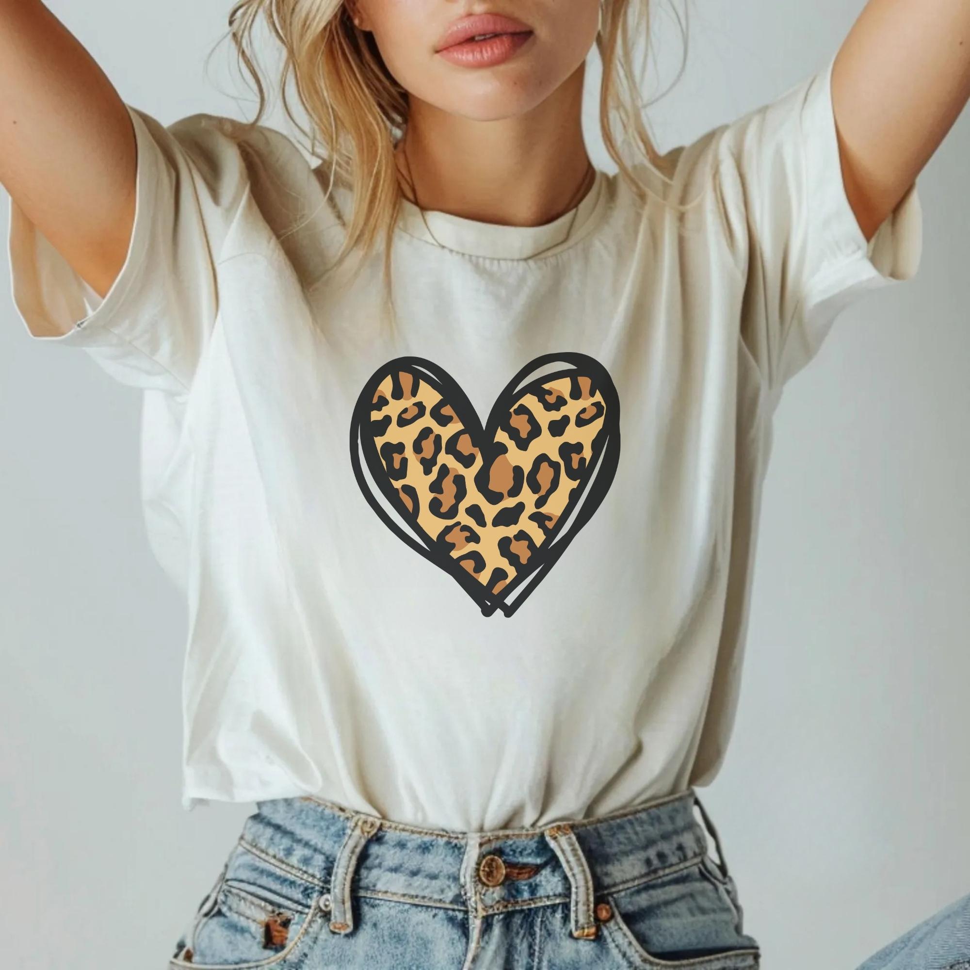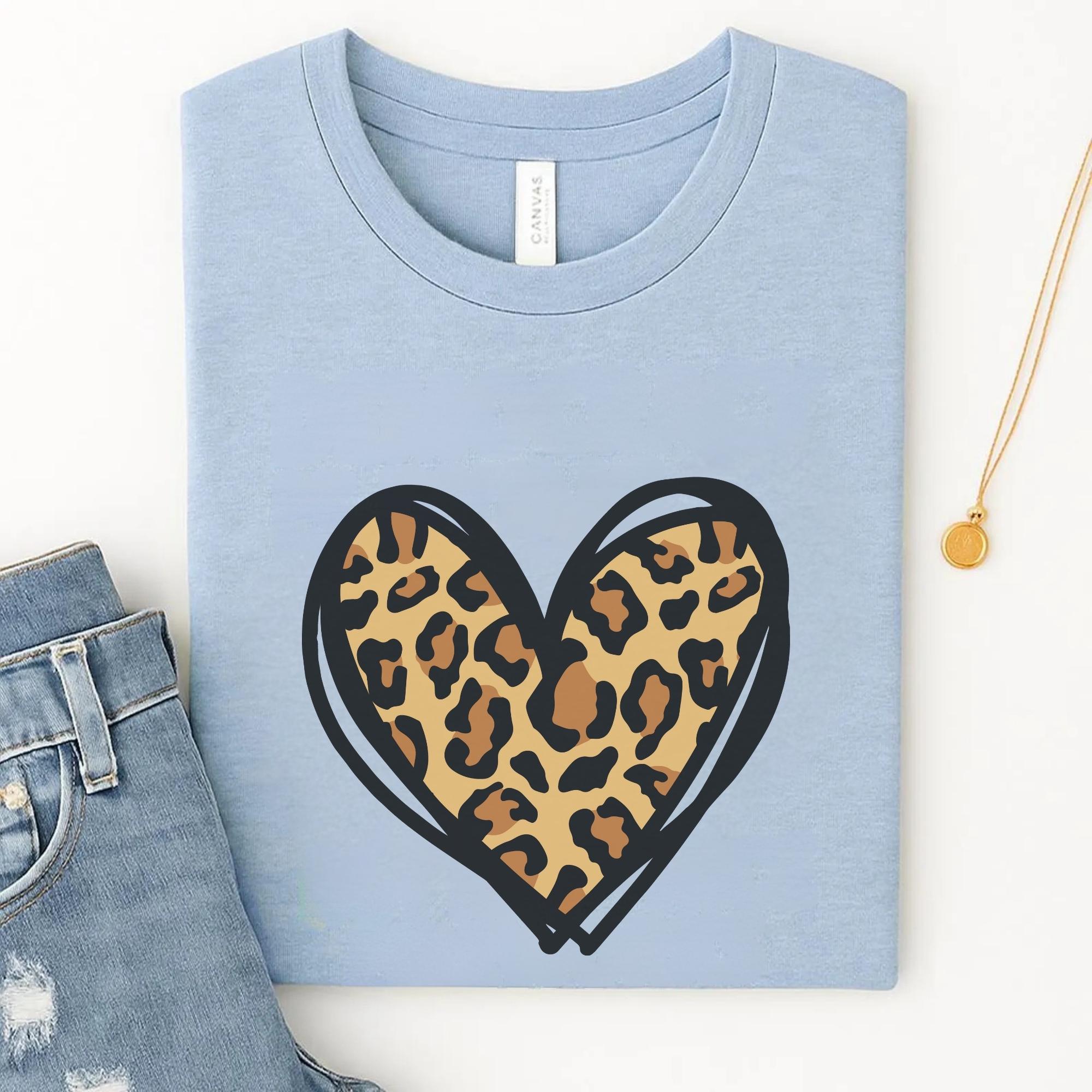 Leopard Heart Shirt, Valentine Heart T-Shirt, Cute Valentine Day Shirt, Animal Print Shirt, Heart Valentine Shirt