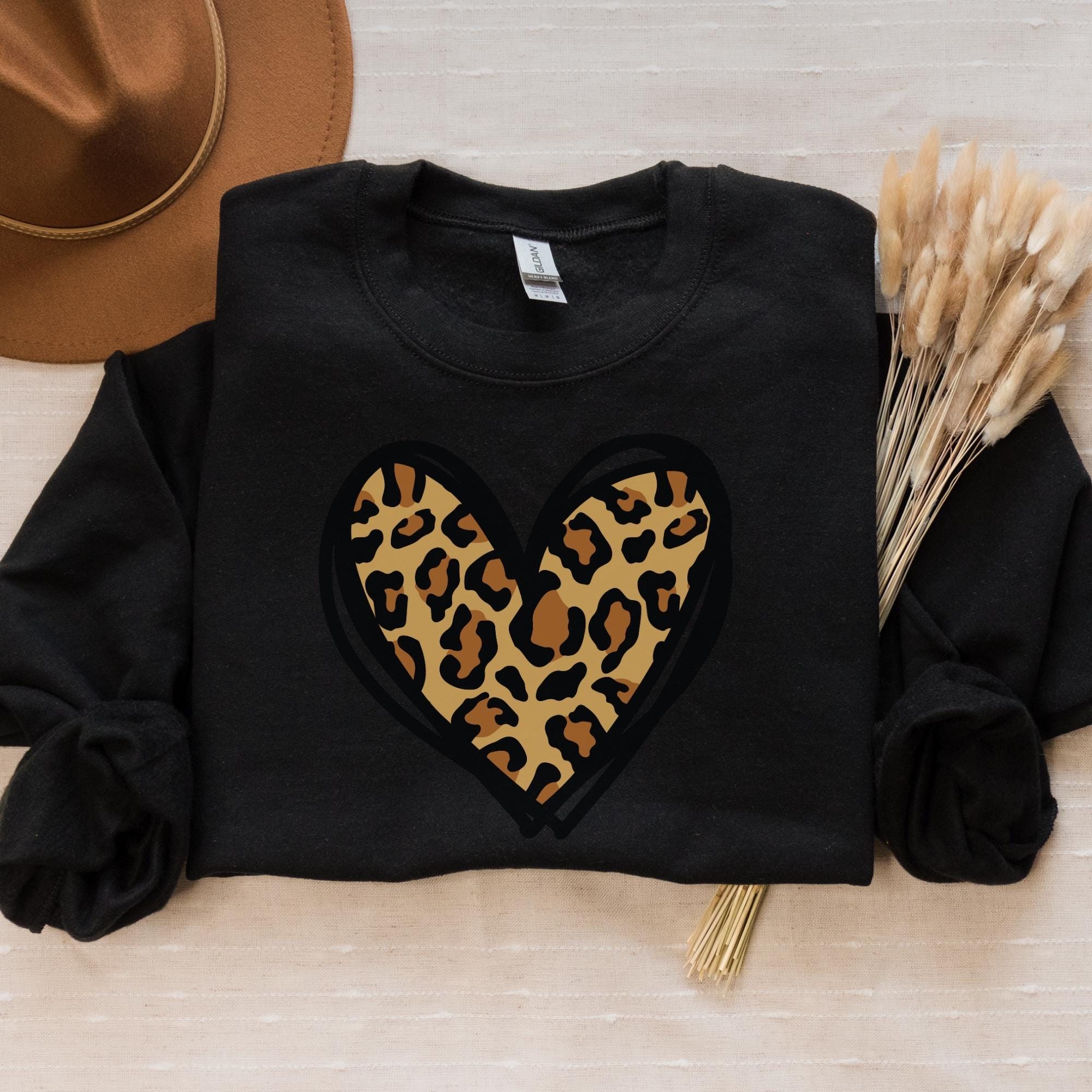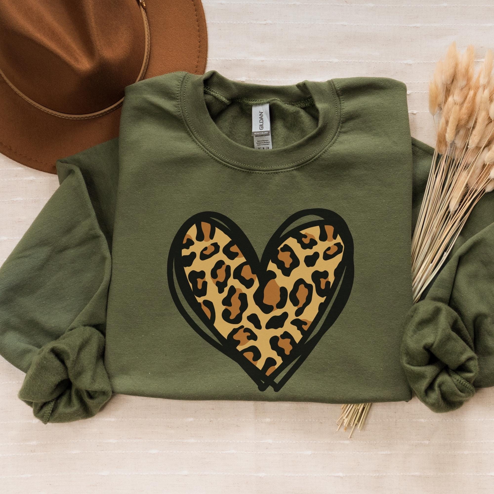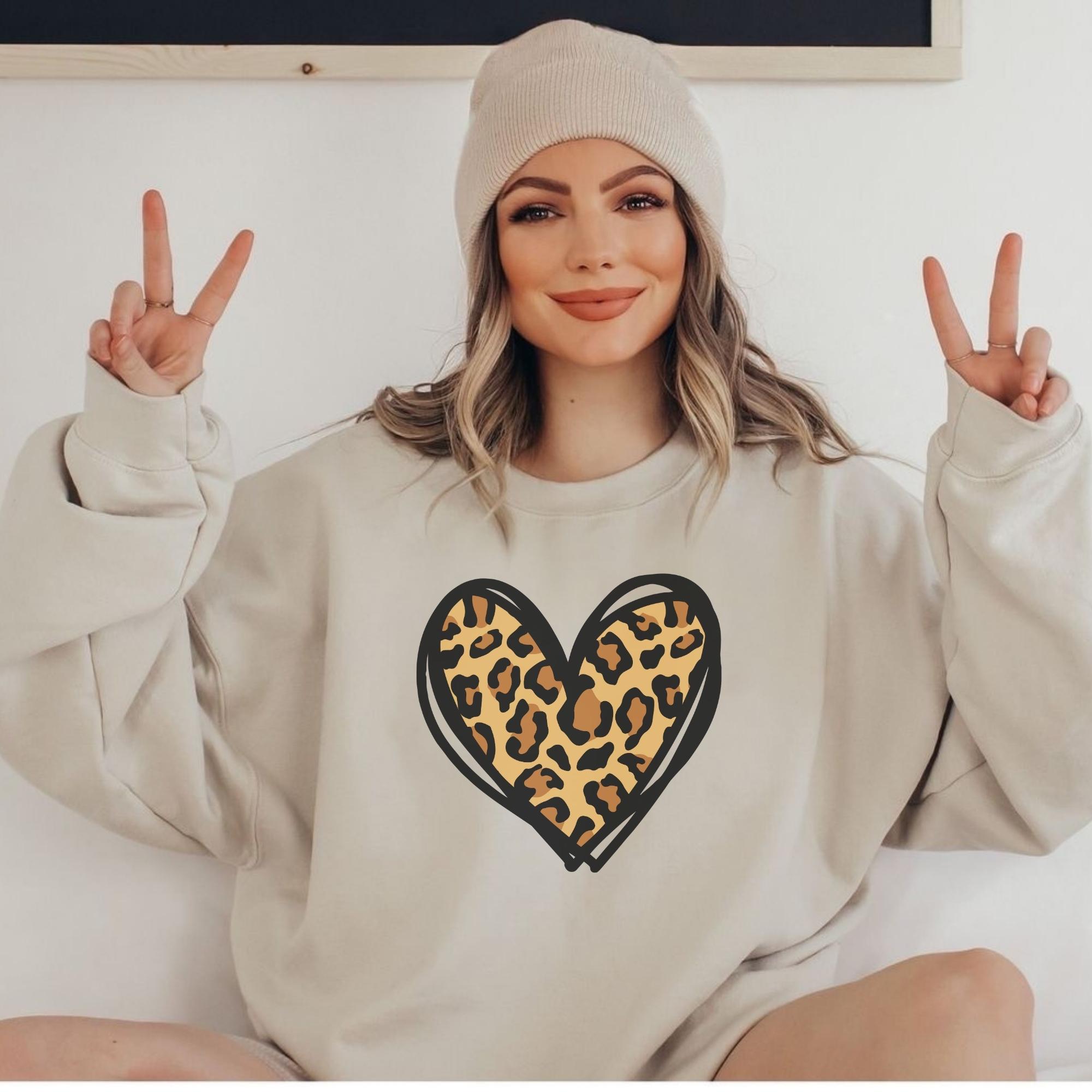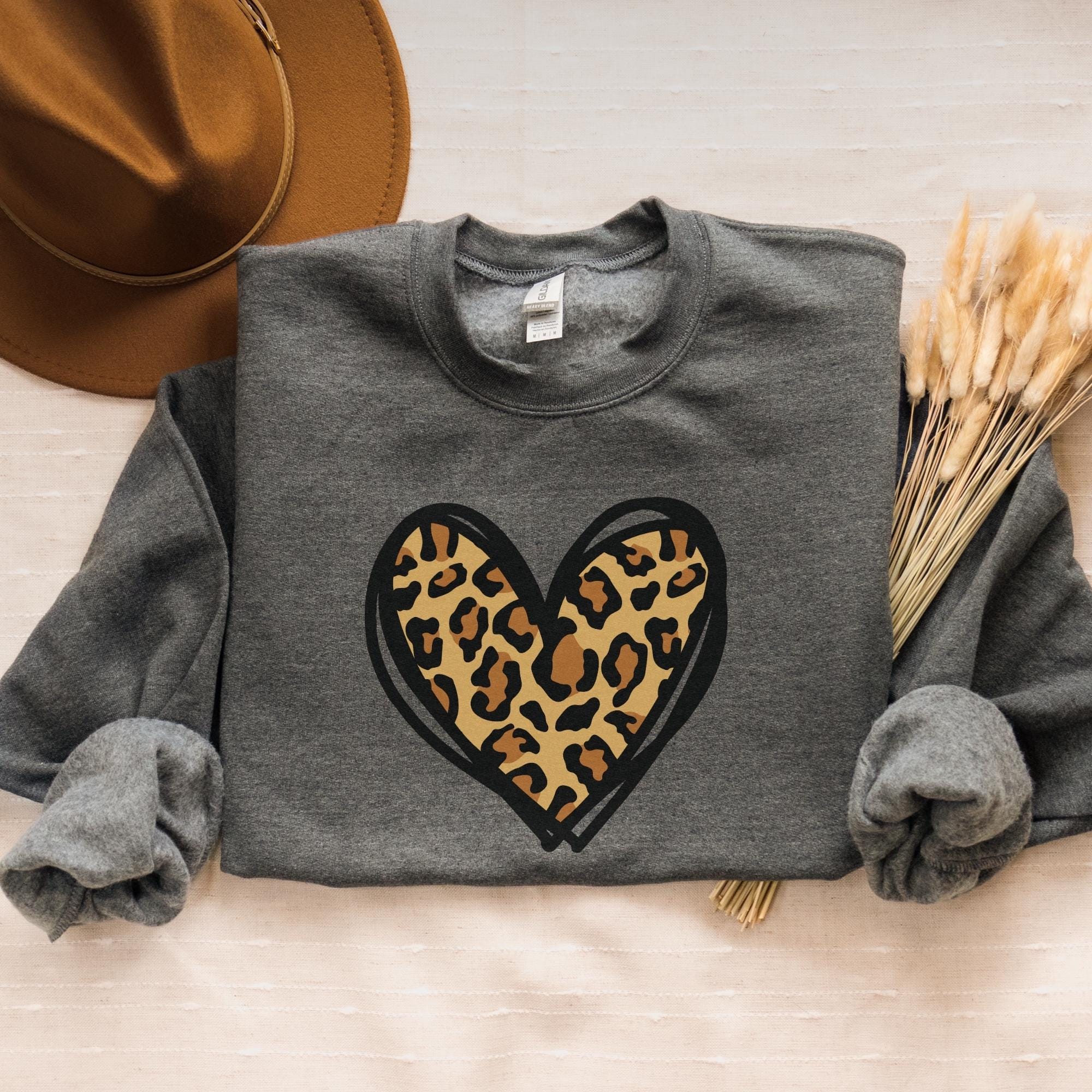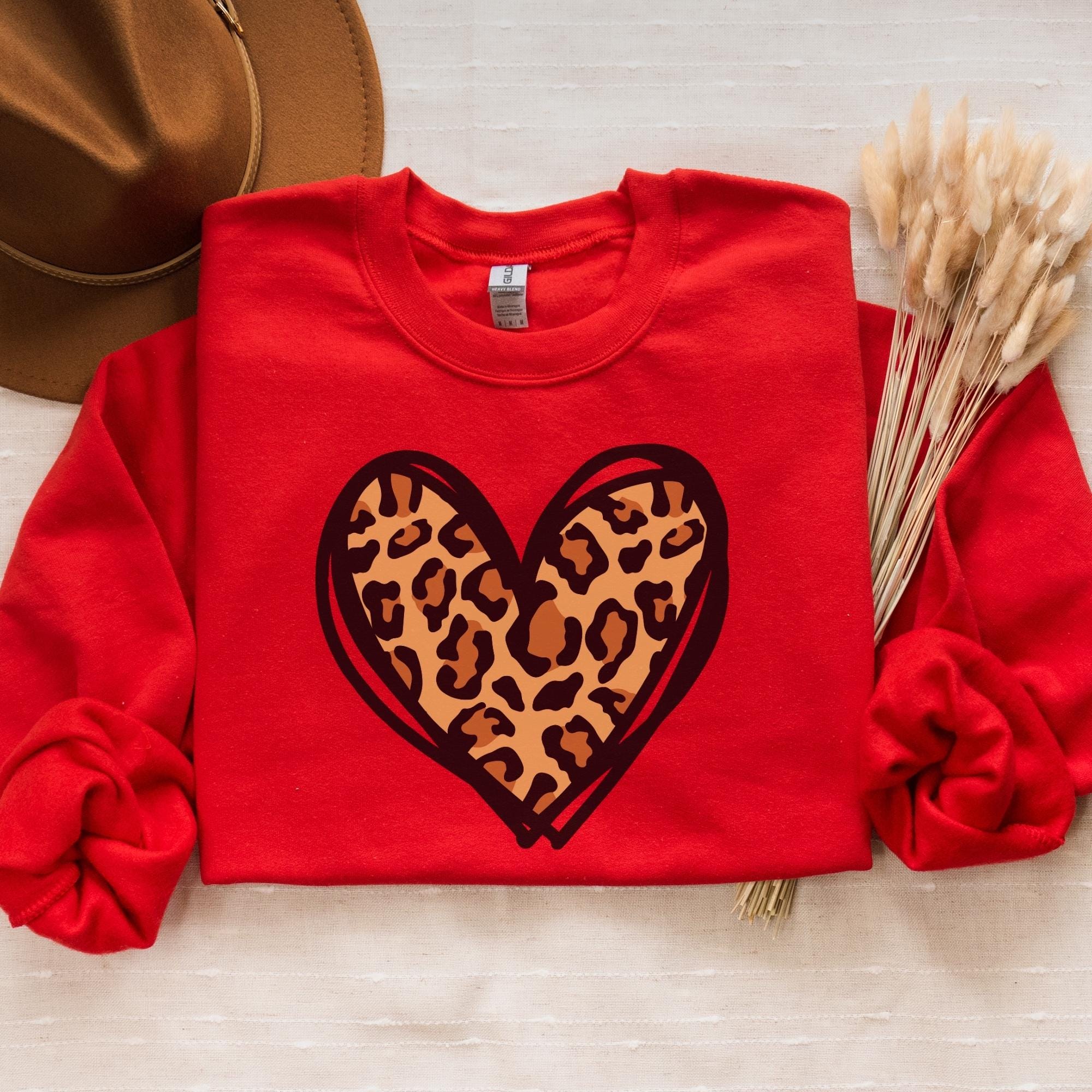 Leopard Heart Sweatshirt, Valentine Heart Sweatshirt, Cute Valentine Day Sweatshirt, Animal Print Sweatshirt, Heart Valentine Sweatshirt