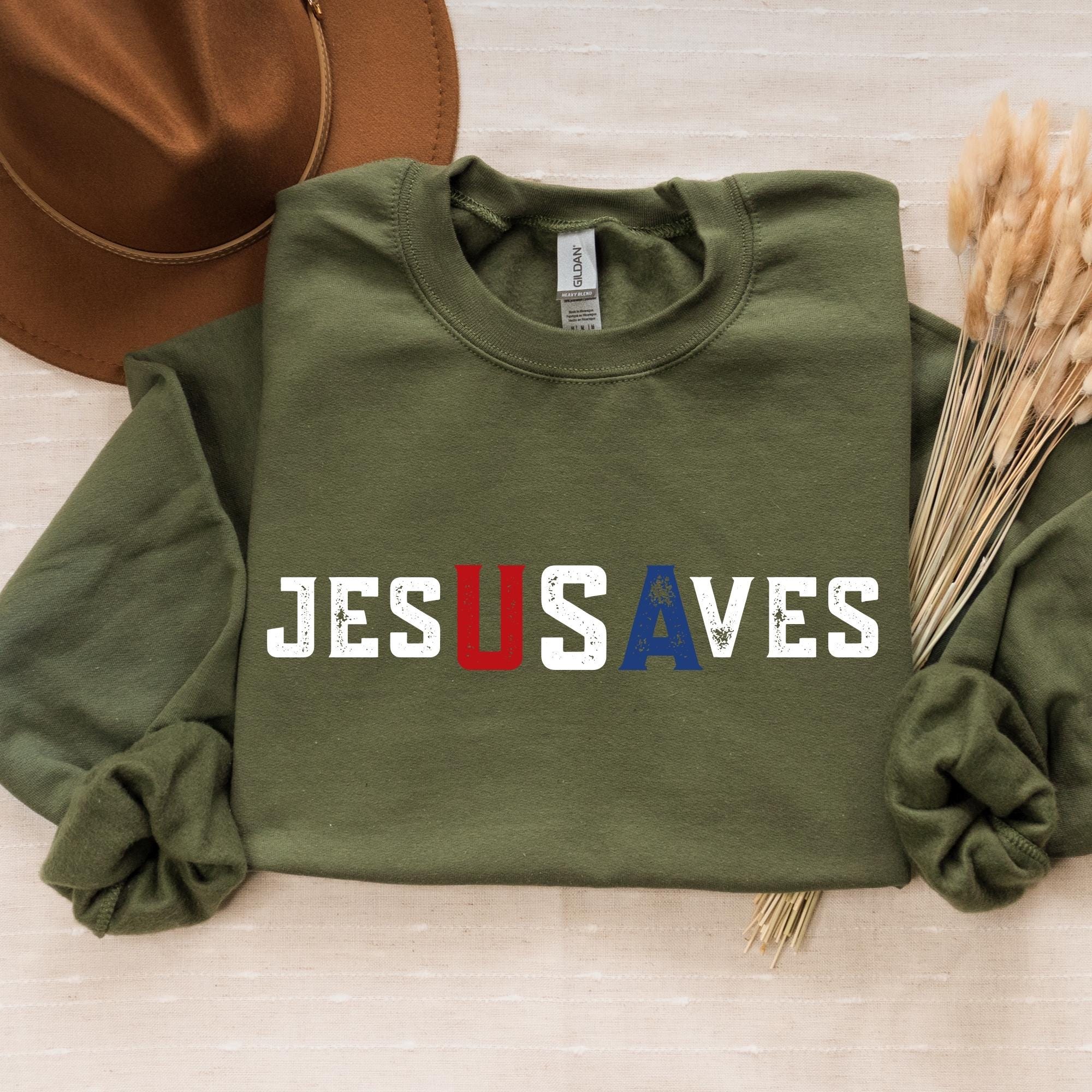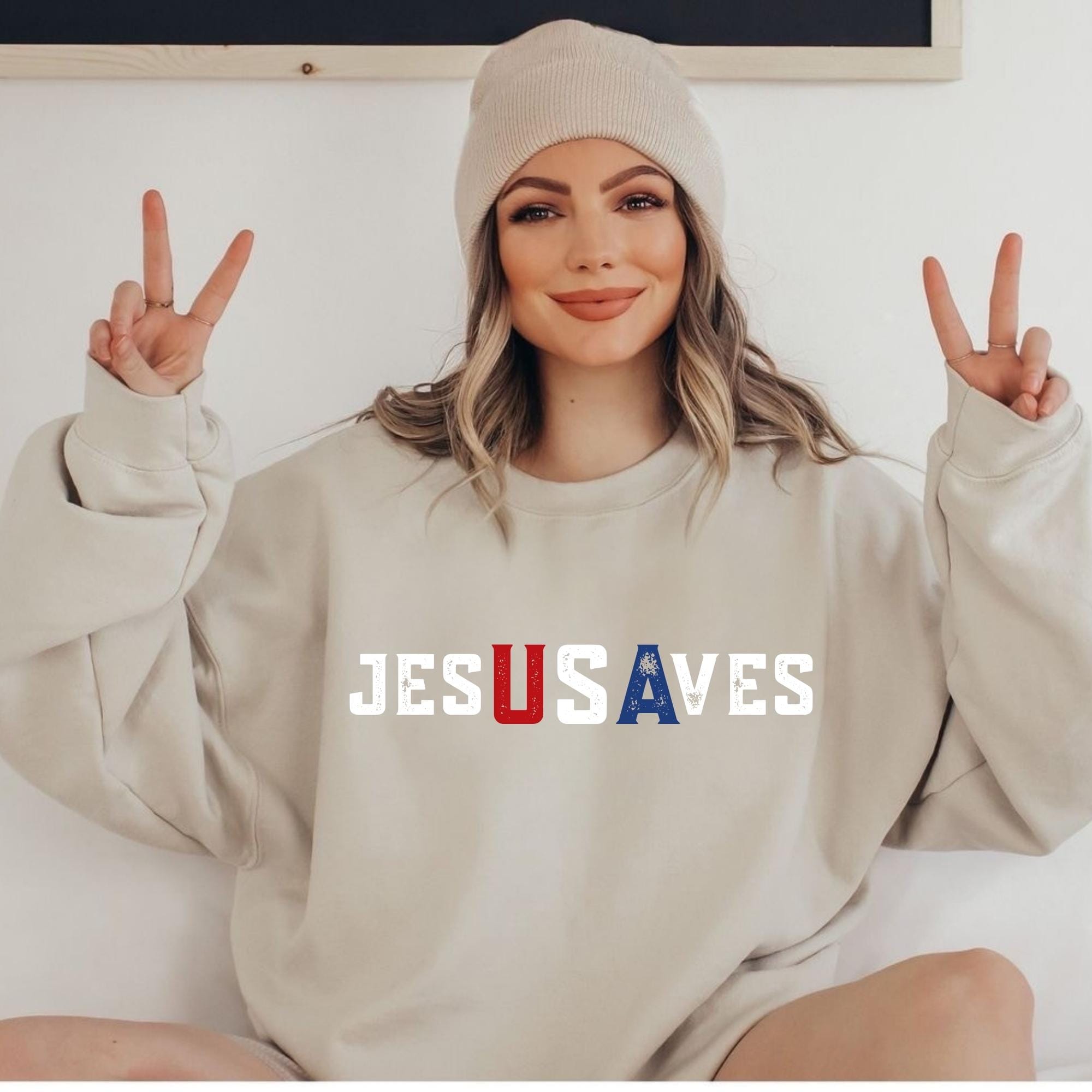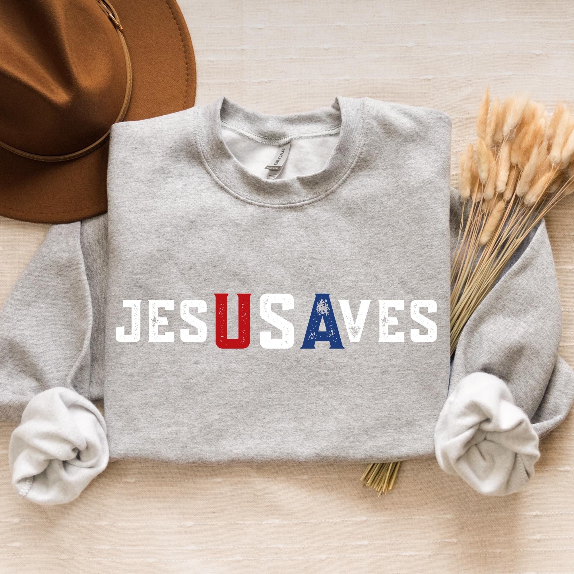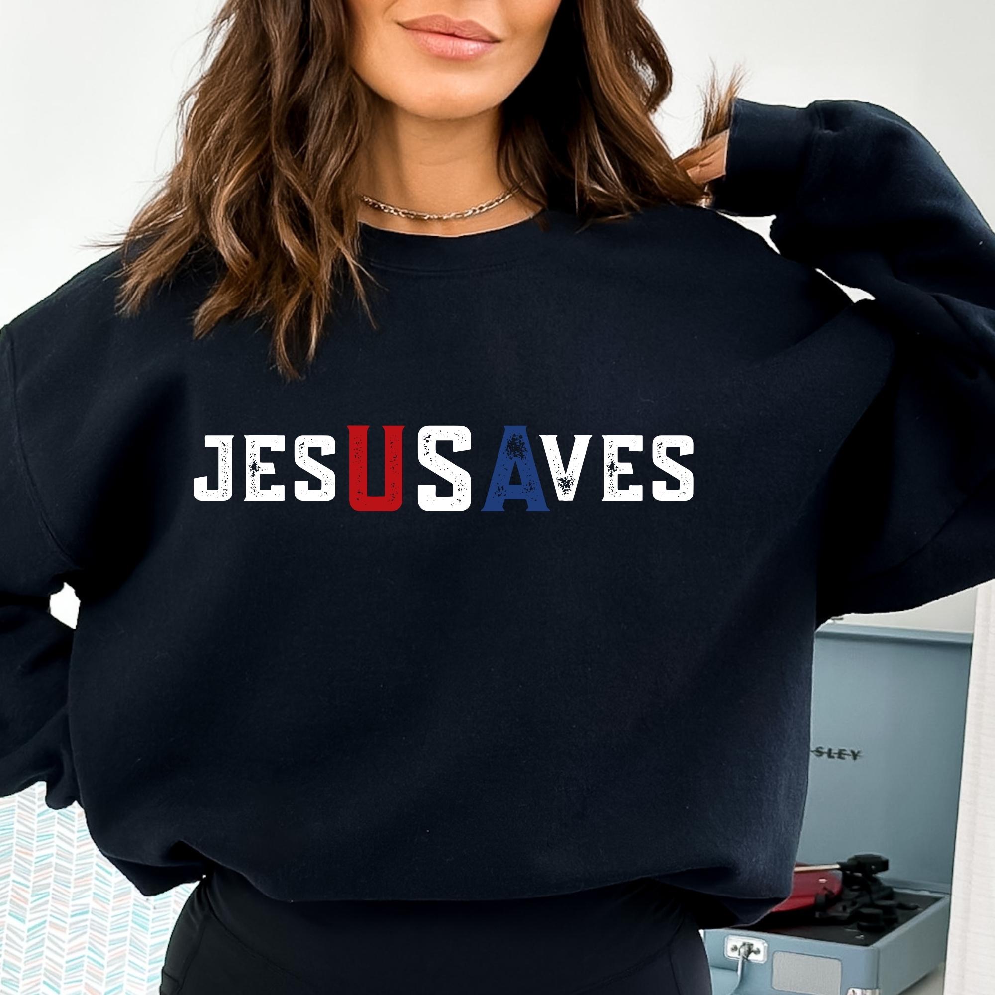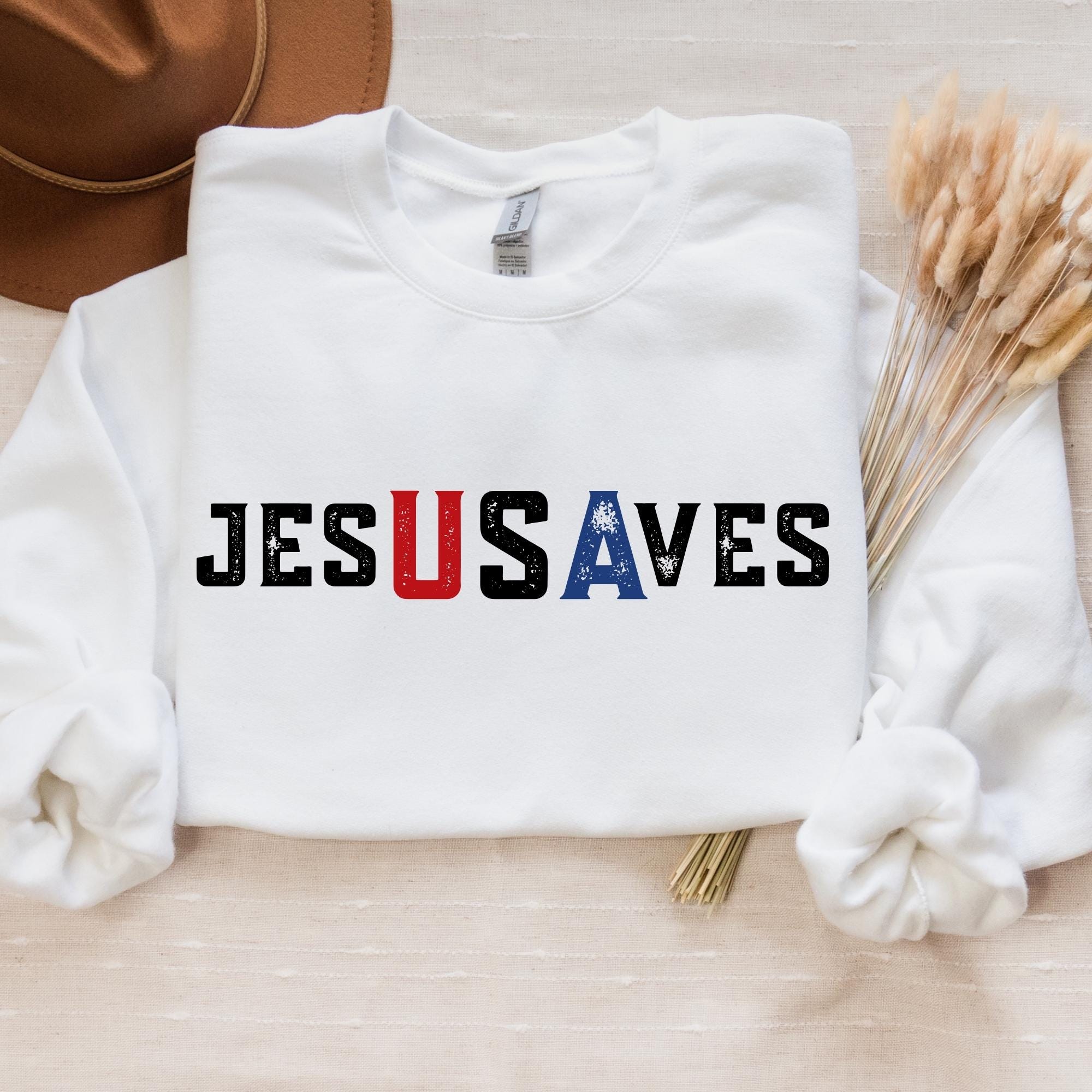 Jesus Saves USA Sweatshirt, Christian 4th of July Sublimation, Patriotic Faith Design, Red White Blue Bible Sweatshirt