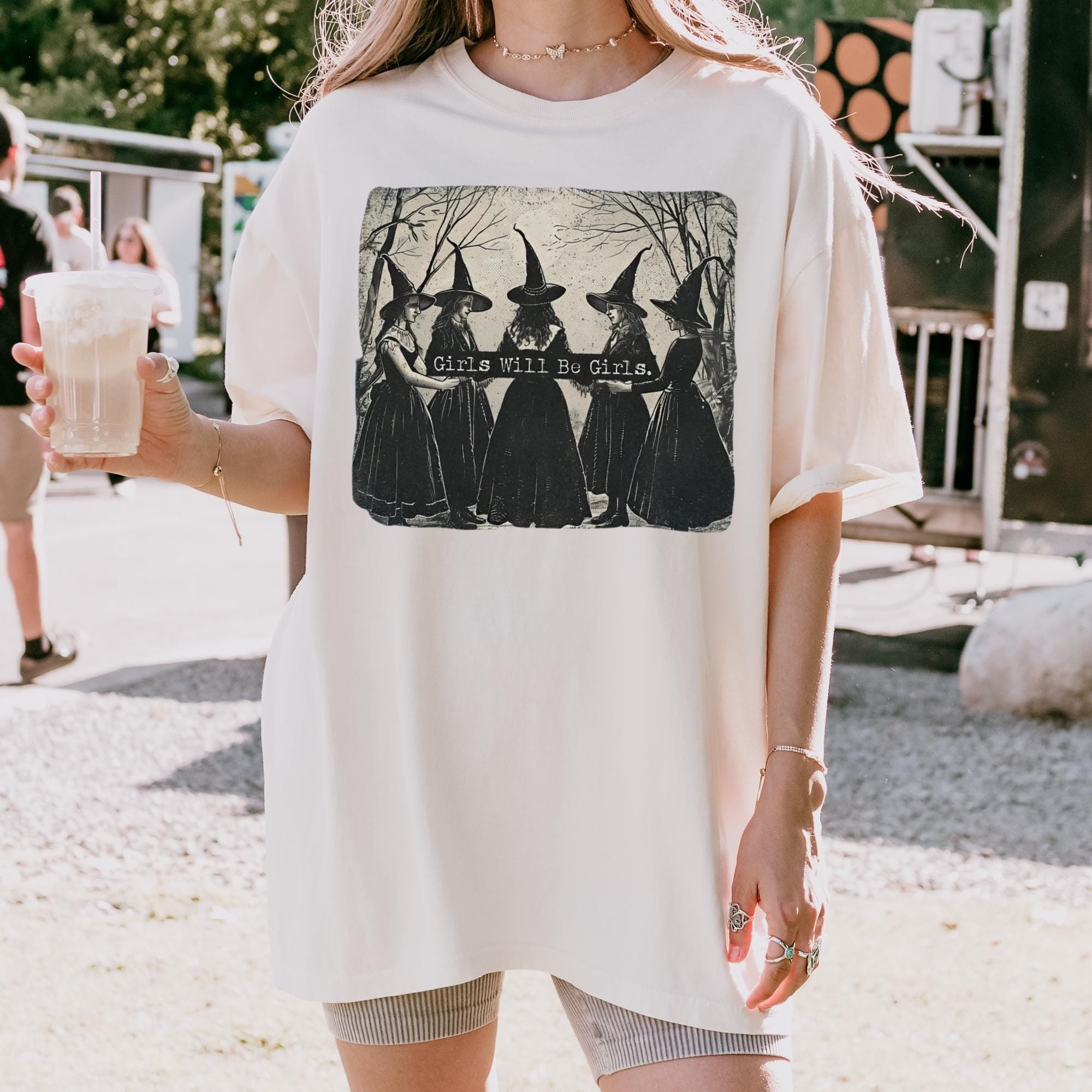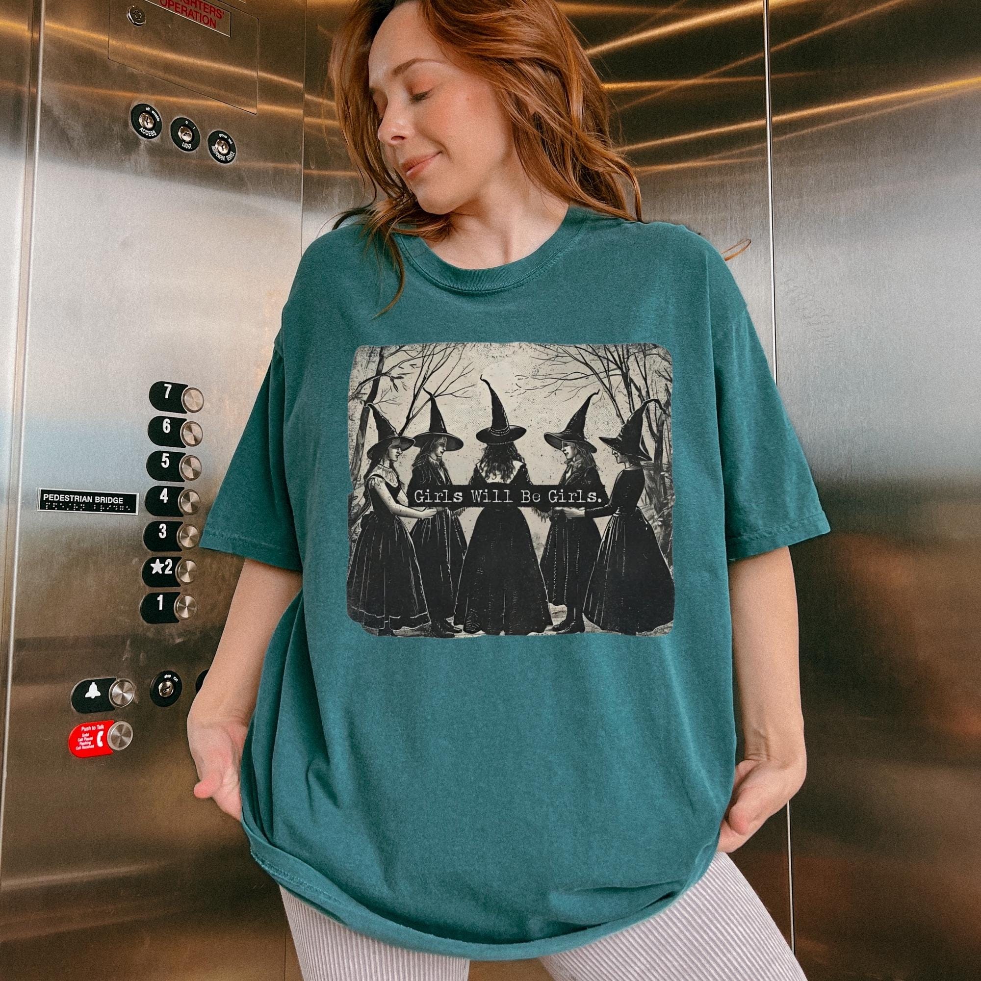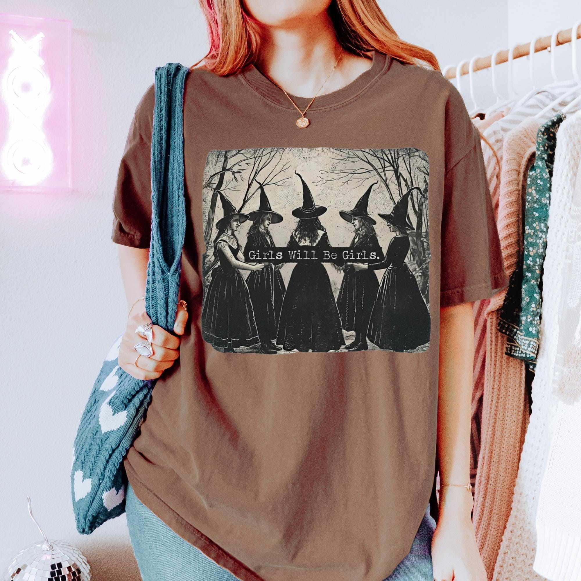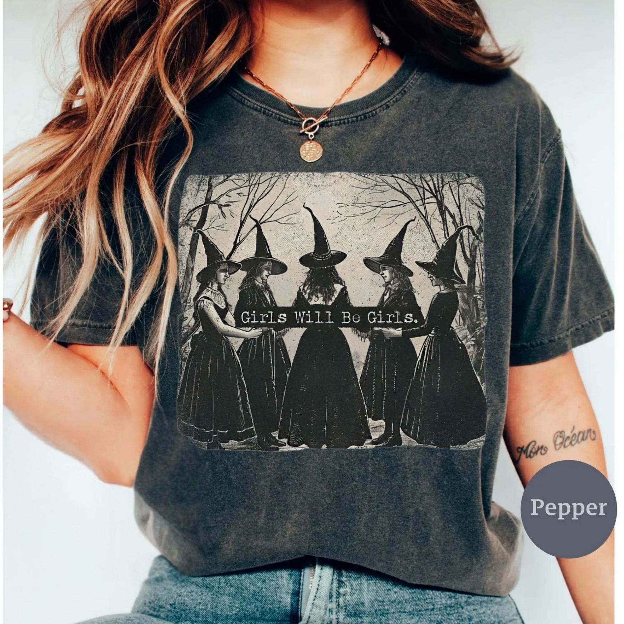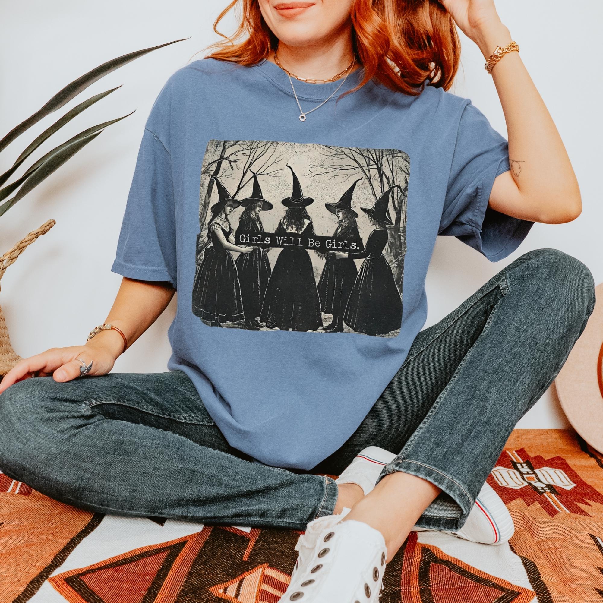 Vintage Girls Will Be Girls Witch Comfort Colors Shirt, Funny Witch Vintage Shirt, Vintage Halloween Women Shirt, Witchy Vibes Shirt