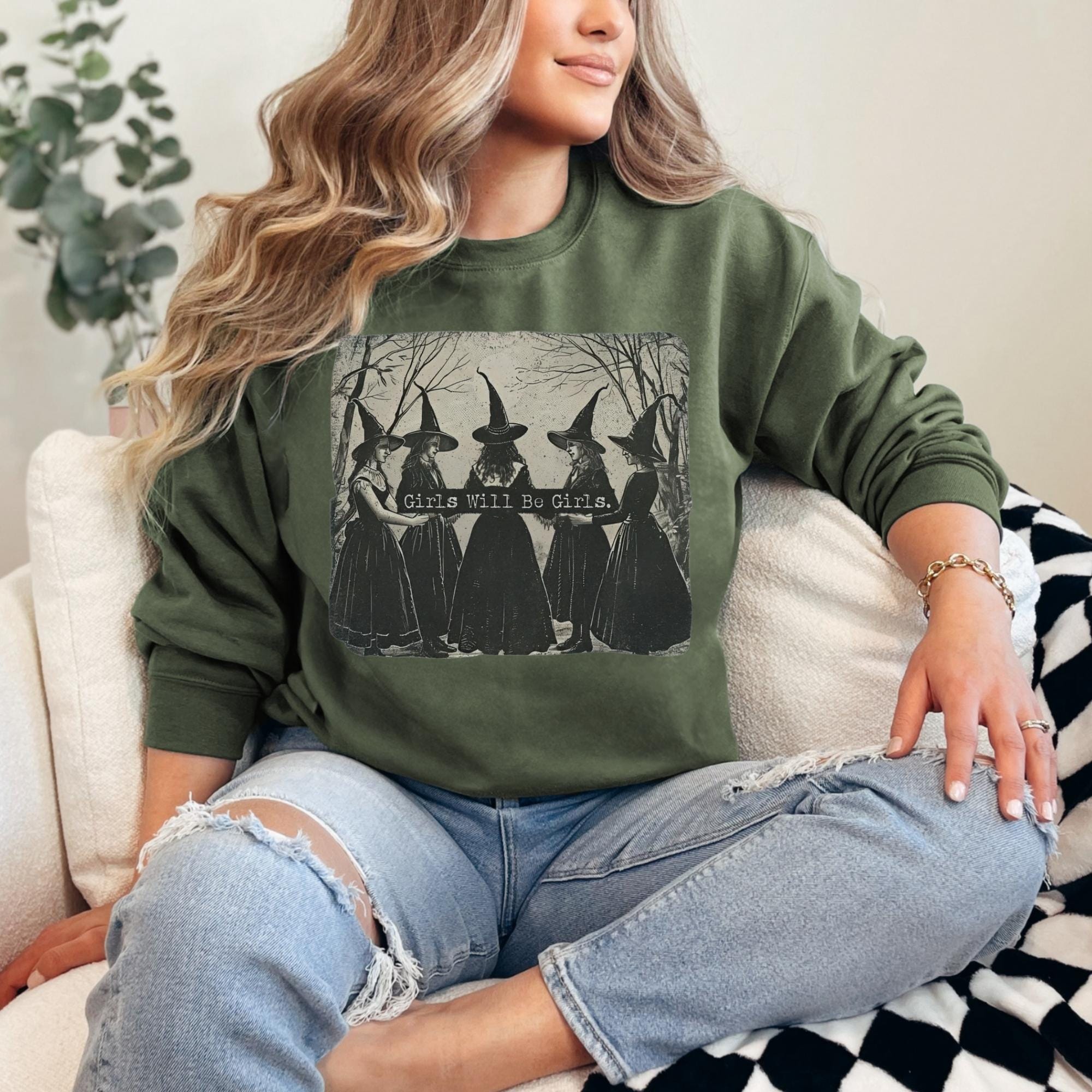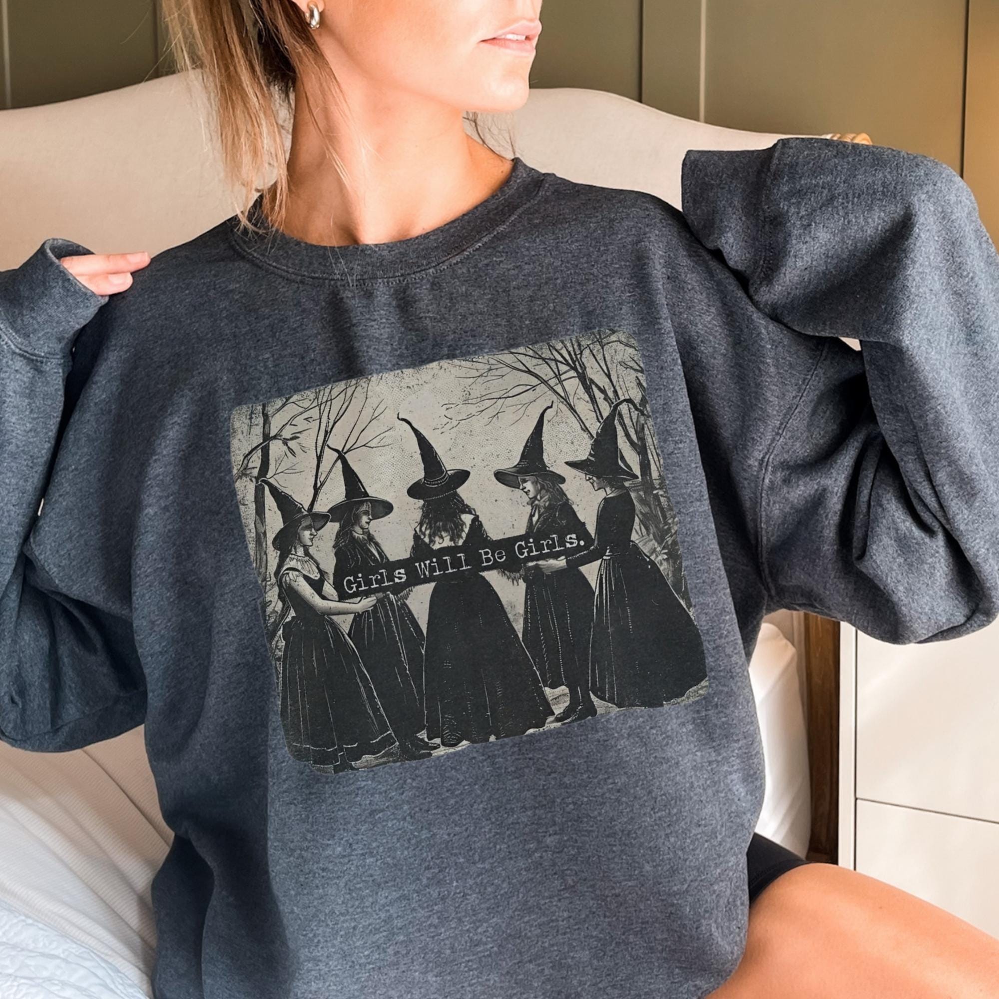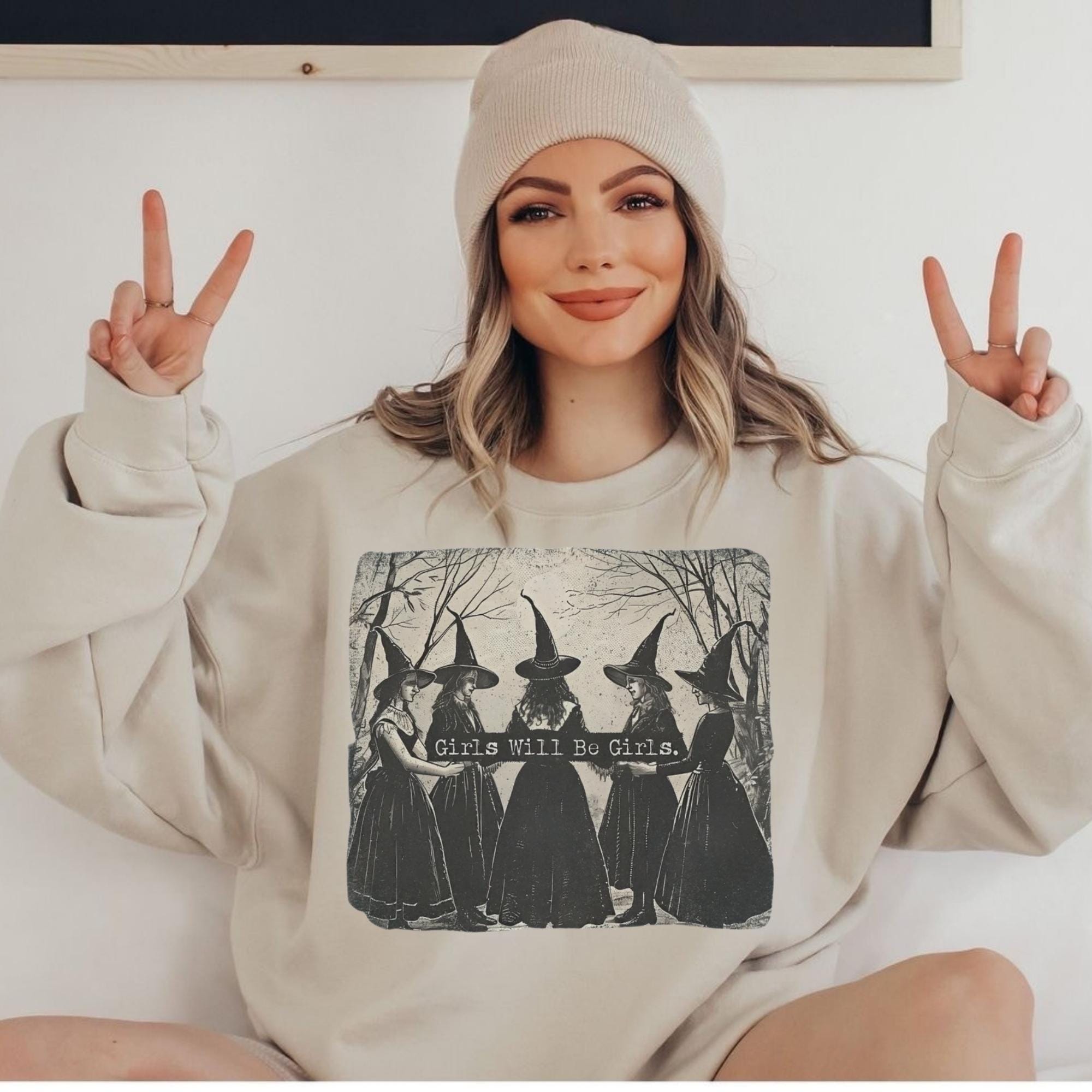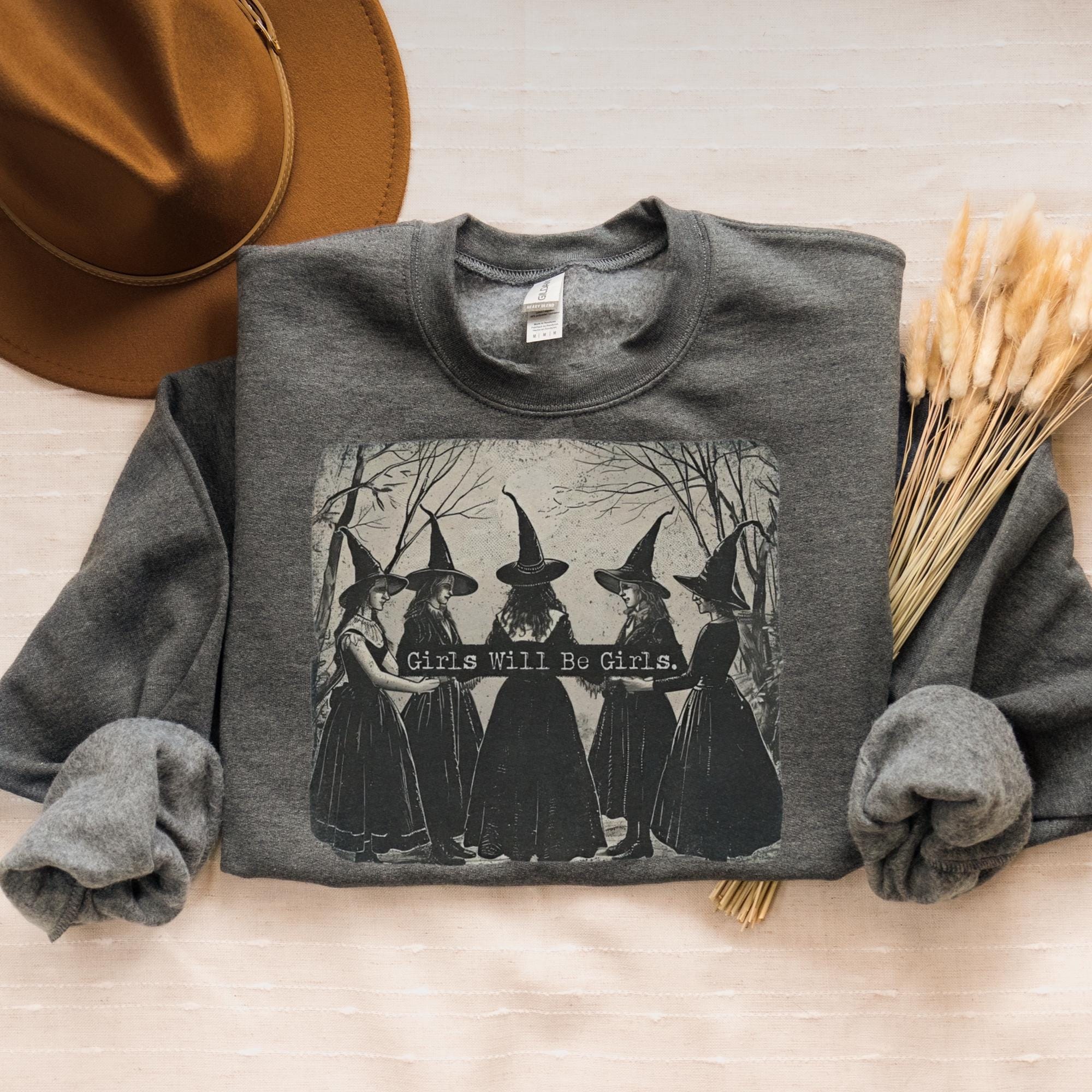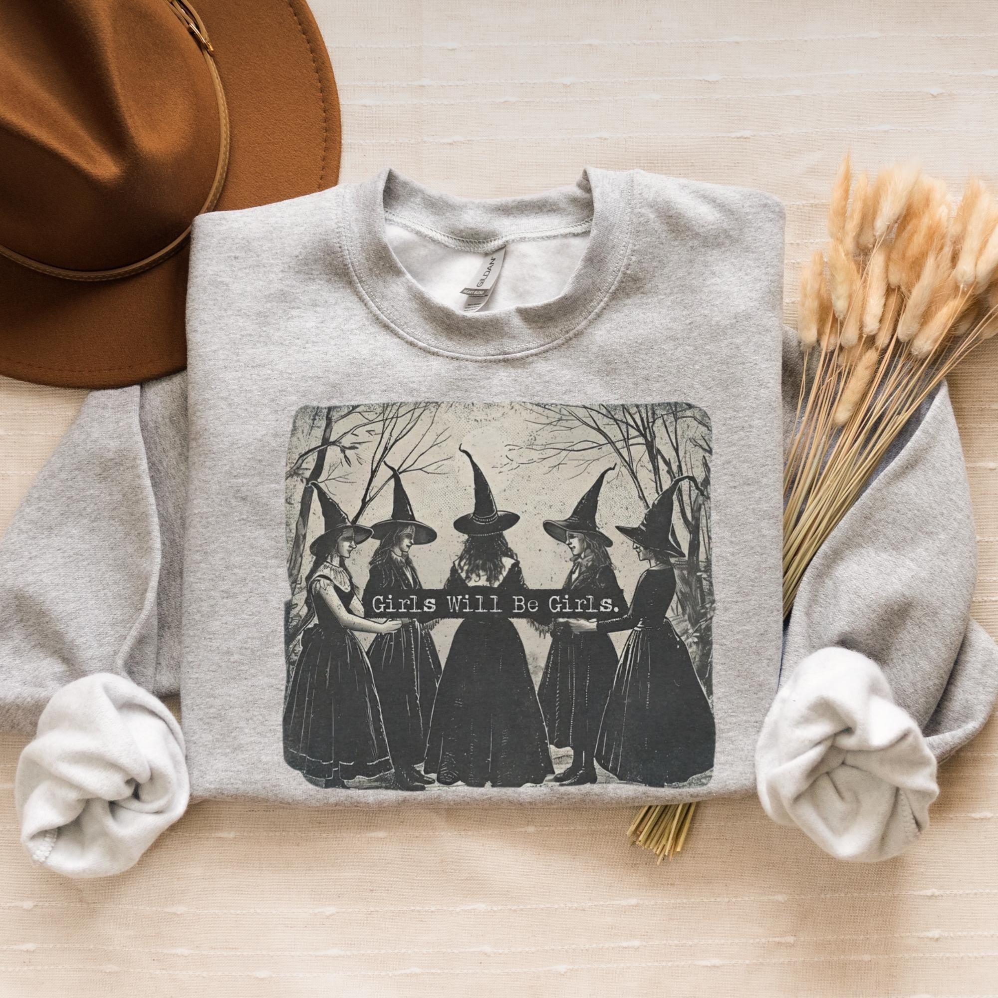 Vintage Girls Will Be Girls Witch Sweatshirt, Funny Witch Vintage Sweatshirt, Vintage Halloween Women Sweatshirt, Witchy Vibes Sweatshirt
