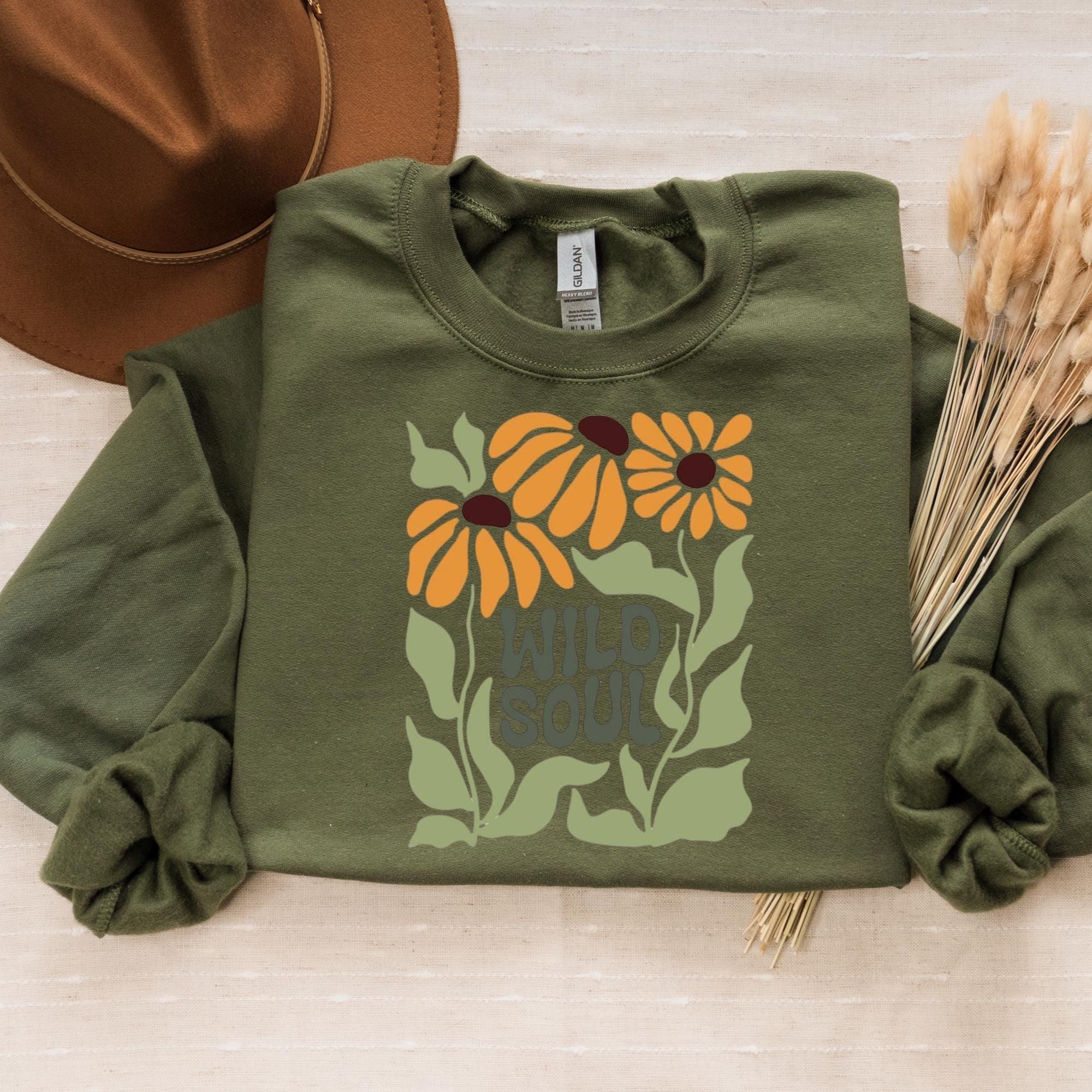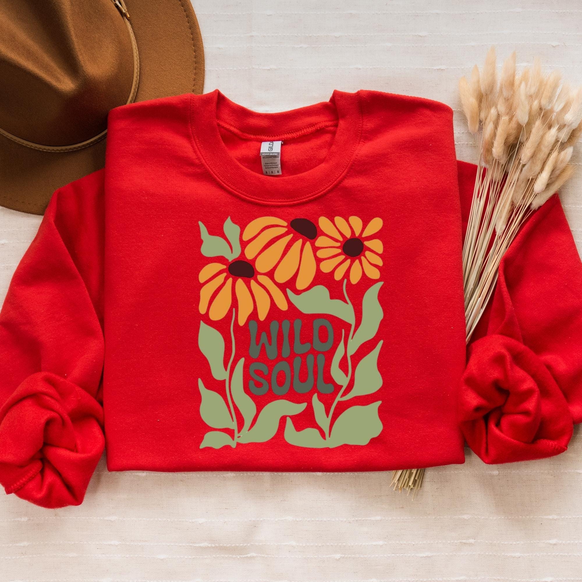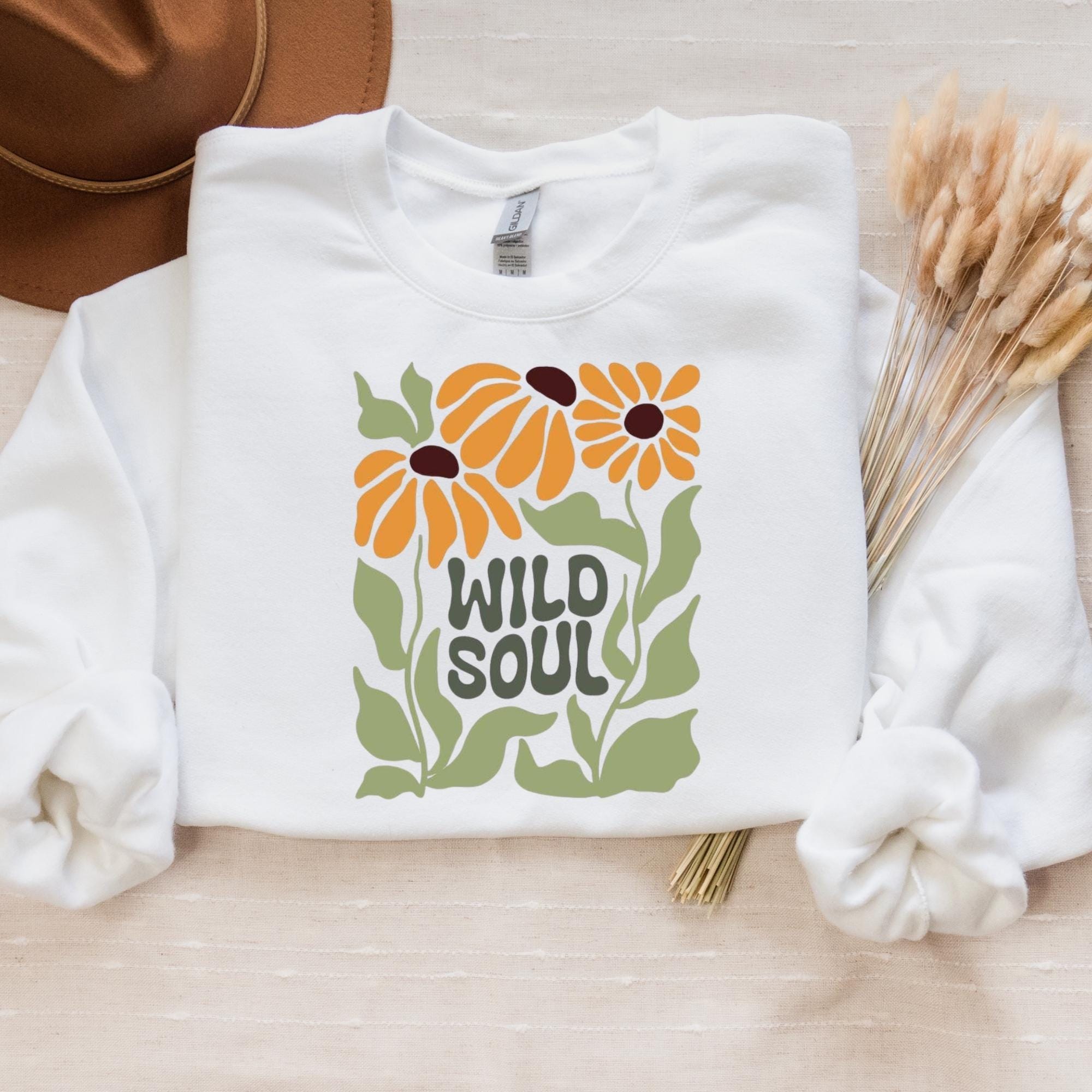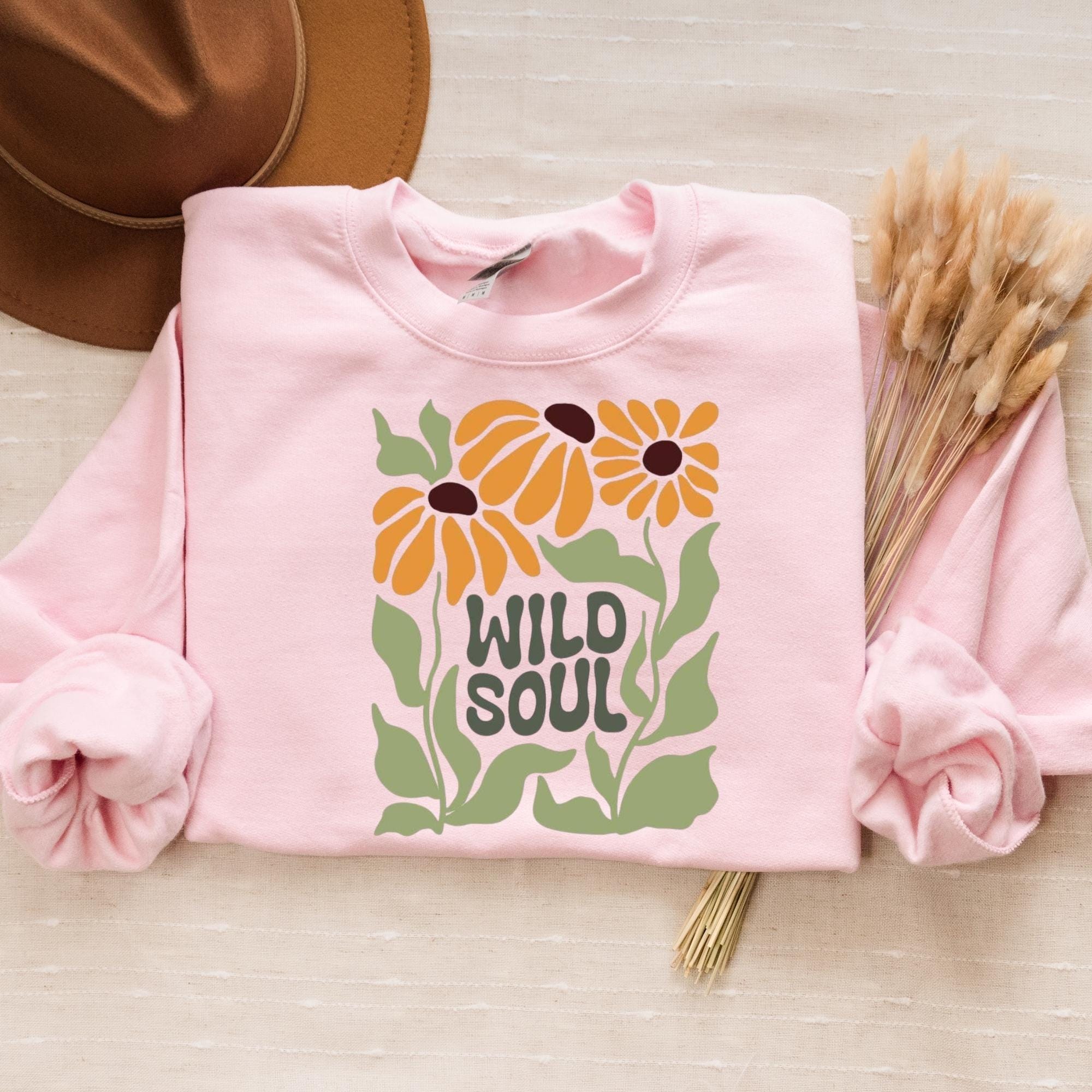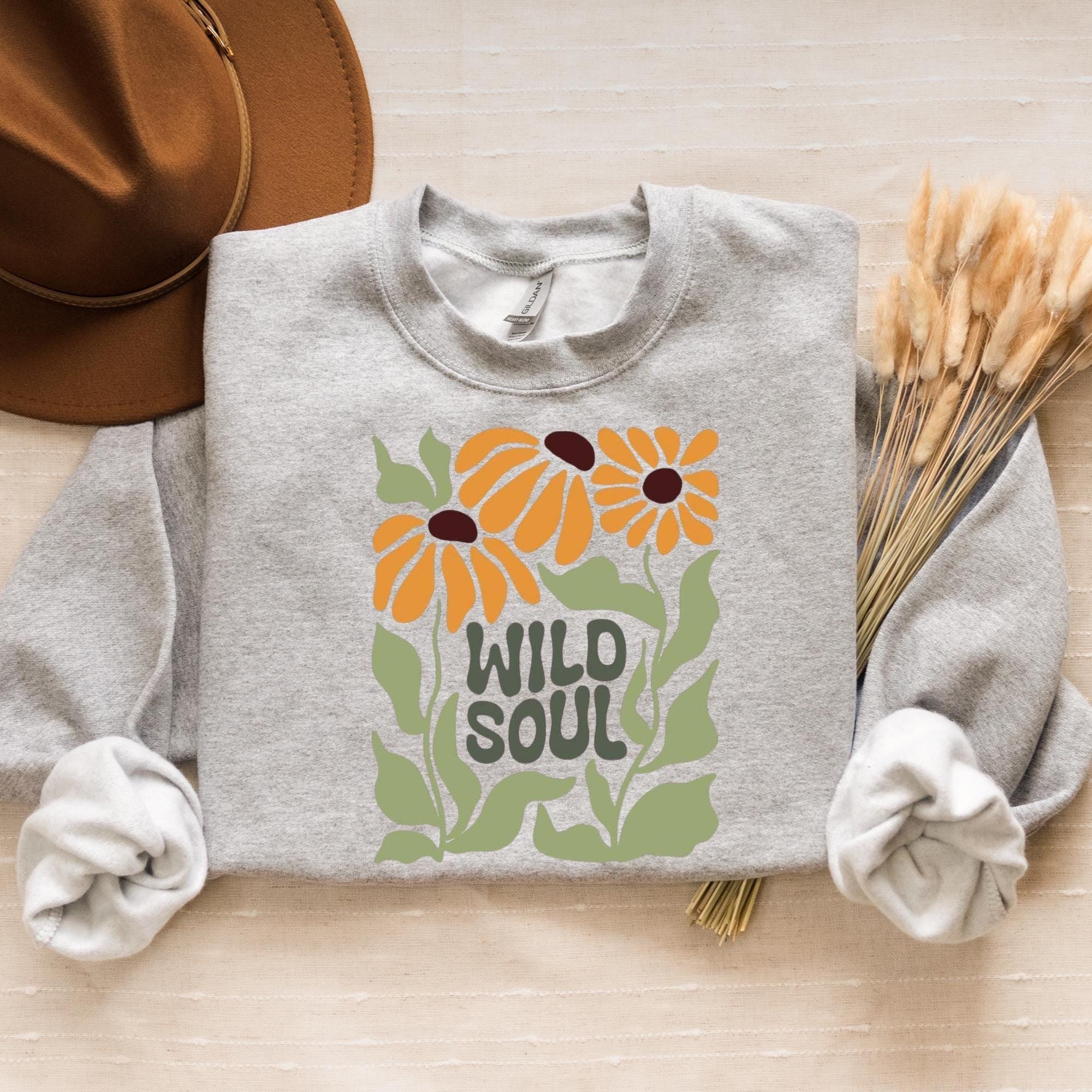 Wild Soul Retro Flower Sweatshirt - Boho Botanical Hippie Graphic Sweatshirt - Nature Lover Aesthetic Sweatshirt - Gift for Her