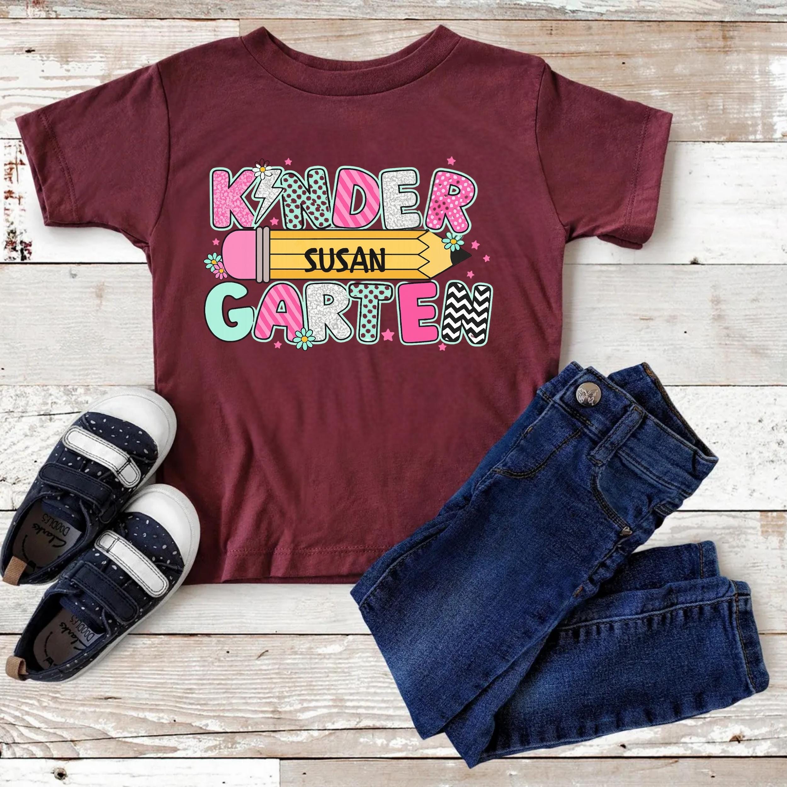 Personalized Kindergarten Tshirt Girls Custom Kids Name Back To School Shirt Toddler Kid Kindergarten Shirt With Name Kindergarten Girl Gift