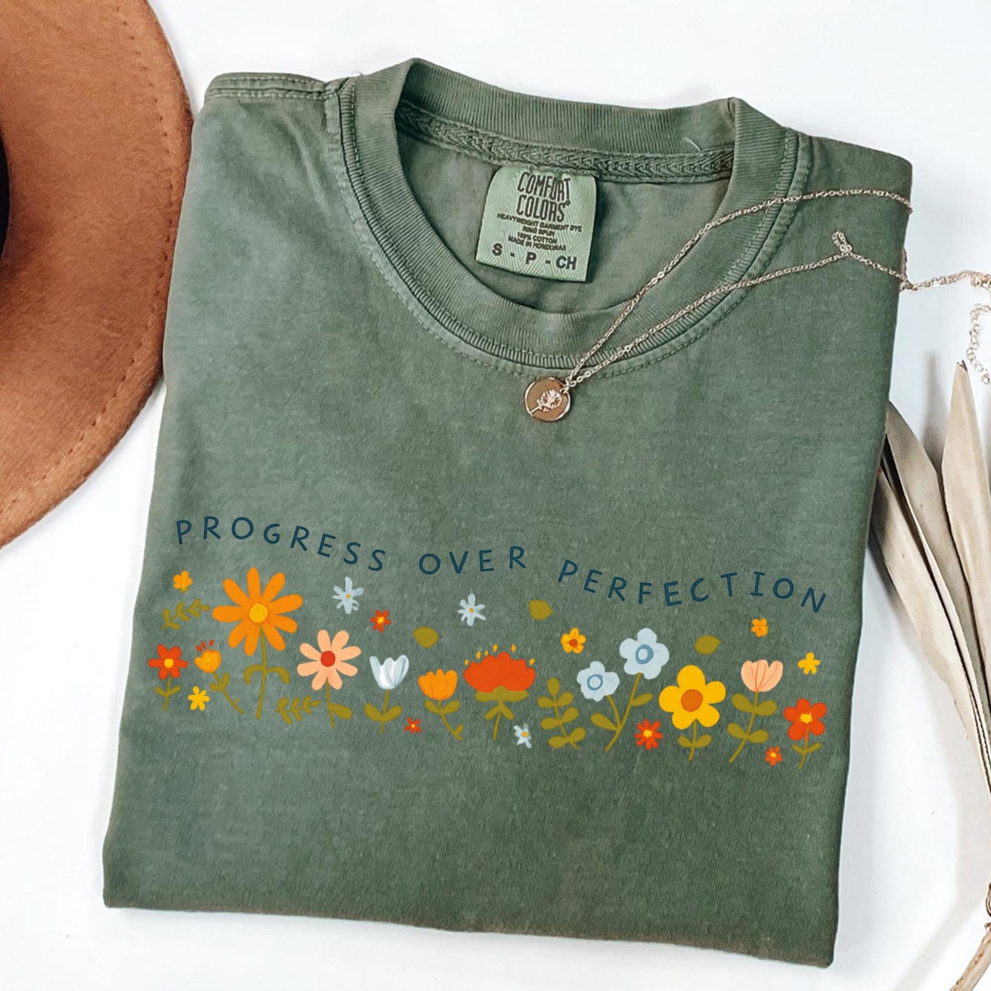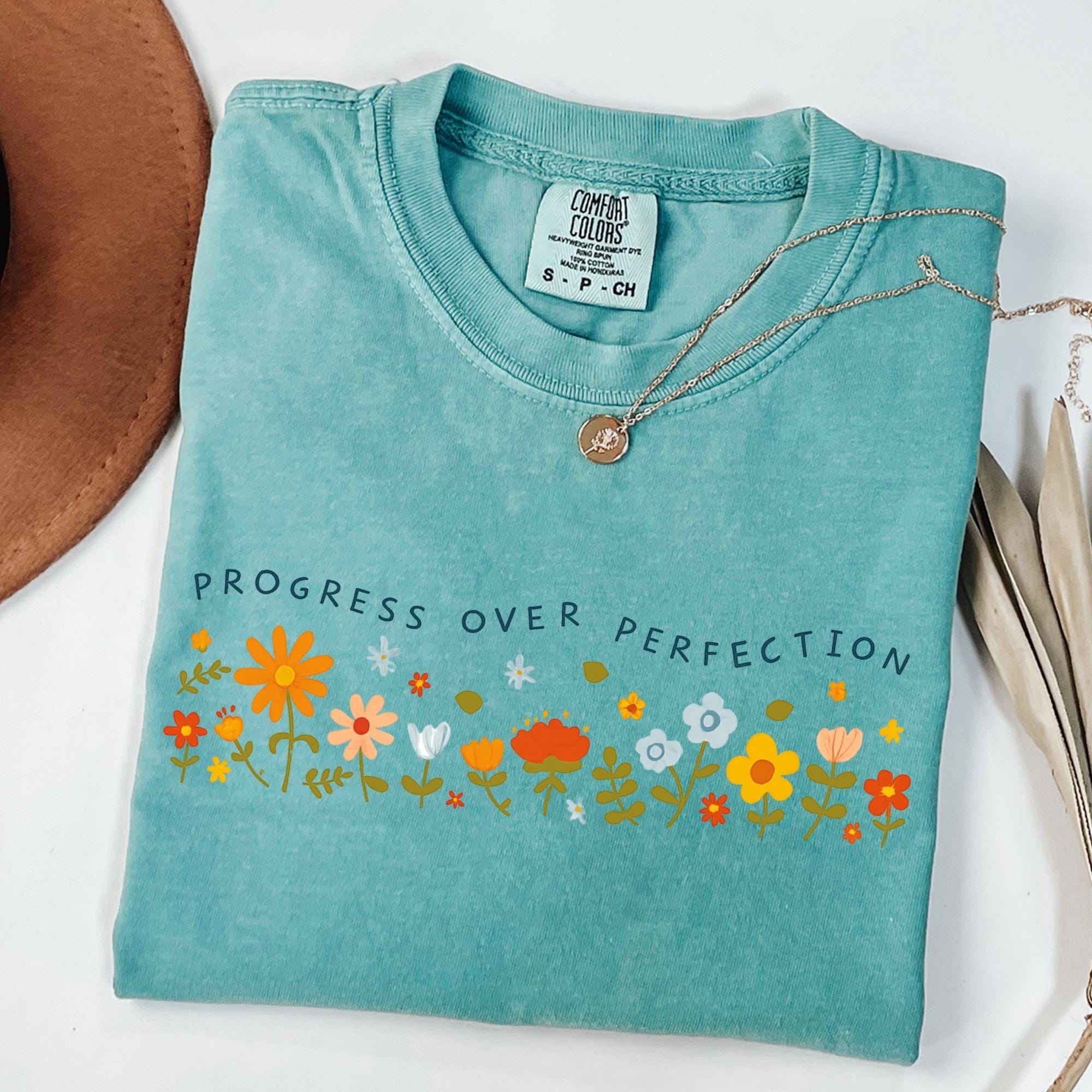 Comfort Colors Progress Over Perfection Shirt, Teacher Shirt, Back to School Shirt, Gift for Teacher, Teacher Appreciation, Inspirational Teacher
