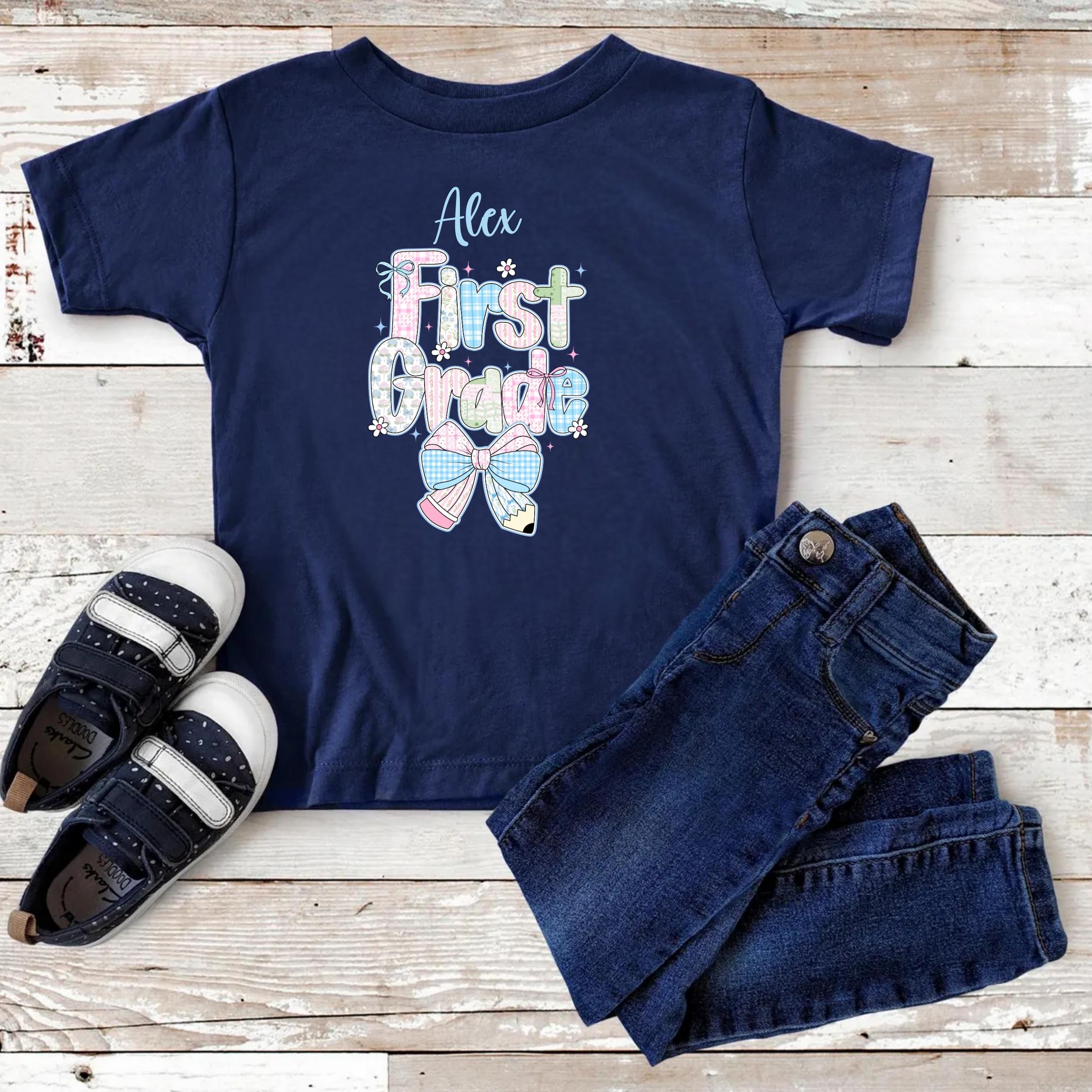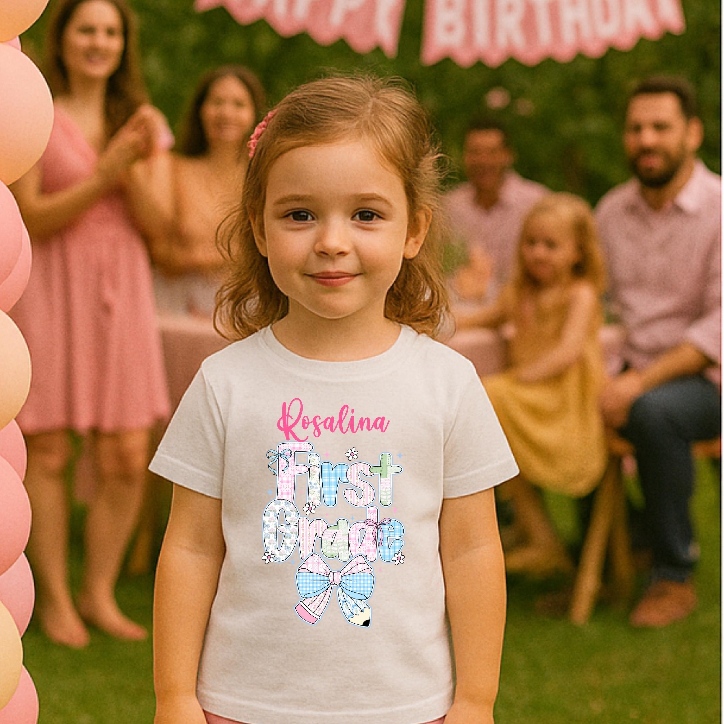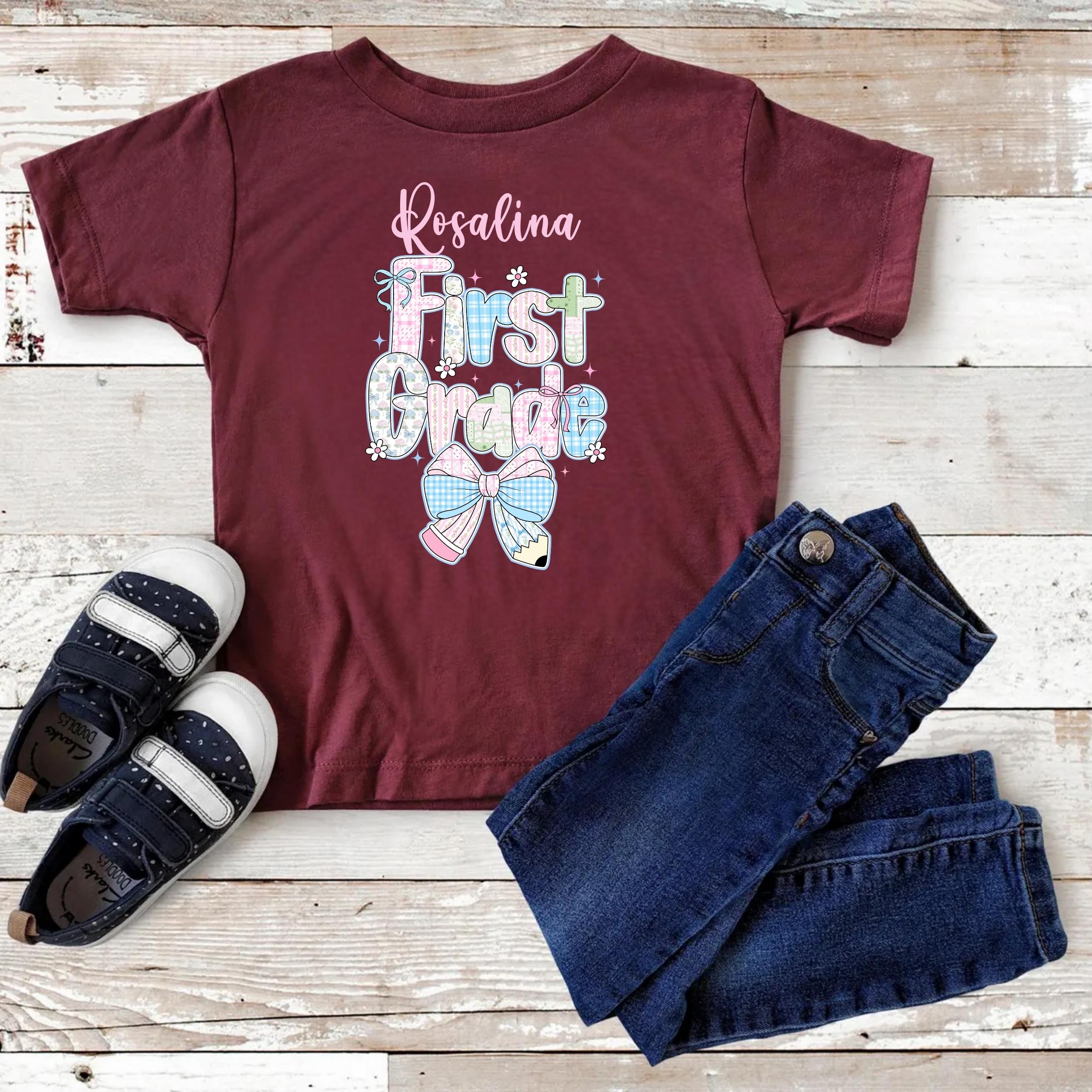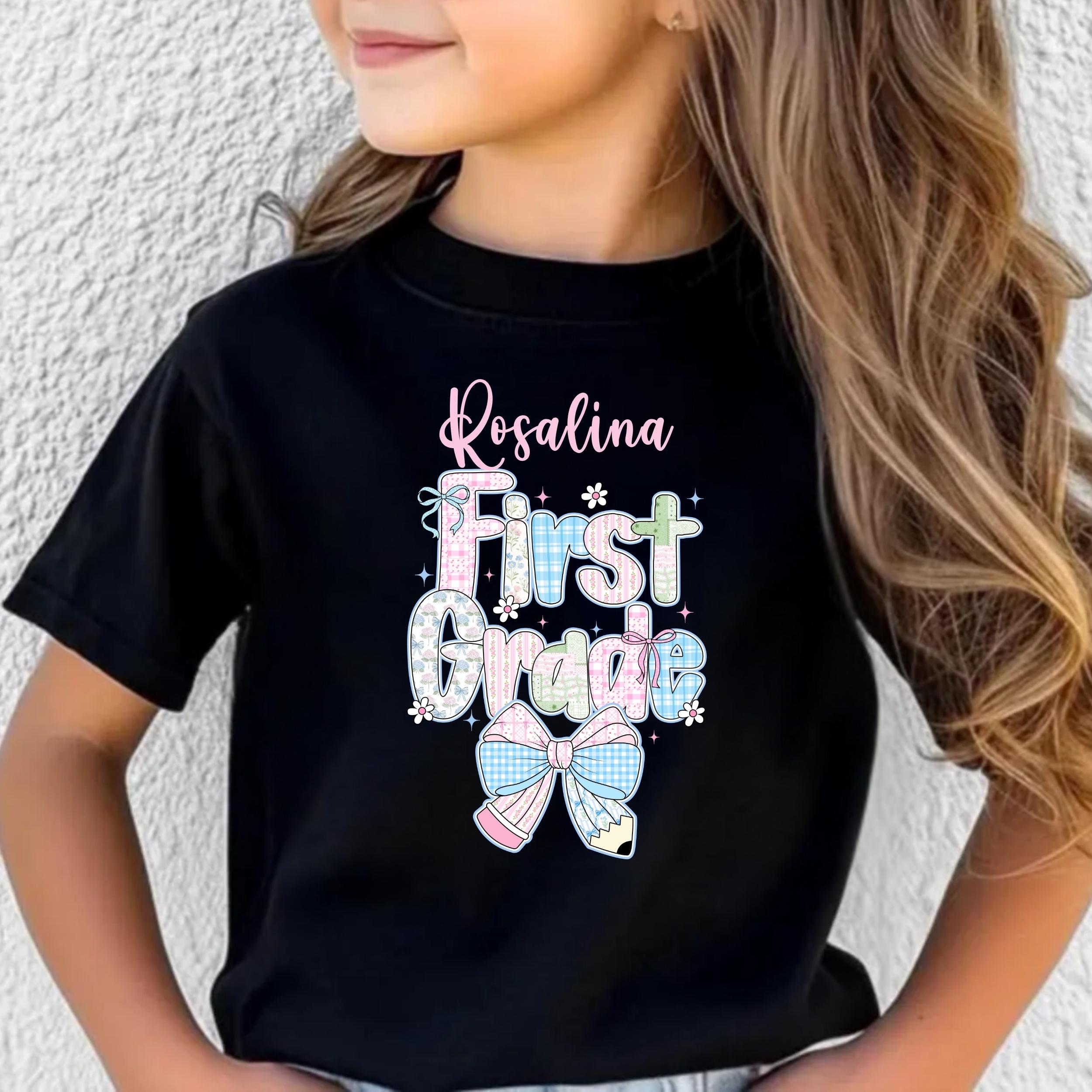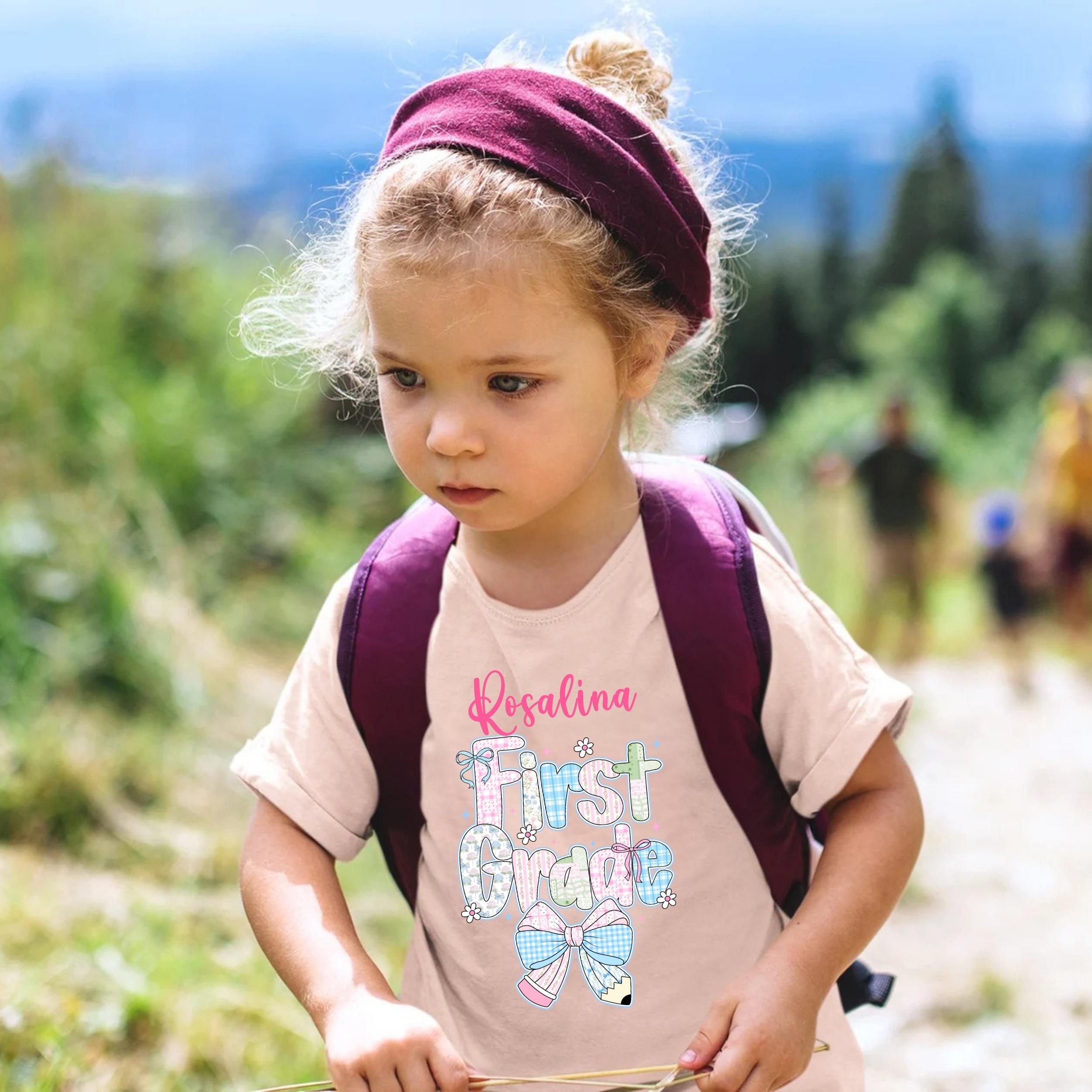 Custom Kids Name Back To School First Grade Shirt, Personalized Preppy 1st Grade Shirt for Girls, Elementary First Day Of School Outfit