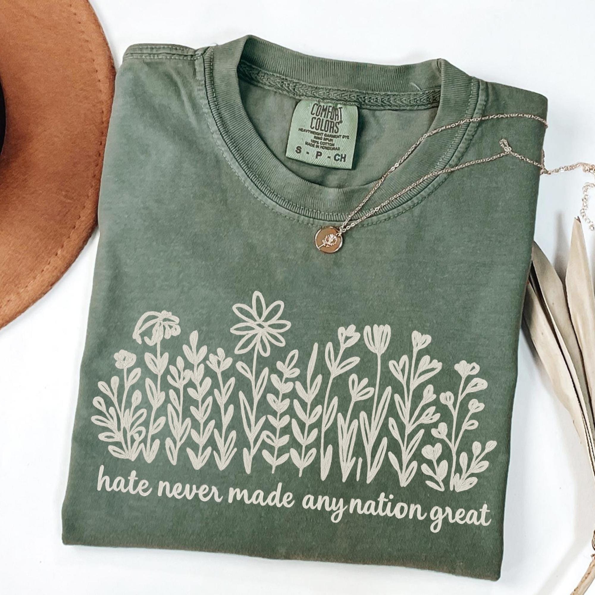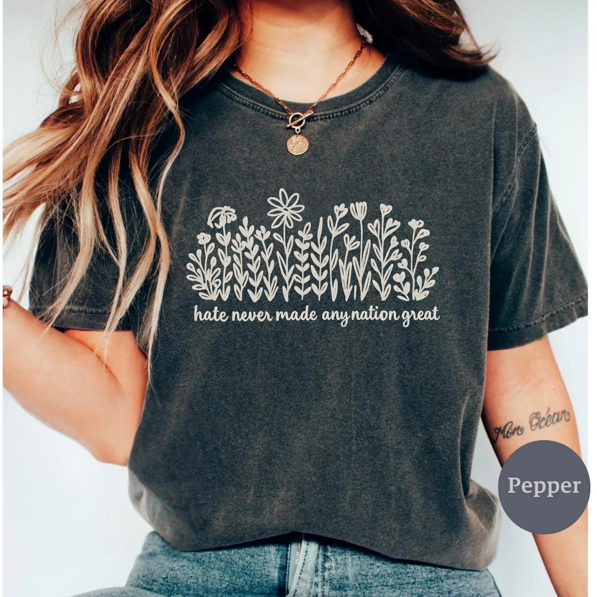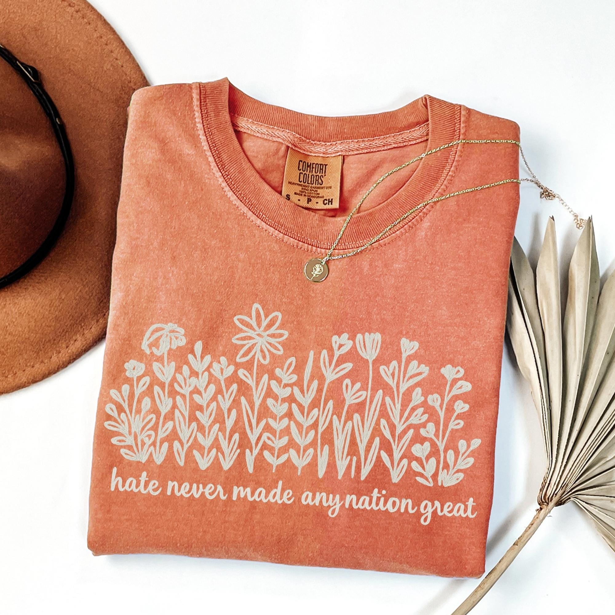 Comfort Colors Wildflower Political Anti Trump Shirt, Hate Never Made Any Nation Great, Feminist Political Statement Tee, Floral Graphic Tee