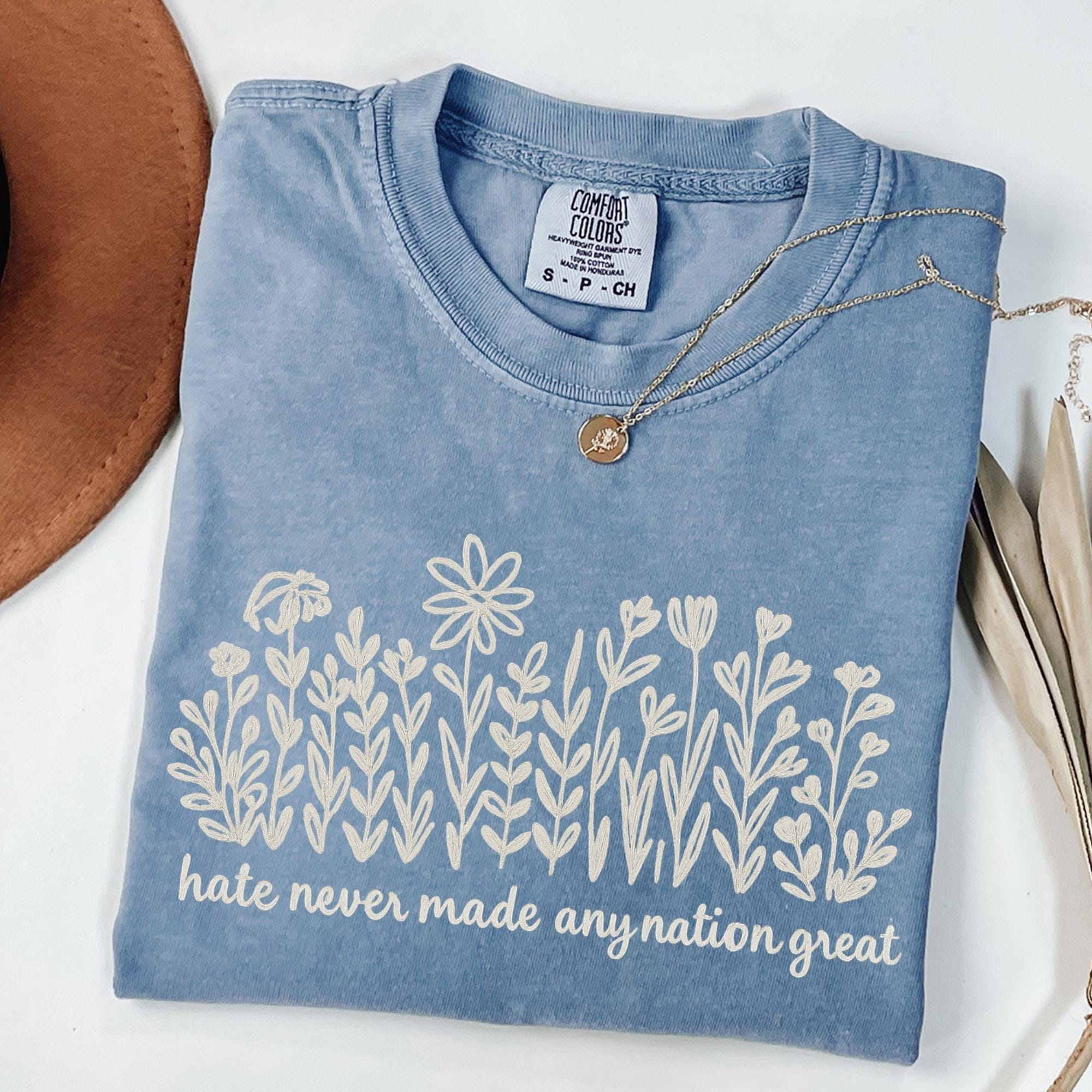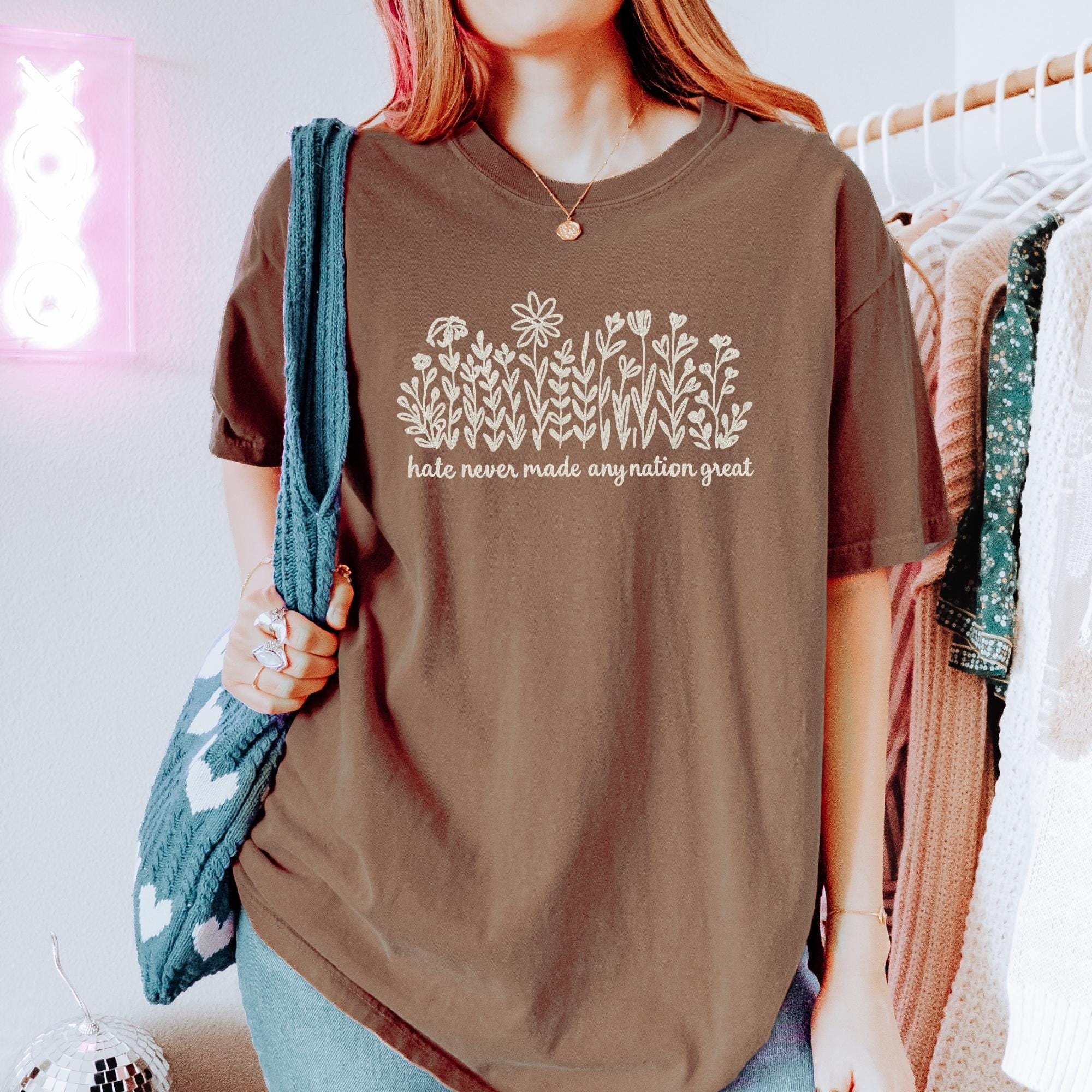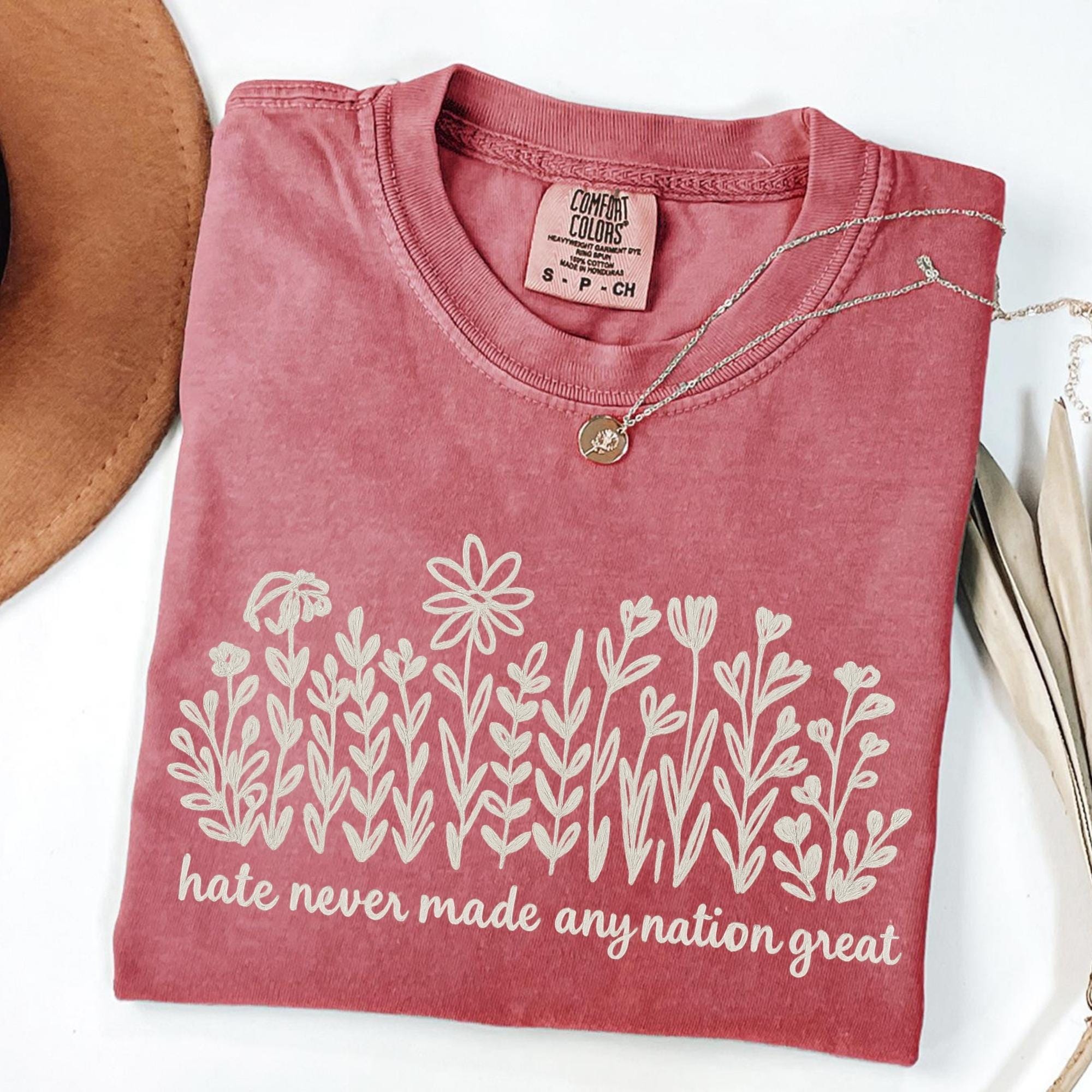 Comfort Colors Wildflower Political Anti Trump Shirt, Hate Never Made Any Nation Great, Feminist Political Statement Tee, Floral Graphic Tee