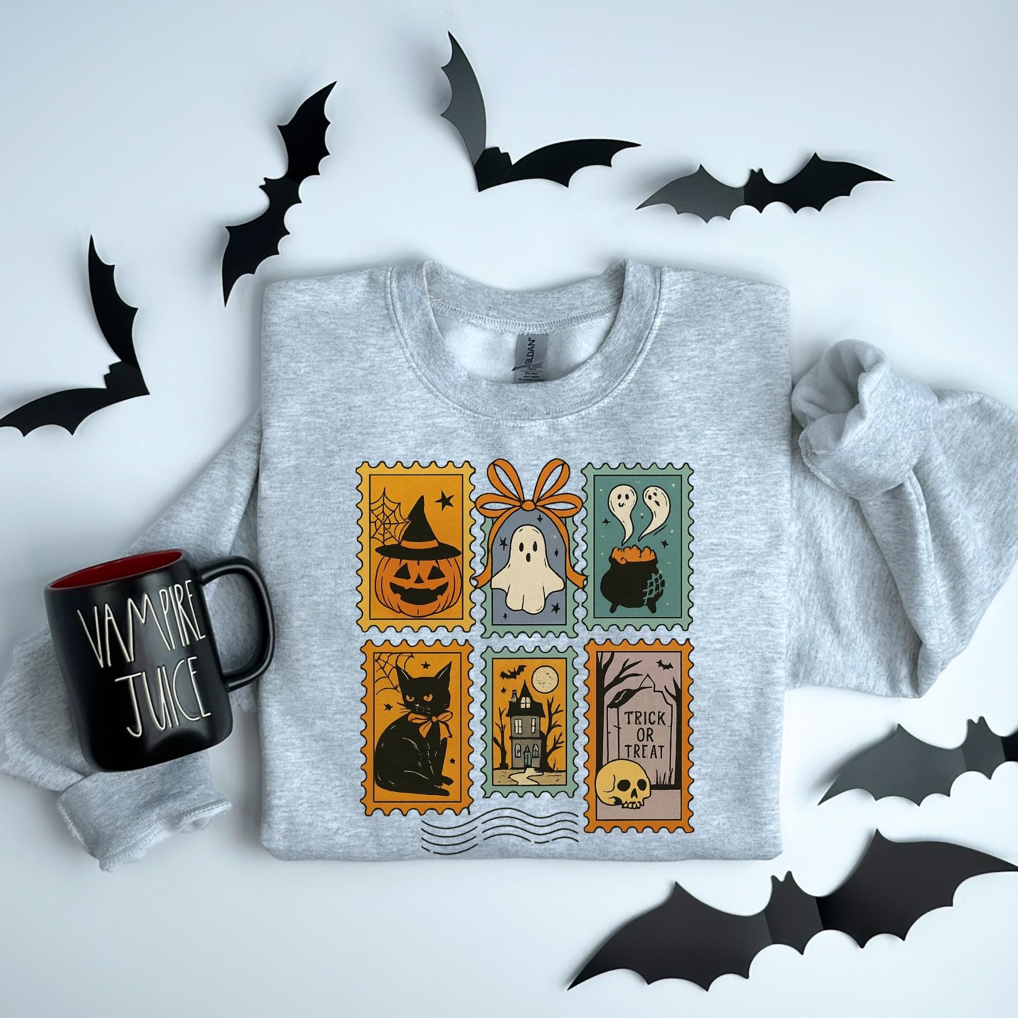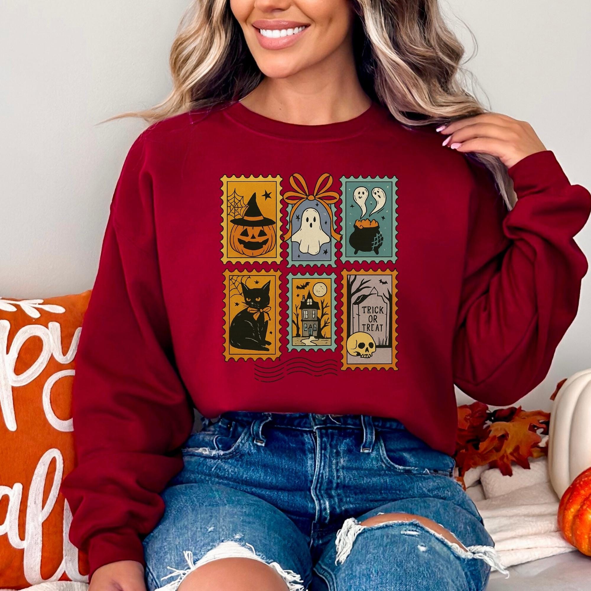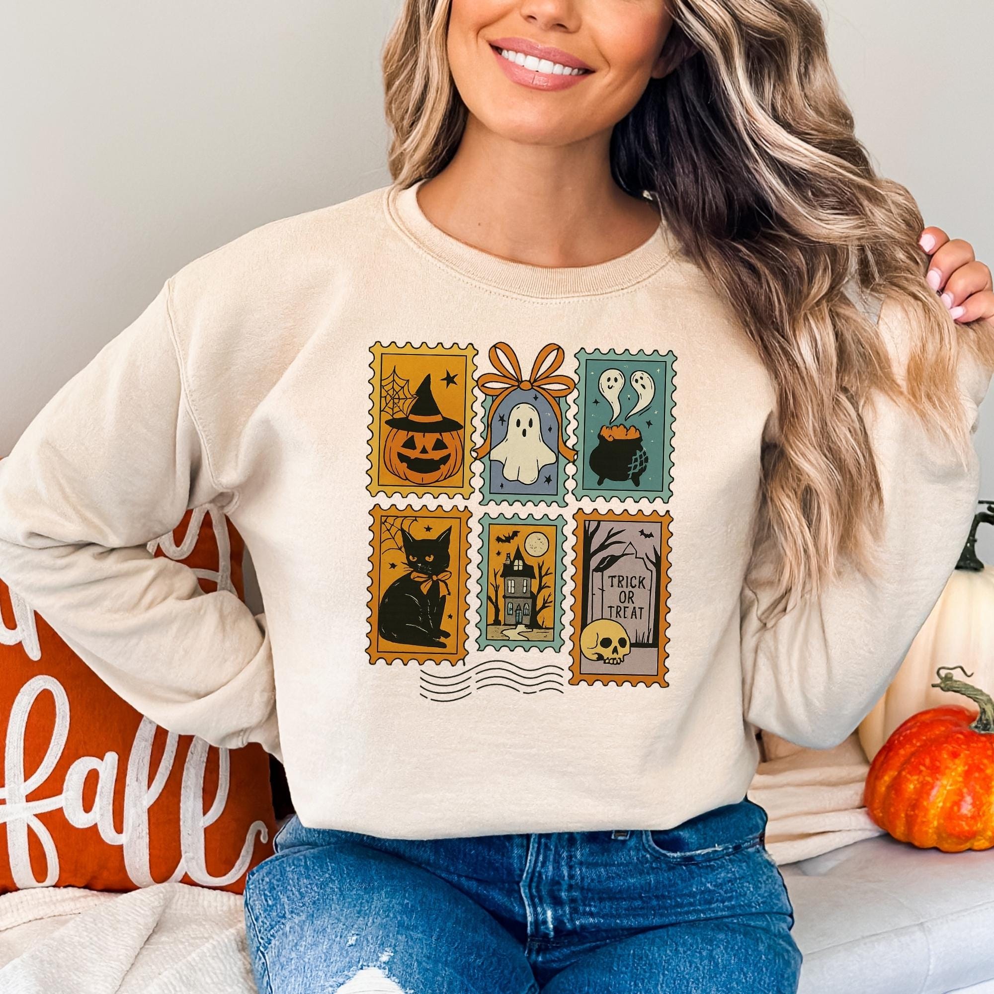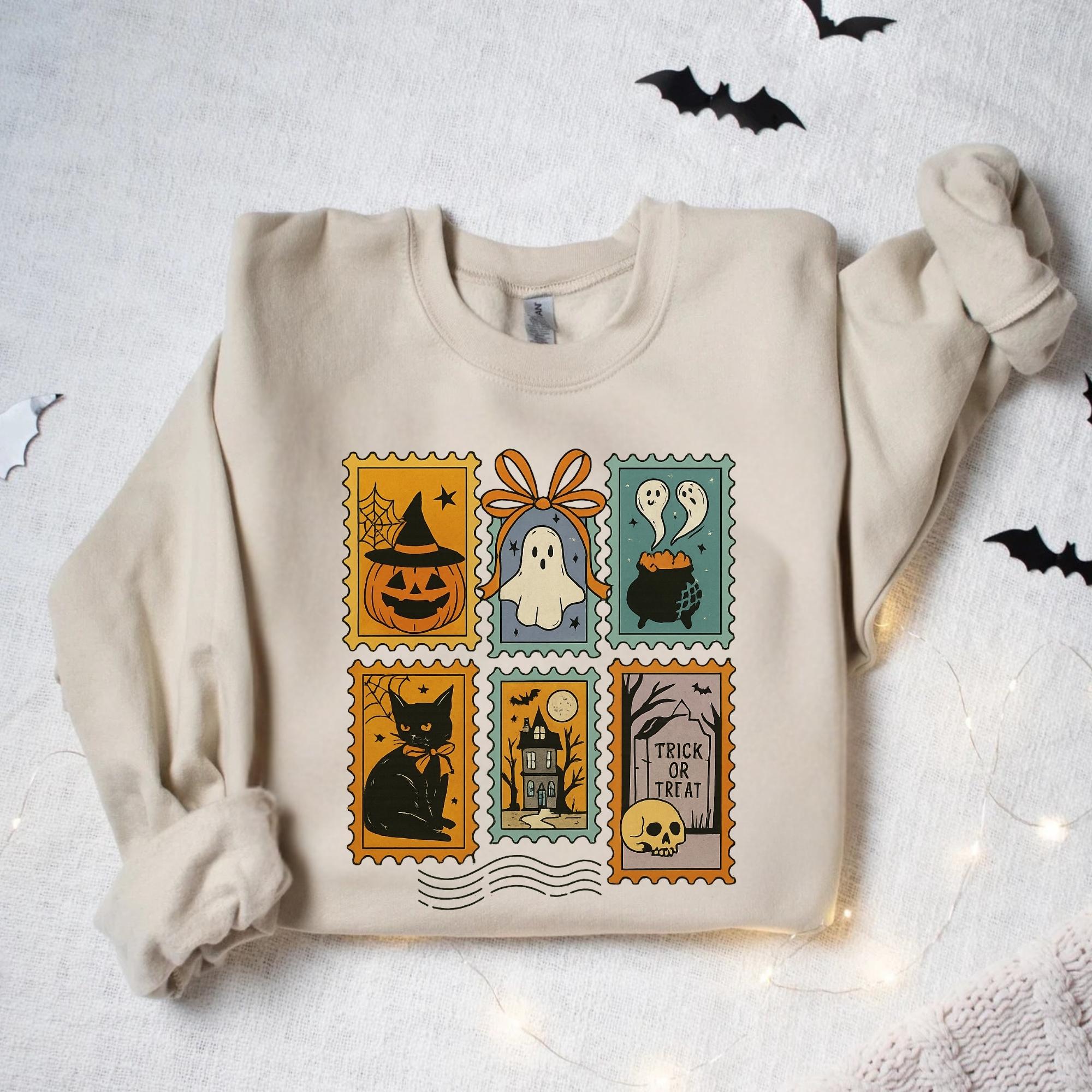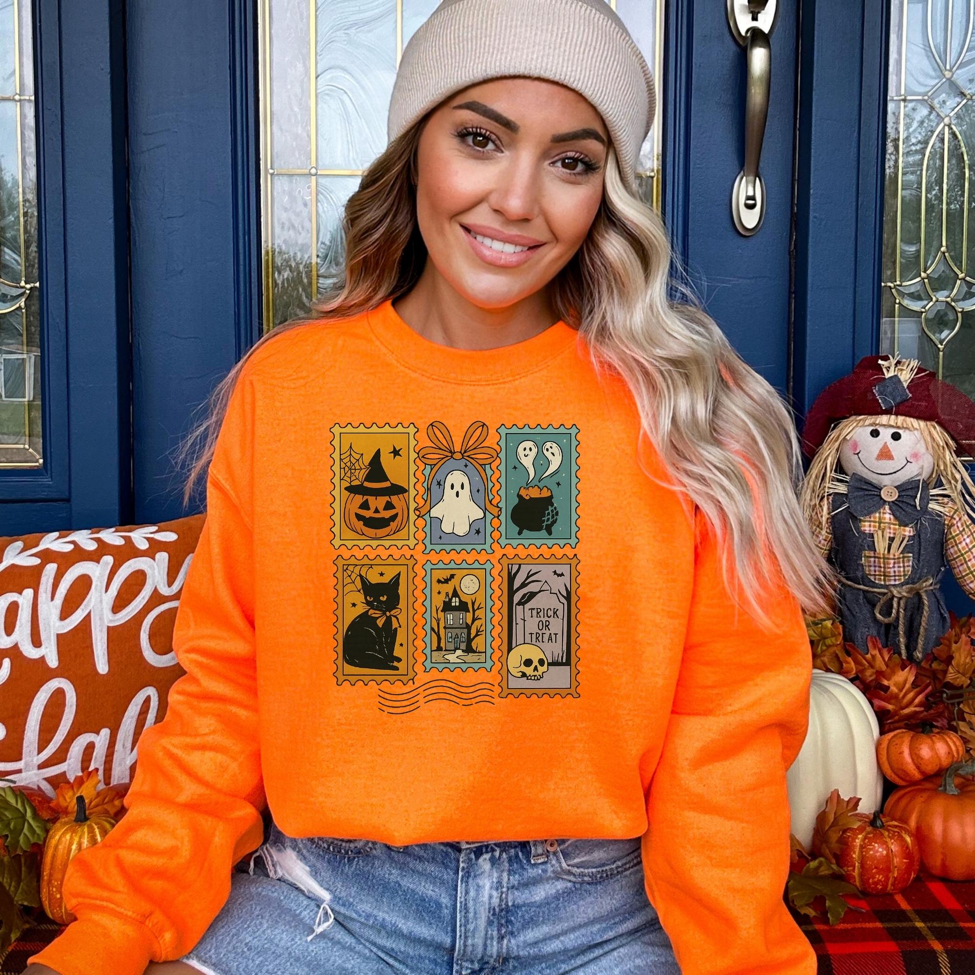 Halloween Cute Ghost Pumpkin Cat Sweatshirt, Cute Ghost Sweatshirt, Retro Ghost Tee, Women's Halloween Sweatshirt, Fall Spooky Cat sweatshirt