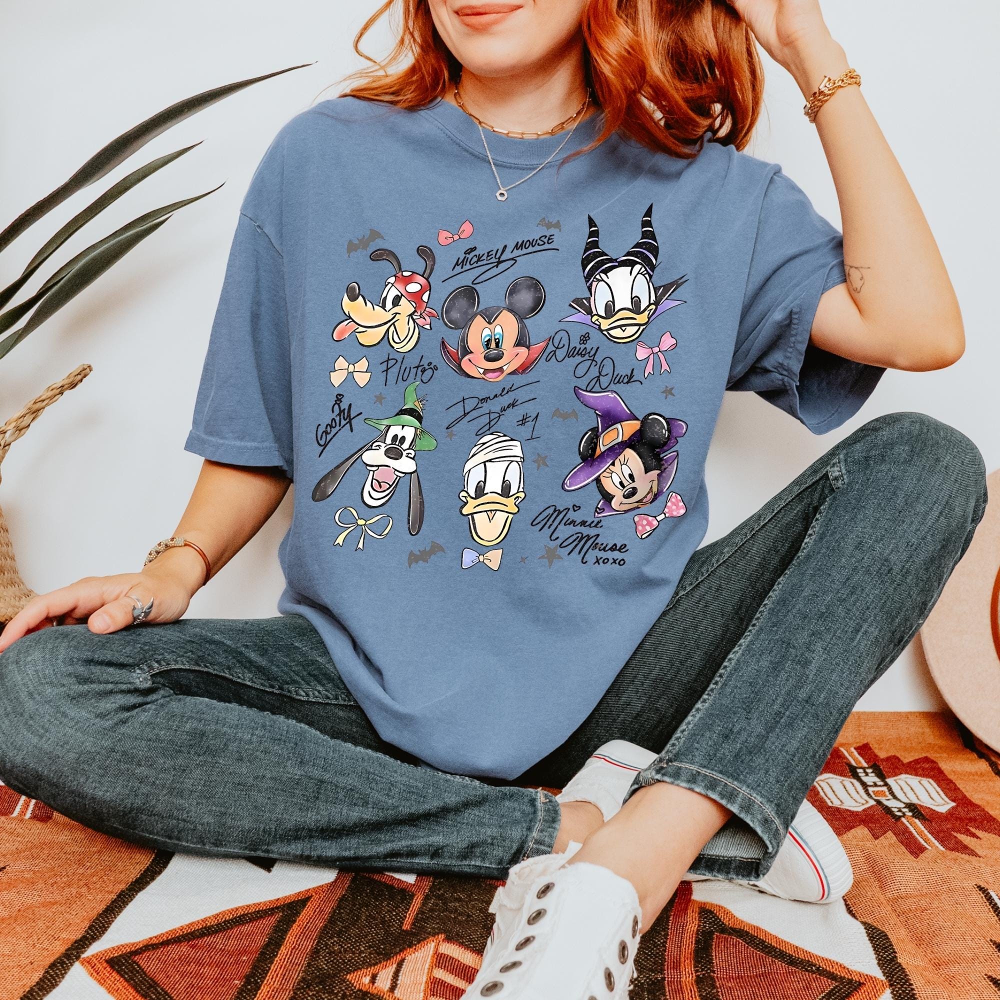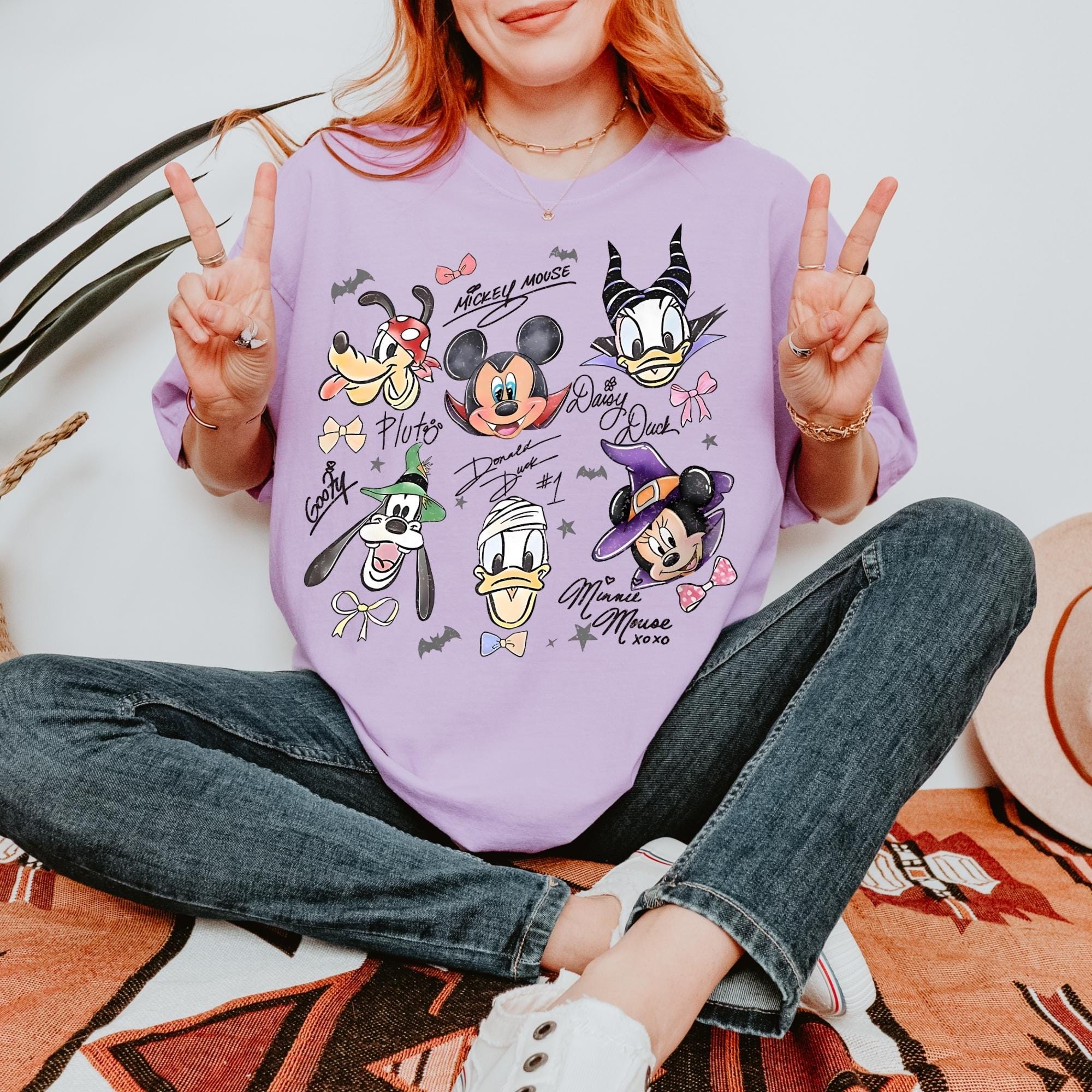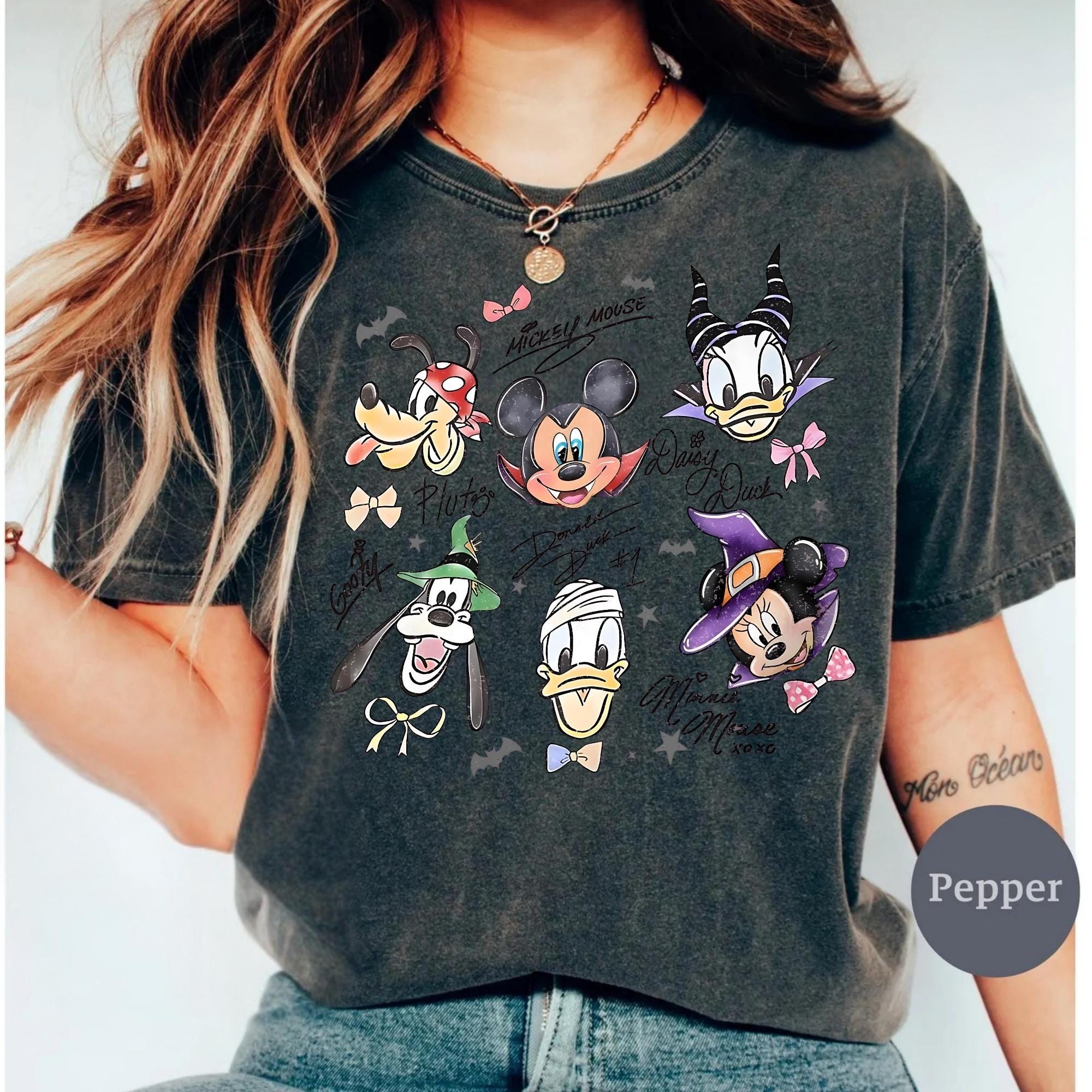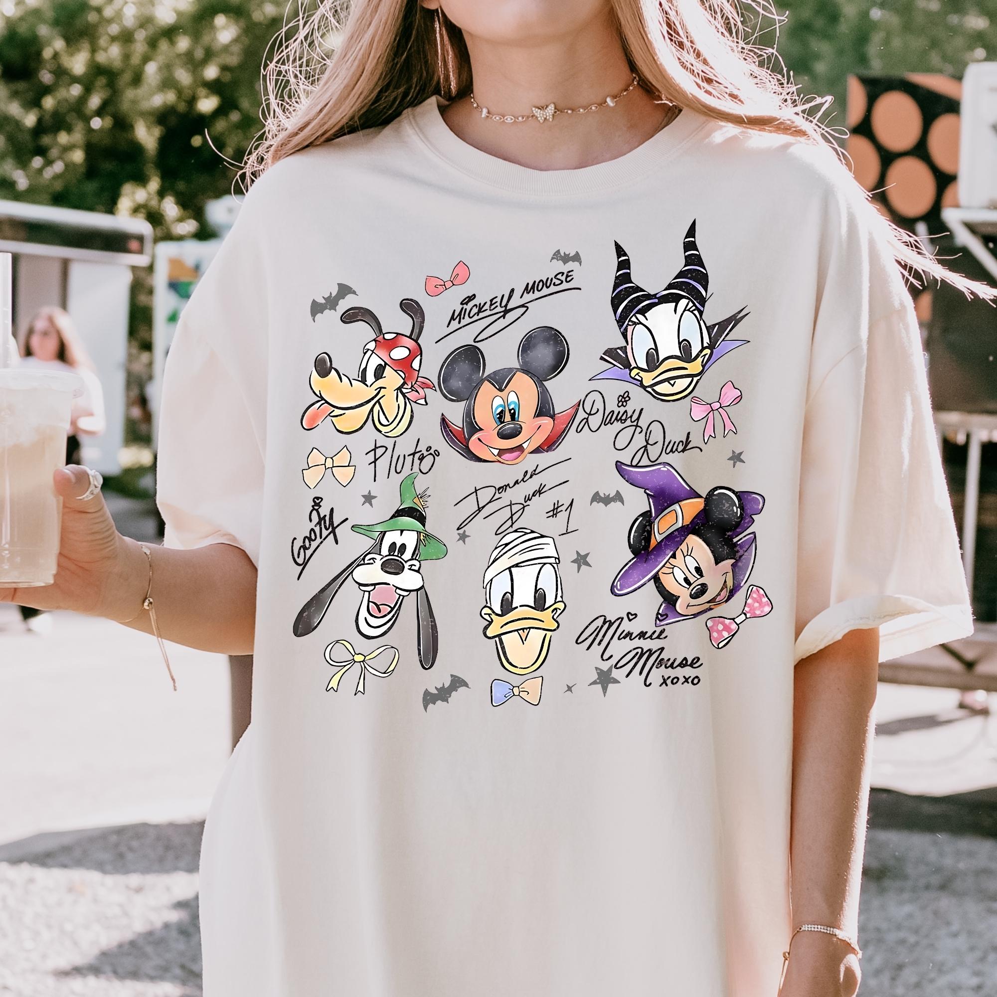 Retro Mickey & Friends with Signs Halloween Comfort Colors Shirt, Mickey's Not So Scary Halloween Party Tee, Halloween Party Trip 2025 Shirt
