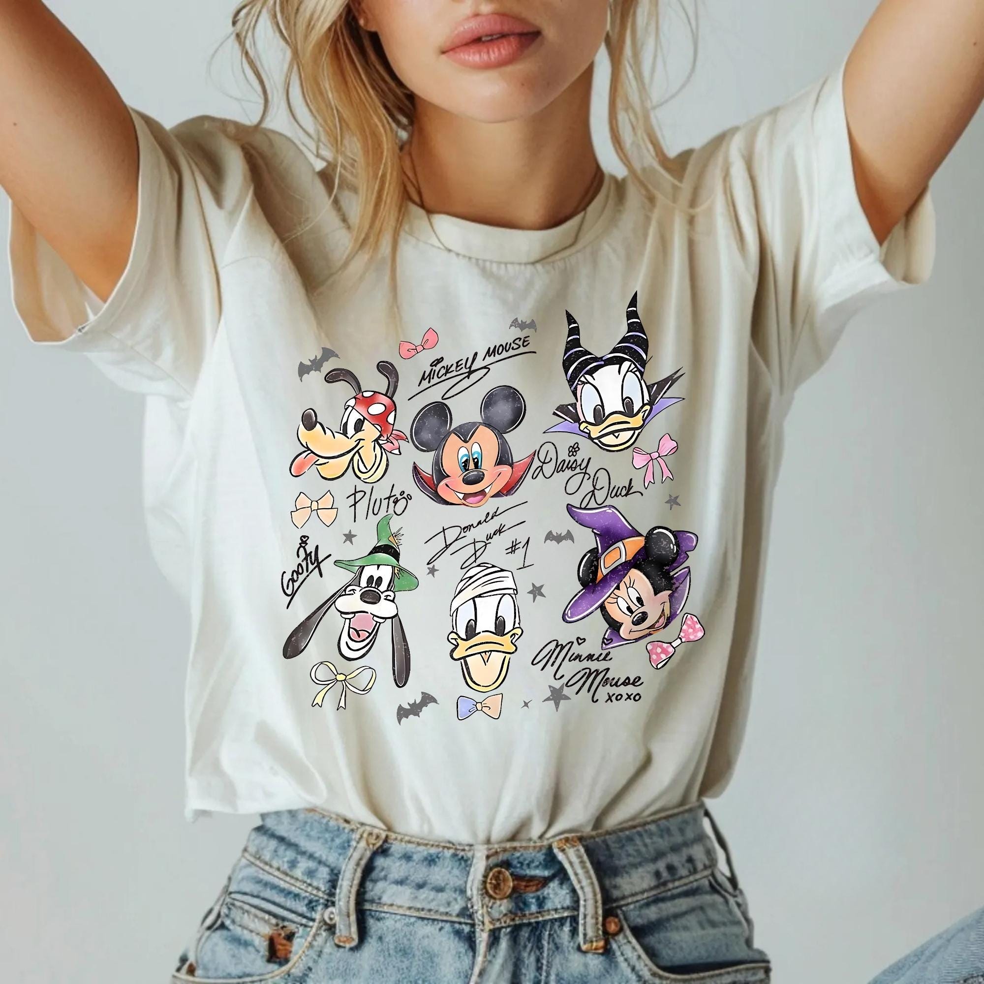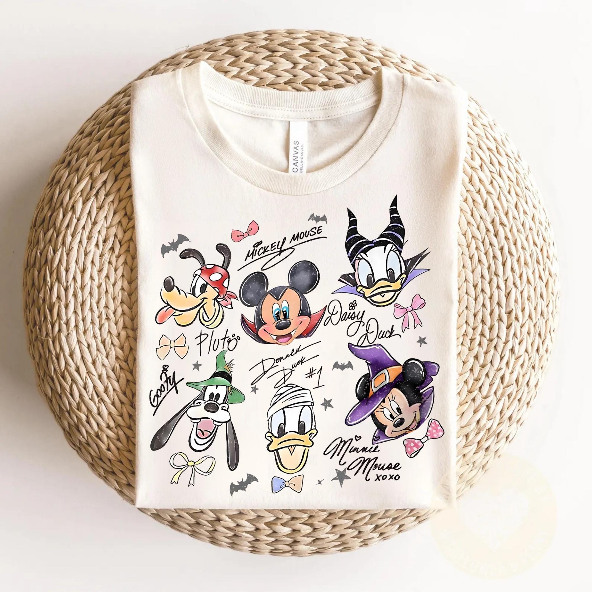 Retro Mickey & Friends with Signs Halloween Shirt, Mickey's Not So Scary Halloween Party Tee, Halloween Party Trip 2025 Shirt