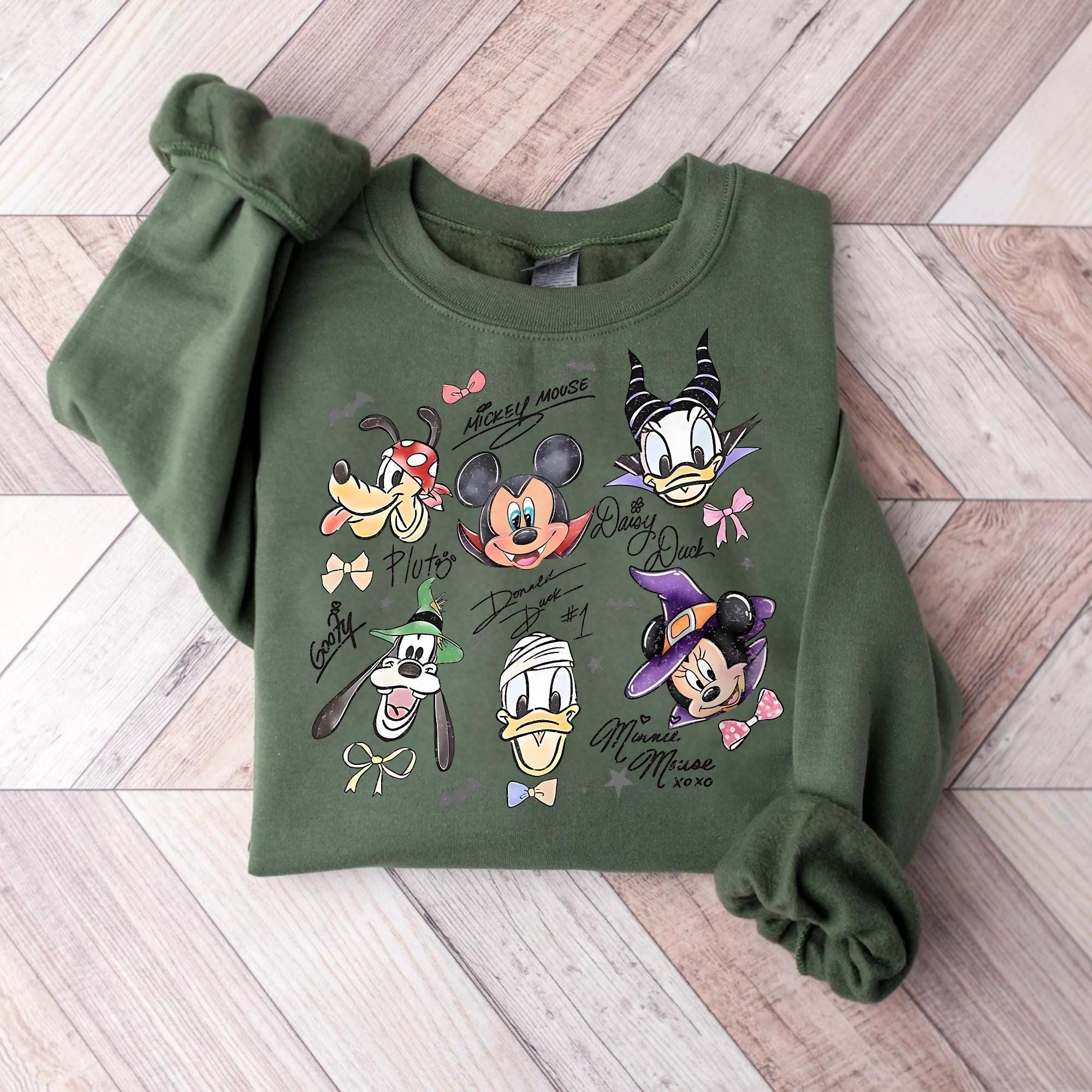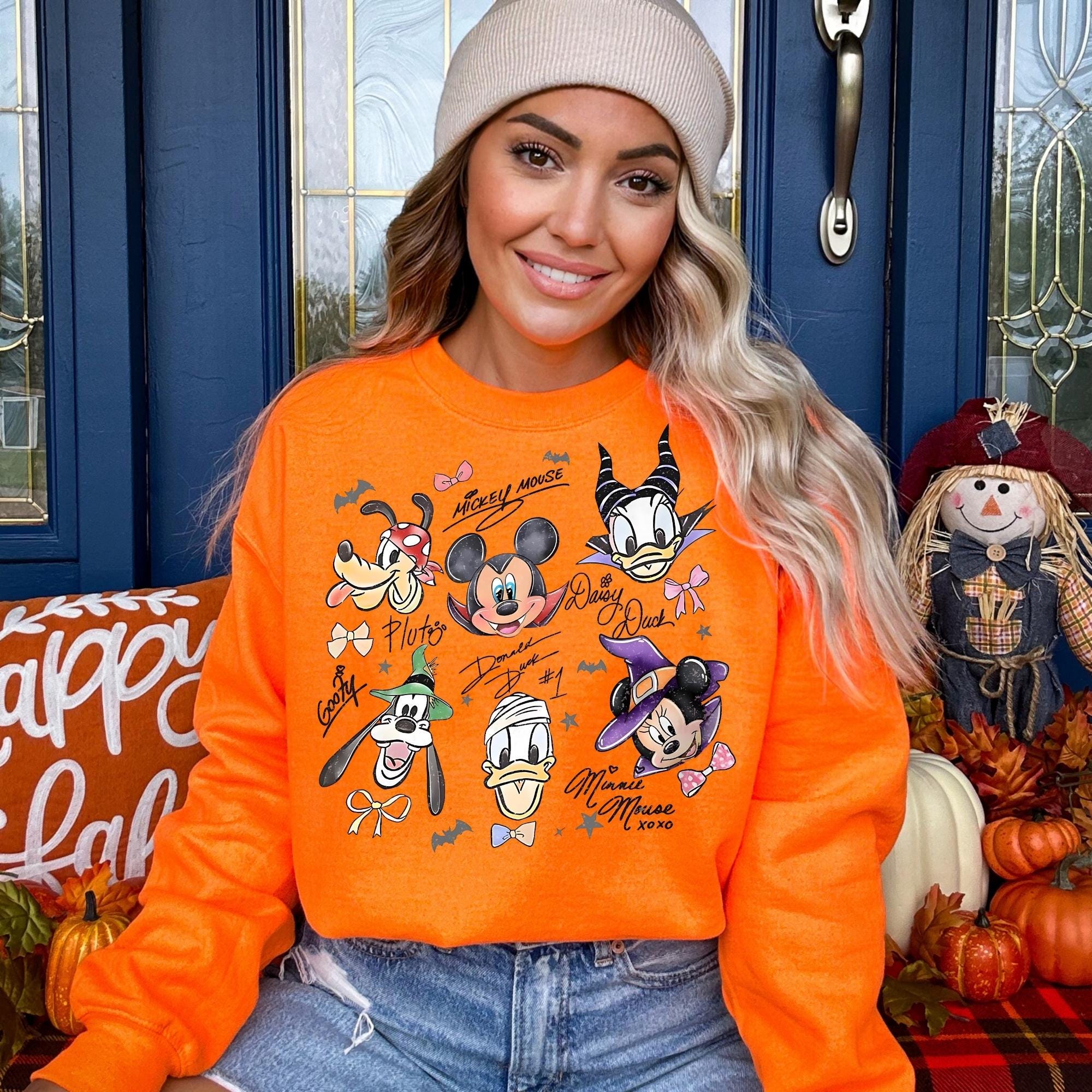 Retro Mickey & Friends with Signs Halloween Sweatshirt, Mickey's Not So Scary Halloween Party Tee, Halloween Party Trip 2025 Sweatshirt