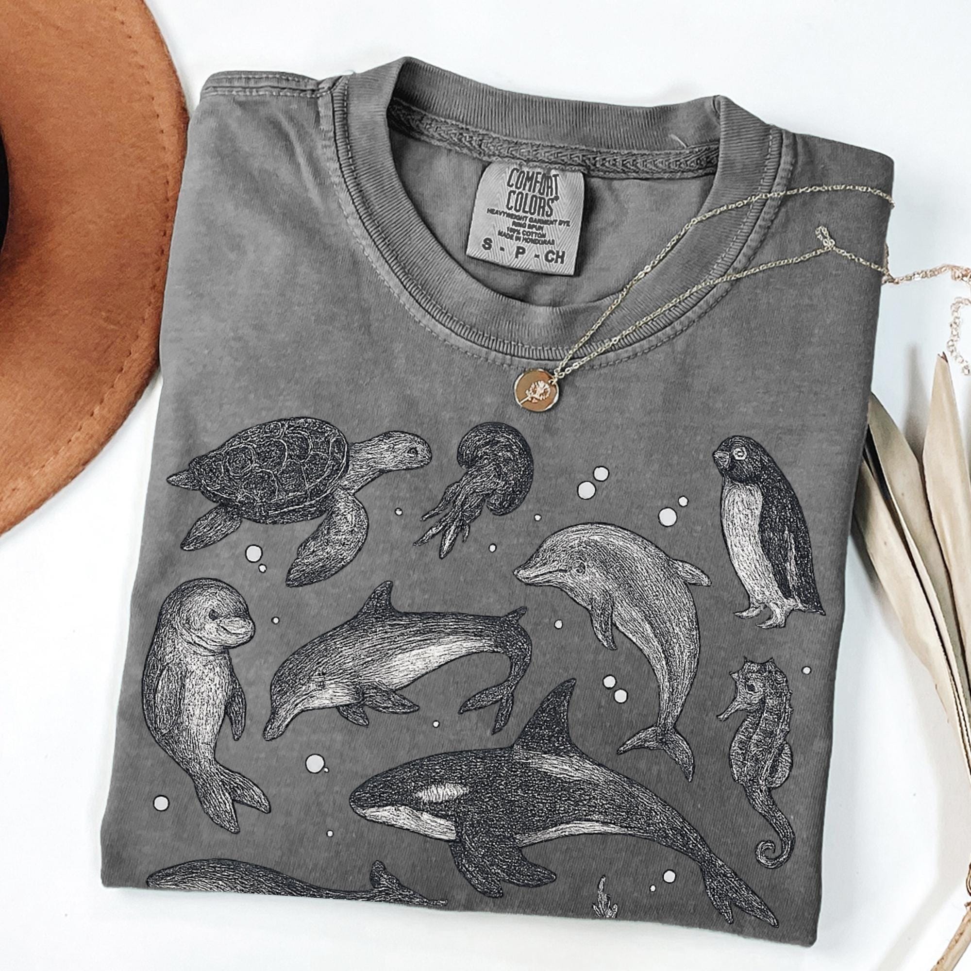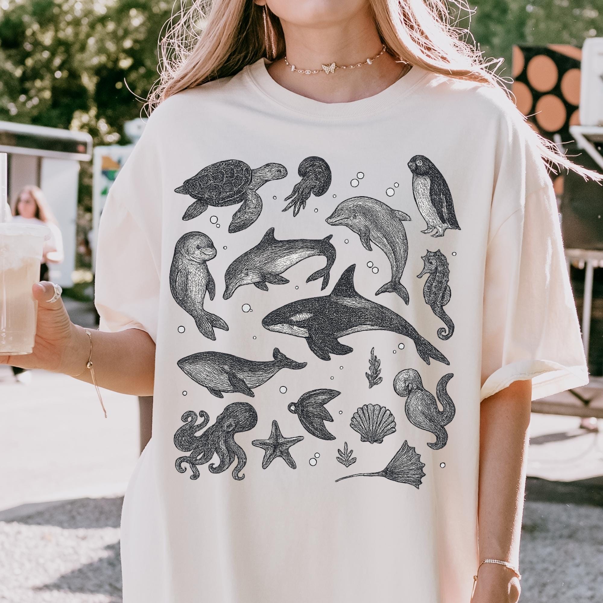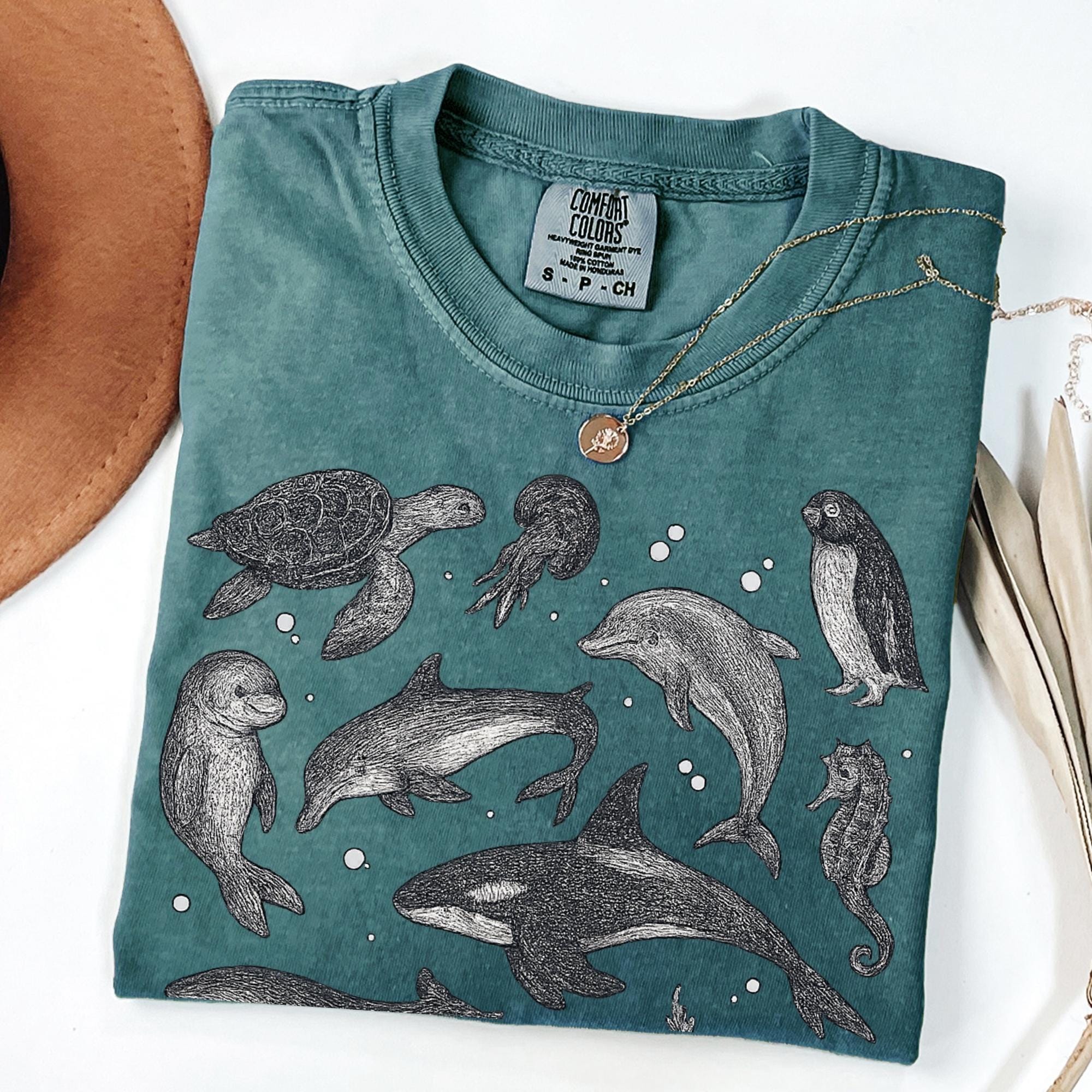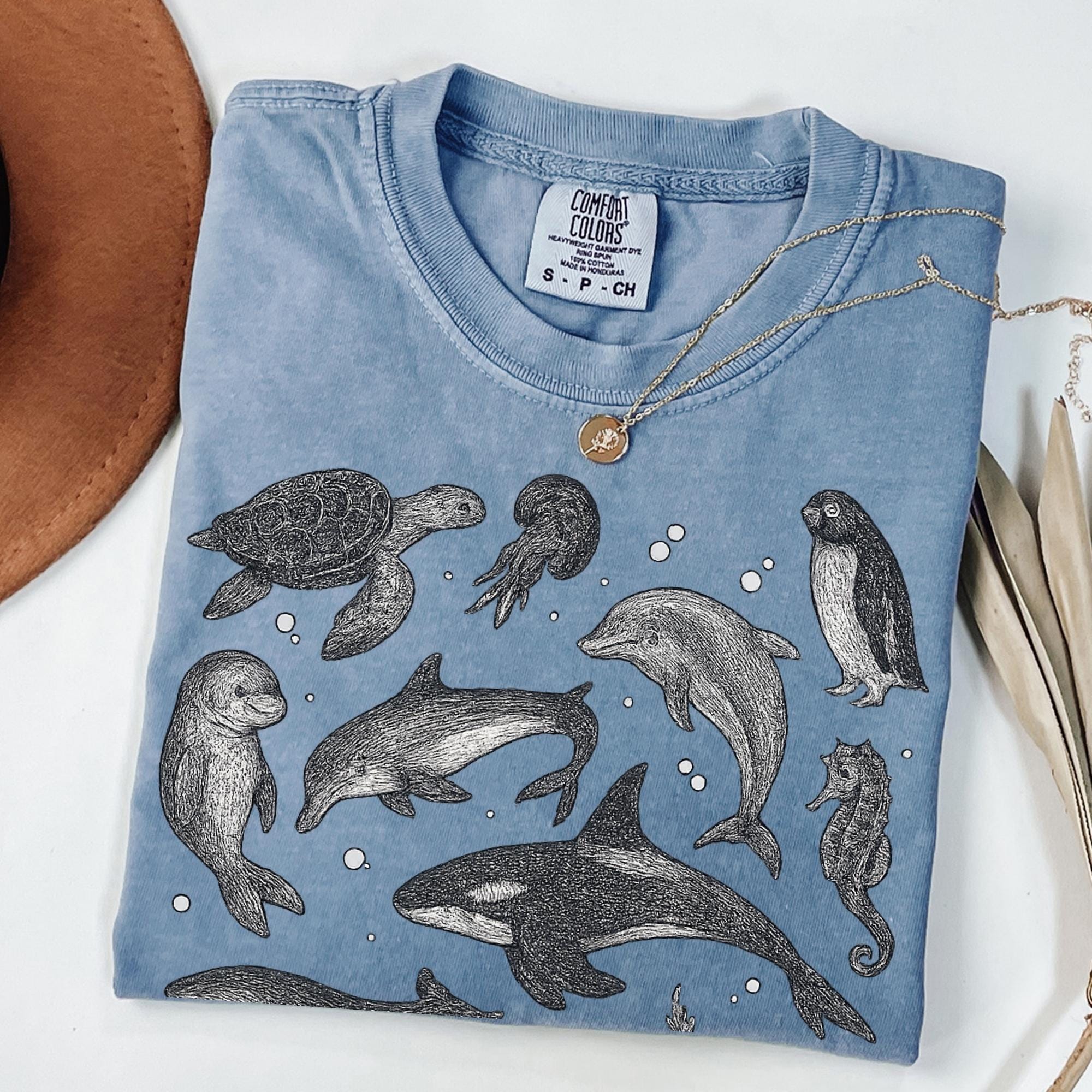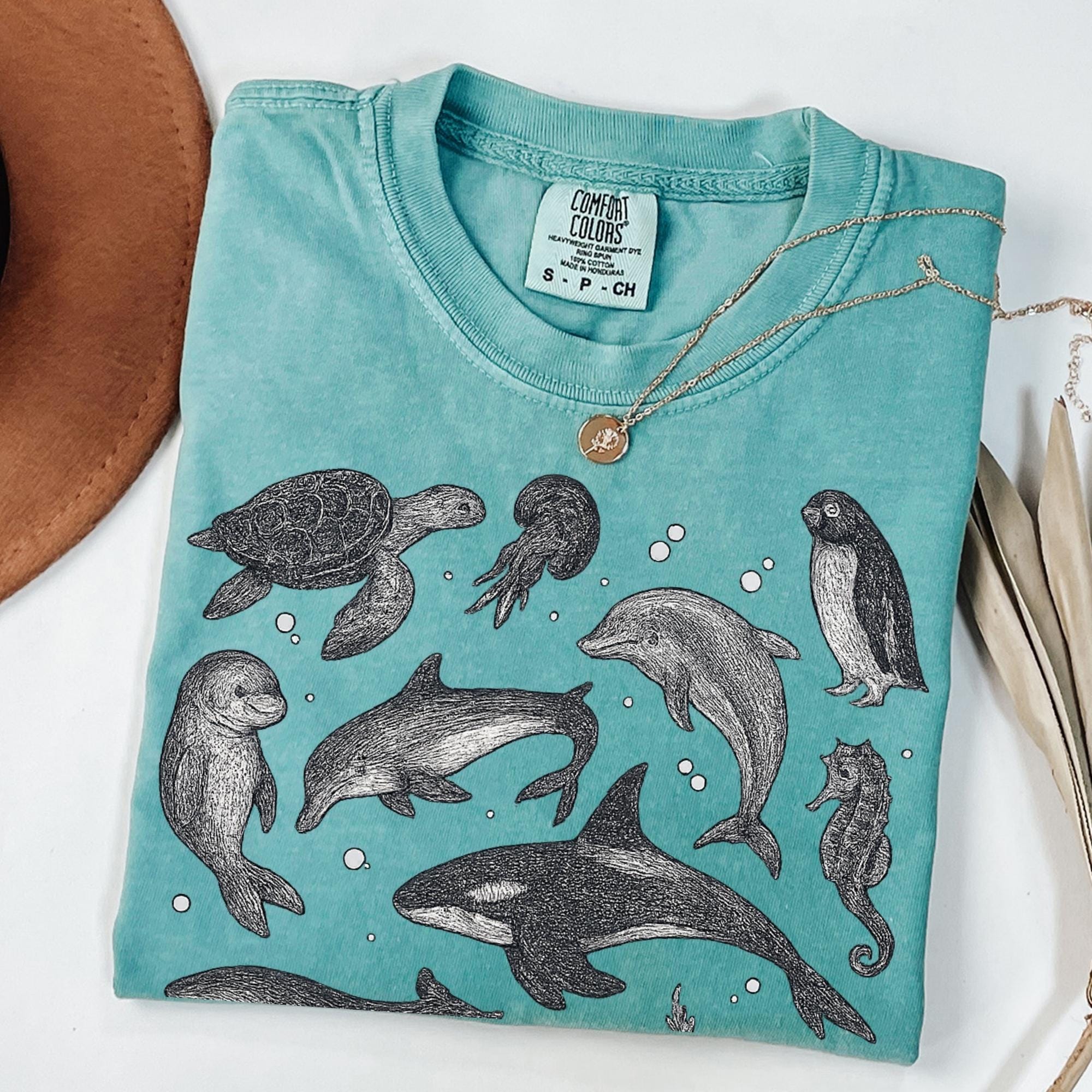 Sea Animals 90s Vintage Style Tshirt, Retro Comfort Colors® Y2k Ocean Shirt, Sealife, Whale, Orca, Turtle, Dolphin Shit, Unisex Adult Tee