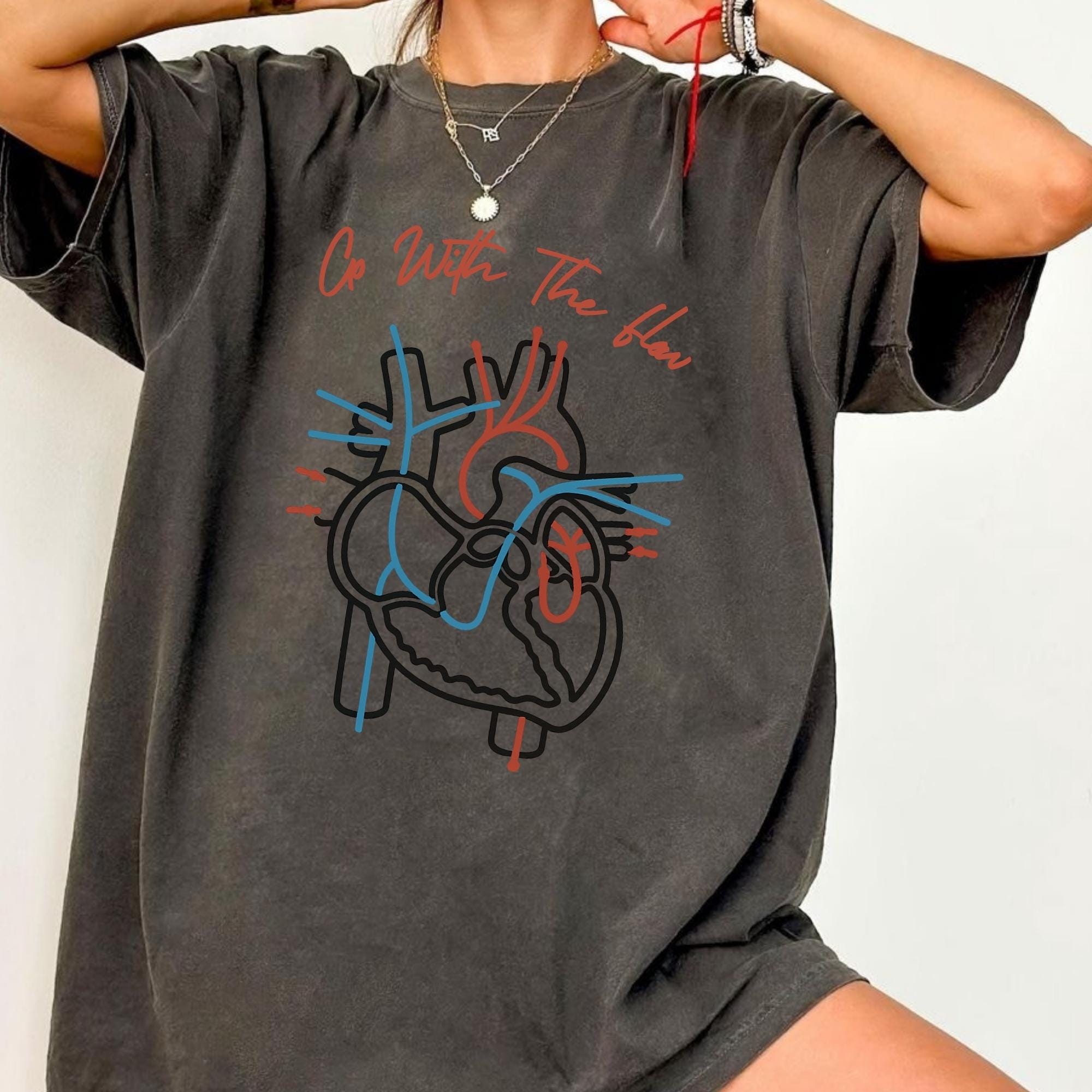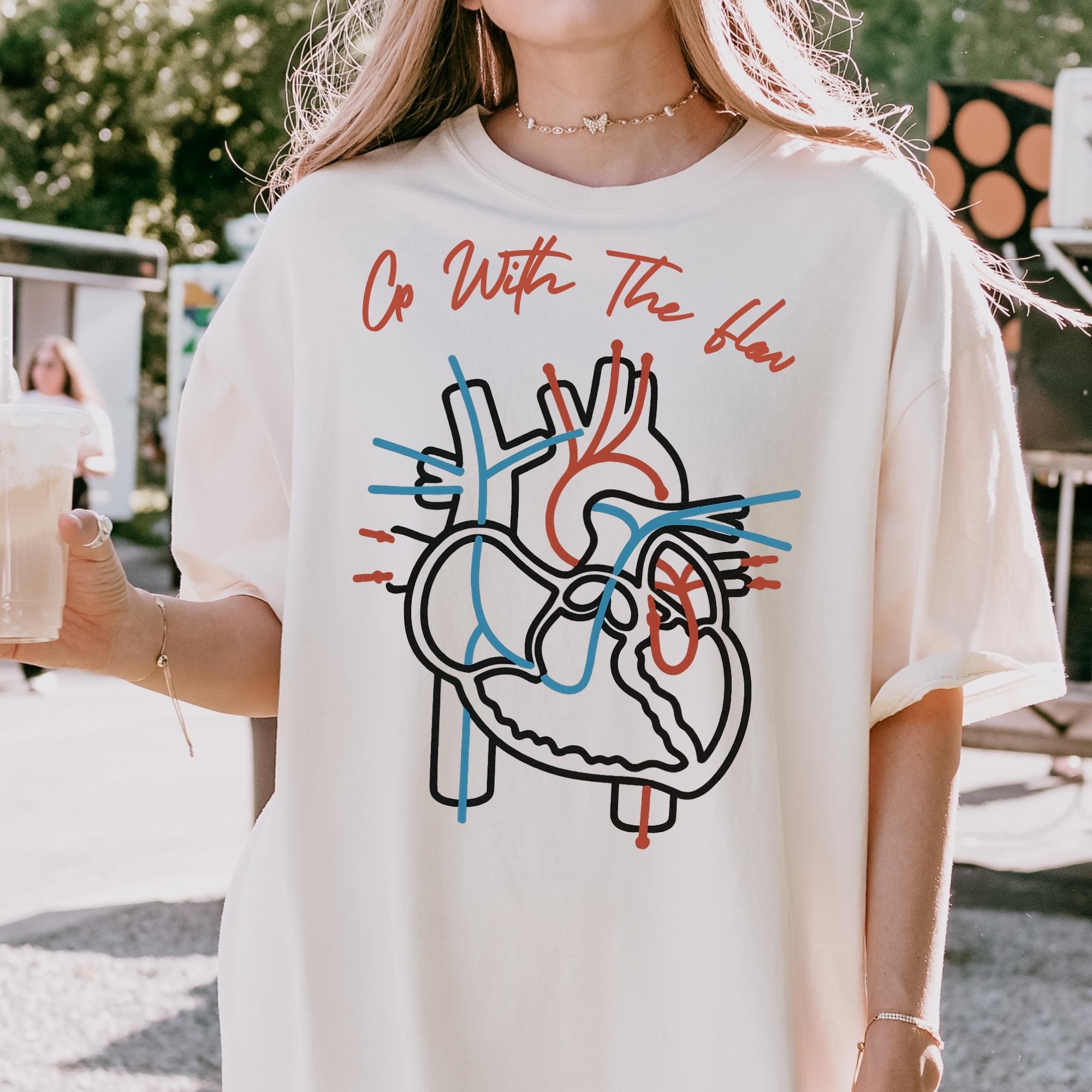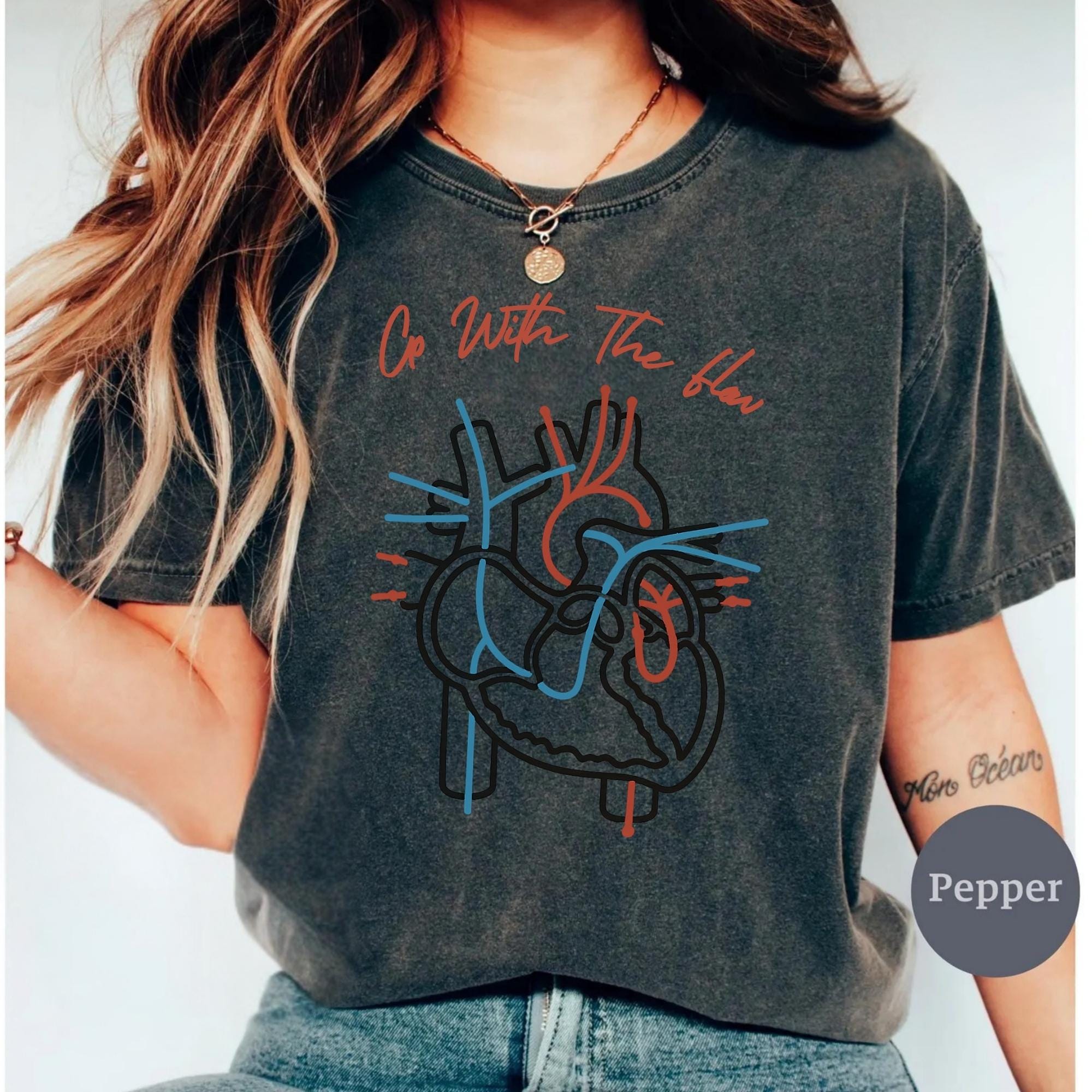 Retro Comfort Go With The Flow T Shirt, Nurse Shirt, CVICU Nurse Gift For Women, Nurse Appreciation Gift, Cardiac Nurse Shirt, EKG Tech Tee