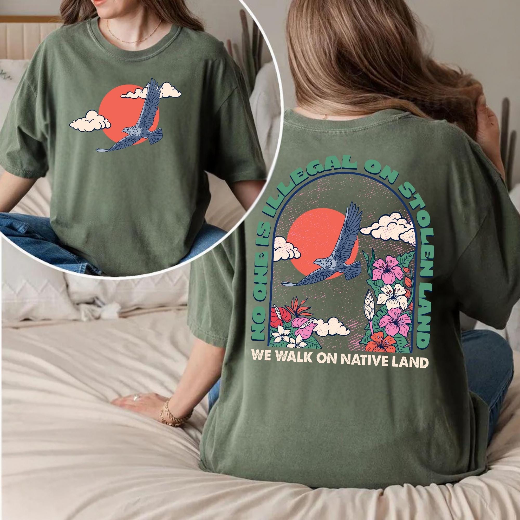 No One is Illegal on Stolen Land Shirt, Antiracist T-Shirt, Pro Immigrant Tee, Human Rights Top, Abolish ICE, Social Justice Activism Gift