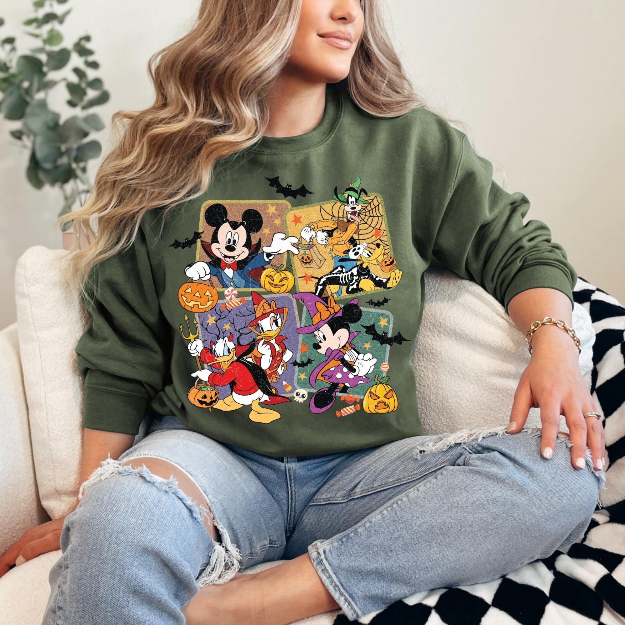 Vintage Halloween Mouse And Friends Sweatshirt,Happy Halloween Sweatshirt, Disney Spooky Sweatshirt,Trick Or Treat, Halloween Masquerade Tee