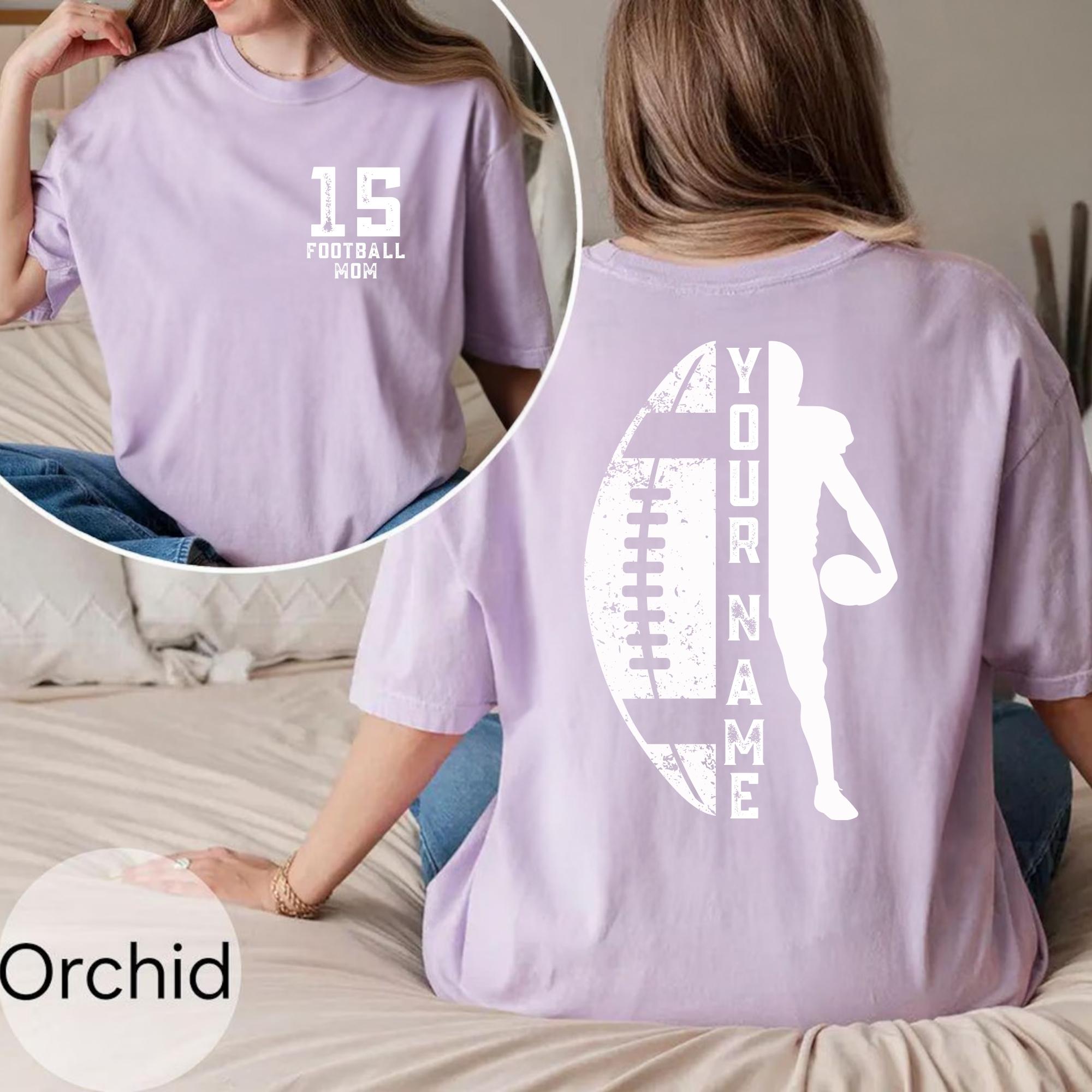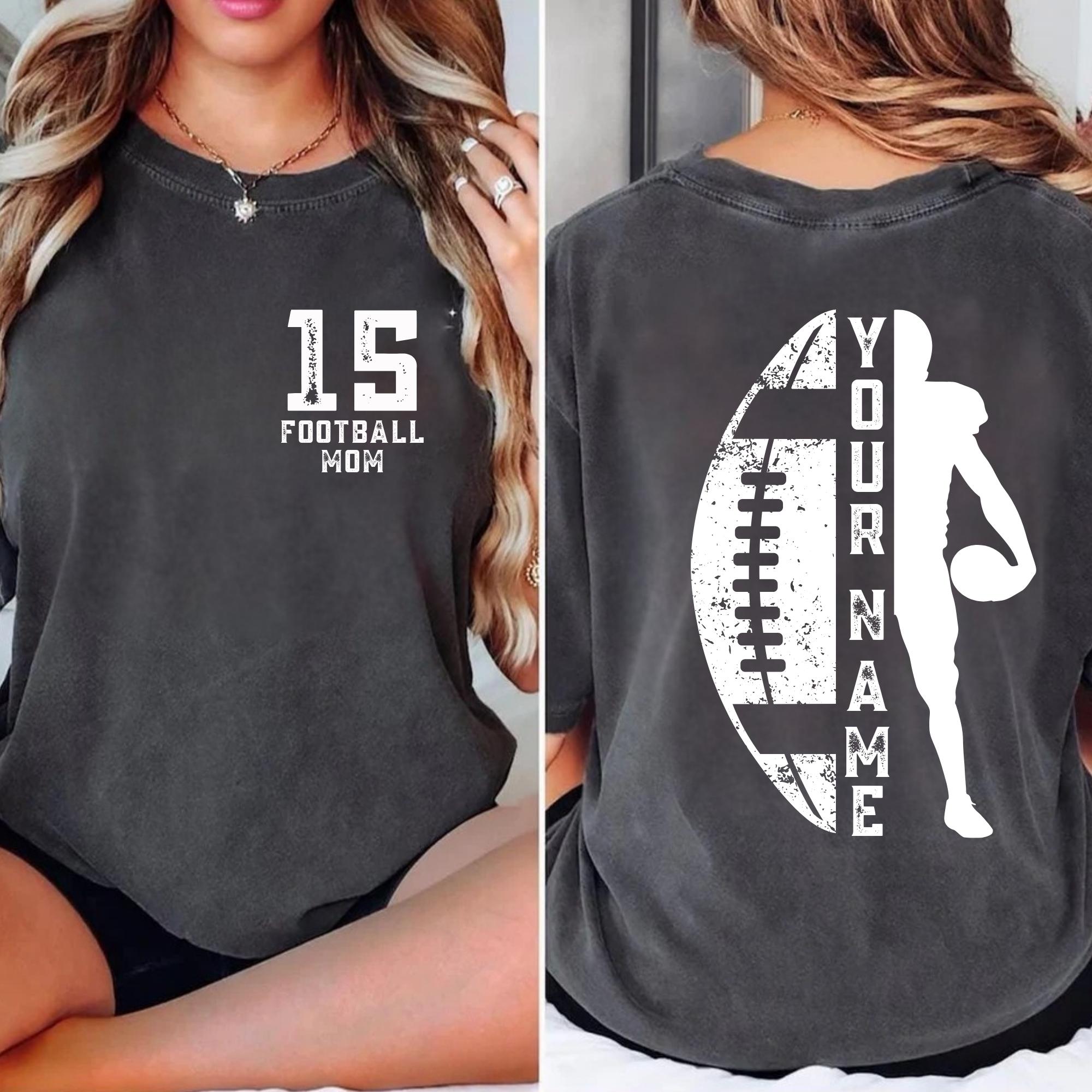 Celebrate your unwavering support for your young athlete with our Football Mom Shirt, a perfect blend of style and sentiment. Imagine walking into the stadium with your custom Comfort Colors shirt, where every letter of your name is a statement of pride and personalized flair. This football t-shirt is not just about comfort; it's about making game day something special. With its soft, high-quality fabric, it's as inviting as the cheers and camaraderie it represents. The game day t-shirt combines chic design with the rugged spirit of football season, capturing the pulse of the crowd in every stitch. Whether you're celebrating under the lights or embracing the crisp fall air, this football shirt ensures you're part of the team. It's more than just a tee; it's your game day tradition.