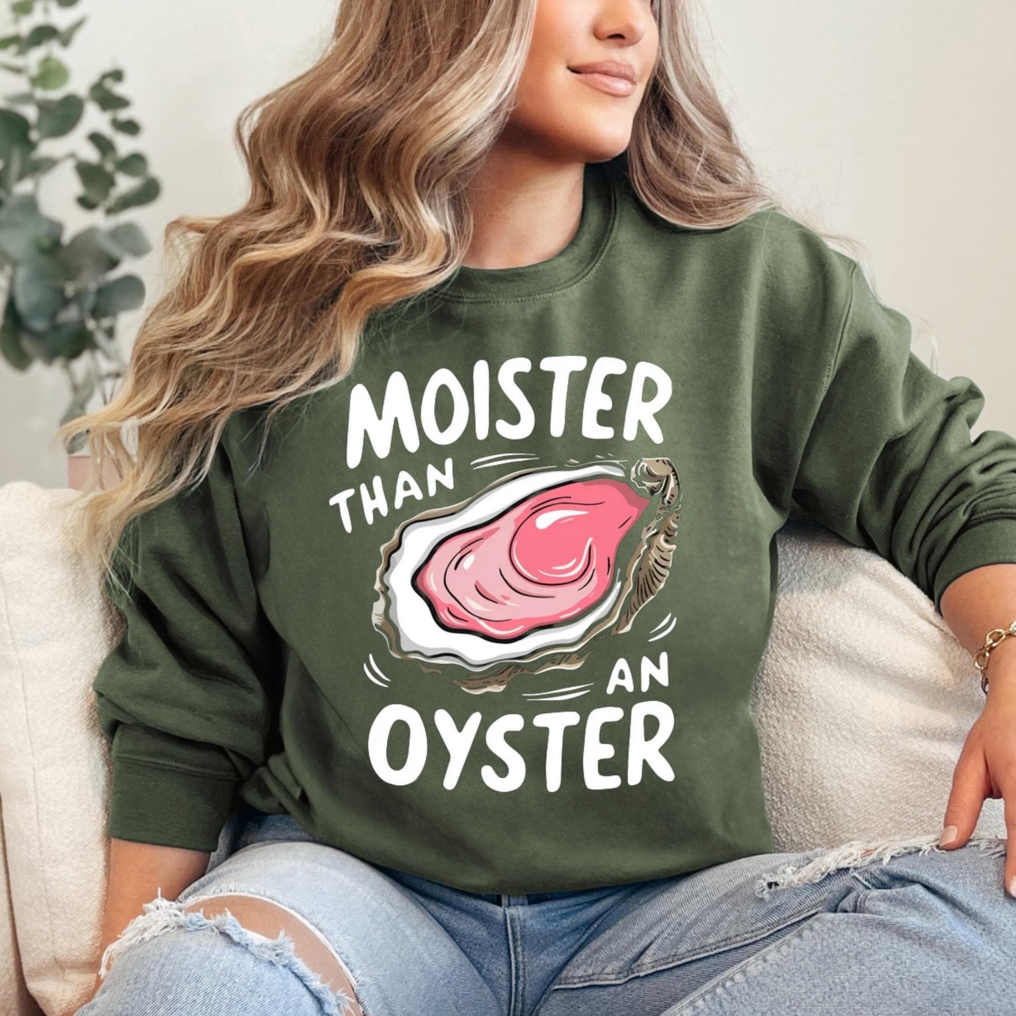 Moister Than An Oyster Sweatshirt, Retro Funny Graphic Hoodie, Unique Humor Shirt, Personalized Gift, Trendy Casual Wear, Fun Apparel Shirt